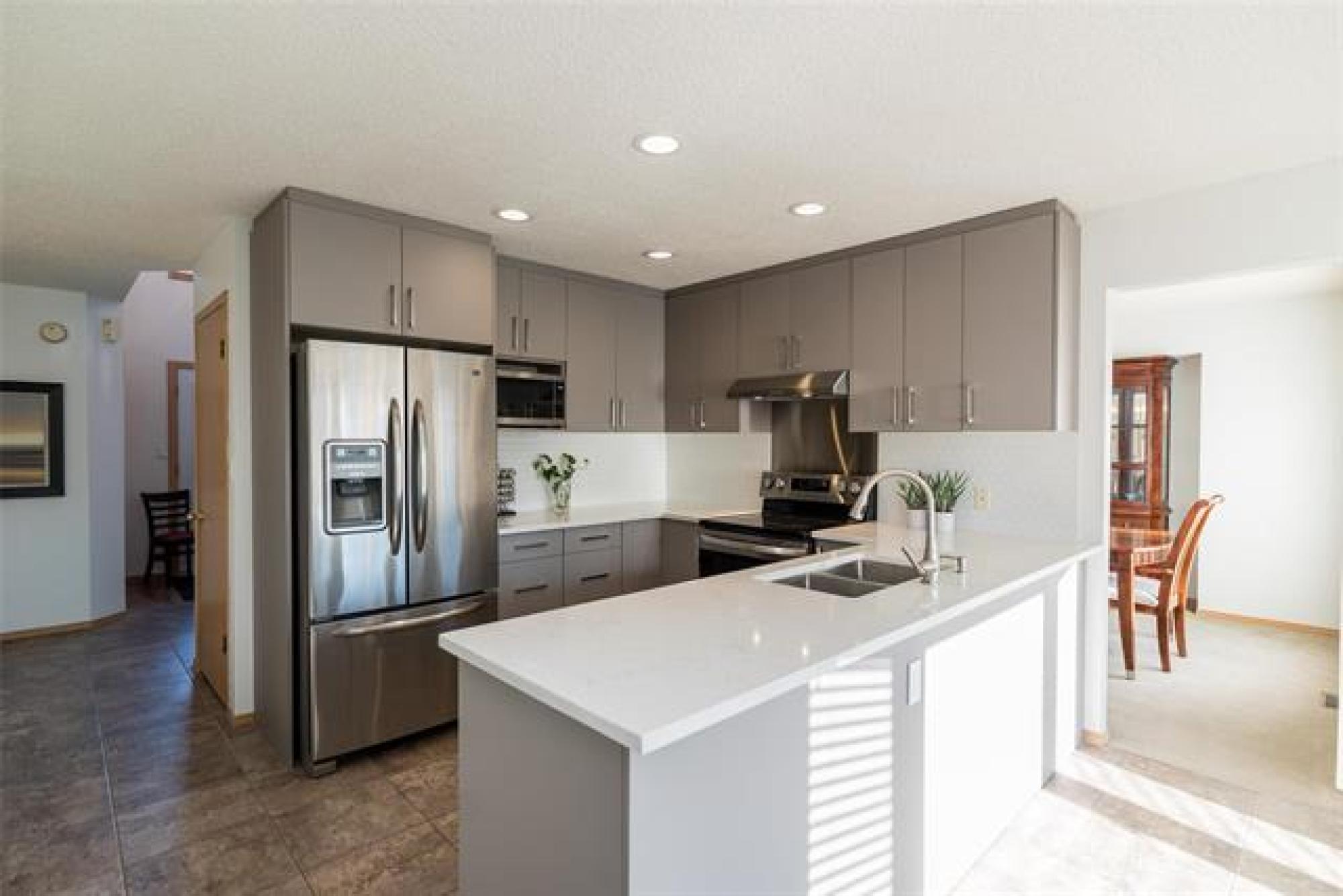 OTP anytime. Welcome to 6 Brentcliffe Drive, ideally located in the heart of Linden Woods. This executive-style home has been thoughtfully maintained, a beautiful brand-new kitchen completed in 2024 & updated windows that bring in plenty of natural light. The main floor offers a rare & highly versatile bedroom with an adjoining full bathroom, perfect for guests, multi-generational living, or a private workspace. Upstairs, you’ll find three generous bedrooms, including a spacious primary suite with an impressive walk-in closet. Bathrooms have been tastefully refreshed to give the home a clean, modern feel. The fully finished basement expands the living space even further with an additional bedroom (window may not meet current code), office, full bathroom, & a great rec area, plus lots of storage. Fully fenced yard features a great deck with excellent sun exposure. A spacious 22'x22' garage provides great parking & additional storage. Just steps from the community centre, playground, splash pad, schools, shopping, and public transit, this home delivers comfort, convenience, and a fantastic lifestyle in one of Winnipeg’s most sought-after neighbourhoods. Some pics, furniture VT staged.