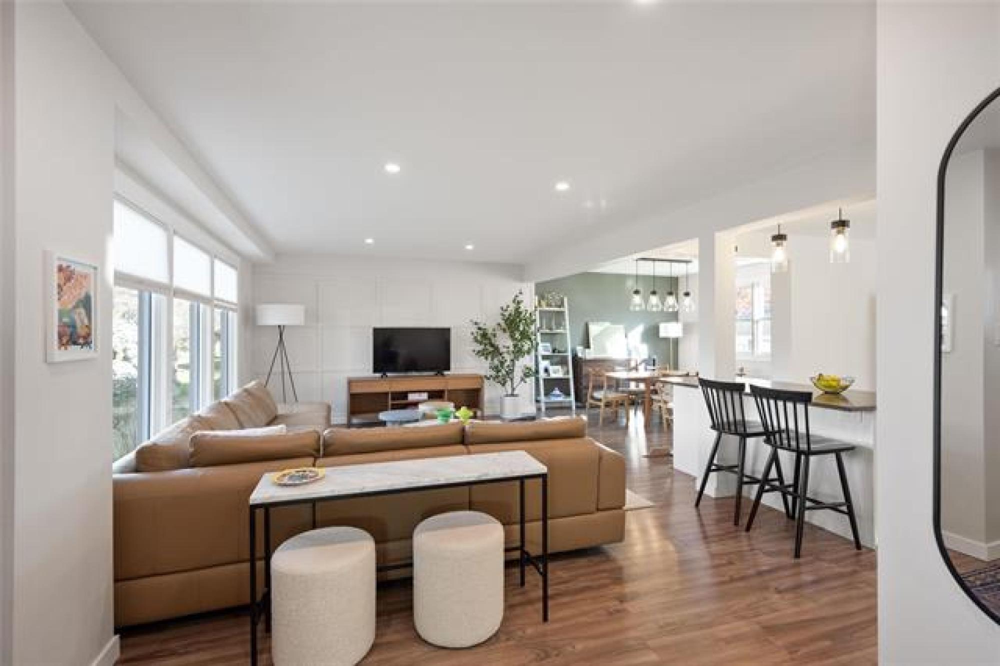 Showings begin Nov 5, offers Nov 10, 4:00 PM. Picture perfect South River Heights home. Nothing to do but move in! This beautifully maintained home sits on a quiet, tree-lined street, walking distance to schools, parks, shops, restaurants & public transportation. Step inside to a bright, open layout filled with natural light. The inviting L-shaped living & dining room flows seamlessly into a completely remodelled island kitchen featuring quartz counters, glass tile backsplash, newer appliances, & island seating. The main floor also offers a 2-piece bath, practical & sunny home office, fantastic mudroom w/ abundant storage & main-floor laundry. Upstairs, you’ll find 4 comfortable bedrooms, renovated bathroom w/ double sinks. The spacious primary bedroom provides excellent closet space & a serene atmosphere.The lower level includes a cozy rec room, full bathroom w stall shower & 5th bedroom (window does not meet egress). Extensive upgrades ensure peace of mind: roof shingles (2018), flat roof (2019), double garage (2018), hot water tank (2020), furnace & A/C (2021) newer blinds & lighting throughout. Every detail reflects thoughtful care and pride of ownership. This home truly is a pleasure to be in!