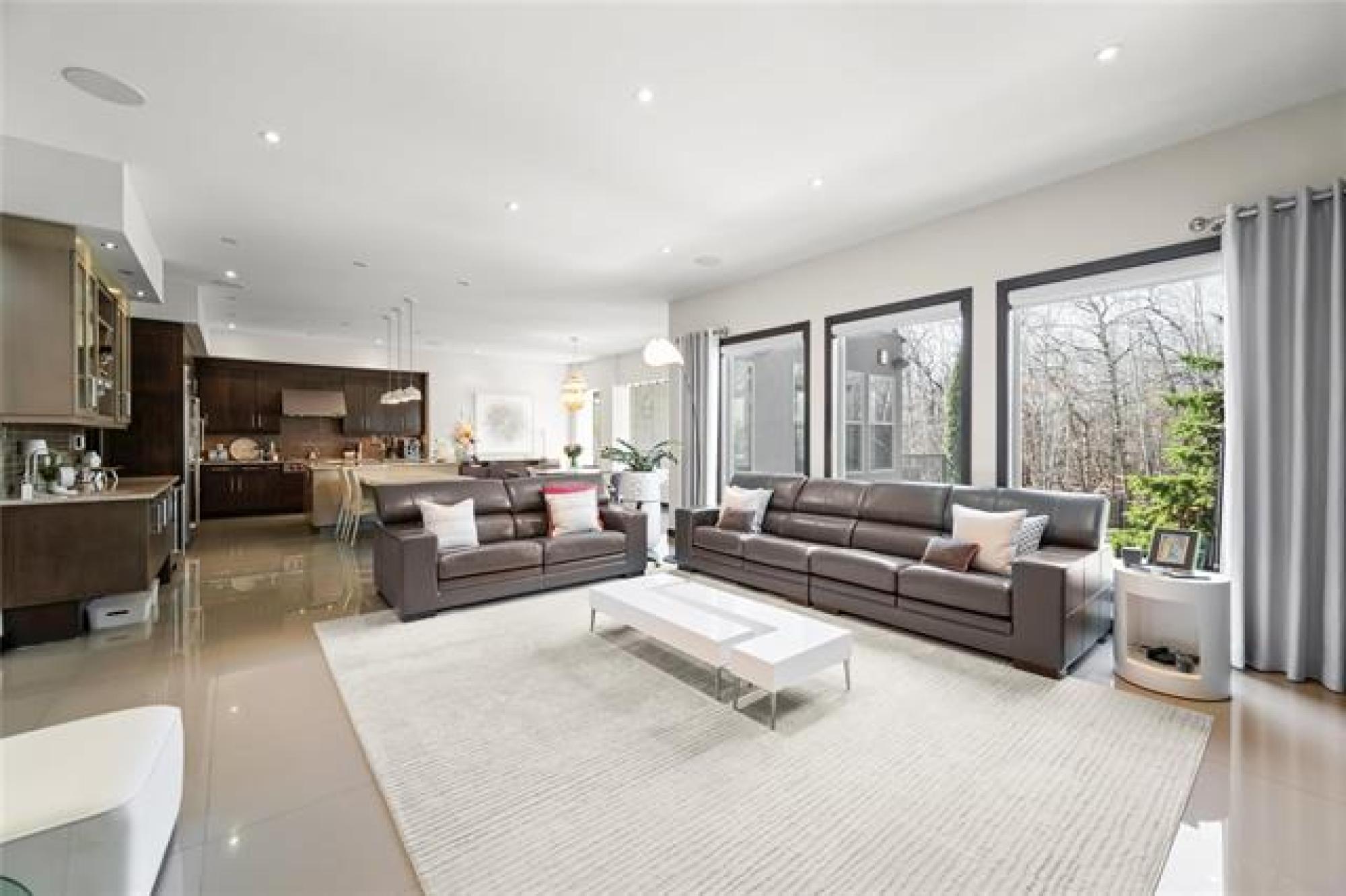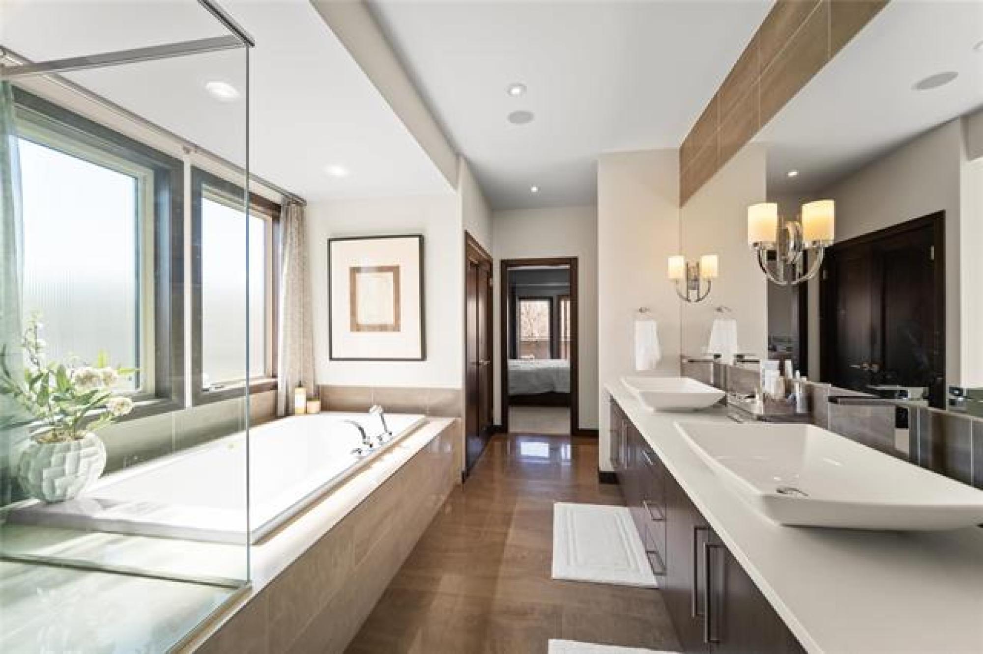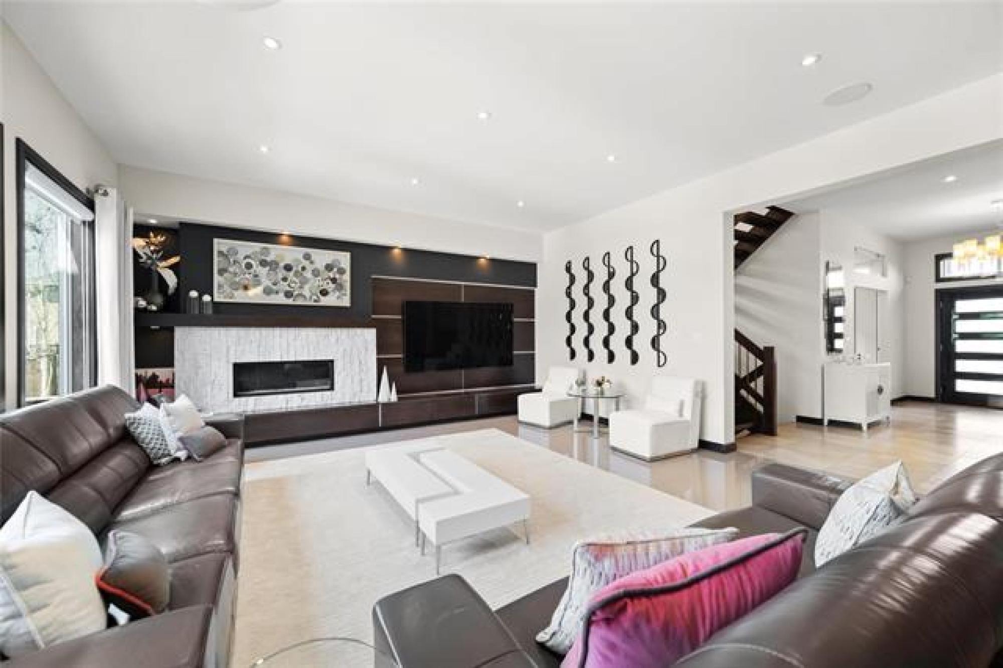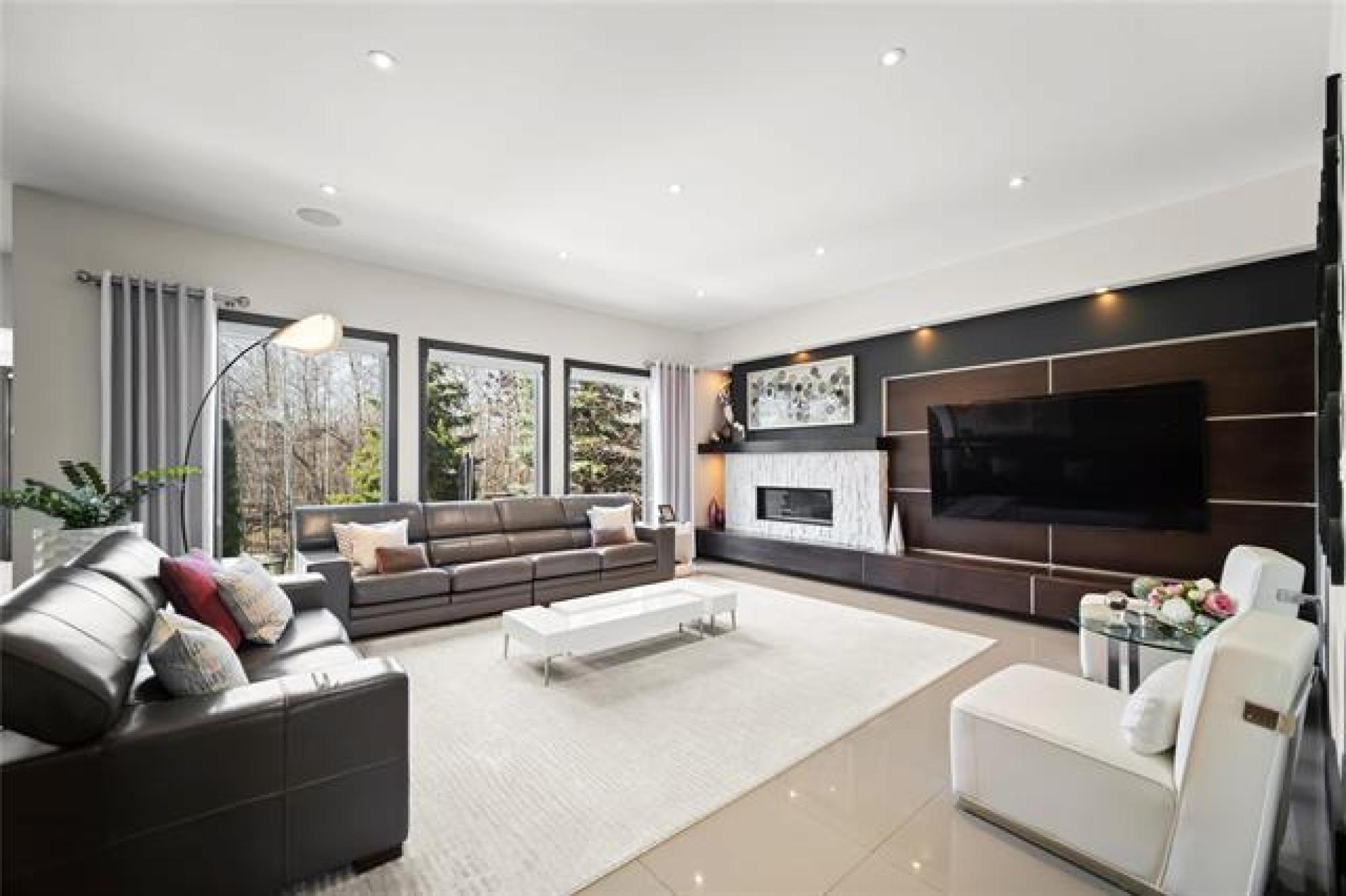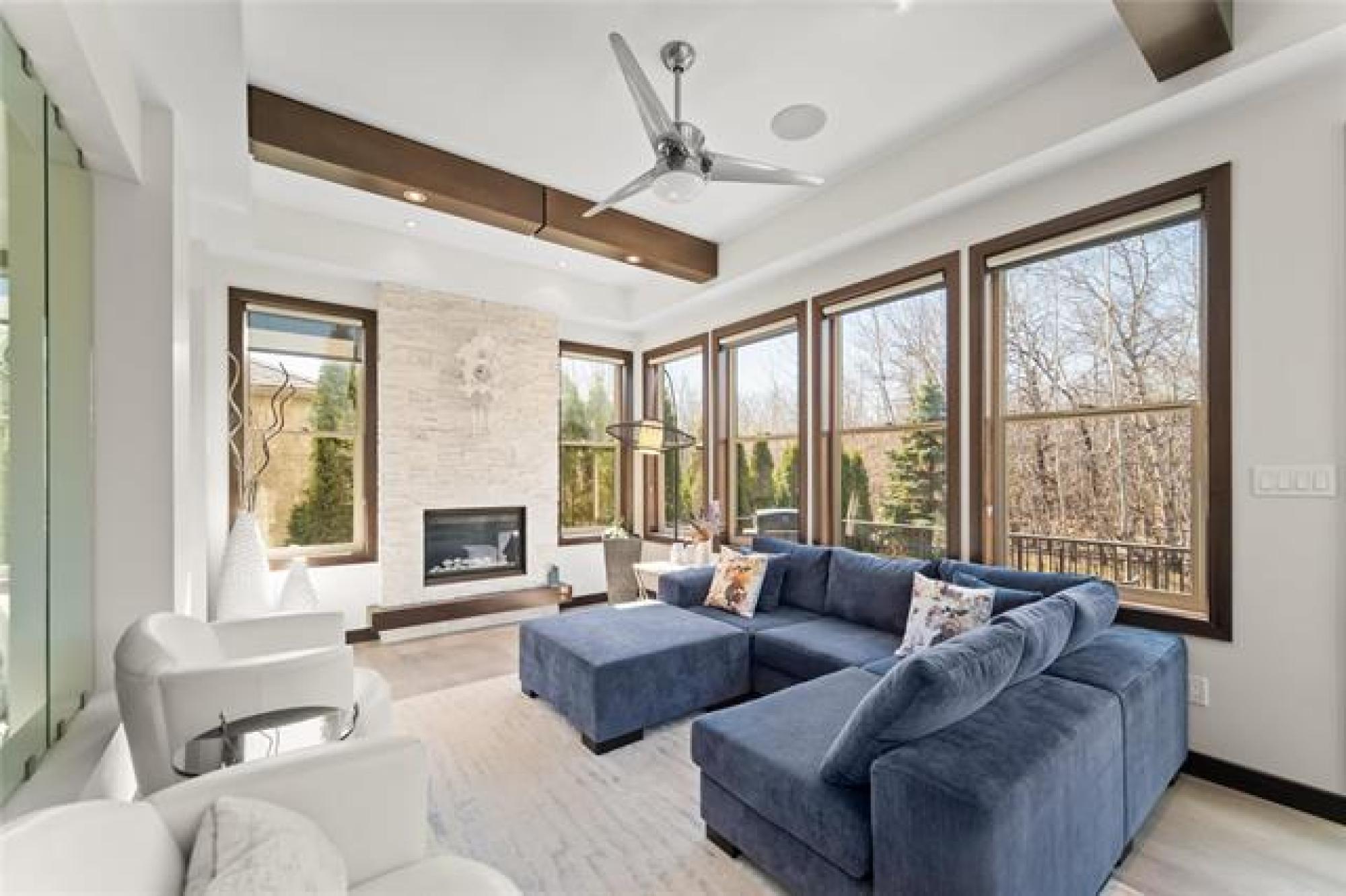 Top of the line 3,538 sf Maric built 2-storey backing onto the forest in Royalwood. Replacement value of $3,000,000. This home is over the top in fit and finish with a large front entrance and office w/glass doors, HWF's + bright windows. The kitchen has tons of cabinetry with a 2-tier island, quartz counters, backsplash, pantry and top of the line appliances. The adjoining family rm has lots of room for furniture with a built-in entertainment centre w/gas FP as well as a custom wet bar. The sun rm at the back is surrounded by windows with a 2nd gas FP on the main floor. Upstairs there are 4 bedrooms (one of which has a 2pc ensuite) with the primary having a dlx ensuite w/ his/hers sinks, glass shower and soaker tub, HUGE walk-in closet and private roof top patio w/hot tub. The bsmt is fully fin w/ steel beam construction + structural wood floors. The rec rm has 9' ceilings, big windows, custom entertainment centre + gym. The 5th bedroom has its own ensuite bath as well as having direct access to the garage from the bsmt. There is also a large piano rm/ 6th bedroom. The yard has been meticulously landscaped and has a large patio w/tons of boulders and sunken fire pit that is surrounded by the forest.