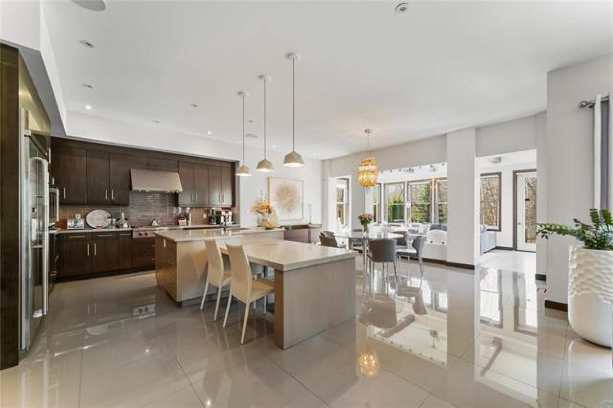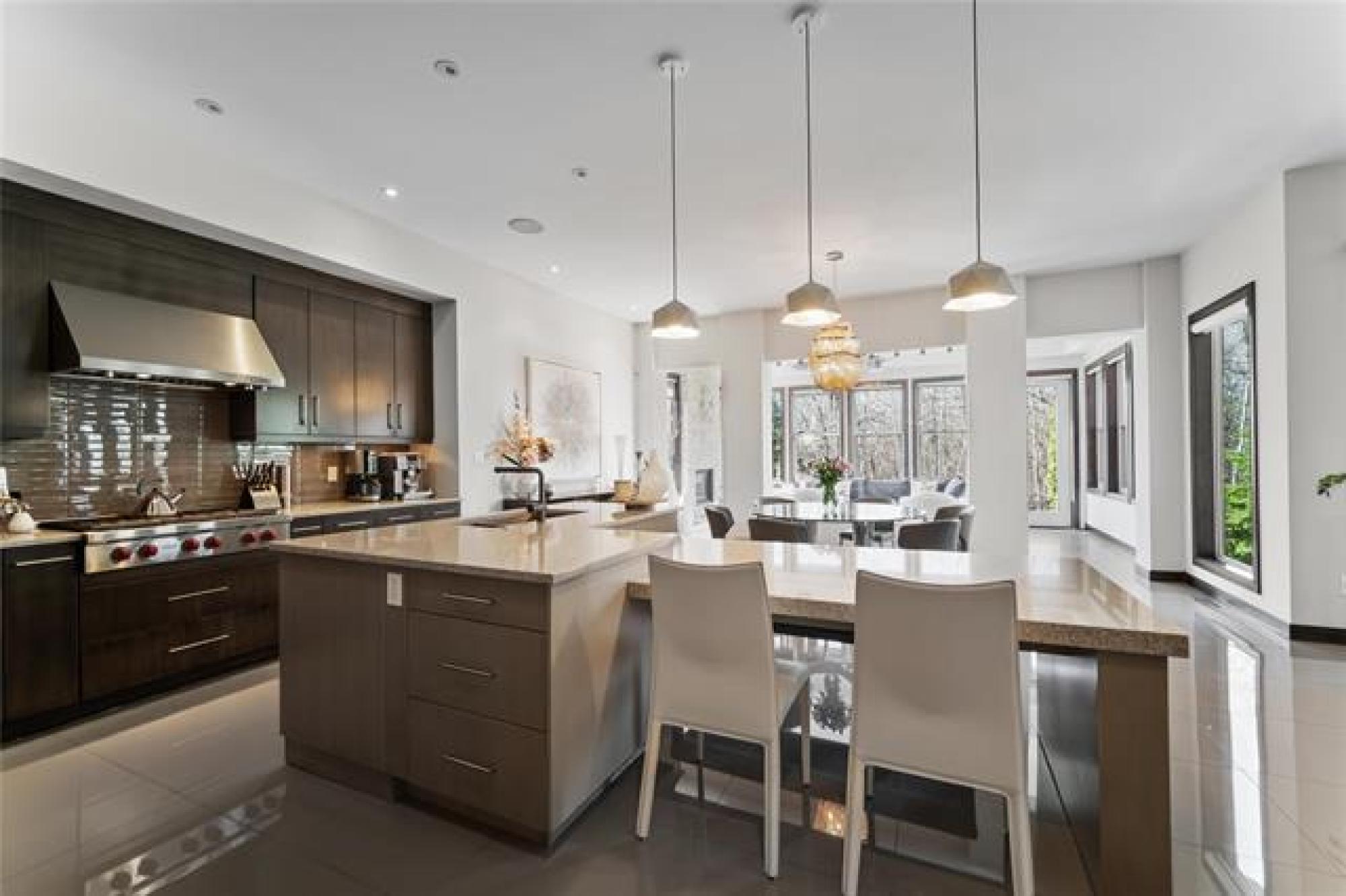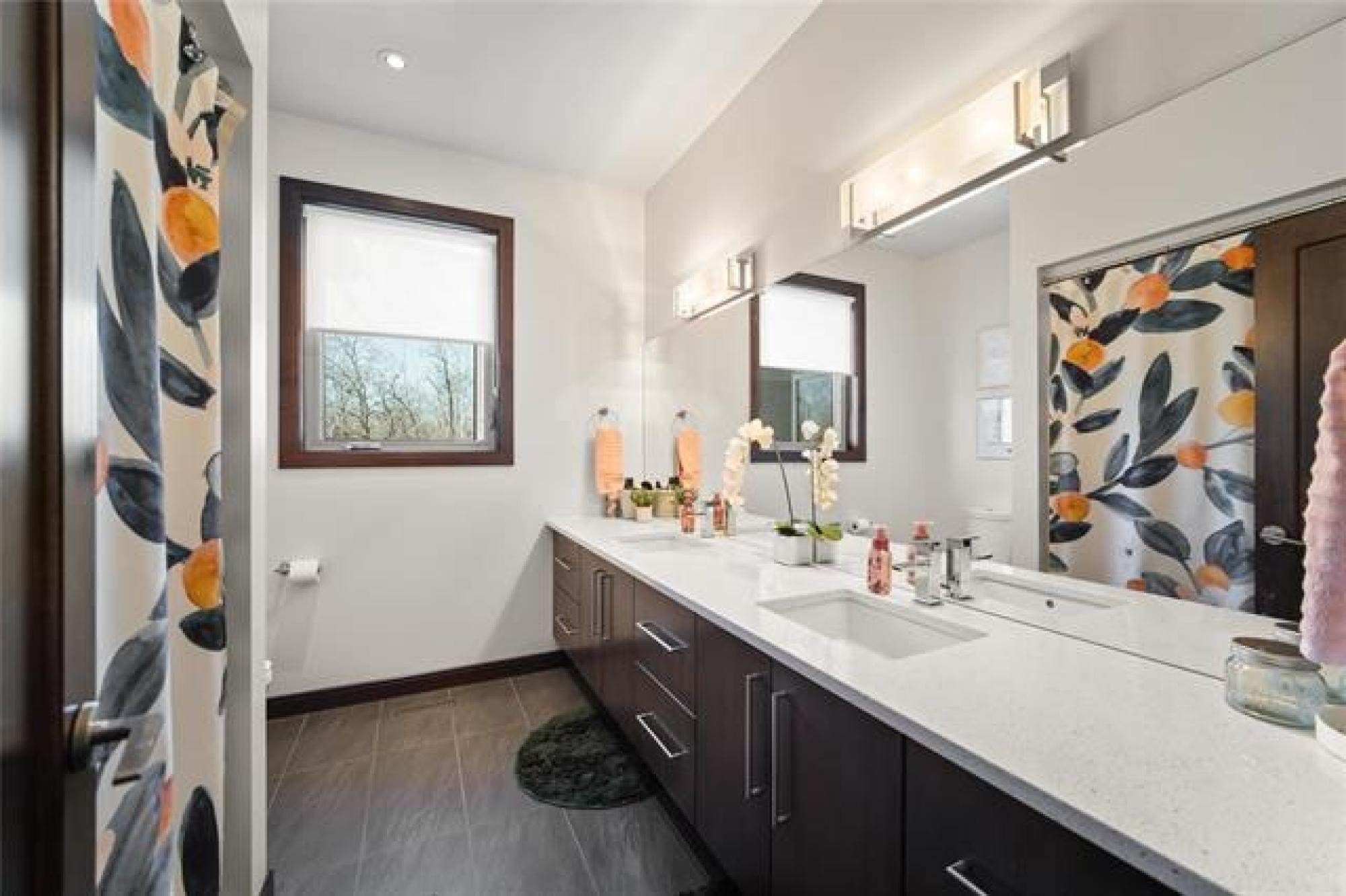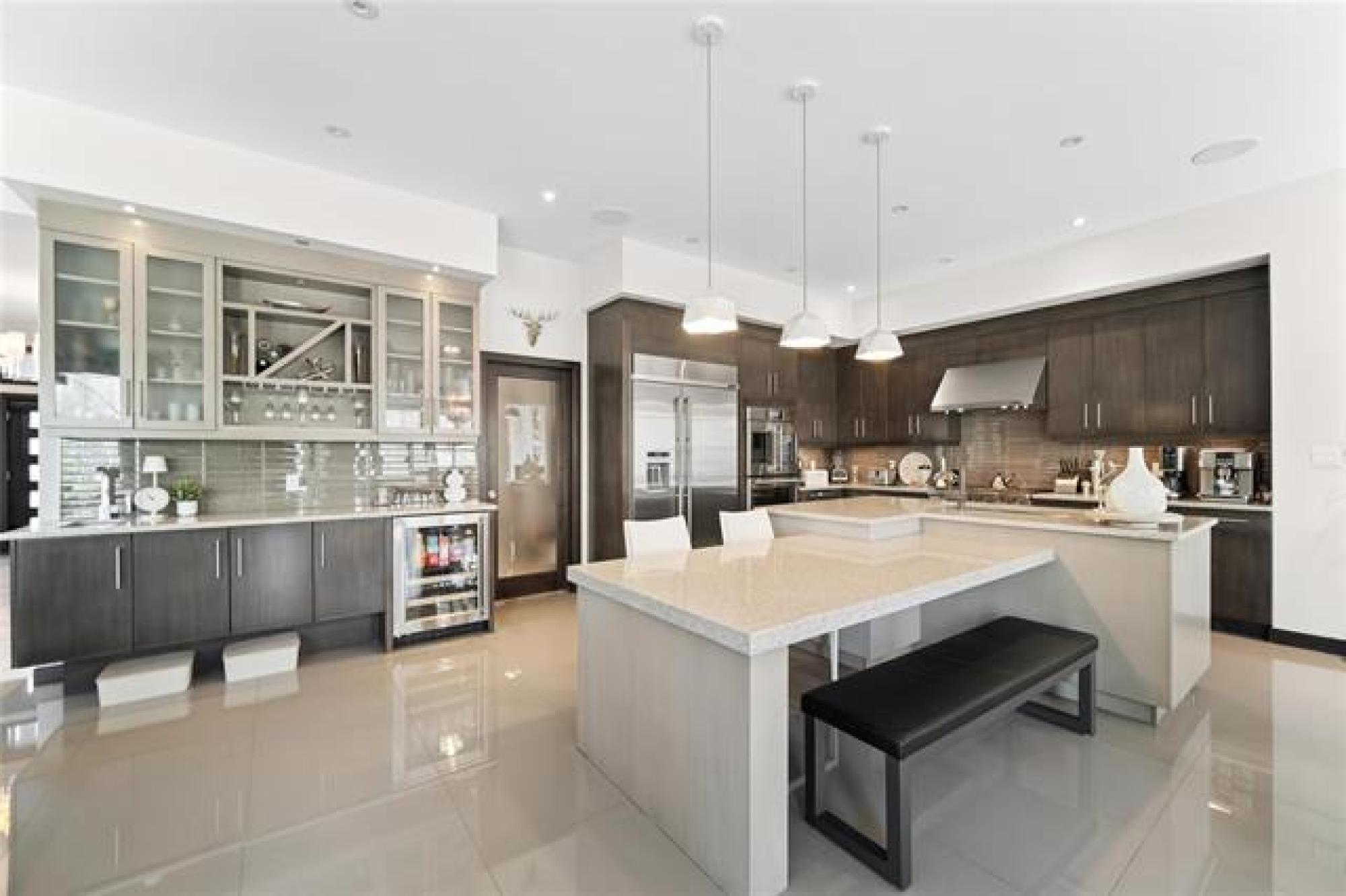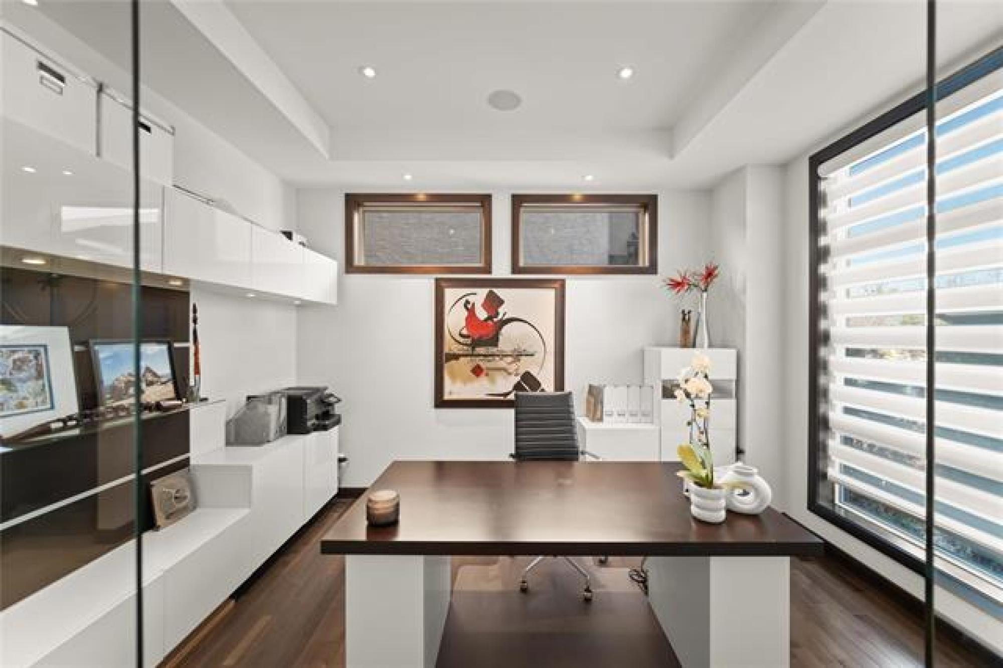 Top of the line 3,538 sf Maric built 2-storey backing onto the forest in Royalwood. Replacement value of $3,000,000. This home is over the top in fit and finish with a large front entrance and office w/glass doors, HWF's + bright windows. The kitchen has tons of cabinetry with a 2-tier island, quartz counters, backsplash, pantry and top of the line appliances. The adjoining family rm has lots of room for furniture with a built-in entertainment centre w/gas FP as well as a custom wet bar. The sun rm at the back is surrounded by windows with a 2nd gas FP on the main floor. Upstairs there are 4 bedrooms (one of which has a 2pc ensuite) with the primary having a dlx ensuite w/ his/hers sinks, glass shower and soaker tub, HUGE walk-in closet and private roof top patio w/hot tub. The bsmt is fully fin w/ steel beam construction + structural wood floors. The rec rm has 9' ceilings, big windows, custom entertainment centre + gym. The 5th bedroom has its own ensuite bath as well as having direct access to the garage from the bsmt. There is also a large piano rm/ 6th bedroom. The yard has been meticulously landscaped and has a large patio w/tons of boulders and sunken fire pit that is surrounded by the forest.
