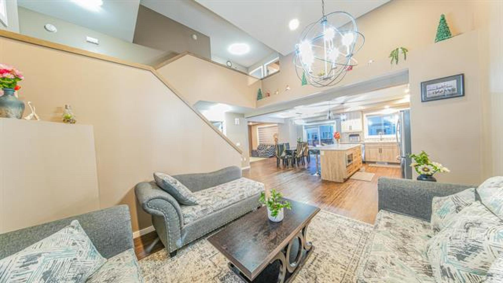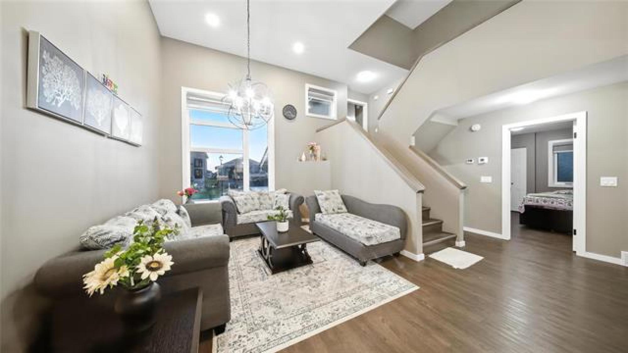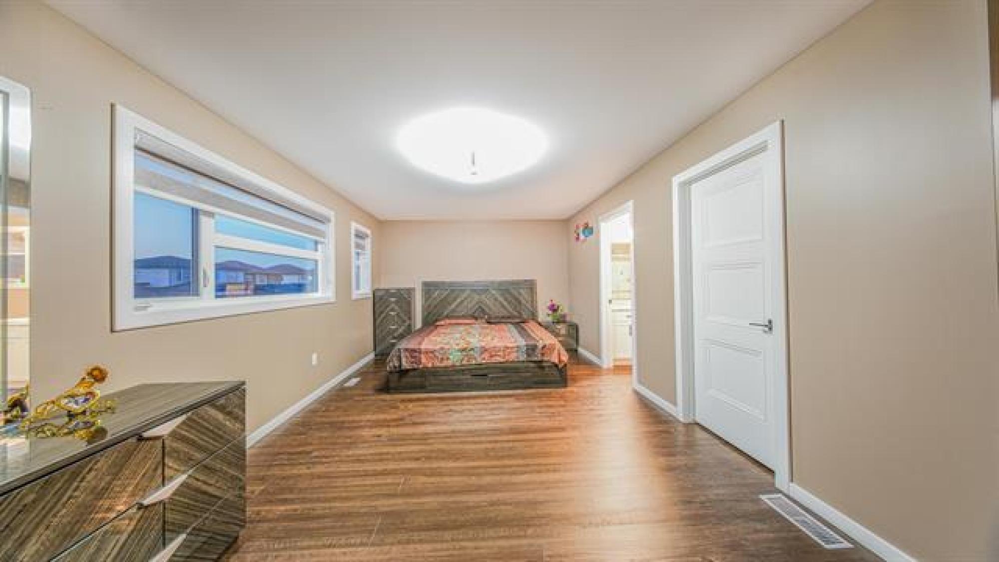 OH 30th Nov - Sun(2pm-4pm).Welcome to 9 Park Lane, a stunning 2,170 sq. ft. home located in the highly sought-after Parkview Pointe community. This beautifully designed residence features 5 spacious bedrooms, including one conveniently located on the main floor with a full bathroom—perfect for guests or multi-generational living. Spacious kitchen with gas stove and high end appliances. The home offers two generous living areas, one with an impressive open-to-below ceiling, and a massive kitchen ideal for entertaining. Three decent size bedrooms with one full bath and walk in laundry on 2nd floor. Master bedroom is huge with walk-in closet and standing shower ensuite. The professionally landscaped yard includes a backyard patio and cozy fire pit area, perfect for outdoor gatherings. The exterior showcases a stylish combination of wooden siding and stucco, blending elegance with durability. Parkview Pointe offers a serene lifestyle surrounded by scenic lakes, parks, and walking trails. A new commercial plaza is currently under construction within walking distance, and the brand new Costco is just a few minutes’ drive away—making this home the perfect blend of comfort, convenience, and community living.