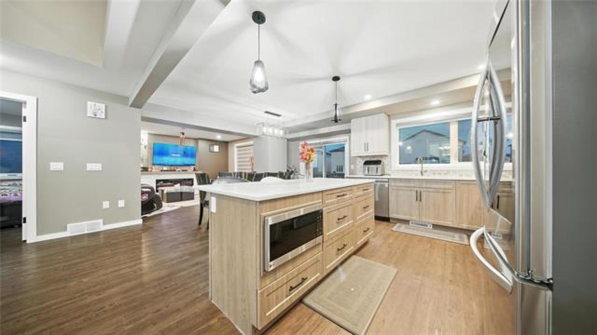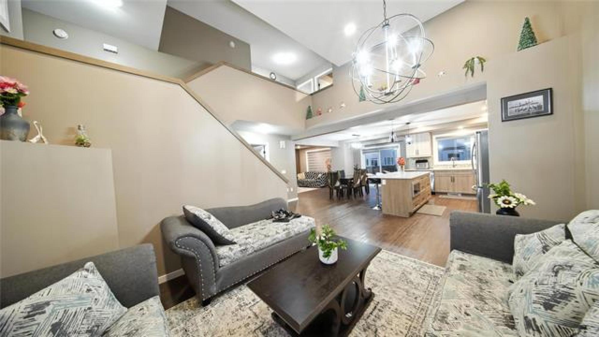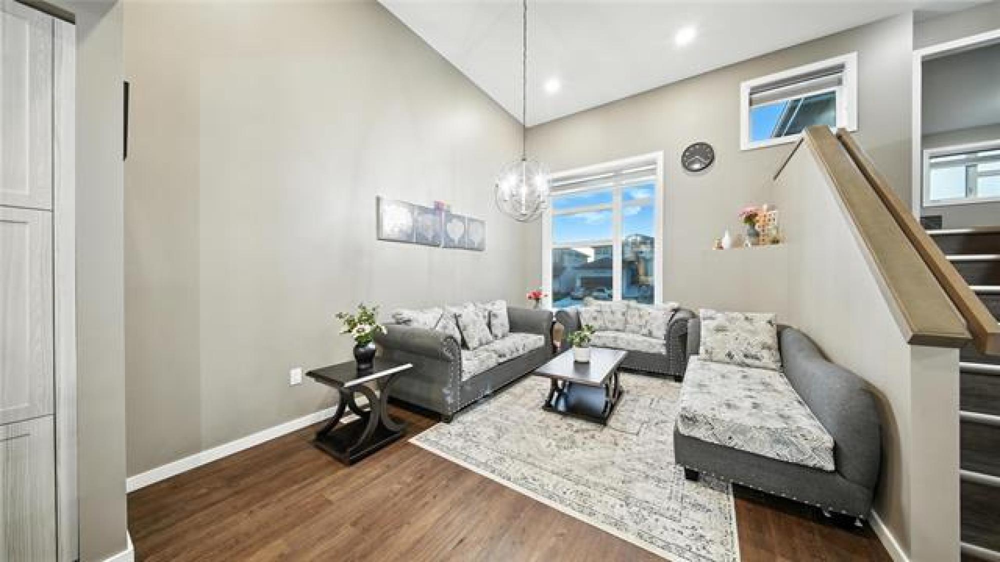 OH 30th Nov - Sun(2pm-4pm).Welcome to 9 Park Lane, a stunning 2,170 sq. ft. home located in the highly sought-after Parkview Pointe community. This beautifully designed residence features 5 spacious bedrooms, including one conveniently located on the main floor with a full bathroom—perfect for guests or multi-generational living. Spacious kitchen with gas stove and high end appliances. The home offers two generous living areas, one with an impressive open-to-below ceiling, and a massive kitchen ideal for entertaining. Three decent size bedrooms with one full bath and walk in laundry on 2nd floor. Master bedroom is huge with walk-in closet and standing shower ensuite. The professionally landscaped yard includes a backyard patio and cozy fire pit area, perfect for outdoor gatherings. The exterior showcases a stylish combination of wooden siding and stucco, blending elegance with durability. Parkview Pointe offers a serene lifestyle surrounded by scenic lakes, parks, and walking trails. A new commercial plaza is currently under construction within walking distance, and the brand new Costco is just a few minutes’ drive away—making this home the perfect blend of comfort, convenience, and community living.