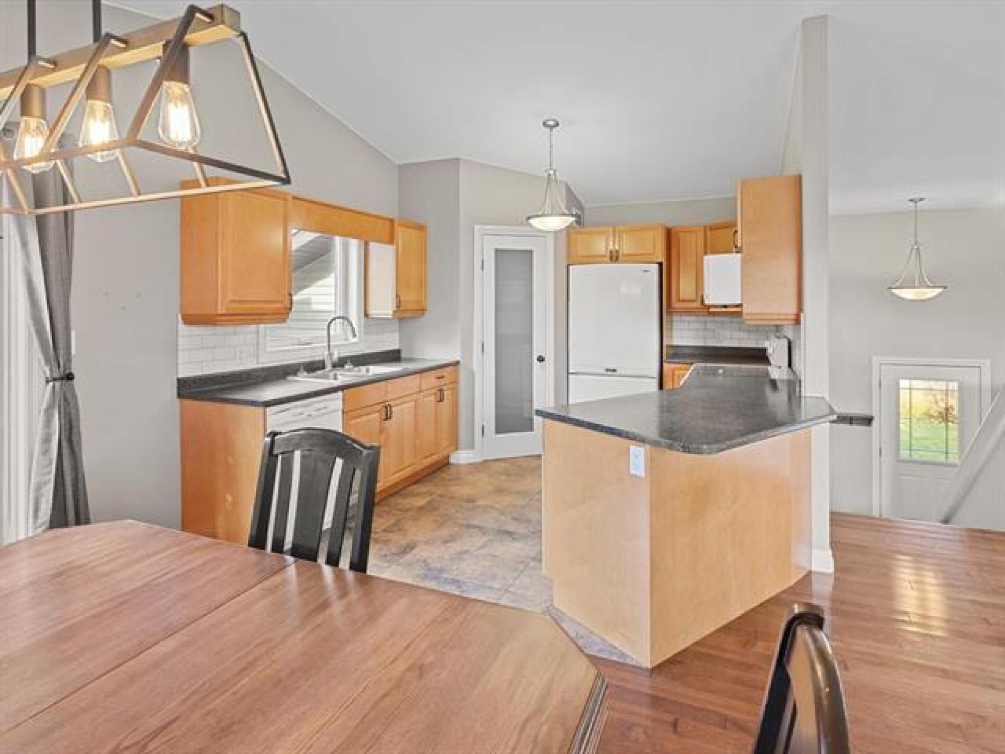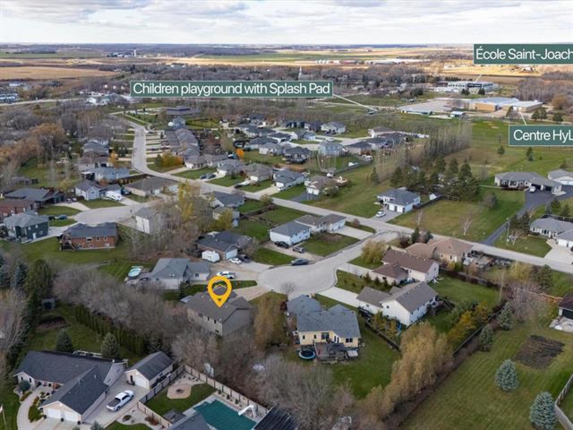 *Open House Saturday Nov 8th from 1-3, and Sunday November 9th from 2-4pm*. Welcome to this stunning 5-bedroom family home, perfectly situated in the heart of La Broquerie on a quiet cul-de-sac! Just a short walk from the park, splash pad, arena, schools, and golf course, this 2009-built home offers style, comfort, and convenience. The main floor features vaulted ceilings, hardwood floors, and a cozy brick fireplace, main floor laundry, and large south-facing windows filling the space with natural light. The primary suite includes a walk-in closet and ensuite with a relaxing jetted tub. Step outside from your dining room to a large raised deck with pergola overlooking a private yard with towering trees, garden boxes, and lush green space. The fully finished lower level boasts a massive rec room—perfect for movie nights or a pool table—plus two additional bedrooms, large windows, and a rough-in for a third full bath. An attached garage and extra parking pad, garden shed and outdoor firepit area complete this wonderful family property! Located just 10 mins east of Steinbach or 35 mins to Winnipeg, come see the value waiting for you in this well maintained home!