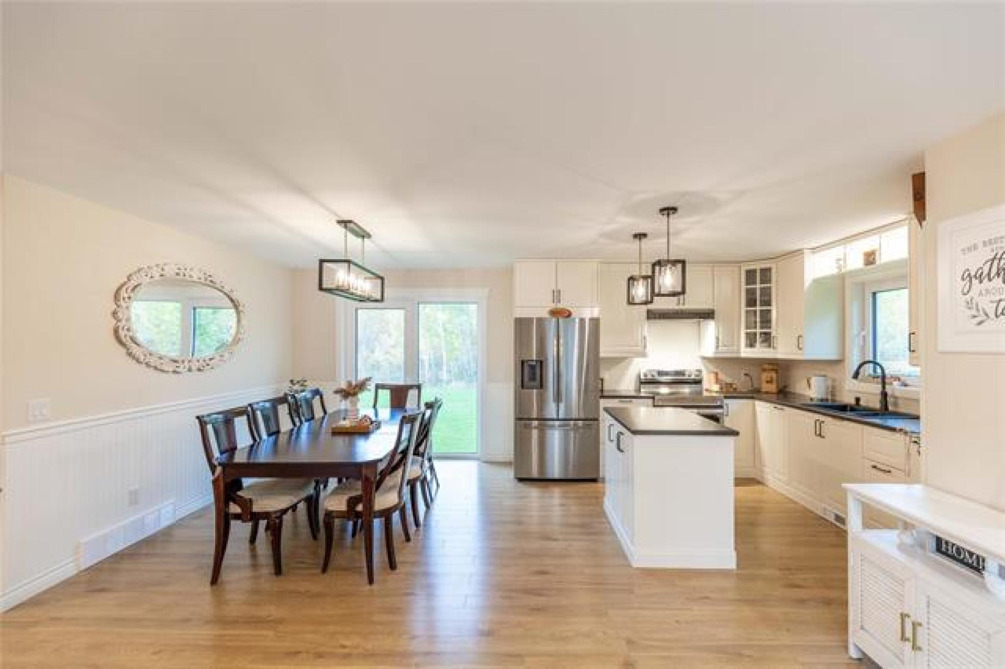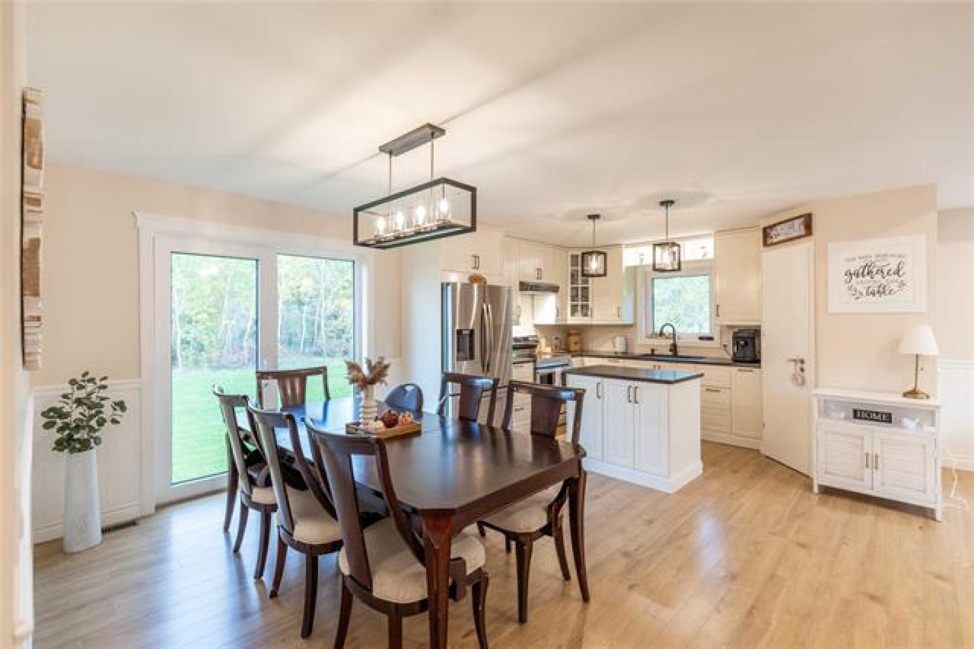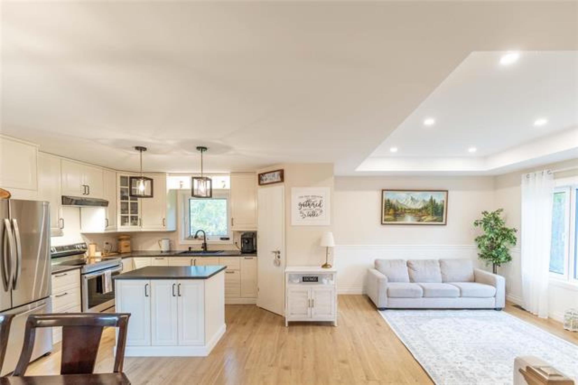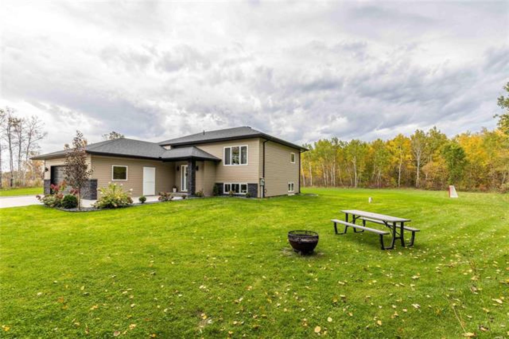 Room for the whole family—this 5 bedroom country home sits on 2 acres of greenspace made for memories. Great curb appeal, tasteful landscaping and a welcoming entrance with custom railing preview the home’s charm. Step into the bright and cozy living room, highlighted by a large picture window, tray ceiling with potlights and a warm, inviting feel. The kitchen is both stylish and functional, showcasing crisp white shaker cabinets, center island, corner pantry, and gleaming stainless steel appliances. The adjoining dining room includes garden doors that lead to a future deck—ideal for enjoying the peaceful country views. The main floor offers a thoughtful mix of convenience and comfort with the primary bedroom featuring dual closets, two additional bedrooms, full bathroom, plus main floor laundry. Downstairs, the finished basement provides even more living space with a large rec room accented by a fireplace, two more bedrooms and another full bathroom. Outdoors, the 2 acre yard is perfect for families, pets, or anyone who loves extra space. With beautiful landscaping, open greenspace, and room to roam, this property combines the best of country living with modern finishes. Call today for your tour!