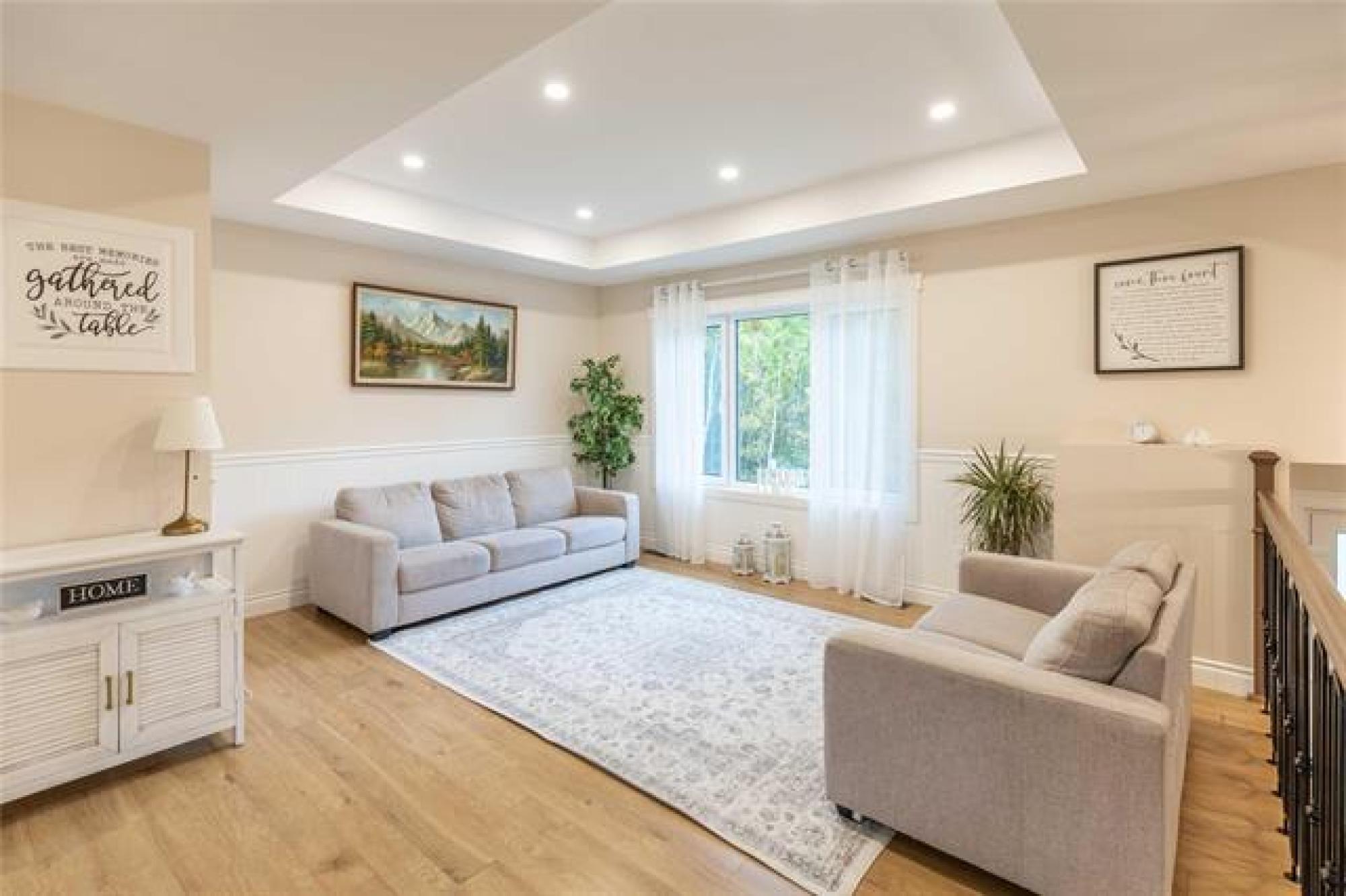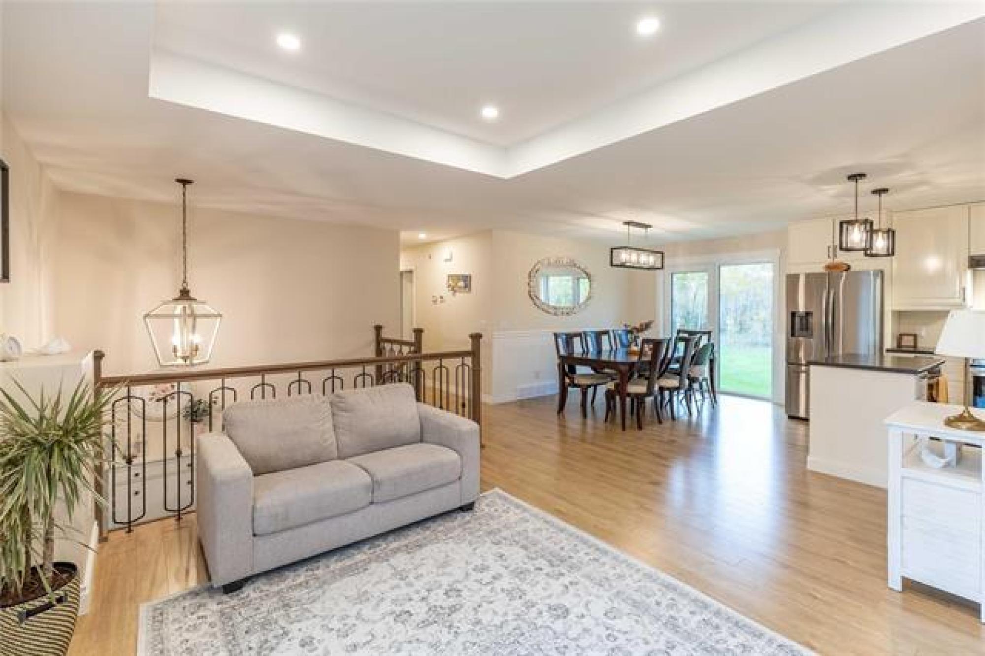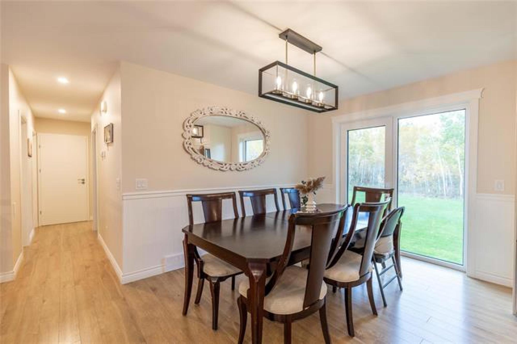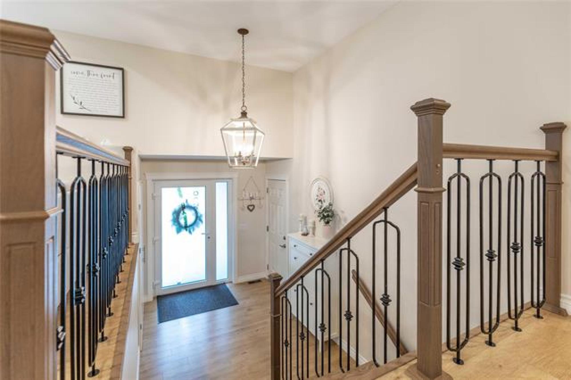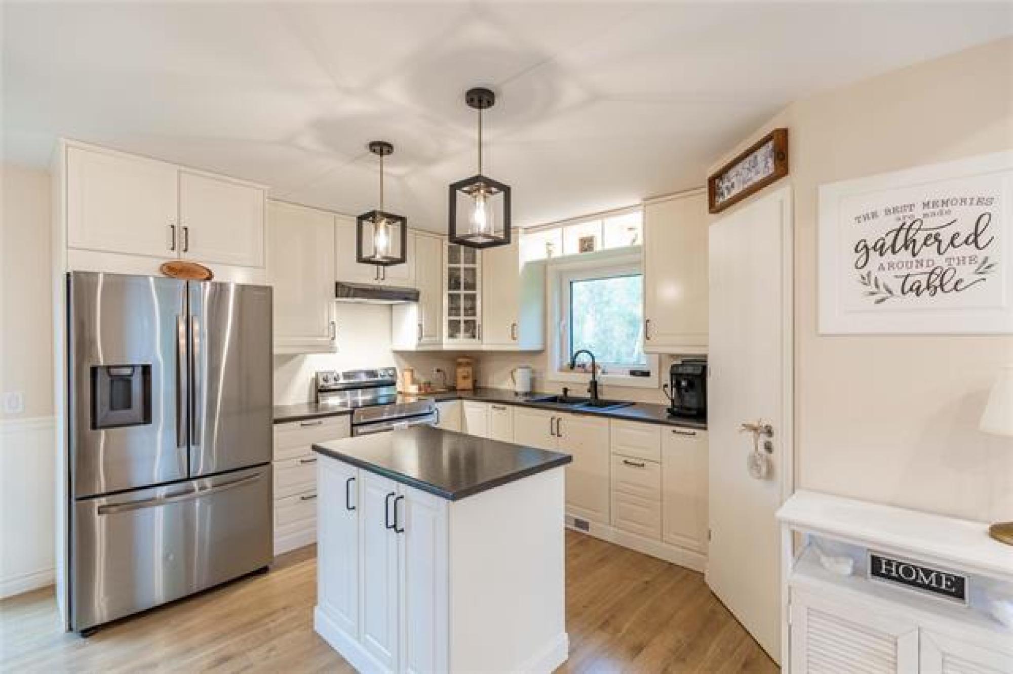 Room for the whole family—this 5 bedroom country home sits on 2 acres of greenspace made for memories. Great curb appeal, tasteful landscaping and a welcoming entrance with custom railing preview the home’s charm. Step into the bright and cozy living room, highlighted by a large picture window, tray ceiling with potlights and a warm, inviting feel. The kitchen is both stylish and functional, showcasing crisp white shaker cabinets, center island, corner pantry, and gleaming stainless steel appliances. The adjoining dining room includes garden doors that lead to a future deck—ideal for enjoying the peaceful country views. The main floor offers a thoughtful mix of convenience and comfort with the primary bedroom featuring dual closets, two additional bedrooms, full bathroom, plus main floor laundry. Downstairs, the finished basement provides even more living space with a large rec room accented by a fireplace, two more bedrooms and another full bathroom. Outdoors, the 2 acre yard is perfect for families, pets, or anyone who loves extra space. With beautiful landscaping, open greenspace, and room to roam, this property combines the best of country living with modern finishes. Call today for your tour!