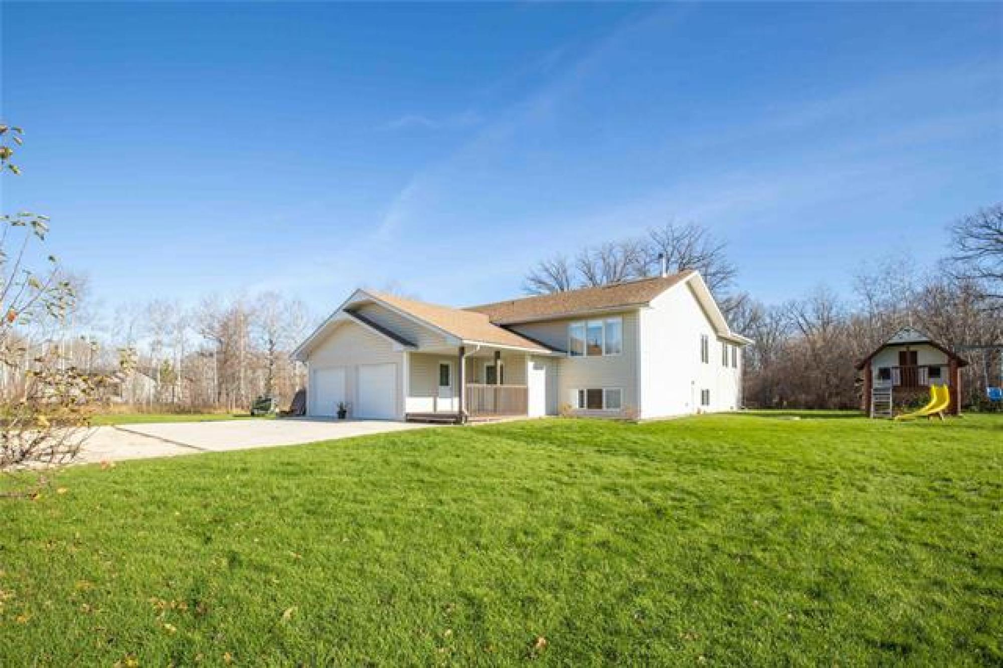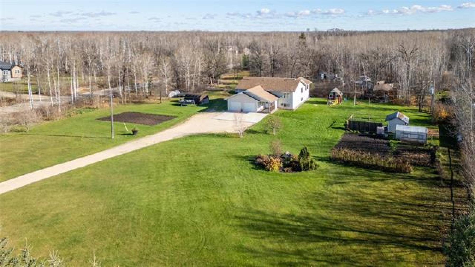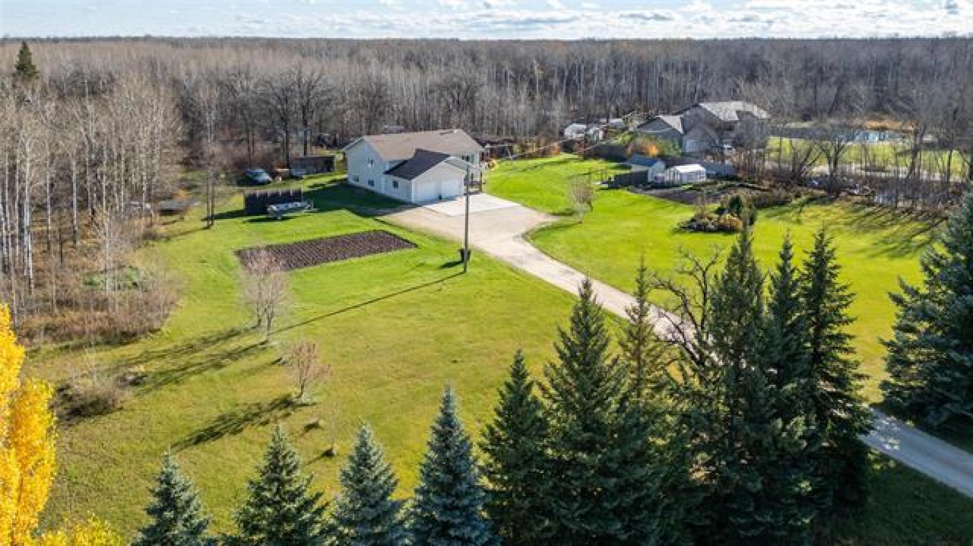 Stunning Country Retreat! Welcome to this beautiful 1770 SF family home nestled on a serene, tree-lined 3.08-acre property. As you arrive, a gorgeous row of mature evergreens offers privacy & sets the tone for peaceful country living. The double att insulated garage includes a concrete parking pad—perfect for guests. A wide, covered front deck invites you inside! Step up into the bright & spacious living room, flooded with natural light. The heart of the home is the stylish dream kitchen, featuring an abundance of cabinetry & counter space, large island w/9 drawers, cooktop stove & wall oven. The dining area is ideal for family gatherings, offering additional cabinetry, counter space & room for a second fridge/freezer. A garden door leads to the back deck—perfect for summer BBQs! This level also hosts a spacious primary BR, 2 more BRs & a modern 4pc bath. The lower level boasts a massive family room w/cozy wood fireplace, 2 large BRs (one with a 2-pc ensuite), & an additional 3pc bath. Outdoors, you’ll love the peaceful setting featuring several outbuildings, patio w/fire pit, large garden & an abundance of privacy surrounded by mature trees. Move right in & enjoy the best of country living!
