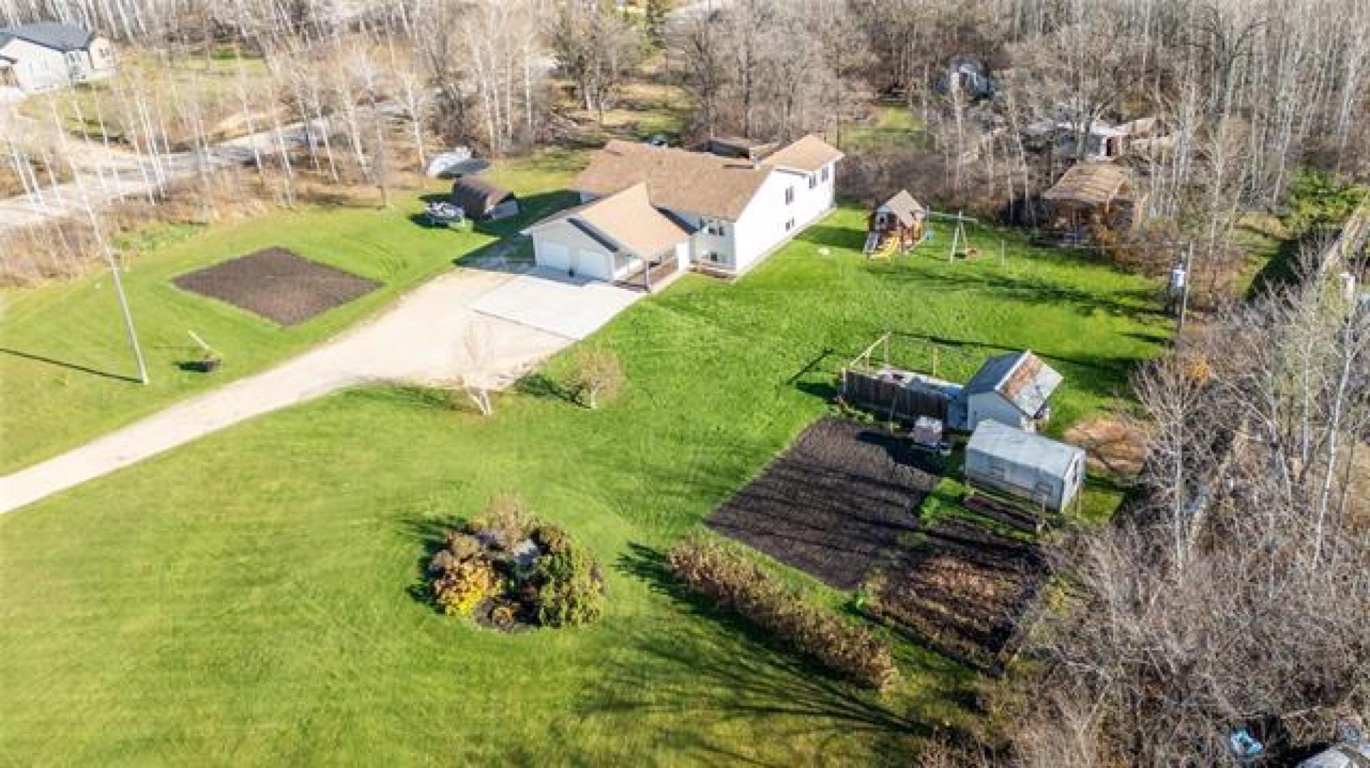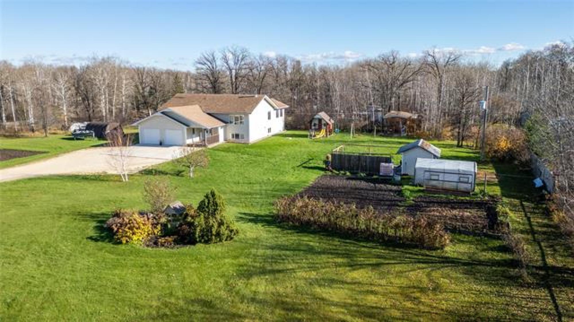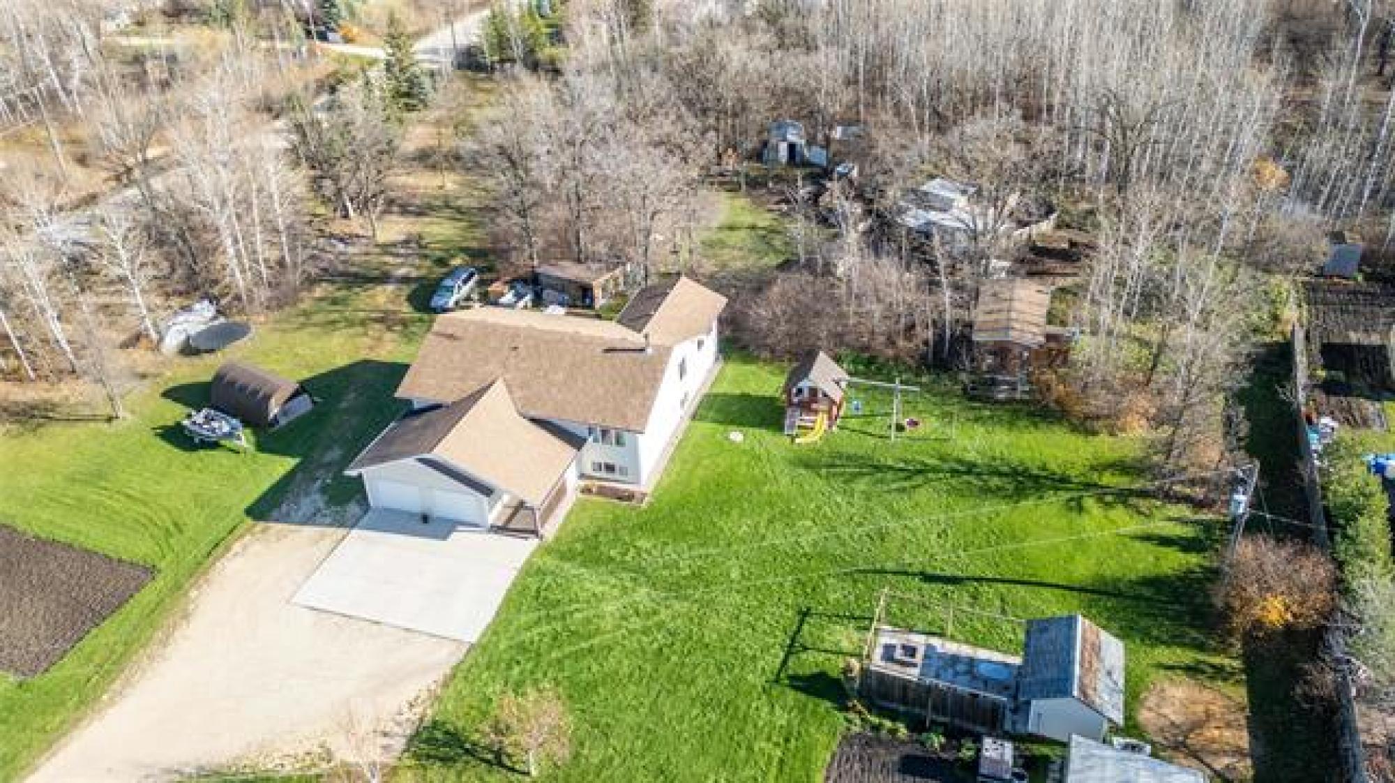 Stunning Country Retreat! Welcome to this beautiful 1770 SF family home nestled on a serene, tree-lined 3.08-acre property. As you arrive, a gorgeous row of mature evergreens offers privacy & sets the tone for peaceful country living. The double att insulated garage includes a concrete parking pad—perfect for guests. A wide, covered front deck invites you inside! Step up into the bright & spacious living room, flooded with natural light. The heart of the home is the stylish dream kitchen, featuring an abundance of cabinetry & counter space, large island w/9 drawers, cooktop stove & wall oven. The dining area is ideal for family gatherings, offering additional cabinetry, counter space & room for a second fridge/freezer. A garden door leads to the back deck—perfect for summer BBQs! This level also hosts a spacious primary BR, 2 more BRs & a modern 4pc bath. The lower level boasts a massive family room w/cozy wood fireplace, 2 large BRs (one with a 2-pc ensuite), & an additional 3pc bath. Outdoors, you’ll love the peaceful setting featuring several outbuildings, patio w/fire pit, large garden & an abundance of privacy surrounded by mature trees. Move right in & enjoy the best of country living!