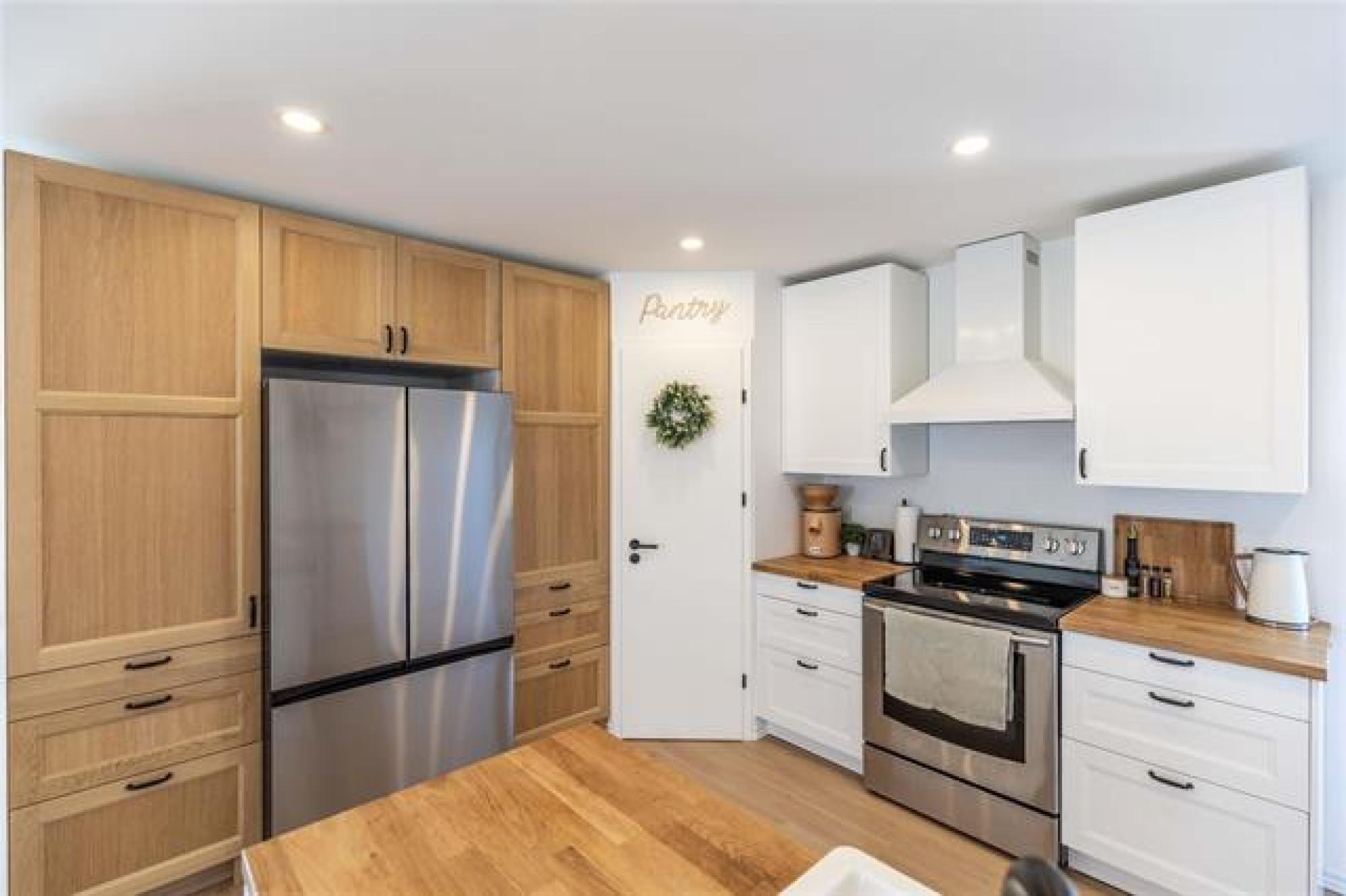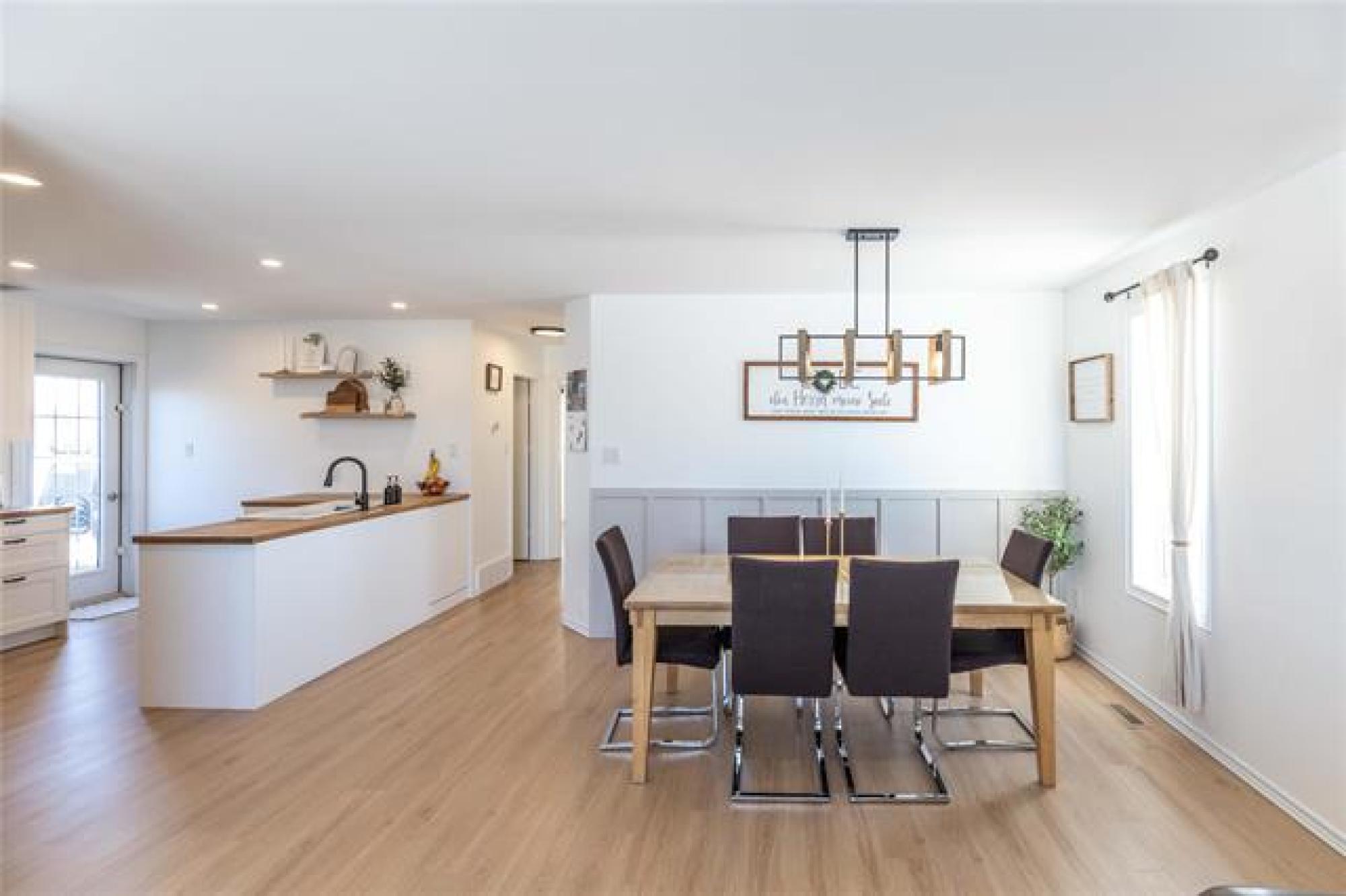 Private 2 acre country retreat—beautifully upgraded and highlighted by an impressive 40x30' workshop! This beautifully designed 5 bedroom home welcomes you with a spacious entry and custom railing, flowing into a bright open-concept layout where the living and dining areas are filled with natural light. The chef-inspired kitchen is a true standout, featuring white and white oak cabinetry, butcher-block countertops, a large island, corner pantry, custom hood fan, and stainless steel appliances. The main level offers a spacious primary bedroom, an additional bedroom, and a full bathroom. Downstairs, the fully finished lower level is bright and functional with 3 more bedrooms and another full bathroom—ideal for family or guests. Step outside to a 16x16' deck overlooking your private 2 acre yard, complete with greenspace, shed, and play structure—your own outdoor oasis. And the showstopper: a 40x30' shop with 16’ ceilings, two overhead doors, a mezzanine with office space, and in-floor heat powered by a natural gas boiler—perfect for hobbies, business, or extra storage. The perfect blend of country living, space, and functionality—call today to book your private tour!