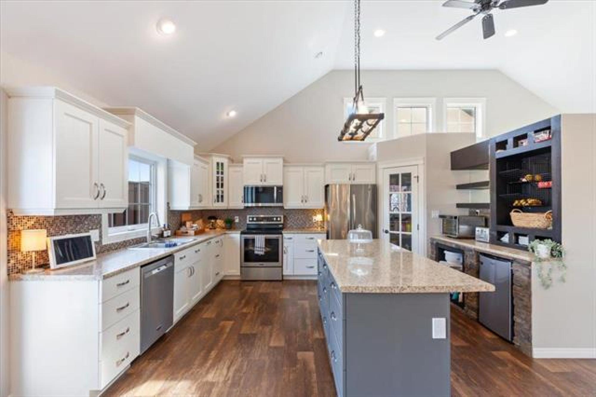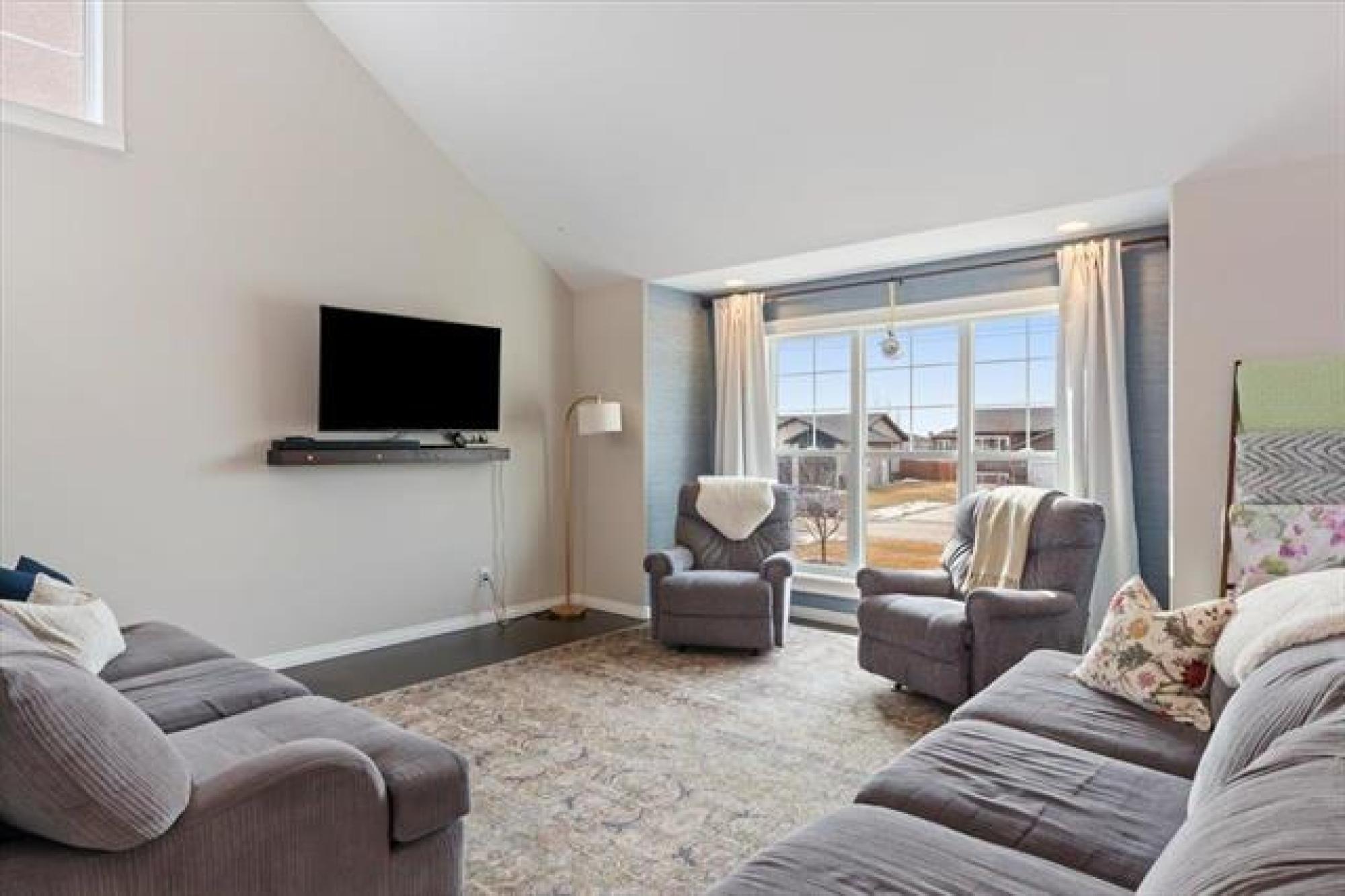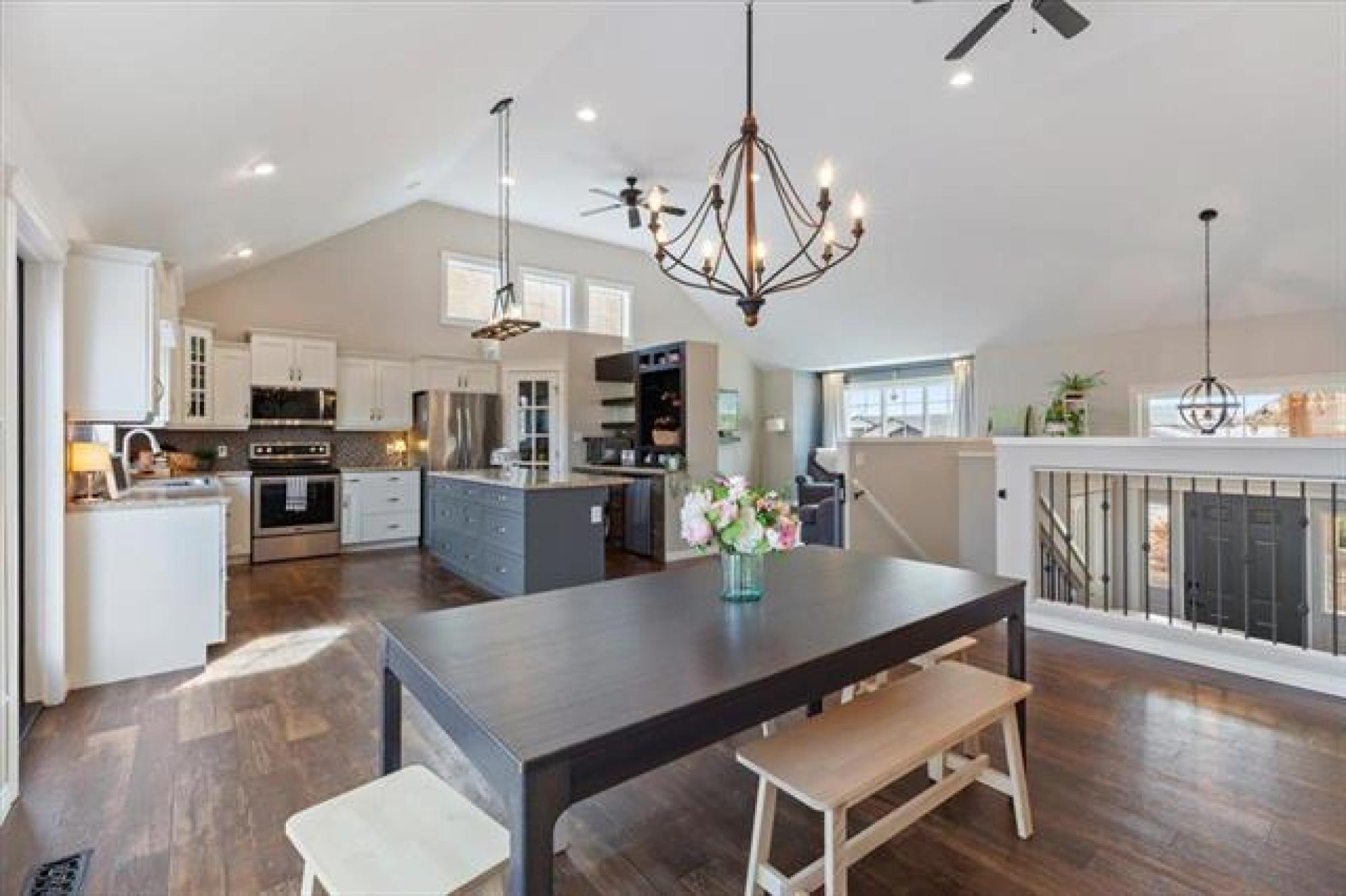 OPEN HOUSE, SATURDAY, APRIL 11, 1 - 3PM. Welcome home to this lovely 5 bedroom, 3 bedroom family home! The main living space is open concept with vaulted ceilings! There is a large creme kitchen with center island. Kitchen appliances included. Have a look at all the windows facing the back yard! The dining room is spacious and great for large families or for entertaining guests. The main floor has 2 bedrooms. The primary bedroom has a walk in closet and 4 piece ensuite, including walk in shower! There is also a finished loft above the garage- great hangout space for teens, music studio..?? Moving downstairs, there are 3 additional bedrooms, a 3 piece bath, rec room, and laundry room. Plenty of storage space. The attached garage is oversized and has built in shelving. The back yard is fenced, and has a deck with pergola. Well landscaped and includes a fire pit. Hurry, have a look today!