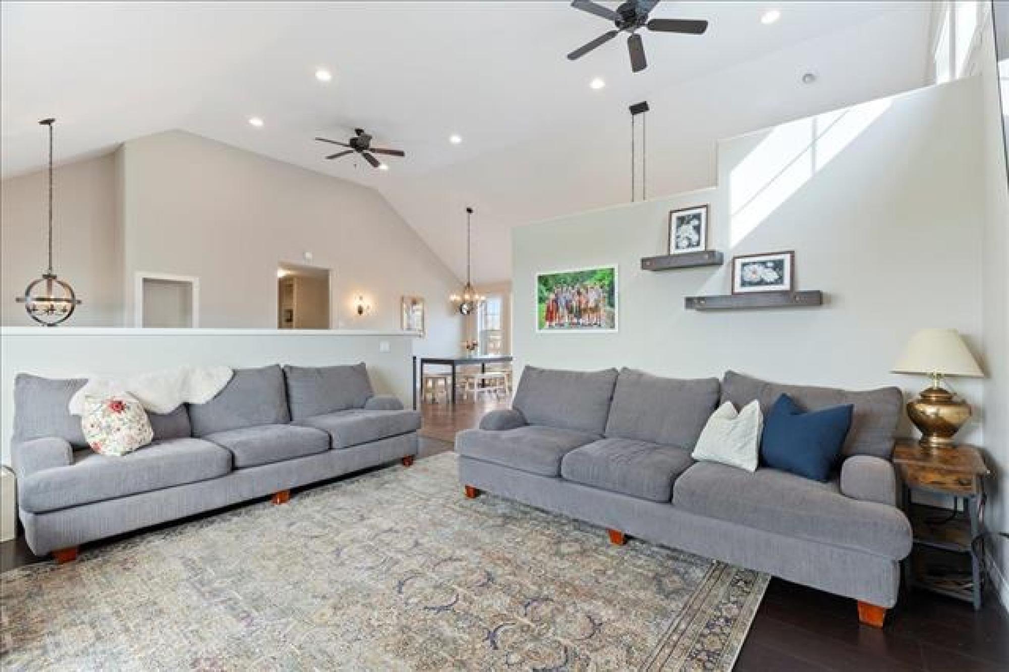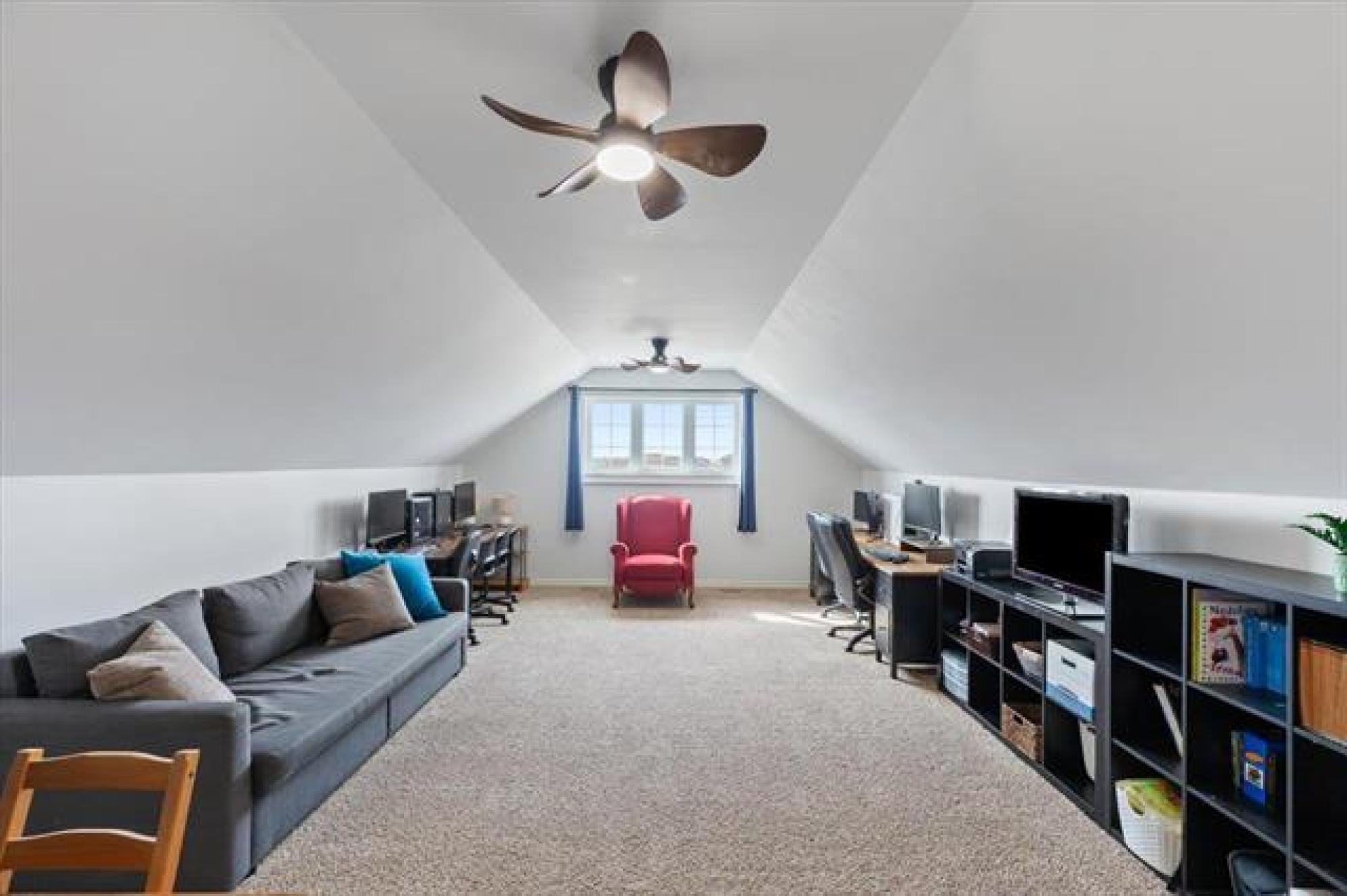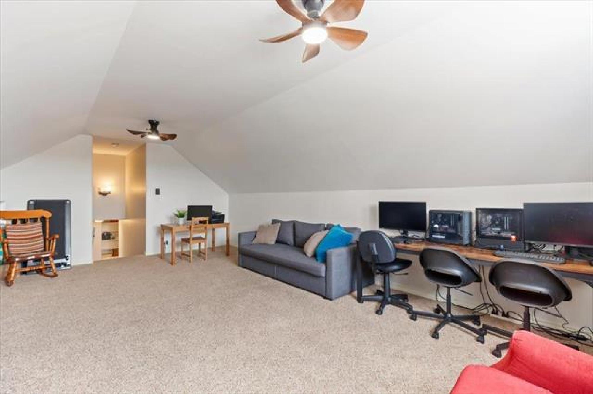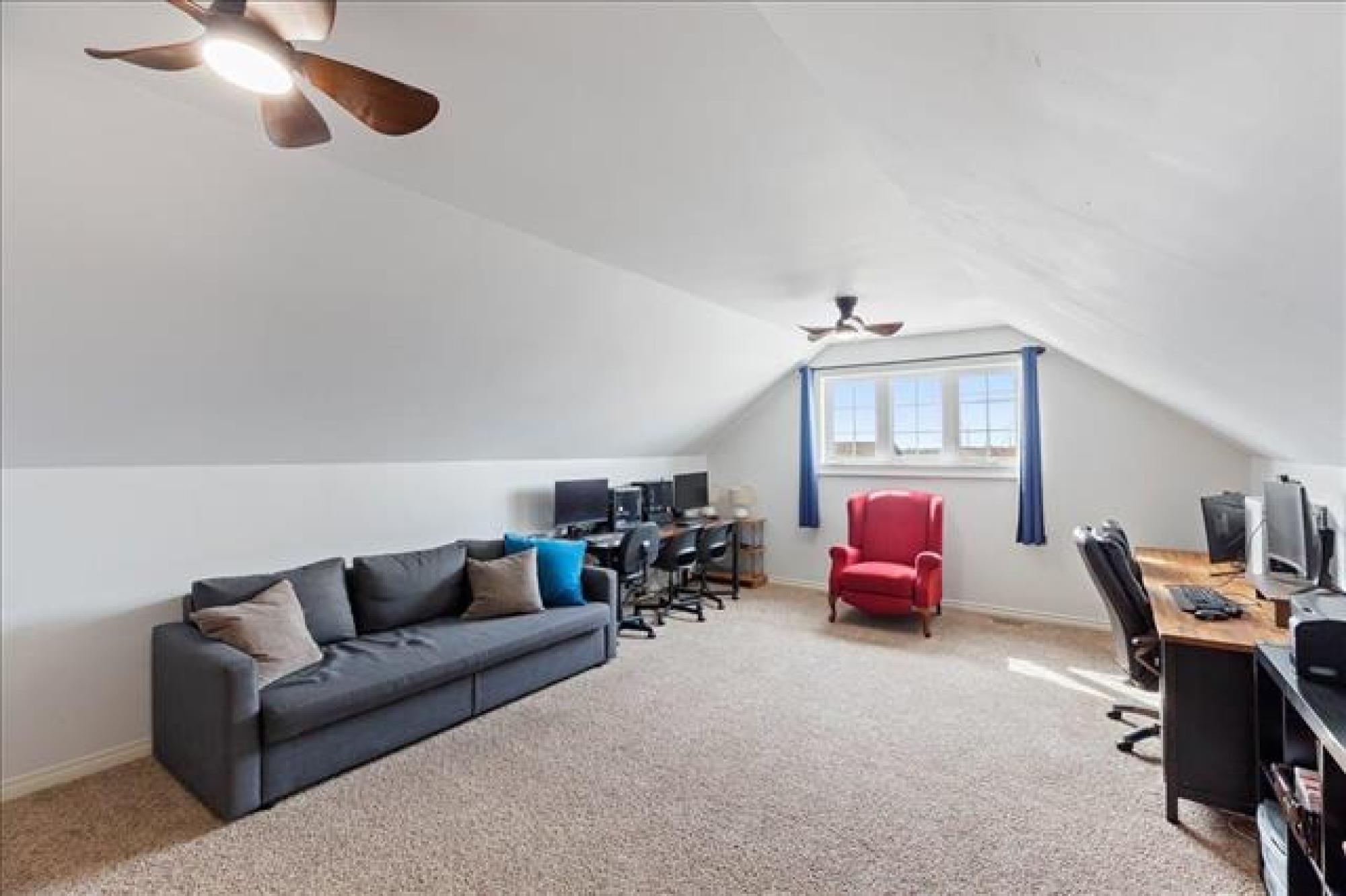 OPEN HOUSE, SATURDAY, APRIL 11, 1 - 3PM. Welcome home to this lovely 5 bedroom, 3 bedroom family home! The main living space is open concept with vaulted ceilings! There is a large creme kitchen with center island. Kitchen appliances included. Have a look at all the windows facing the back yard! The dining room is spacious and great for large families or for entertaining guests. The main floor has 2 bedrooms. The primary bedroom has a walk in closet and 4 piece ensuite, including walk in shower! There is also a finished loft above the garage- great hangout space for teens, music studio..?? Moving downstairs, there are 3 additional bedrooms, a 3 piece bath, rec room, and laundry room. Plenty of storage space. The attached garage is oversized and has built in shelving. The back yard is fenced, and has a deck with pergola. Well landscaped and includes a fire pit. Hurry, have a look today!