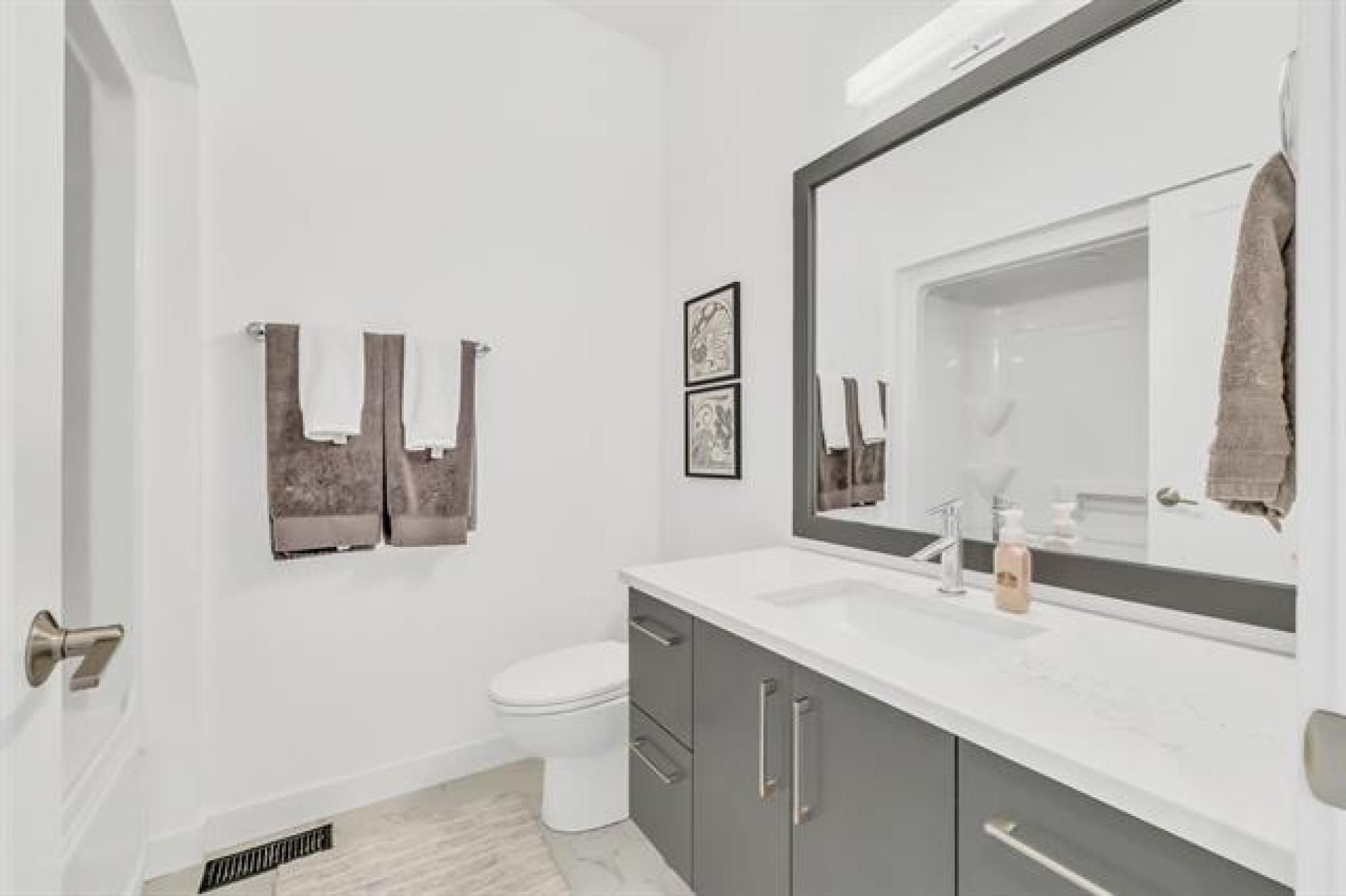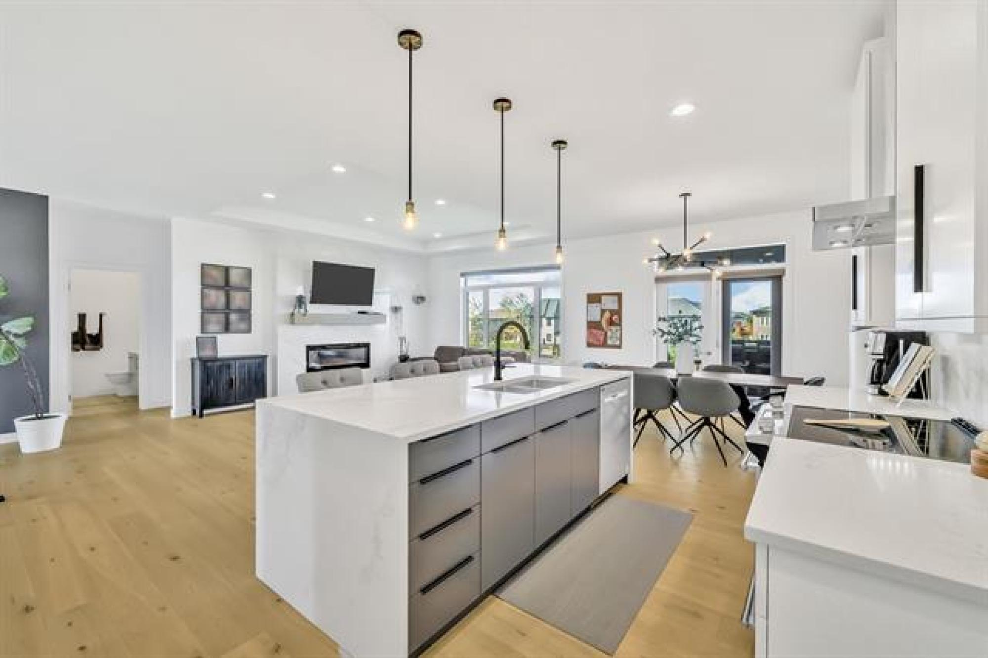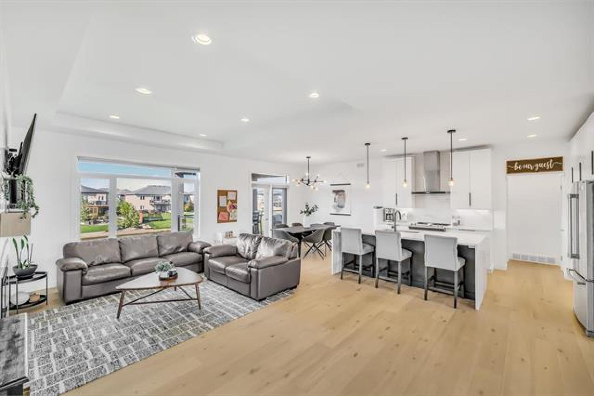 SS Now, OTP Oct 7. Seldomly is the exterior as nice as the interior, and vice versa. At 12 Tadman, you get the total package. Visually stunning from the moment you walk up, large windows, upgraded construction materials, stamped concrete, beautiful landscaping... And then you open that front door, bright, open, airy, upgraded, covered deck, lake. Yes in that order is what you instantly see when walking into this gorgeous bungalow with walk-out basement on the lake in Oakbank's most sought after development. Nearly 3200 sqft of total finished space, what more could you want ? Upstairs offering 3 bedrooms and 2 full baths, both with heated floors. A large open concept living to dining to entertaining space. Engineered hardwood floors, quartz countertop's with waterfall island, sleek white cabinetry and ss appliances. Through to the primary, fully equipped with his/her vanity, walk-in closet, and large shower. Topped off w' your own door to the deck overlooking the lake. Down the stairs, to your finished walk-out basement, tons of natural light, custom entertainment wall, 2 more bedrooms and another full bath. Walking out to your stamped concrete covered patio. Say no more, book appt now.