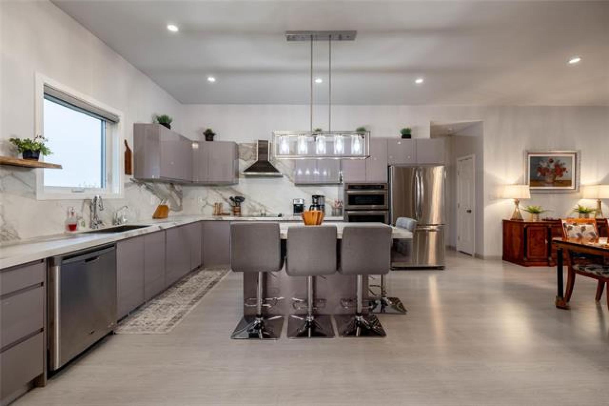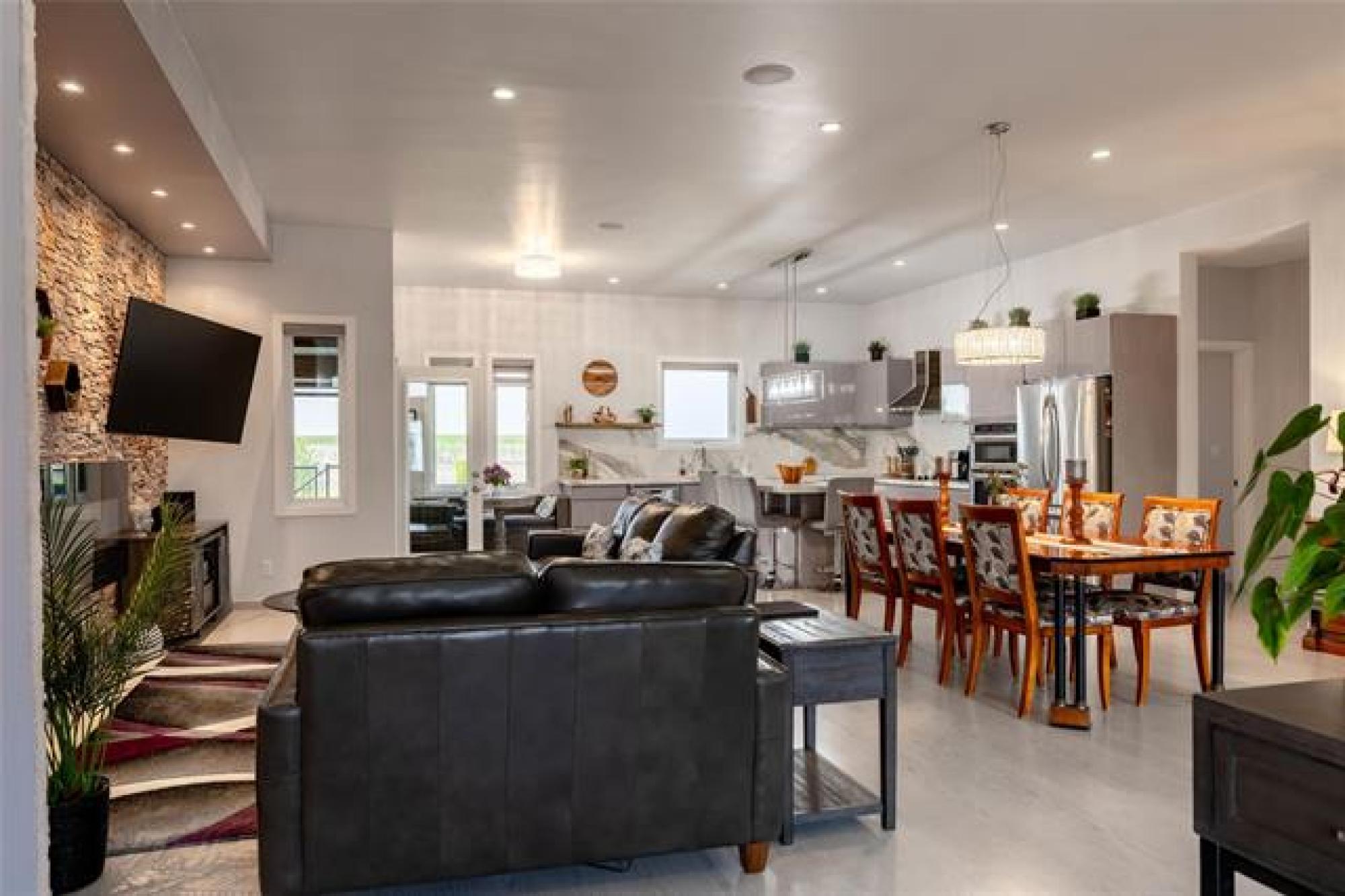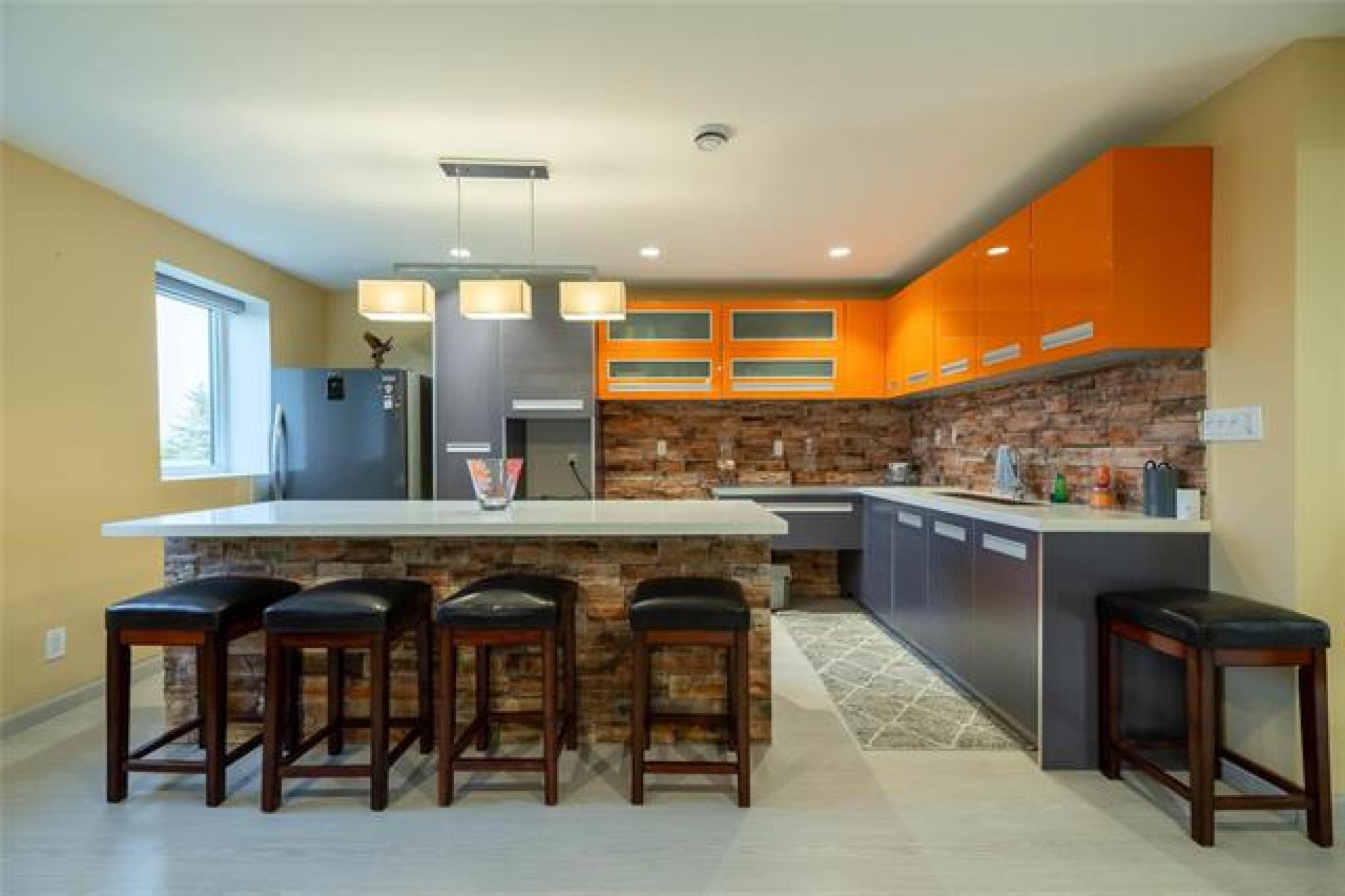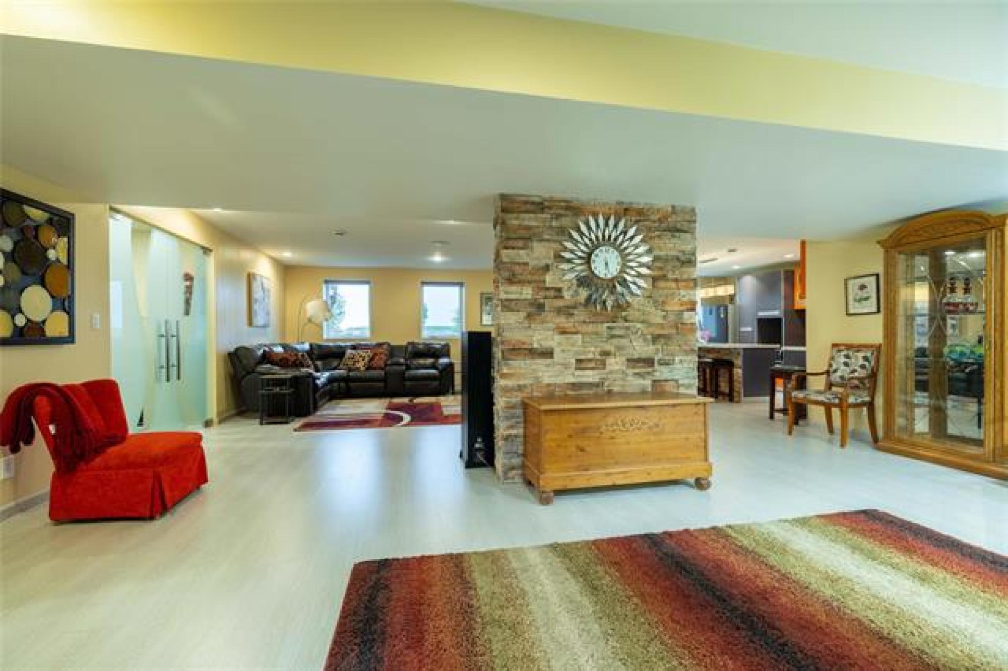 Welcome to this stunning 5-bedroom, 3.5-bathroom home set on a picturesque 2-acre estate in the highly sought-after community of East St. Paul. Offering 1920 sq. ft. of thoughtfully designed living space, this home seamlessly blends comfort and style. The open-concept main floor features a modern eat-in kitchen, a cozy breakfast nook, and a spacious living room with a glass-faced fireplace and an eye-catching brick feature wall. Off the kitchen, the bright sunroom with wall-to-wall windows opens onto a scenic balcony—perfect for relaxing or entertaining with views of the expansive backyard.The large primary bedroom offers a walkthrough closet and an updated 4-piece ensuite. Two additional bedrooms, a main floor laundry room, plus both 2-piece and 4-piece bathrooms complete the main level. The fully finished lower level includes a generous recreation room with a wet bar and natural gas fireplace, two more bedrooms (or ideal home office spaces), and a 3-piece bath with a steam shower. Outside, the Barkman Stone driveway and the triple attached garage offers ample space for vehicles, tools, and toys. Brand new front door and garage doors! (September 2025, first photo). Book your private showing today!