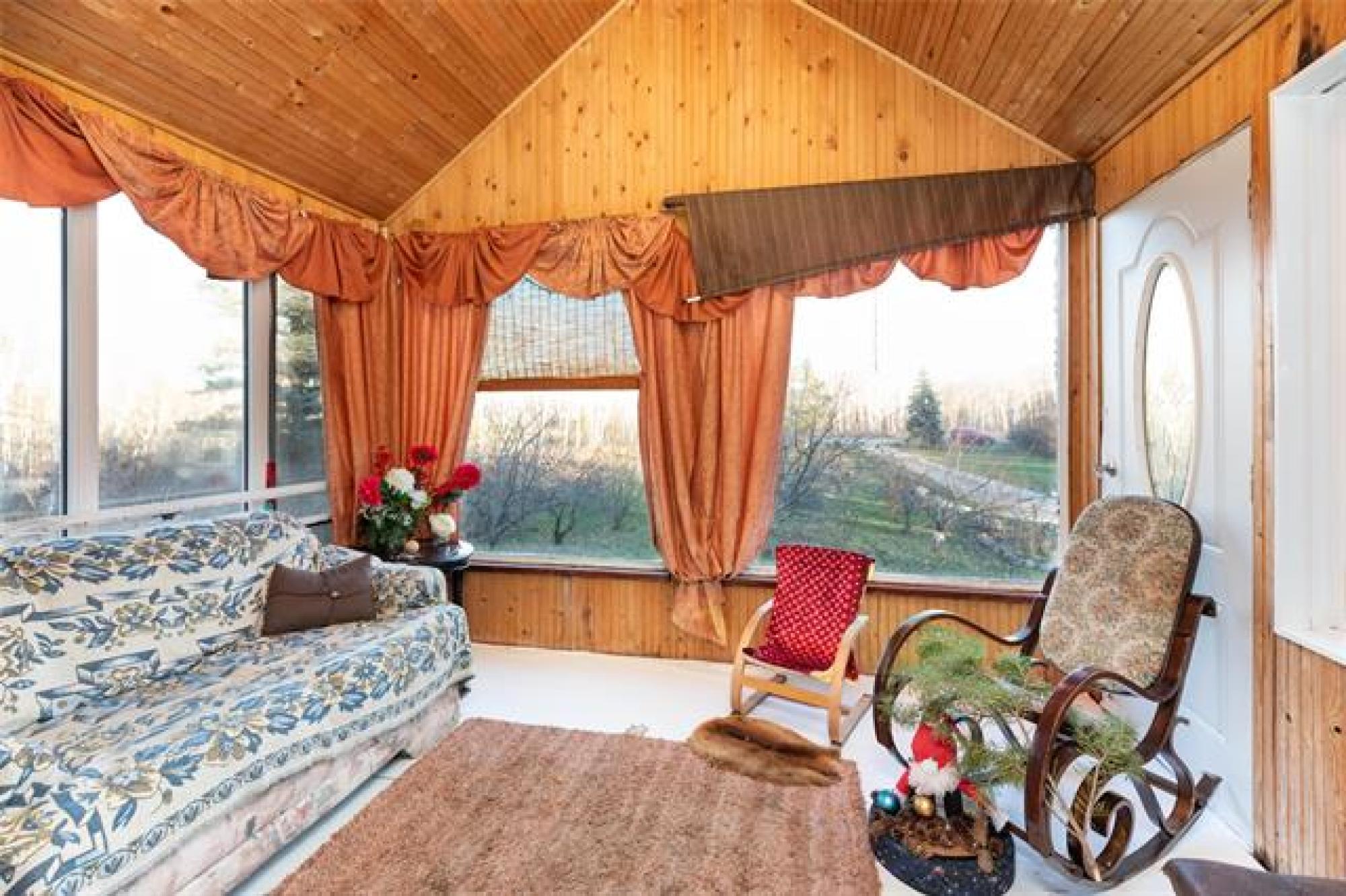 Enjoy the country tranquility this nicely treed 10 acres property has to offer! This 1401 SF home features 5 bedrooms, 2.5 baths, 3 season sunroom & double attached garage. The spacious breezeway welcome you in, a great place to store all your outerwear! The main living area feels spacious thanks to the vaulted ceiling! The kitchen features ss appliances & a moveable island. The dining area is large enough to accommodate gatherings and has patio doors opening to the back deck. The spacious living room opens to the cozy 3 season sunroom finished in tongue & groove pine - a great place to relax with a book or a beverage! Down the hall you will find the primary BR with 3pc ensuite, 2 more BRs & a full bath. The lower level is complete and features a large family room, 2 more BRs, a half bath, sauna area & a wood stove! You will appreciate the spacious double attached garage in the winter & it offers ample space to putter away. A large back deck affords peaceful country views. One of the 2 sheds is being used as chicken coop. There is also a large garden area for anyone who loves to have their own fresh veggies! Book your showing today!