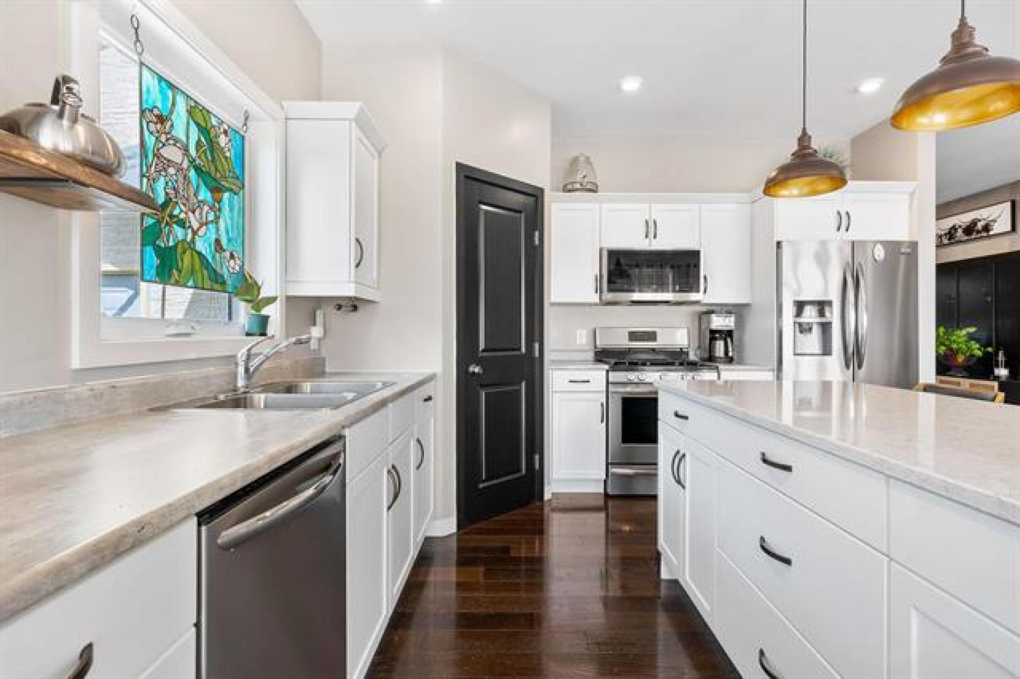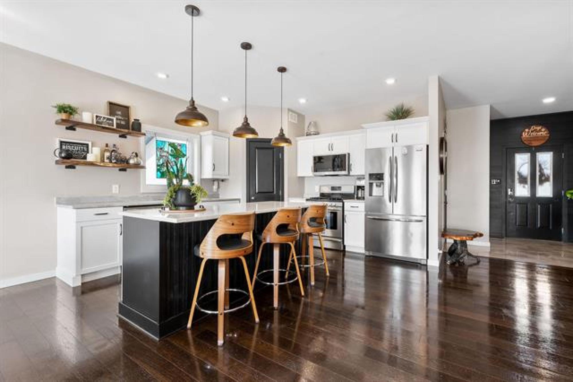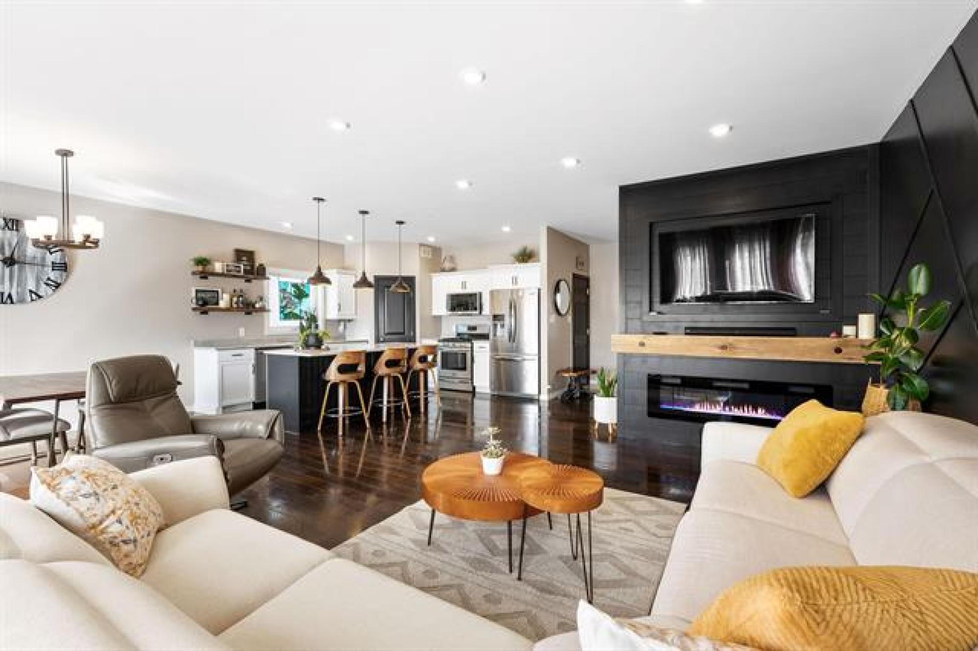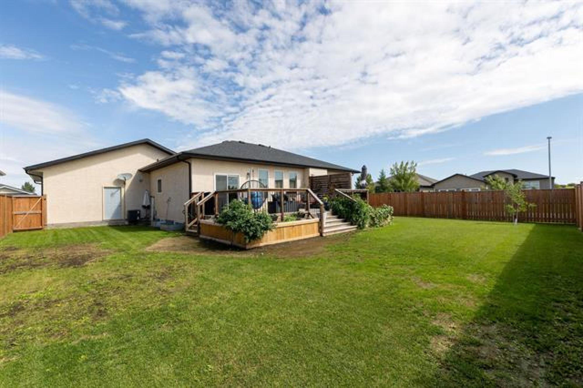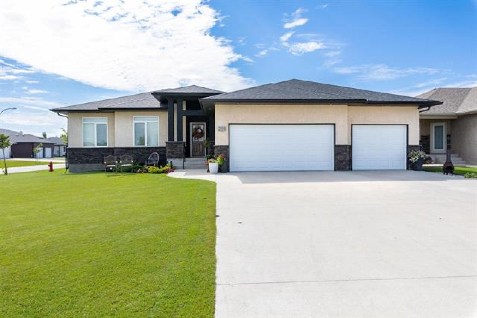 This house is immaculate, loved and impeccably styled. Walking in you are greeted with soaring 9 foot ceilings throughout. Living room has custom accent walls with a solid wood mantle and electric fireplace. Large crisp kitchen with gas stove and beautiful quartz island attached to the open concept dining room finish off the main level entertaining space. Down the hall you pass by your main floor front load laundry to your massive primary bedroom with huge walk in closet and 4 piece ensuite. Another 2 good size bedrooms and 4 piece bathroom finish off the main level. The downstairs rec room is so cozy with a another solid wood mantle and built in electric fireplace and leads to 2 more large bedrooms. A bathroom has been framed and roughed in and just needs your finishing touches. Outside you have a gorgeous fully fenced backyard equipped with a massive deck and garden boxes. Last but not least is a humongous 3 car garage for all your toys. Don't miss your chance to view this spectacular property in one of Steinbach's most sought after neighborhoods.