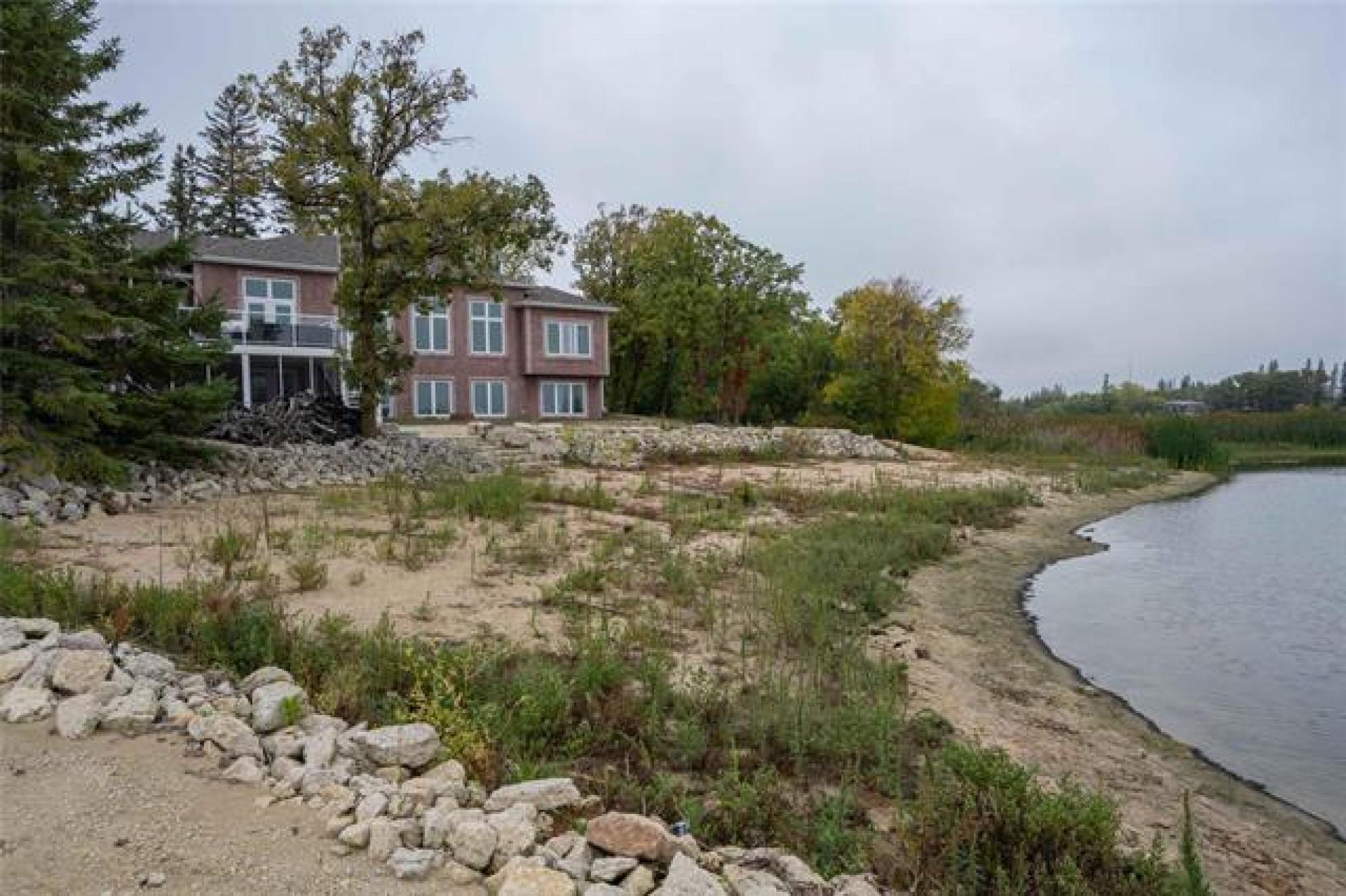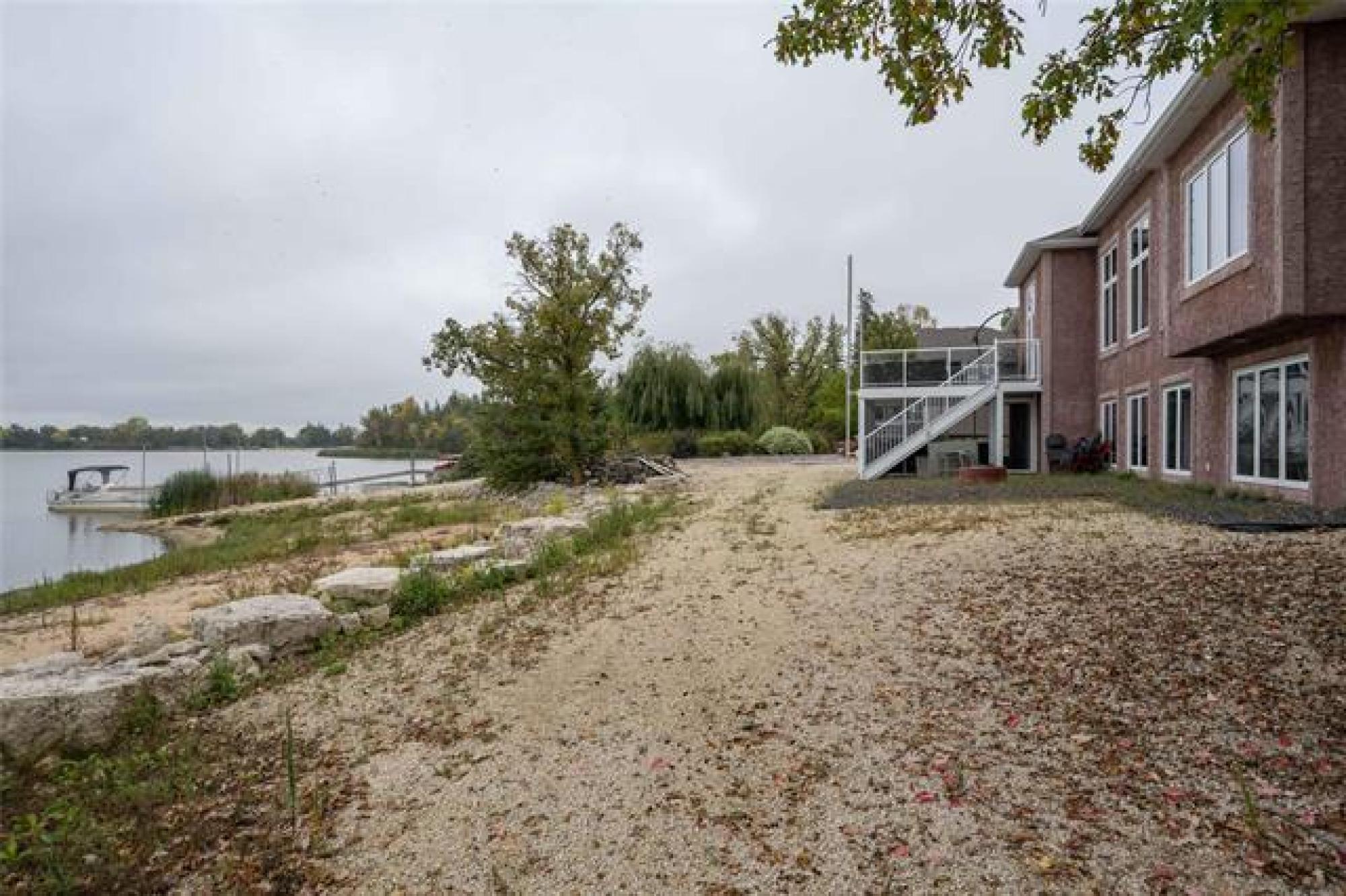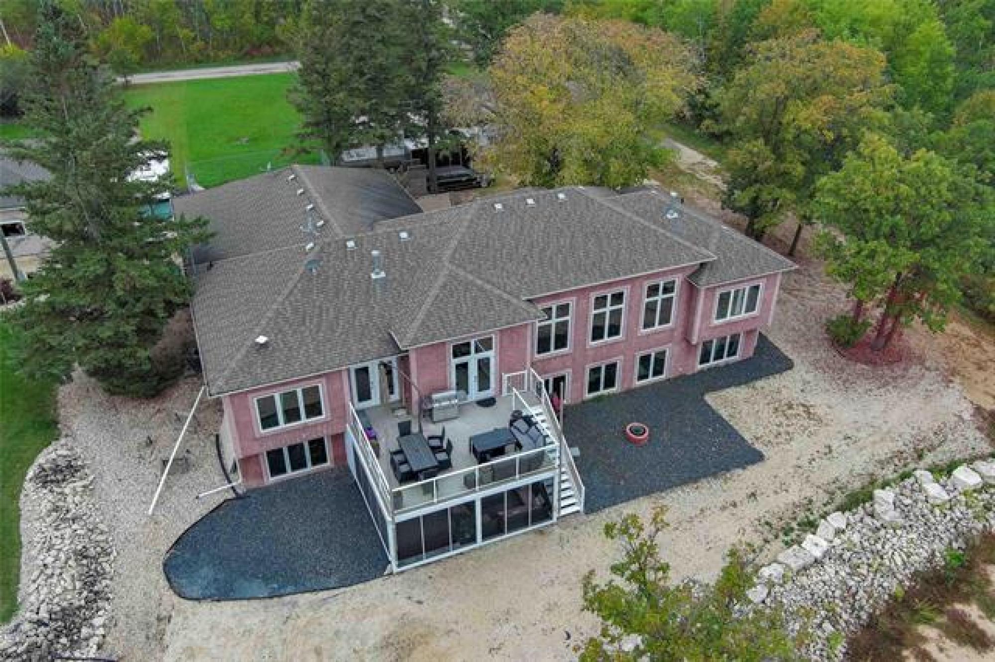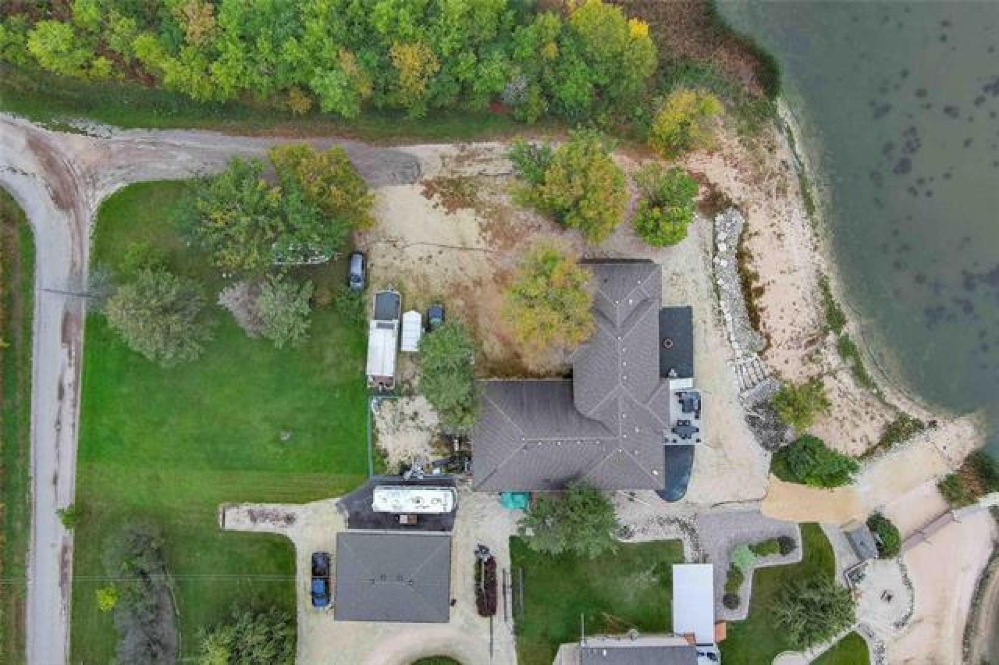 Rare opportunity on your own private sandy beach! Nearly 5000 sqft of custom-built luxury designed by the original owner! The main level offers a spacious 3-bedroom layout, while the fully finished walk-out basement provides a 2-bedroom suite—perfect for extended family or guests. The kitchen is a chef’s dream, complete with granite counters, walk-in pantry, a dry bar, and direct access to a large Duradek w/ glass railings and a gas BBQ hookup. The primary suite feels like a private spa retreat with its own deck, gas fireplace, walk-in closet, and ensuite boasting an air tub, dual sinks, tiled shower, private water closet, and an open-concept layout w/ the option to close it off. The lower level impresses with a 20'x63’ recreation room, kitchenette/bar, in-floor heating, lake views, home theater, full bath w/ tub/shower, 2 bedrooms, and abundant storage. Enjoy year-round relaxation with a screened sunroom, stone patio, oversized hot tub, and fire pit. The yard also features a fenced dog run with heated doghouse, and mature trees. For hobbyists or collectors, the heated 38’x38’ attached garage/workshop is a dream fitting up to 7 vehicles, with two 9' overhead doors that easily fit trucks and trailers.