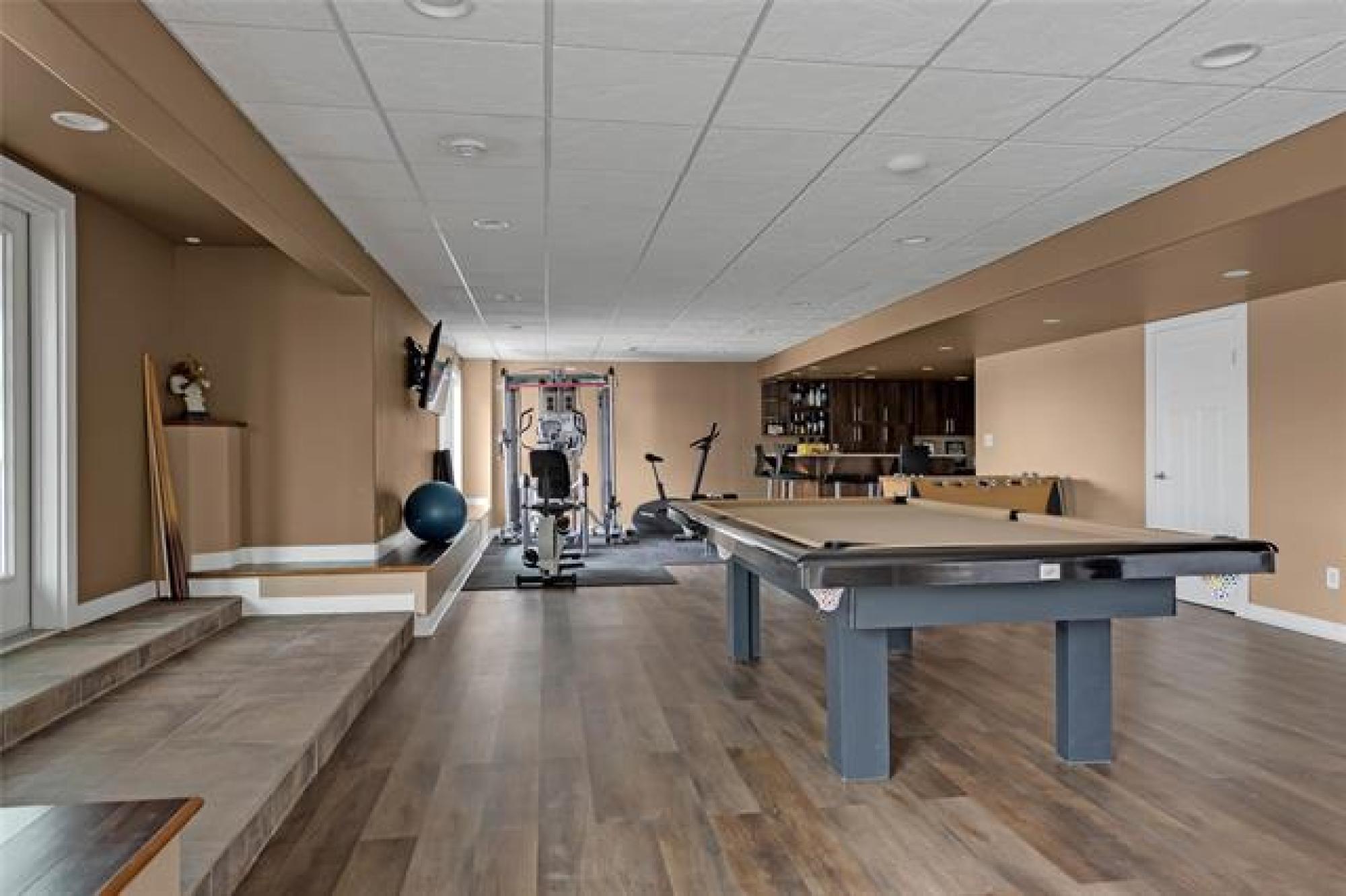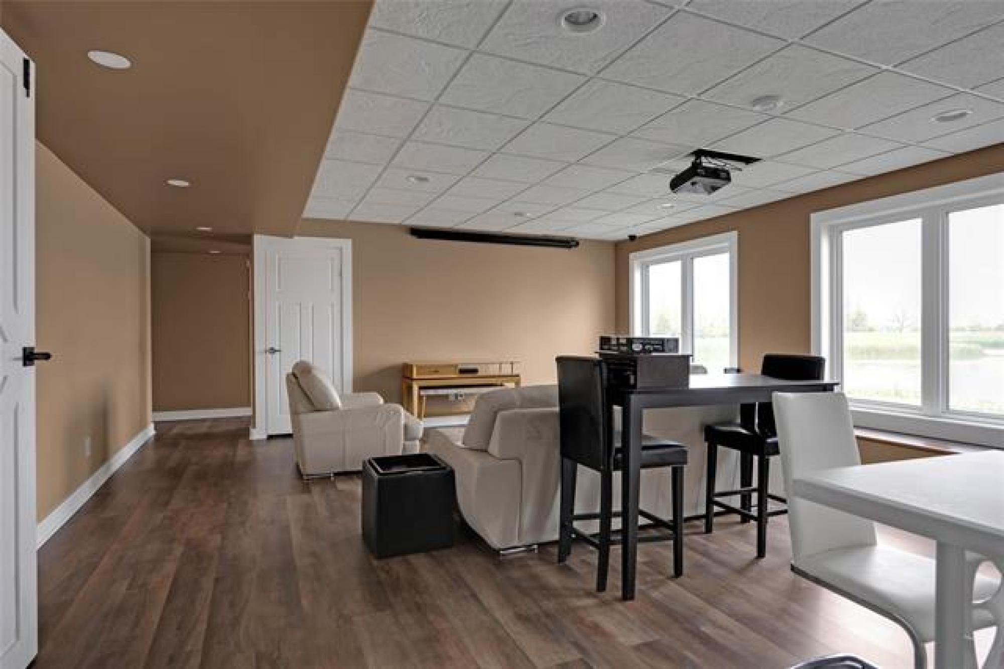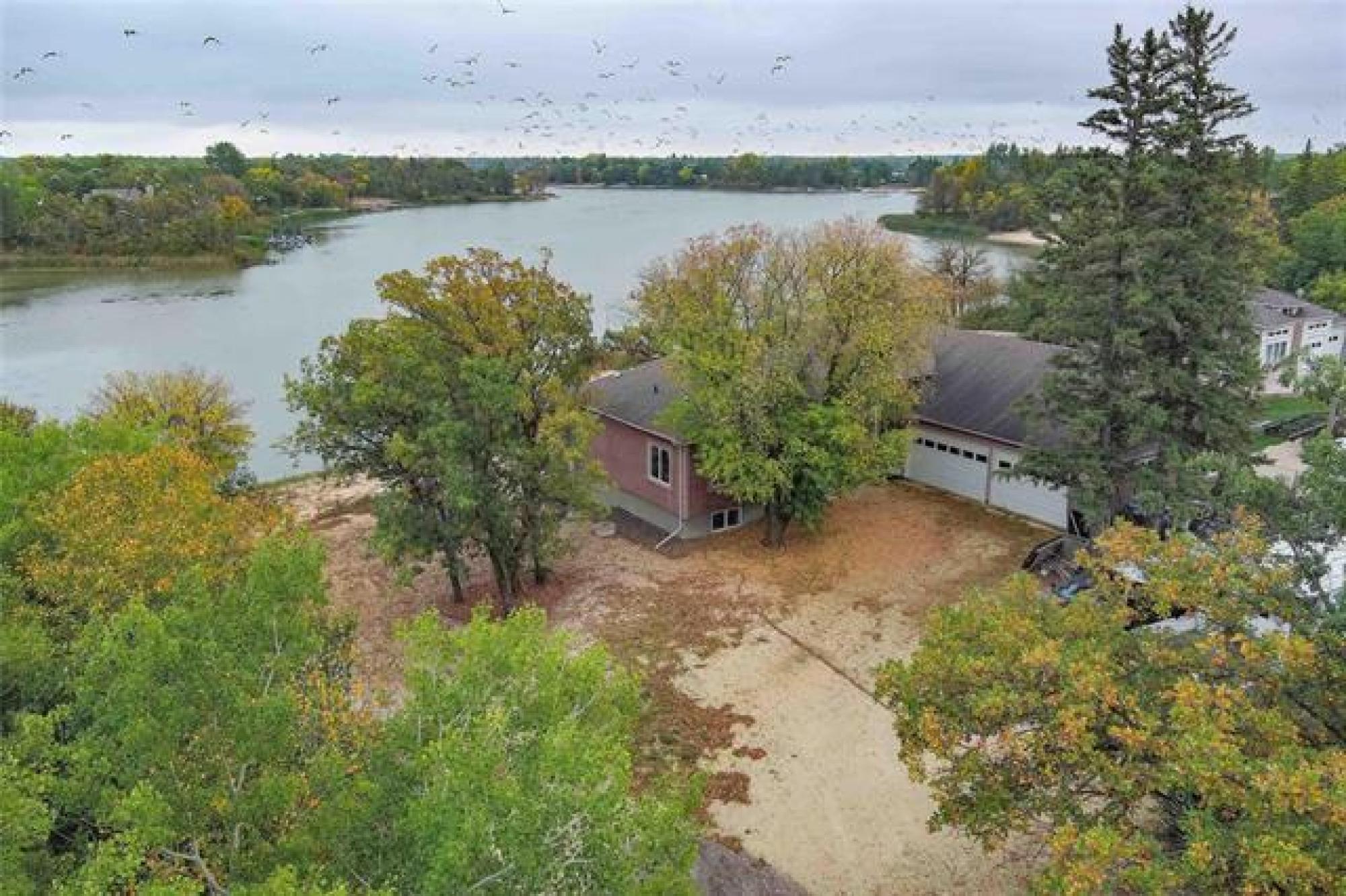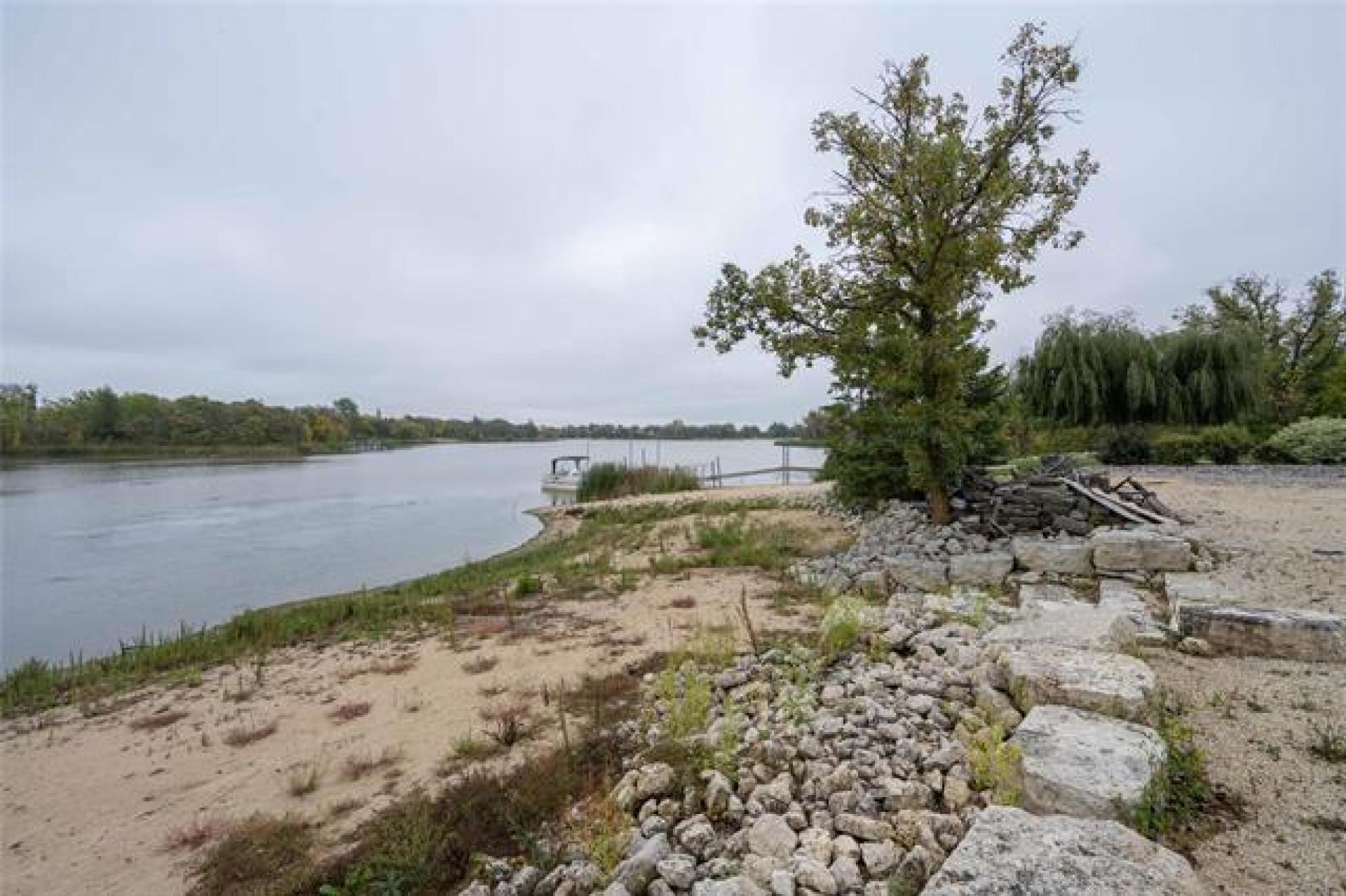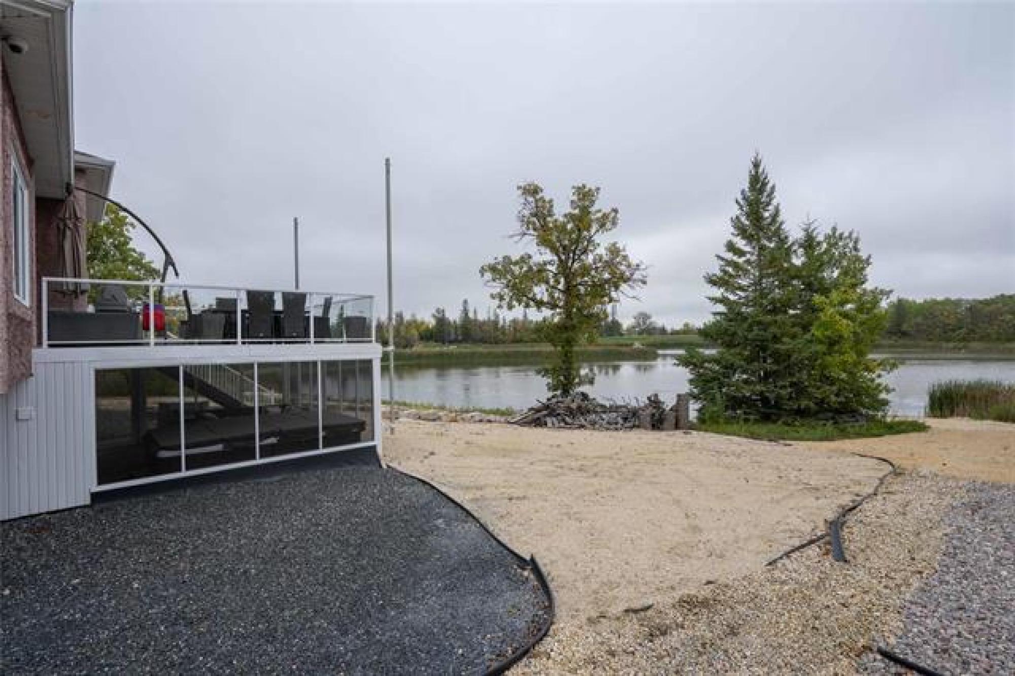 Rare opportunity on your own private sandy beach! Nearly 5000 sqft of custom-built luxury designed by the original owner! The main level offers a spacious 3-bedroom layout, while the fully finished walk-out basement provides a 2-bedroom suite—perfect for extended family or guests. The kitchen is a chef’s dream, complete with granite counters, walk-in pantry, a dry bar, and direct access to a large Duradek w/ glass railings and a gas BBQ hookup. The primary suite feels like a private spa retreat with its own deck, gas fireplace, walk-in closet, and ensuite boasting an air tub, dual sinks, tiled shower, private water closet, and an open-concept layout w/ the option to close it off. The lower level impresses with a 20'x63’ recreation room, kitchenette/bar, in-floor heating, lake views, home theater, full bath w/ tub/shower, 2 bedrooms, and abundant storage. Enjoy year-round relaxation with a screened sunroom, stone patio, oversized hot tub, and fire pit. The yard also features a fenced dog run with heated doghouse, and mature trees. For hobbyists or collectors, the heated 38’x38’ attached garage/workshop is a dream fitting up to 7 vehicles, with two 9' overhead doors that easily fit trucks and trailers.