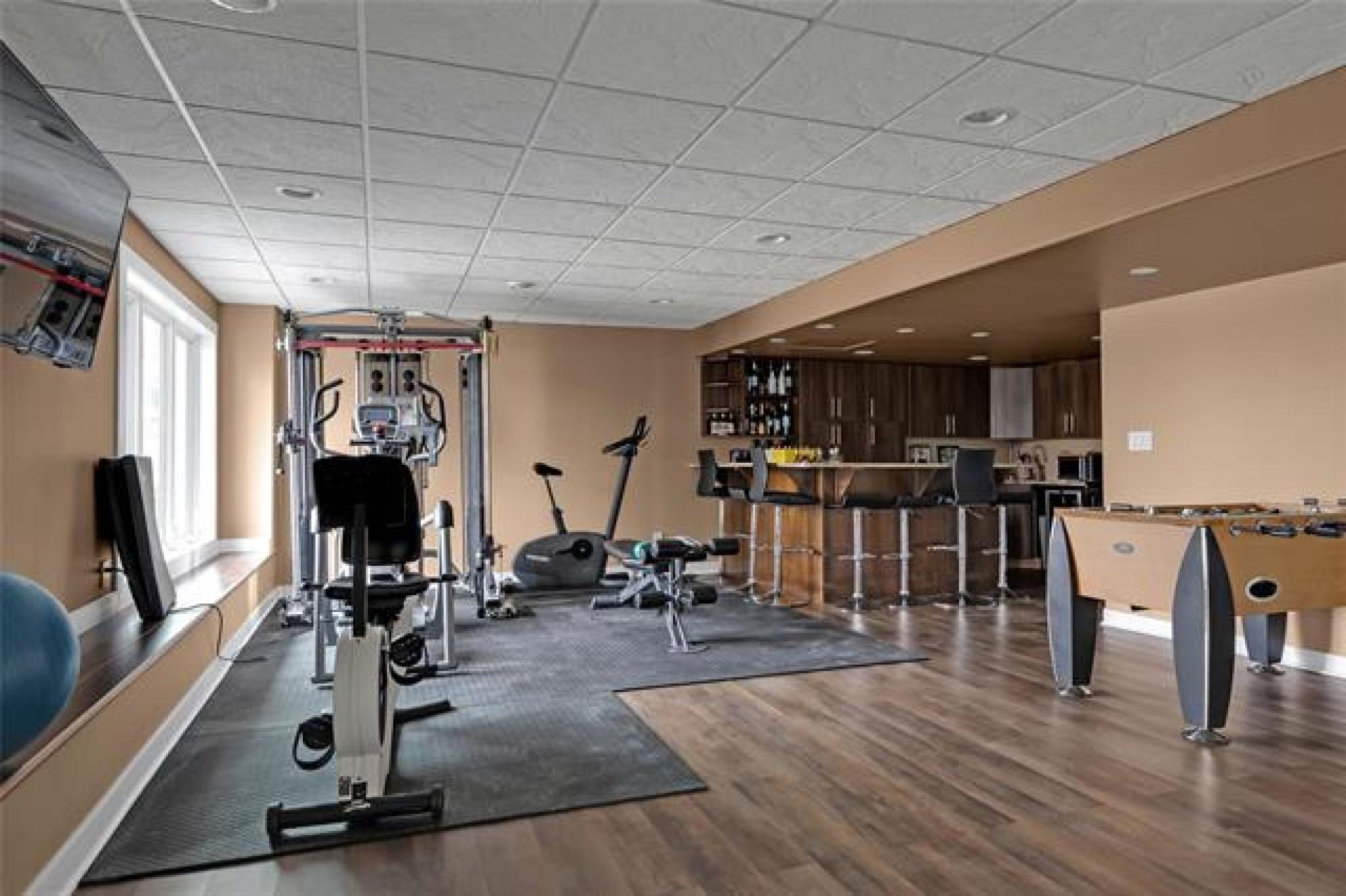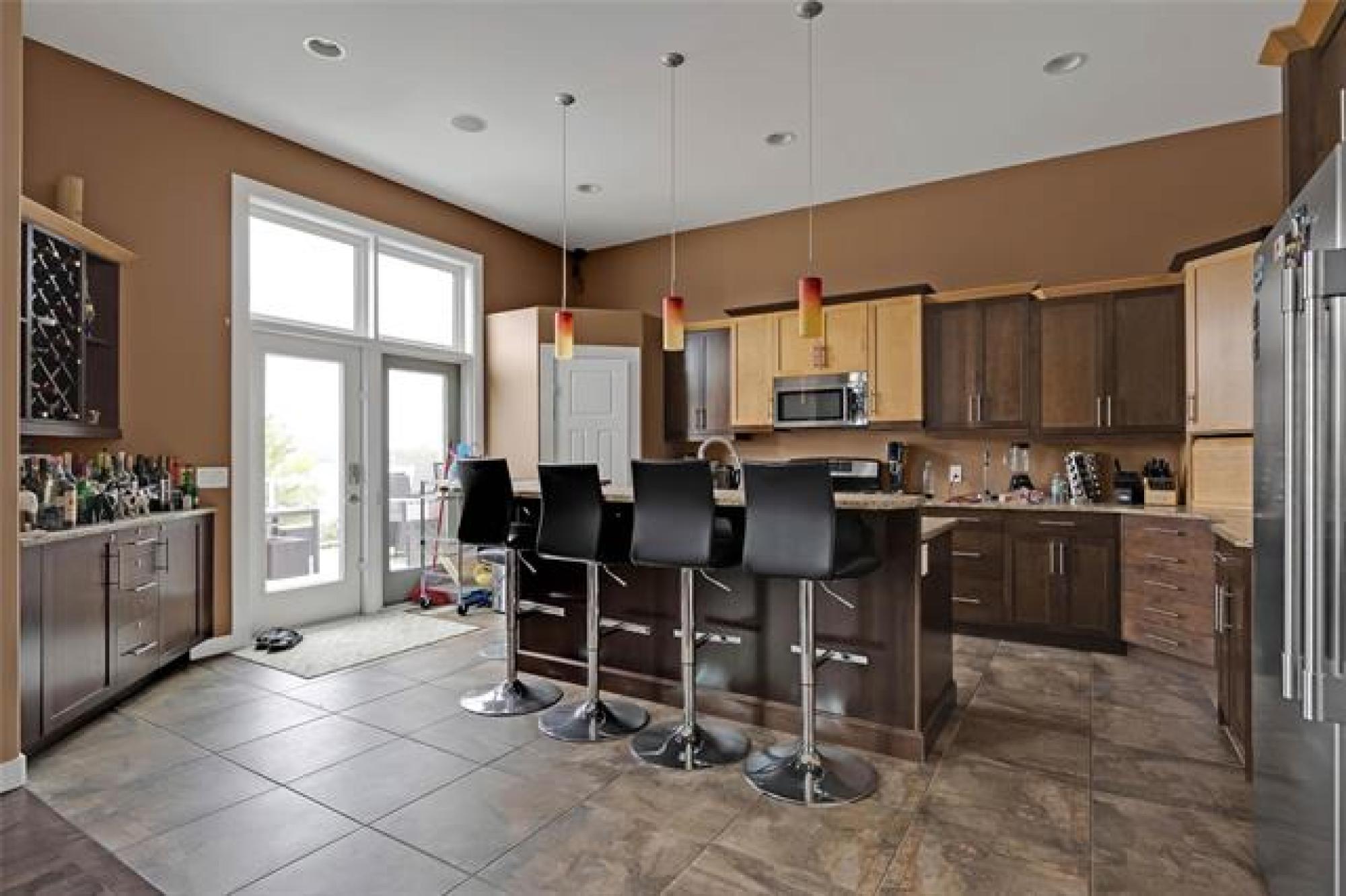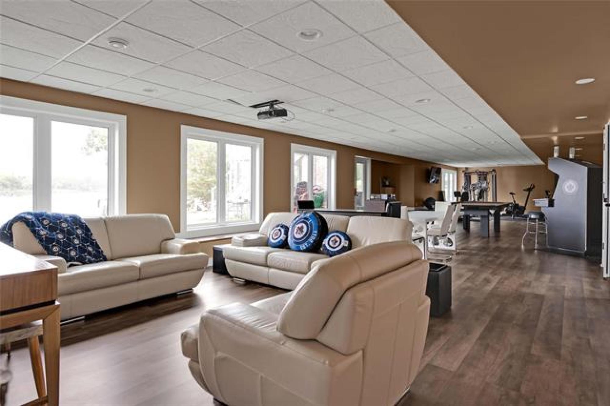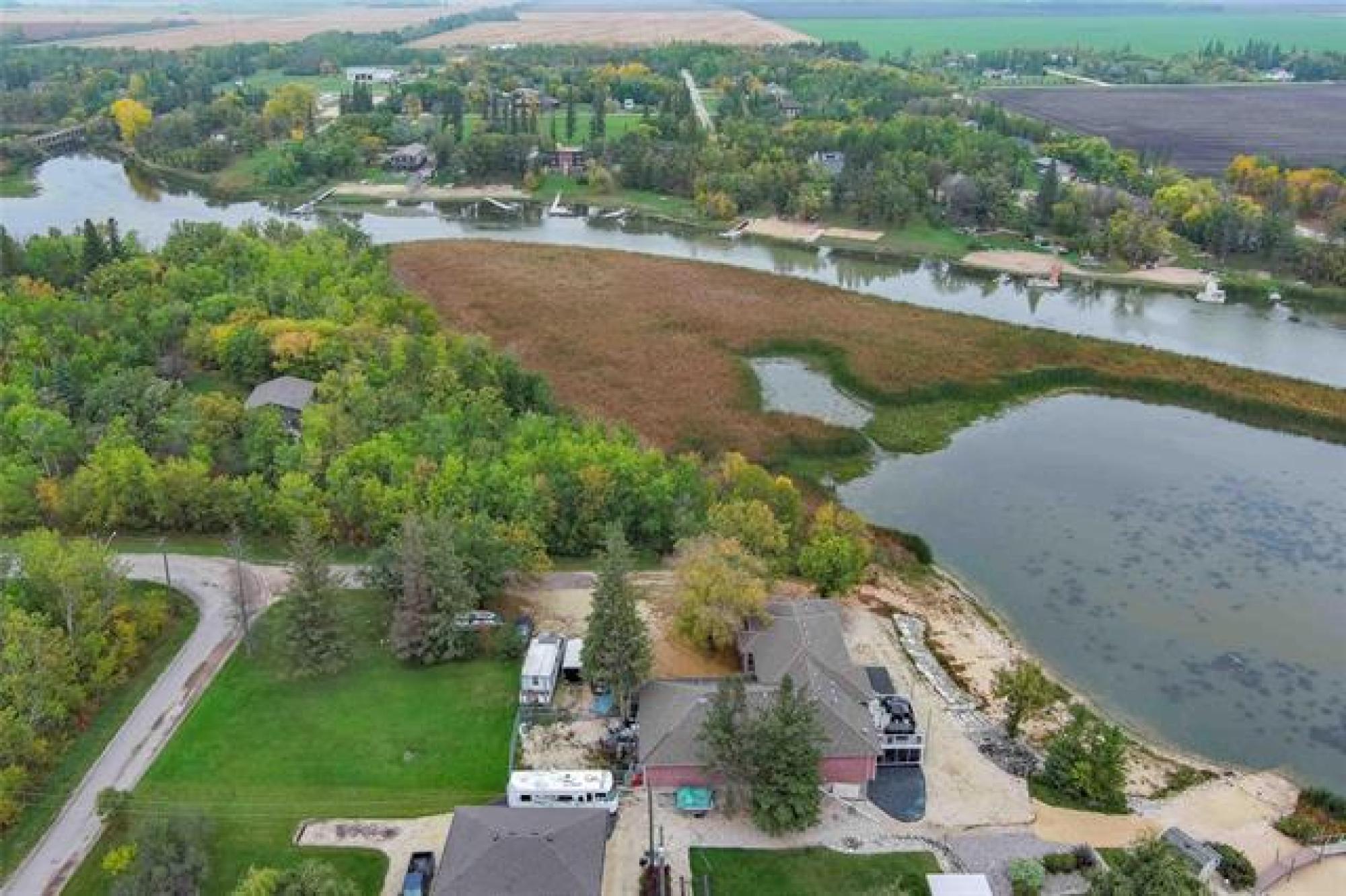Rare opportunity on your own private sandy beach! Nearly 5000 sqft of custom-built luxury designed by the original owner! The main level offers a spacious 3-bedroom layout, while the fully finished walk-out basement provides a 2-bedroom suite—perfect for extended family or guests. The kitchen is a chef’s dream, complete with granite counters, walk-in pantry, a dry bar, and direct access to a large Duradek w/ glass railings and a gas BBQ hookup. The primary suite feels like a private spa retreat with its own deck, gas fireplace, walk-in closet, and ensuite boasting an air tub, dual sinks, tiled shower, private water closet, and an open-concept layout w/ the option to close it off. The lower level impresses with a 20'x63’ recreation room, kitchenette/bar, in-floor heating, lake views, home theater, full bath w/ tub/shower, 2 bedrooms, and abundant storage. Enjoy year-round relaxation with a screened sunroom, stone patio, oversized hot tub, and fire pit. The yard also features a fenced dog run with heated doghouse, and mature trees. For hobbyists or collectors, the heated 38’x38’ attached garage/workshop is a dream fitting up to 7 vehicles, with two 9' overhead doors that easily fit trucks and trailers.