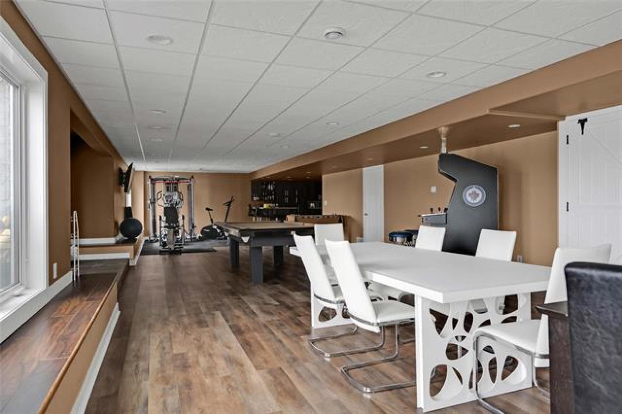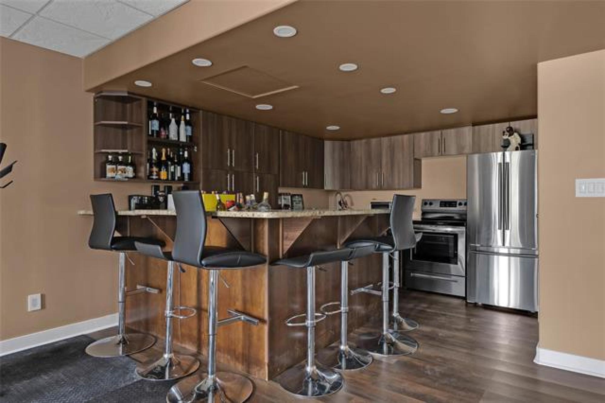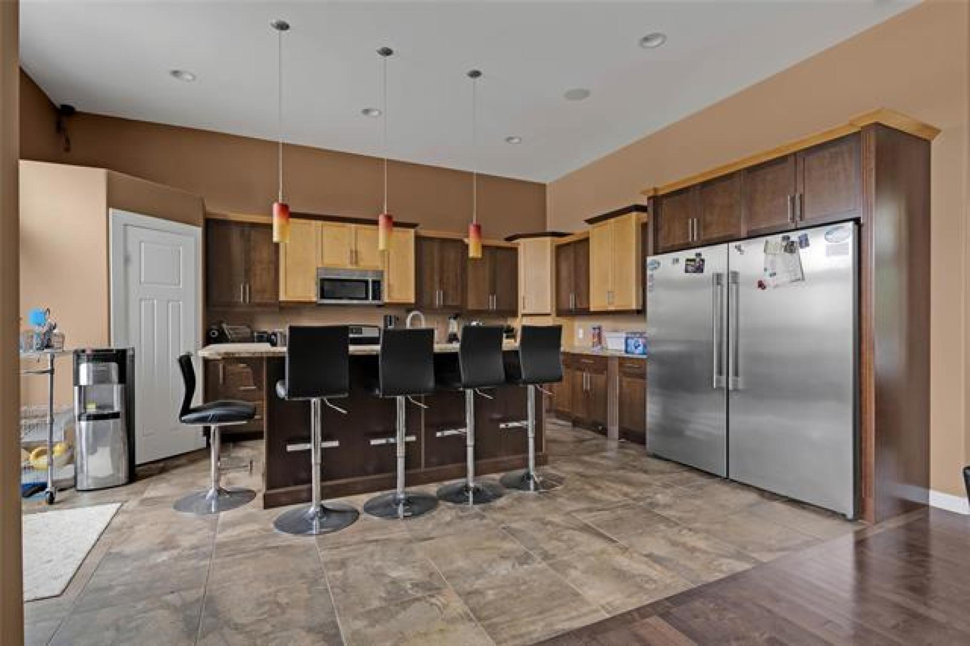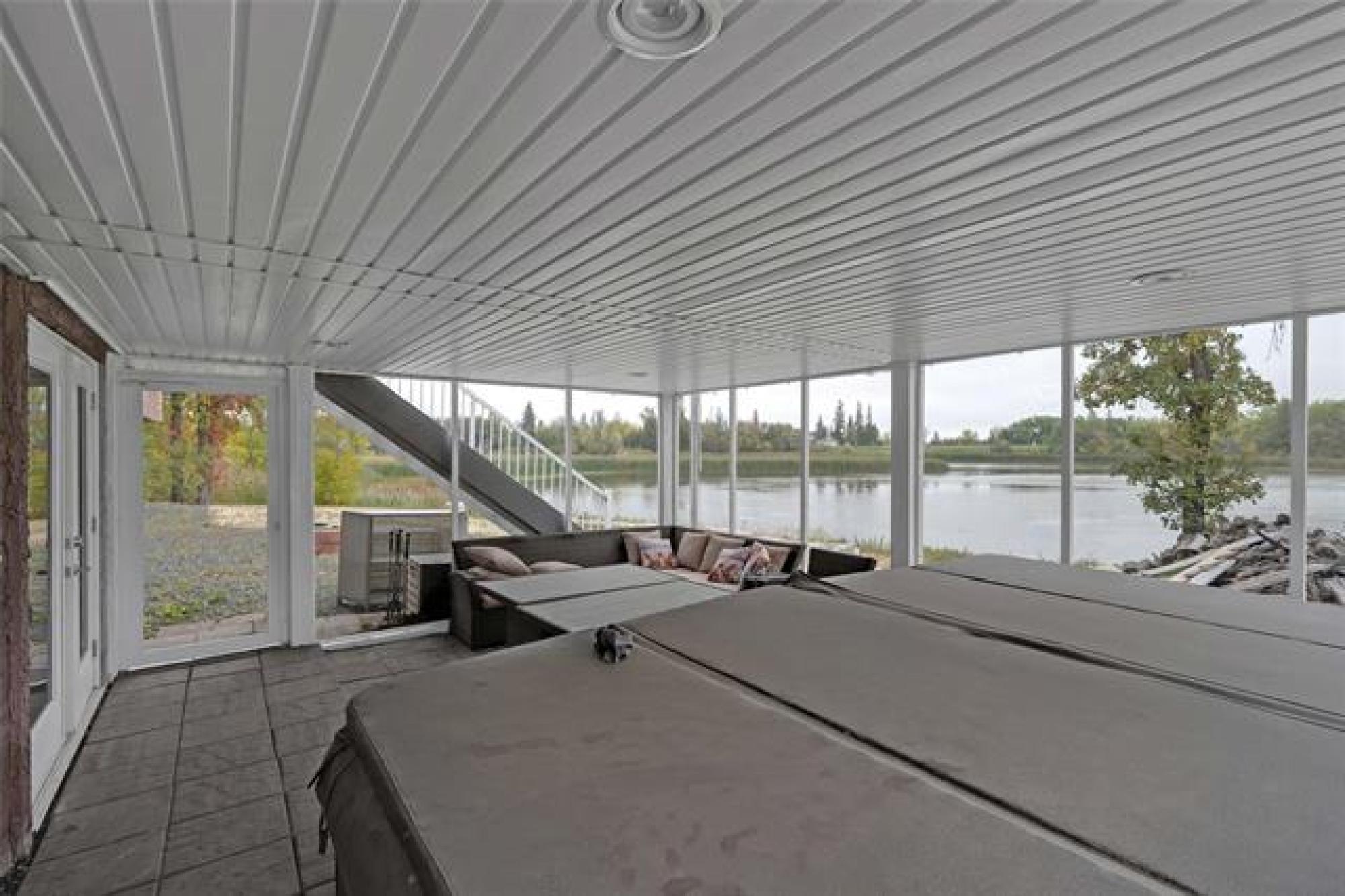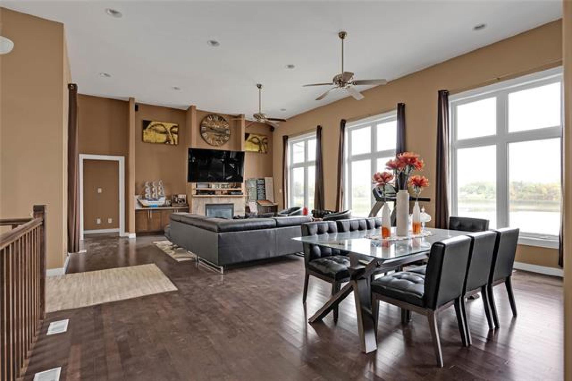 Rare opportunity on your own private sandy beach! Nearly 5000 sqft of custom-built luxury designed by the original owner! The main level offers a spacious 3-bedroom layout, while the fully finished walk-out basement provides a 2-bedroom suite—perfect for extended family or guests. The kitchen is a chef’s dream, complete with granite counters, walk-in pantry, a dry bar, and direct access to a large Duradek w/ glass railings and a gas BBQ hookup. The primary suite feels like a private spa retreat with its own deck, gas fireplace, walk-in closet, and ensuite boasting an air tub, dual sinks, tiled shower, private water closet, and an open-concept layout w/ the option to close it off. The lower level impresses with a 20'x63’ recreation room, kitchenette/bar, in-floor heating, lake views, home theater, full bath w/ tub/shower, 2 bedrooms, and abundant storage. Enjoy year-round relaxation with a screened sunroom, stone patio, oversized hot tub, and fire pit. The yard also features a fenced dog run with heated doghouse, and mature trees. For hobbyists or collectors, the heated 38’x38’ attached garage/workshop is a dream fitting up to 7 vehicles, with two 9' overhead doors that easily fit trucks and trailers.