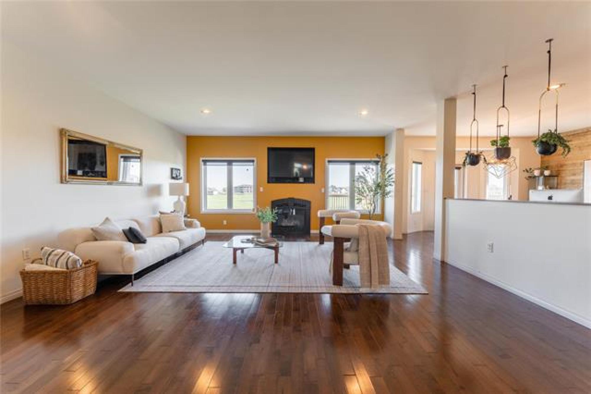 SS now, offers as received. Welcome home to 321 Troon Cove, Niverville! An executive 1800 sqft walkout-bungalow w/ main floor laundry, 5 bed 2.5 bath situated on a massive pie-shaped lot and backing onto the 5th hole of Old Drover's run, offering one of the best views in Niverville. A large front foyer opens to the massive living room with Hardwood floors, lake views, gas fireplace and plenty of natural light - perfect for entertaining. The kitchen is equipped with plenty of counterspace, maple cabinets, a pantry, and connects to the dining room and patio door leading to a large deck overlooking the yard, lake and golf course. The plumbed laundry room is perfect for large families and steps from the large 2nd and 3rd bedrooms, well-sized for any age. The Primary bedroom offers a large walk-in closet, and 4 pc tiled ensuite with jetted tub. The basement is equipped with another two bedrooms, 2 pc bath and a massive 34' rec room looking out to the backyard and patio. Houses and Lots of this size are rarely seen in the community, least of all with such an exceptional view - this is the one you've been waiting for! Call today to book a private viewing