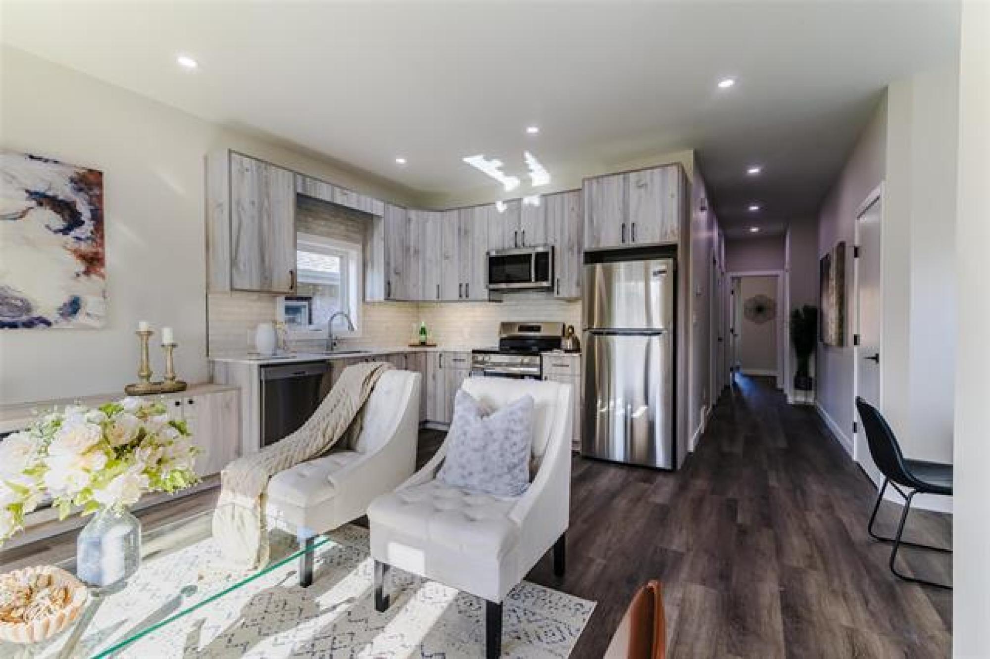 Stunning 5-bedroom, 3-bath custom bungalow on piles with a fully legal secondary suite, the perfect blend of modern living and income potential! This brand-new home features 3 spacious bedrooms, 2 full baths, and main-floor laundry with all appliances included. Elegant design throughout with custom cabinetry, a striking TV feature wall with electric fireplace, and vinyl plank flooring with custom stair nosings. Both units feature quartz countertops, tiled bathrooms with ample storage, and a designer backsplash in the main kitchen. Each suite offers private entrances, separate utility meters, and dedicated A/C, making it ideal to live in one unit and rent the other or use both for family living. The secondary suite mirrors the same upscale finishes, including its own TV wall and fireplace. Located in a prime Winnipeg neighbourhood surrounded by top-rated schools, shopping, transit, and parks. Ideally located near multiple schools and everyday conveniences. Immediate possession, a rare opportunity to own a stylish home with built-in rental income or multigenerational living flexibility. 10-year Progressive Home Warranty. Listing agent has interest in property.