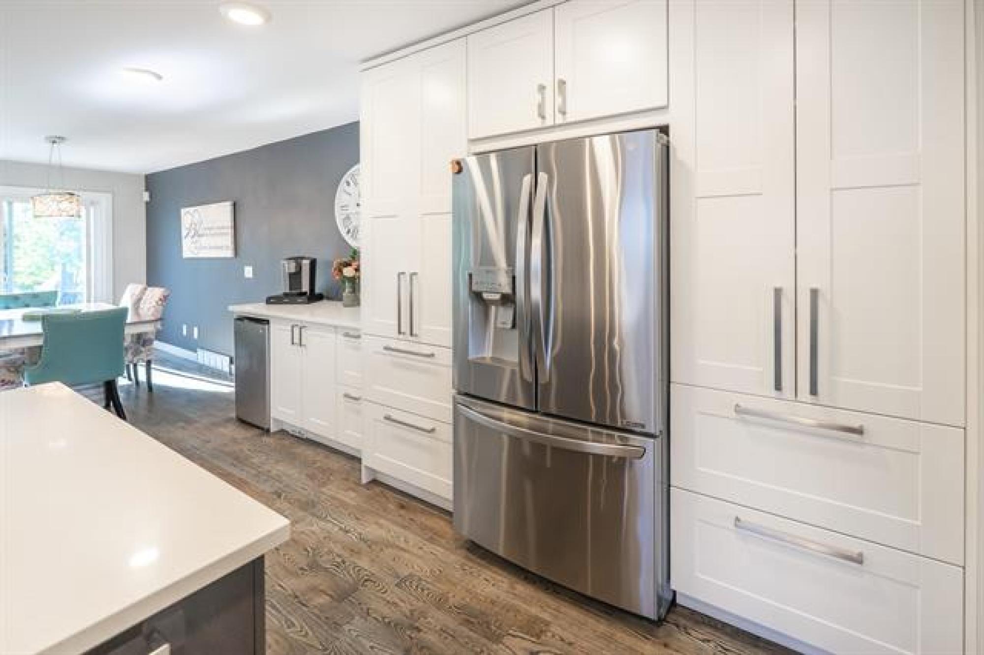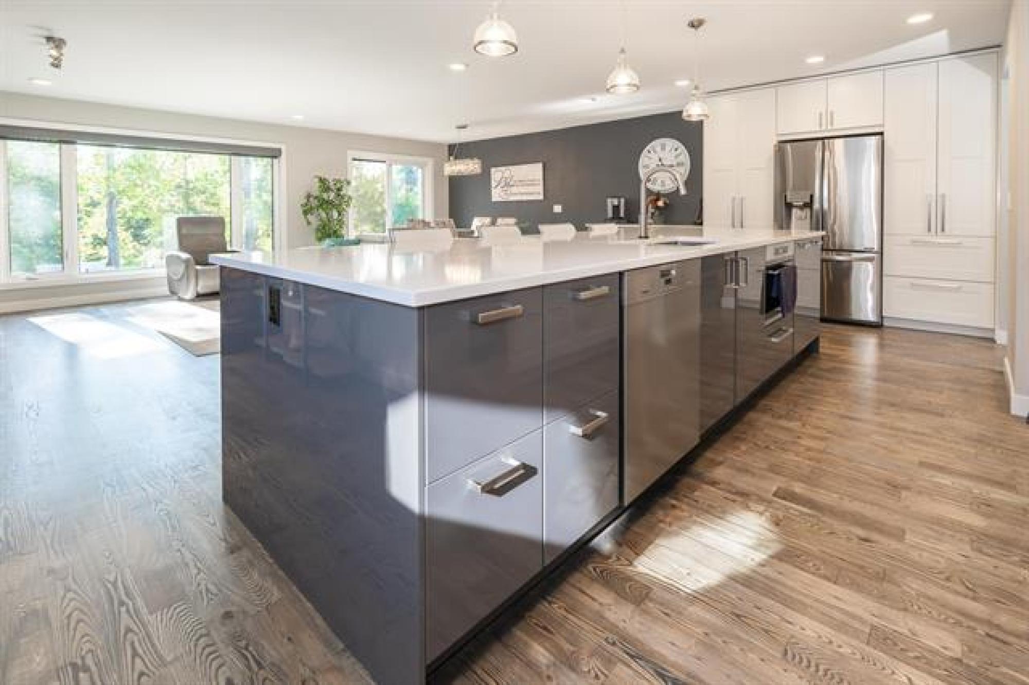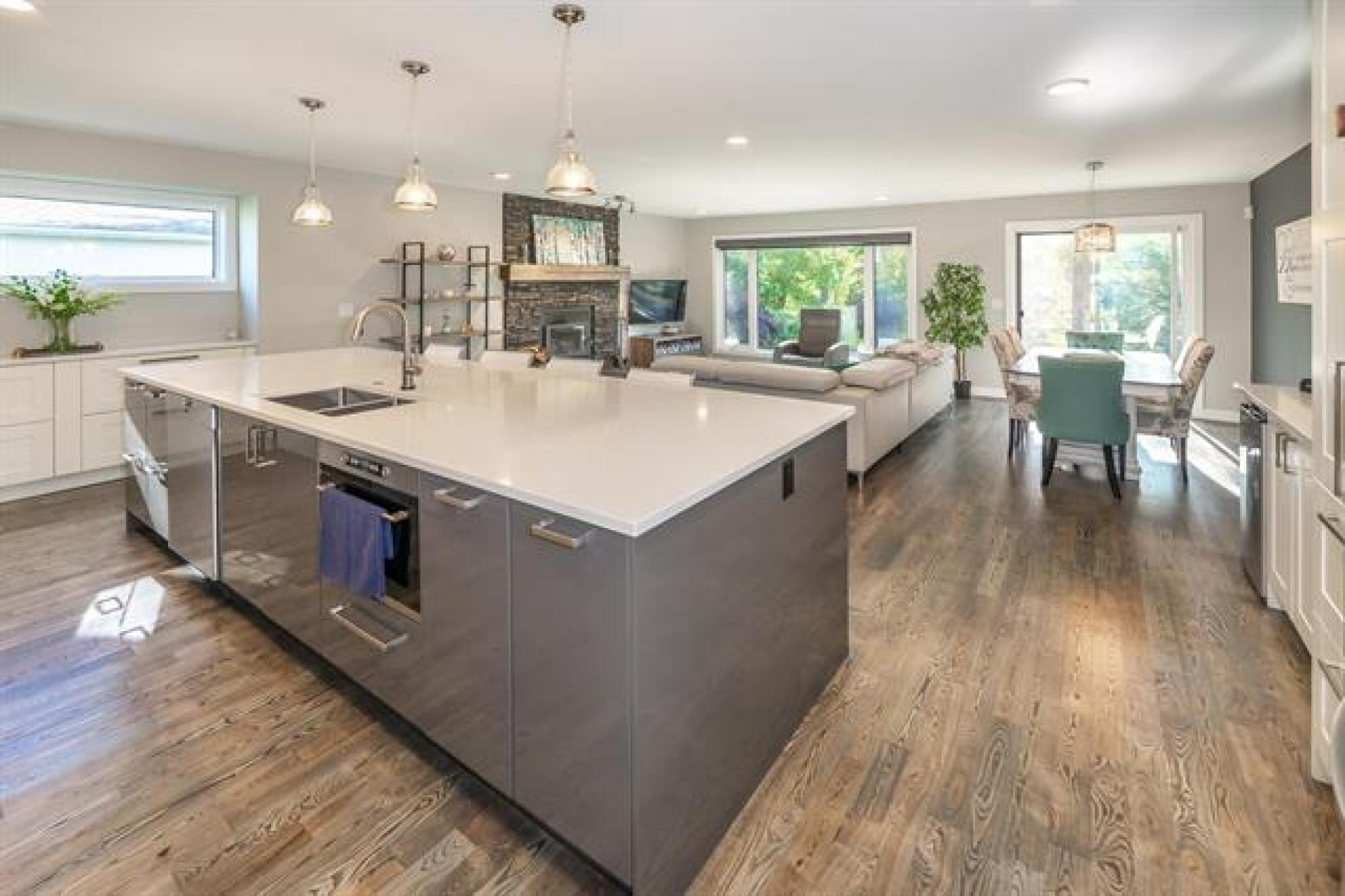 SS Oct 1. Offers Oct 6 evening. OH Sat. & Sun. 1-3 PM. Must see - stunner of a house. Completely remodeled up, down and outside with too many extras to list. Nothing to do but move in. From the moment vou enter into the large foyer, you'll see this home is in a league of its own with surprises at every turn. Gourmet chefs/bakers kitchen with gas cooking, touch faucet and massive 12'×4' island that would rival kitchens in the multimillion dollar price range. Wood burning fireplace is perfect for those cold winter days and is visible from every part of the open living room, kitchen and dining room. At the end of the day, escape to your own spa like retreat with steamer unit and body jets and heated tile floors 2 more good sized bedrooms, full bathroom with soaker tub and a huge office/flex space round out the main floor. The lower level is perfect for entertaining or kicking back and watching a movie in front of the linear gas fireplace. You will find 2 more large bedrooms, a gym, hobby room, full bathroom with heated tile flooring and large laundry/storage room. Unique 2 level, private yard with fire pit, backing onto green space and access to the river. Shared dock. Must be seen to be appreciated.