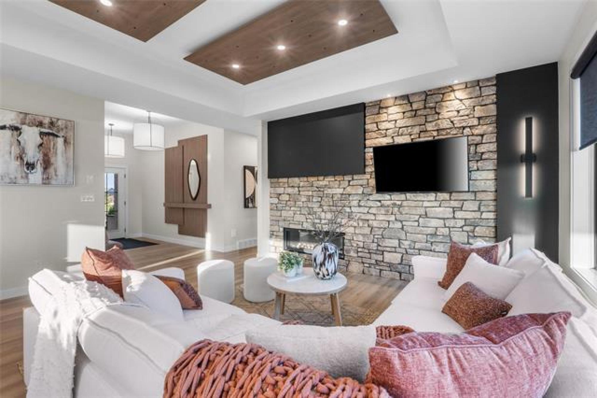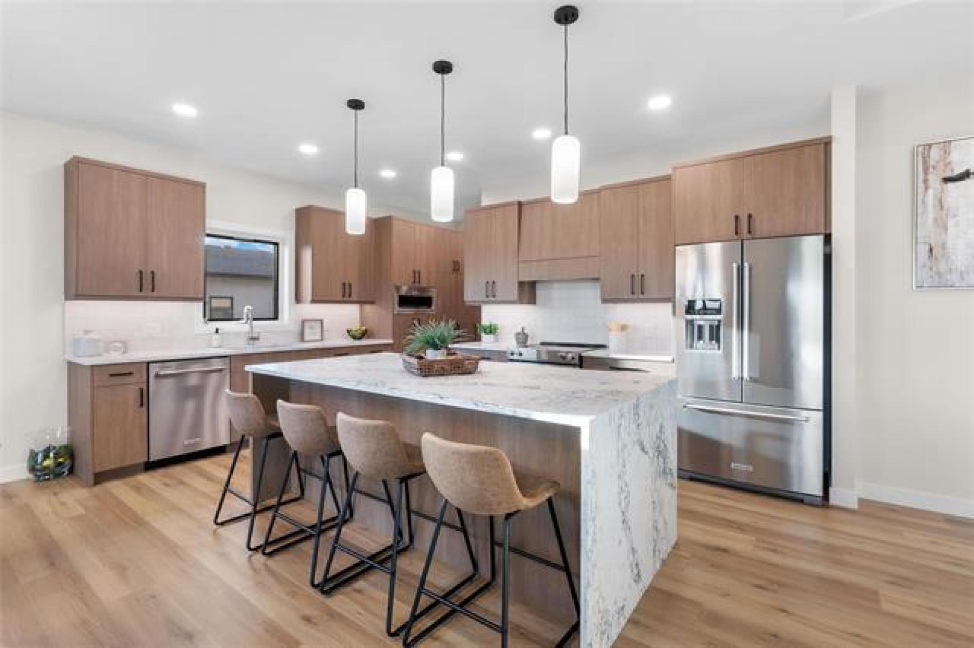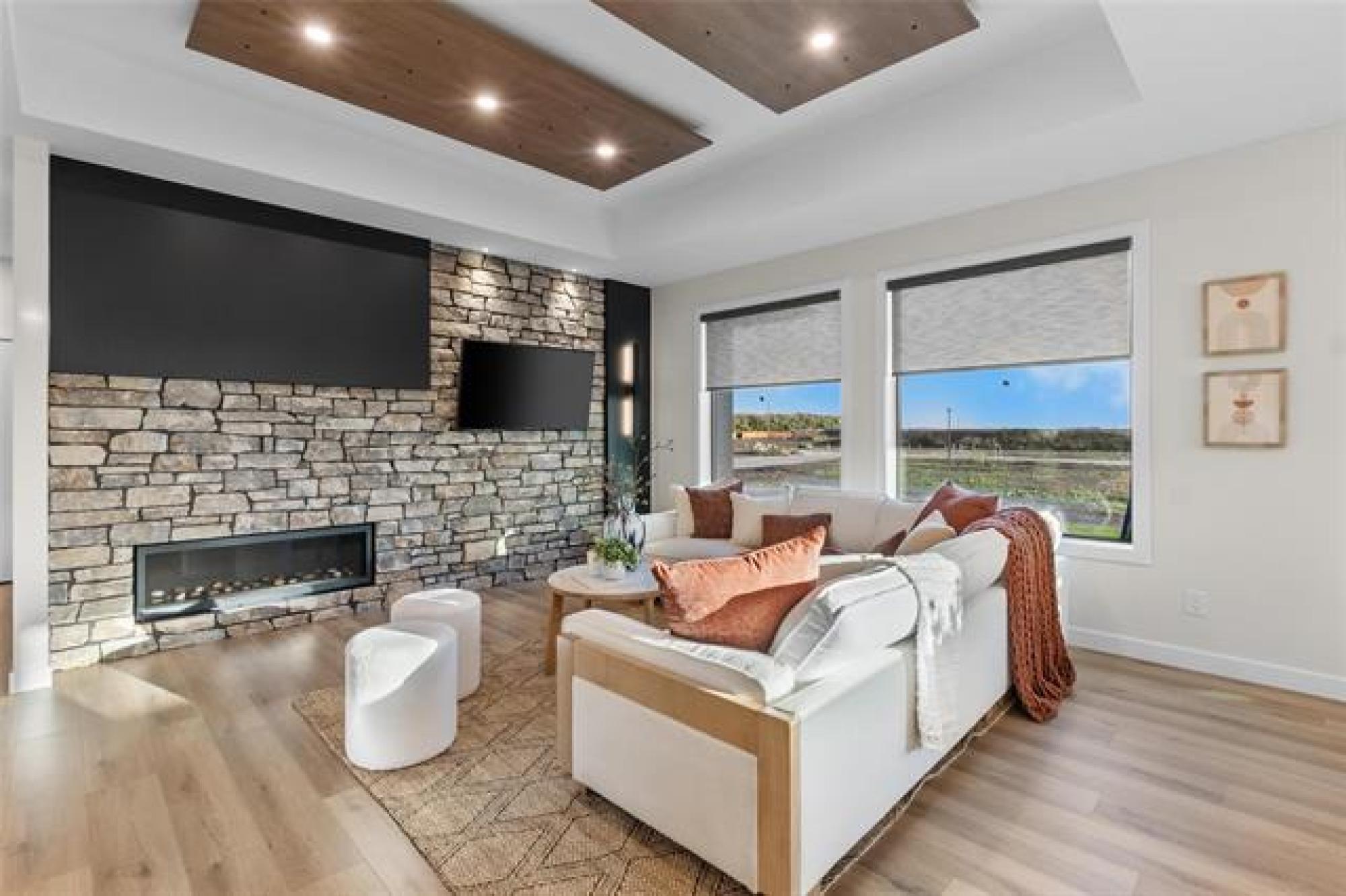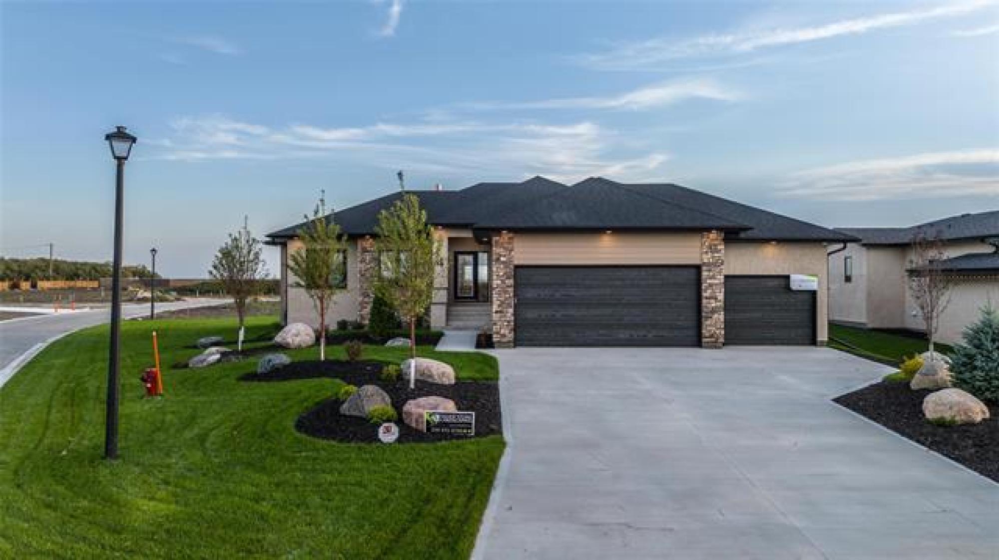 *Showhome Hours Mon-Thurs 4-8PM, Sat-Sun 12-5PM* 4 Bryce Boulevard offers an approach to luxury living—1753 sq ft of high-end design, efficiency, and craftsmanship in a bungalow layout with a finished basement, triple garage, and rear deck. This five-bedroom home showcases rich curb appeal with LP Smartside siding, stone accents, and modern black finishes. Inside, enjoy custom kitchen cabinetry, quartz-style countertops, and a chef’s kitchen with a large island and KitchenAid appliances. Warm laminate floors span the main areas, while bedrooms feature plush carpet and the ensuite offers heated tile and a custom shower. A 48” gas fireplace anchors the great room. Built on concrete piles with triple-pane windows and a cold climate heat pump, this Efficiency Manitoba Certified home delivers style, comfort, and long-term value.