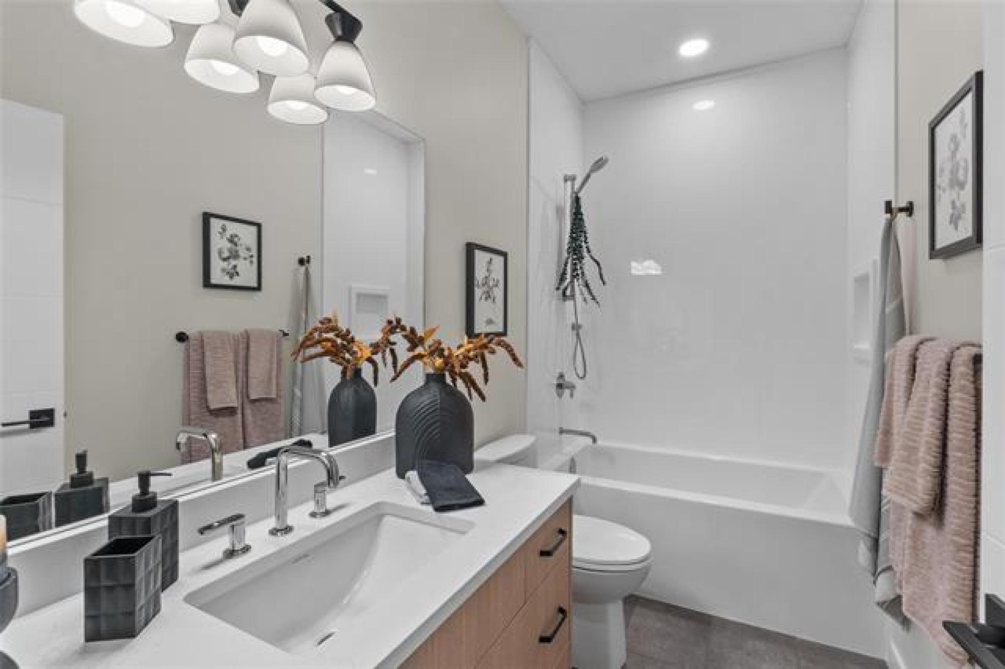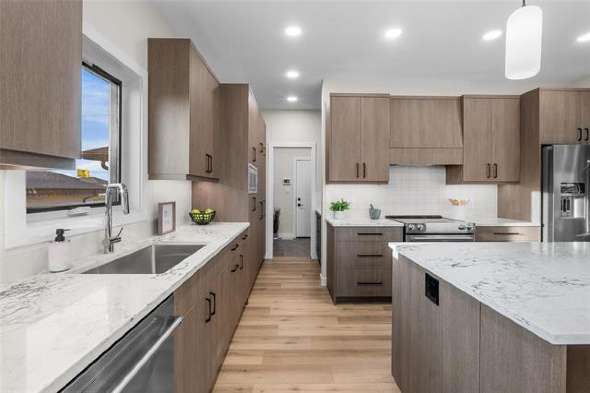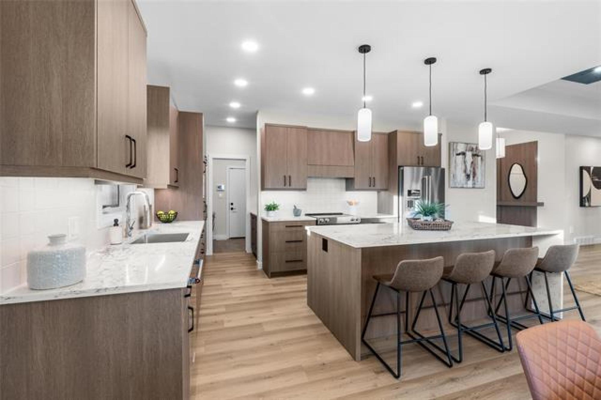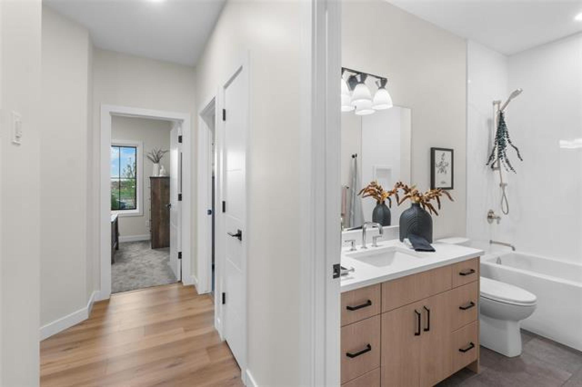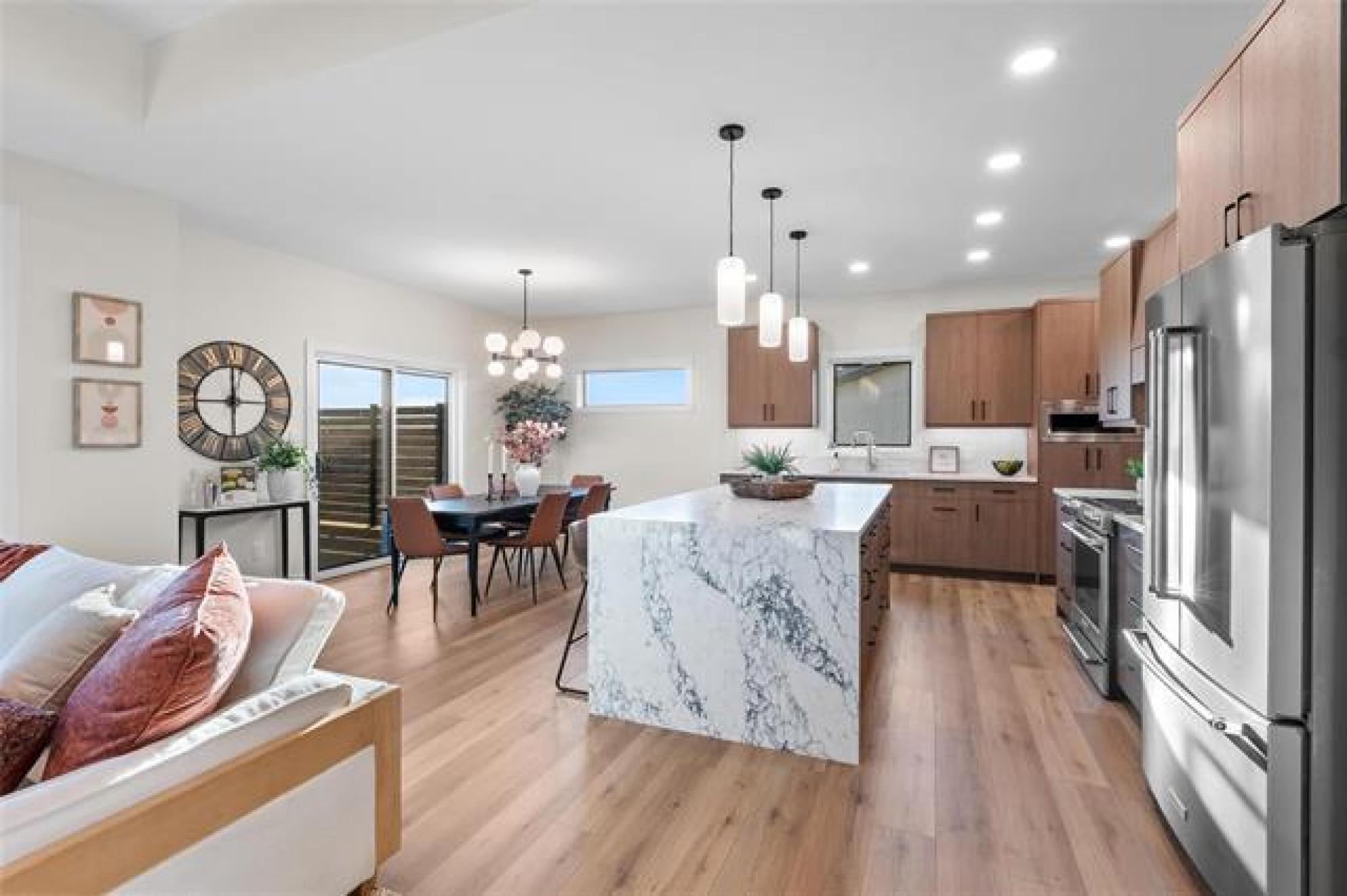 *Showhome Hours Mon-Thurs 4-8PM, Sat-Sun 12-5PM* 4 Bryce Boulevard offers an approach to luxury living—1753 sq ft of high-end design, efficiency, and craftsmanship in a bungalow layout with a finished basement, triple garage, and rear deck. This five-bedroom home showcases rich curb appeal with LP Smartside siding, stone accents, and modern black finishes. Inside, enjoy custom kitchen cabinetry, quartz-style countertops, and a chef’s kitchen with a large island and KitchenAid appliances. Warm laminate floors span the main areas, while bedrooms feature plush carpet and the ensuite offers heated tile and a custom shower. A 48” gas fireplace anchors the great room. Built on concrete piles with triple-pane windows and a cold climate heat pump, this Efficiency Manitoba Certified home delivers style, comfort, and long-term value.