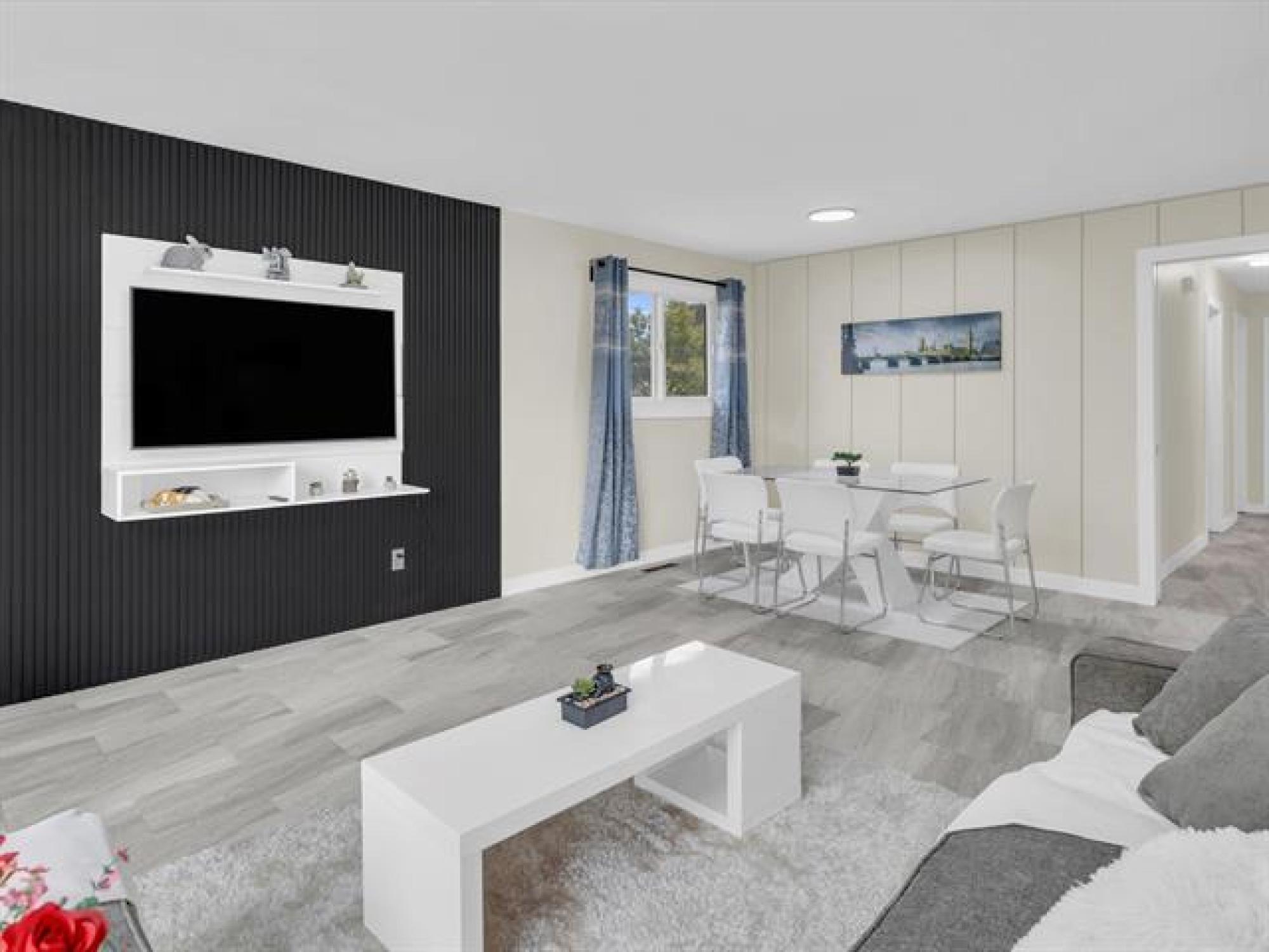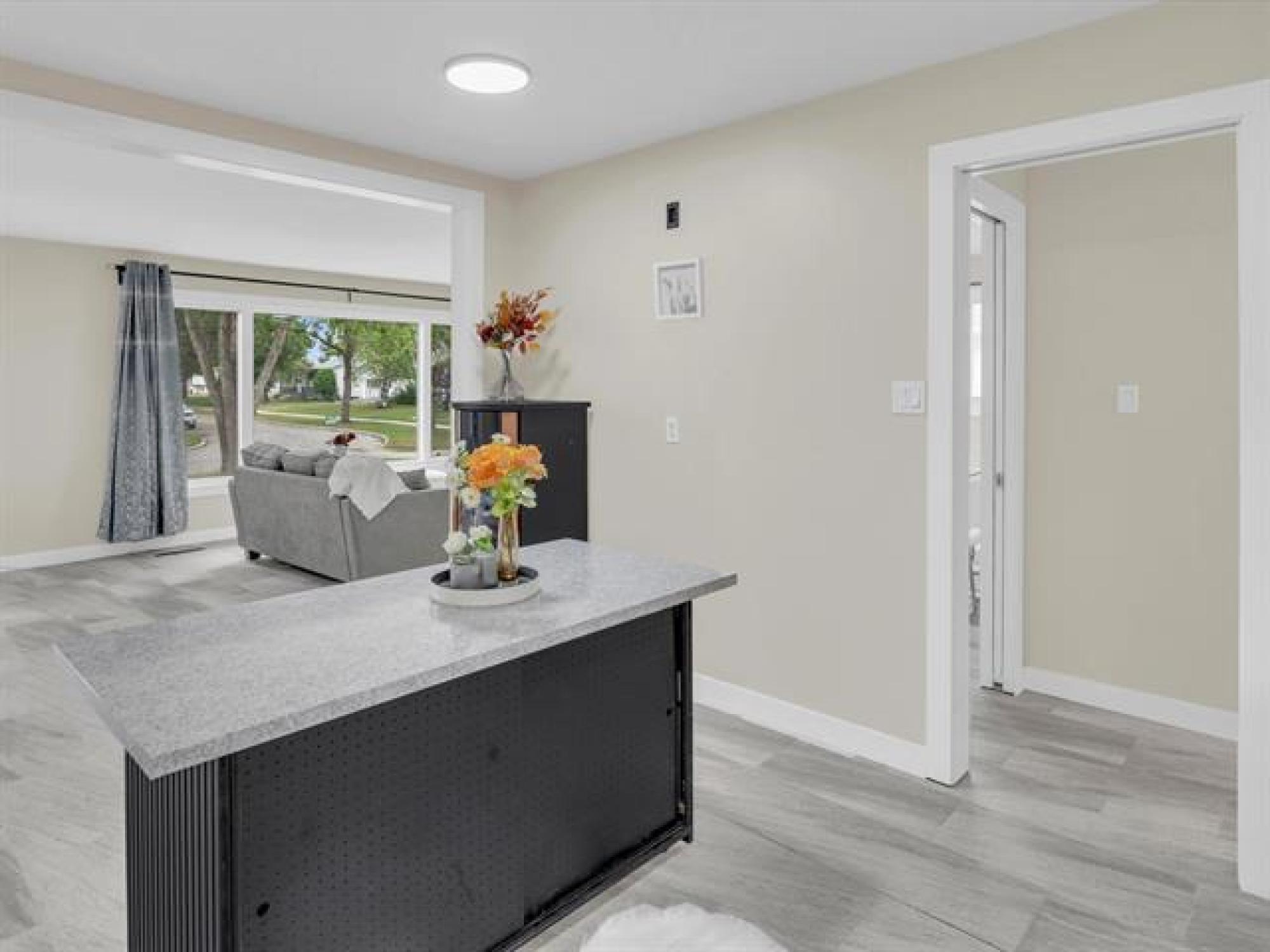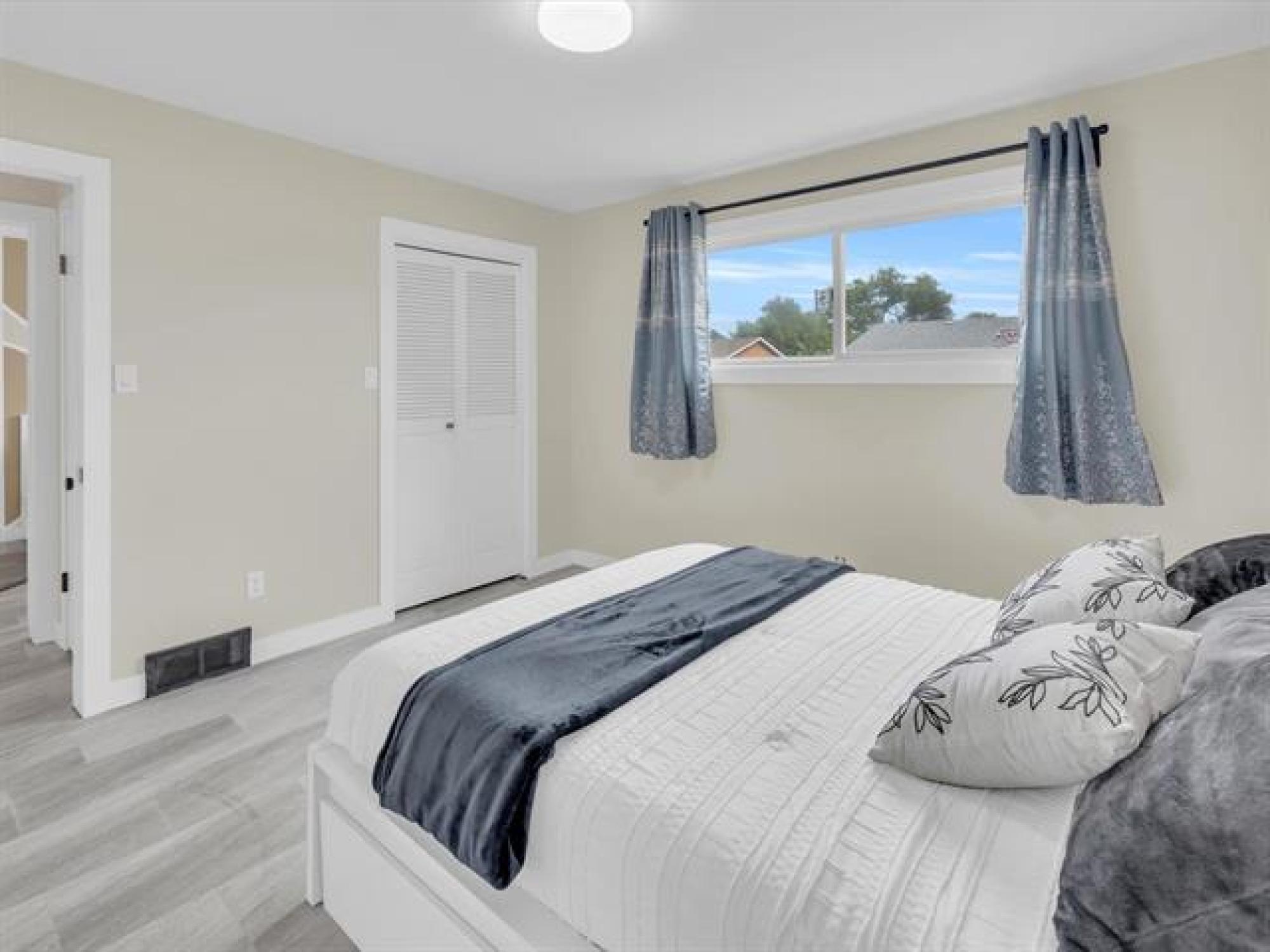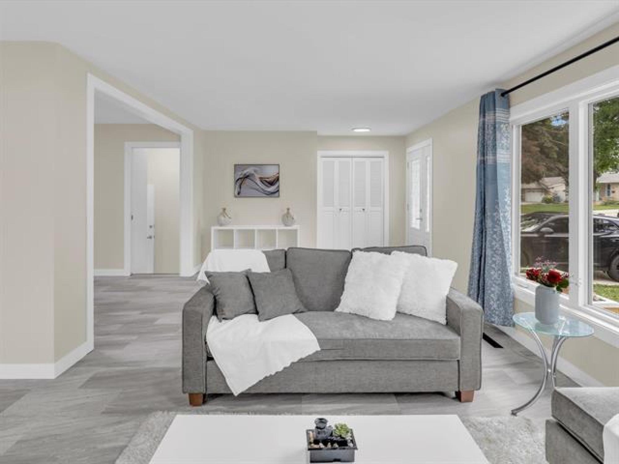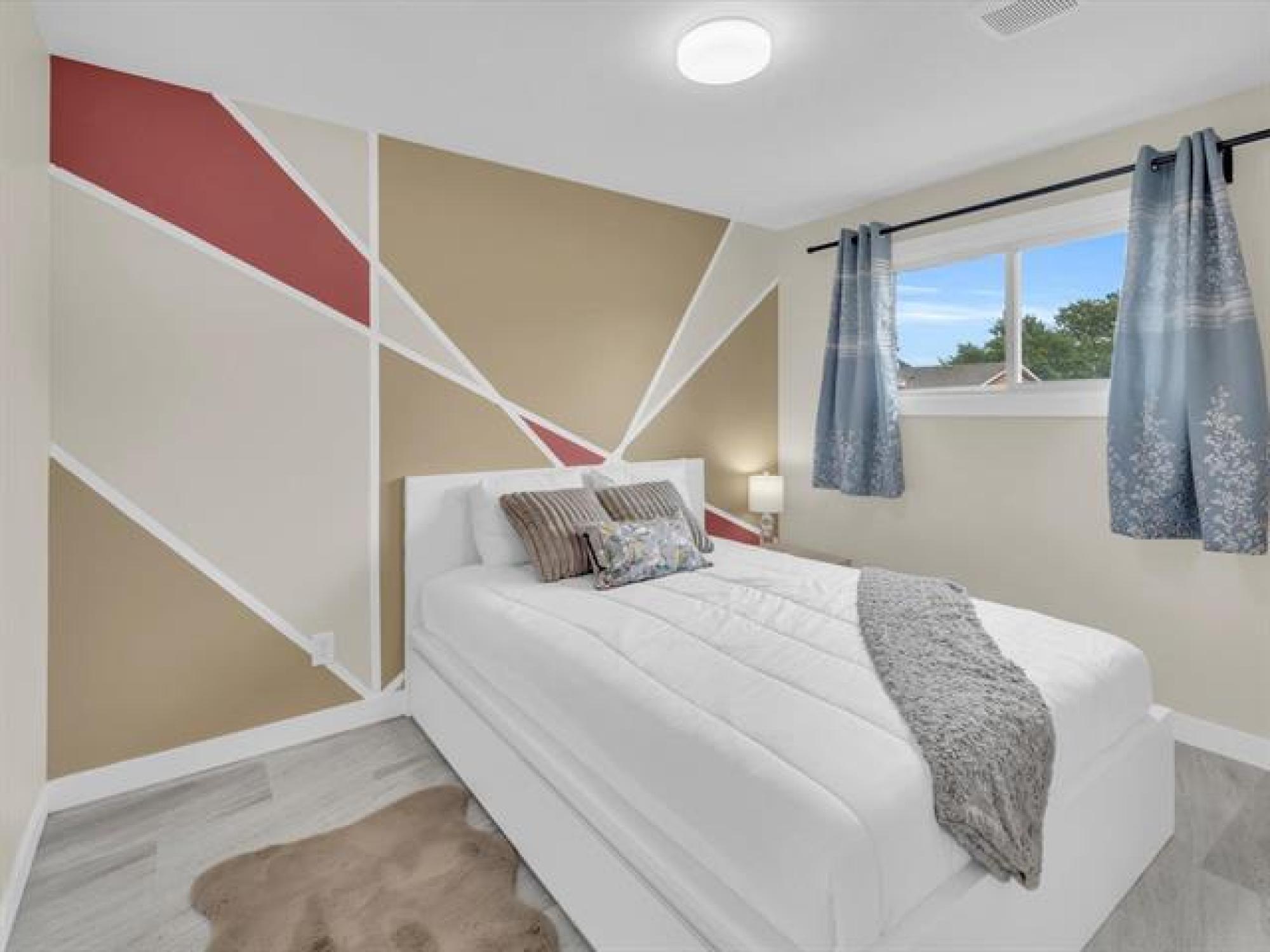 SS now! OTP on October 6, 2025. All measurements are +/- jogs. Please give ample notice before booking showings. Welcome to 43 Madera Cres., this stunning 1,279 sq. ft. bungalow in the highly desirable Maples neighbourhood. Built in 1970 and beautifully updated, the main floor features a spacious and elegant living area complete with a newly built entertainment unit, a huge kitchen with a large island perfect for family gatherings, a generous primary bedroom with its own bathroom, two additional well-sized bedrooms, and a full bathroom. The fully finished basement offers a massive rec room with a side bar, two oversized bedrooms, and another full bathroom—ideal for extended family or guests. Step outside to enjoy a bright sunroom, a large fully fenced backyard, and plenty of space for outdoor entertaining. This home truly offers comfort, style, and functionality in one perfect package. Upgrades - Lighting (2025), Front window (2025), Front door (2025), Garage door & garage door opener (2025), Paint (2025), Entertainment unit (2025), Floor (2024), Landscaping (2024), Soffit facia (2023),