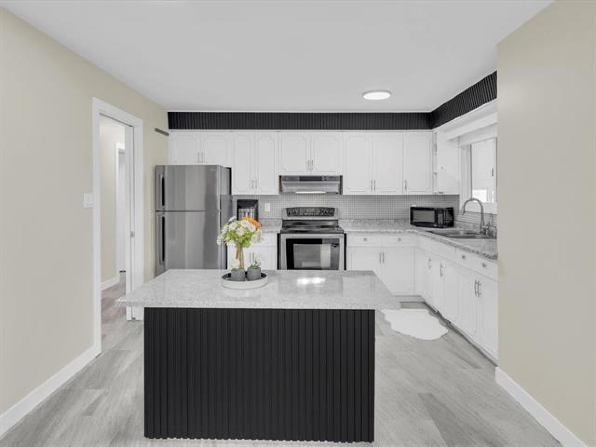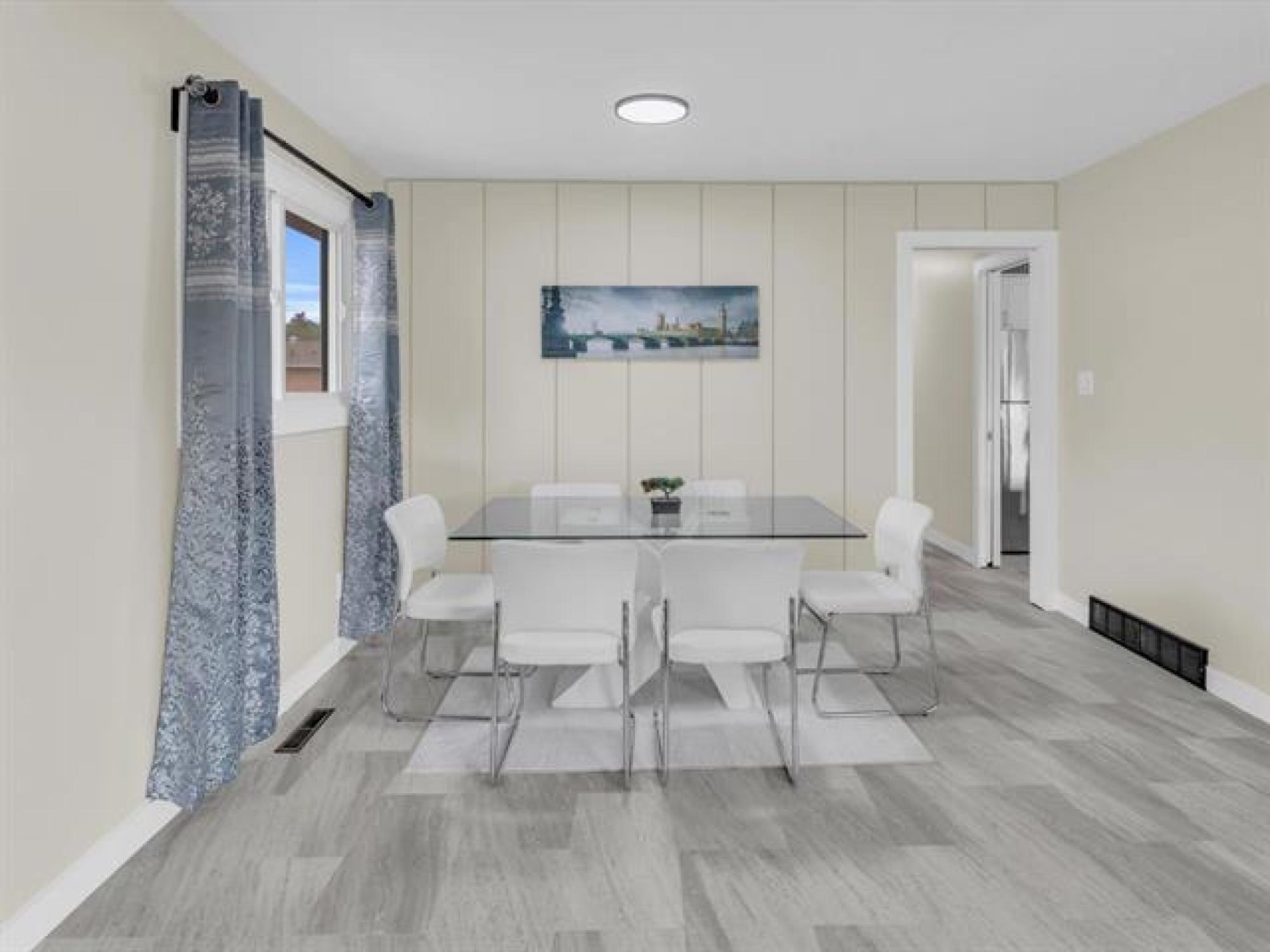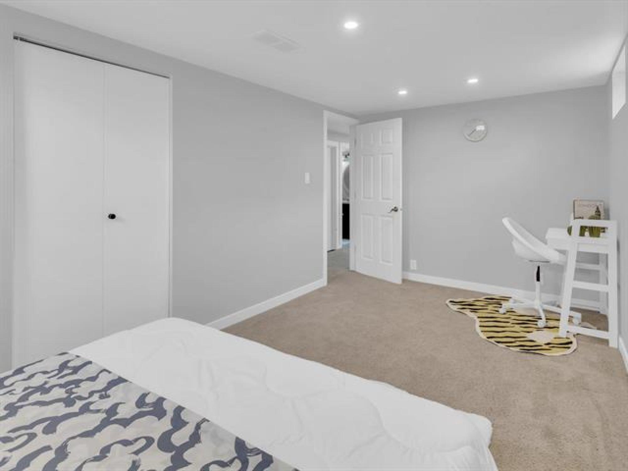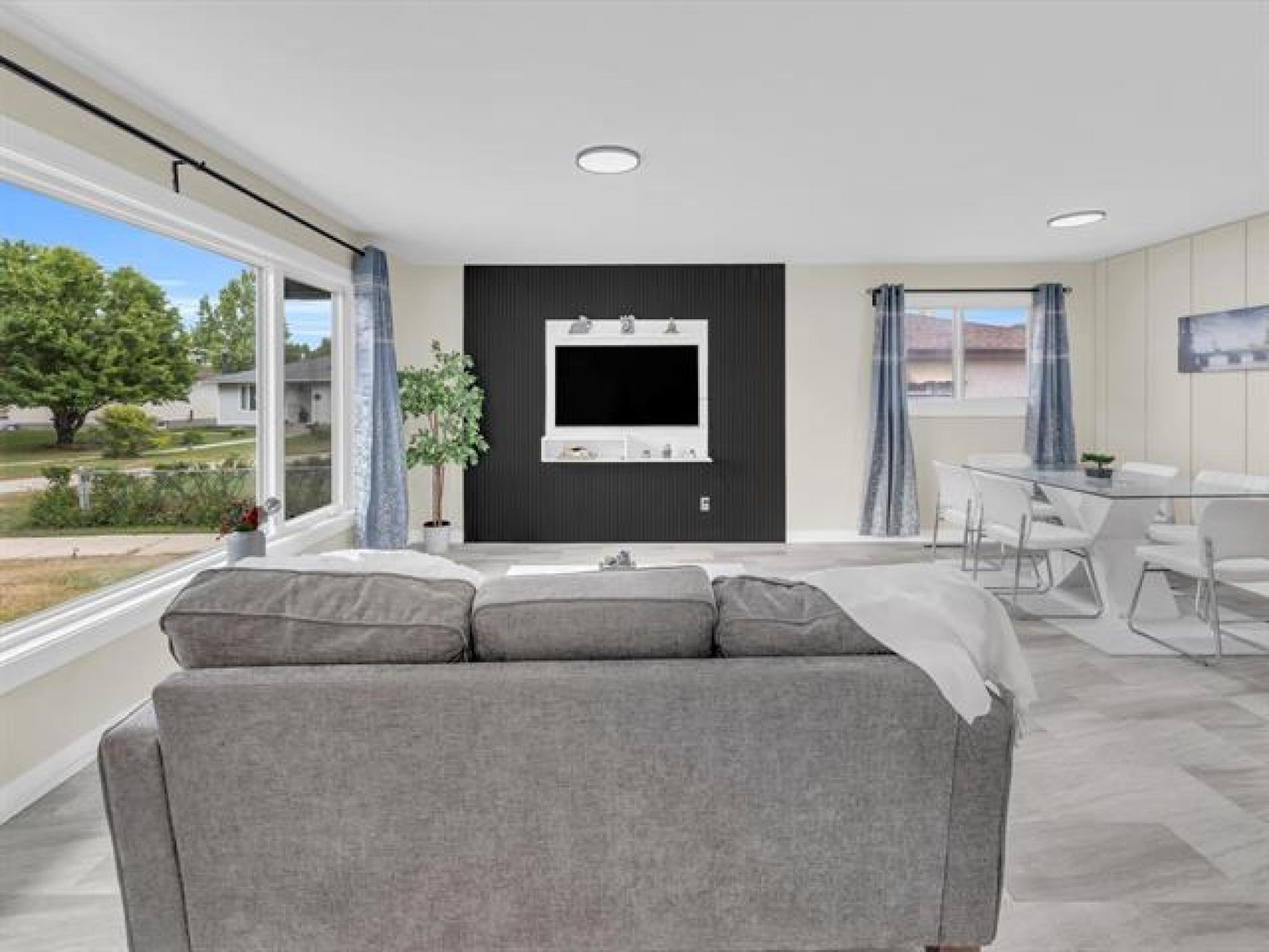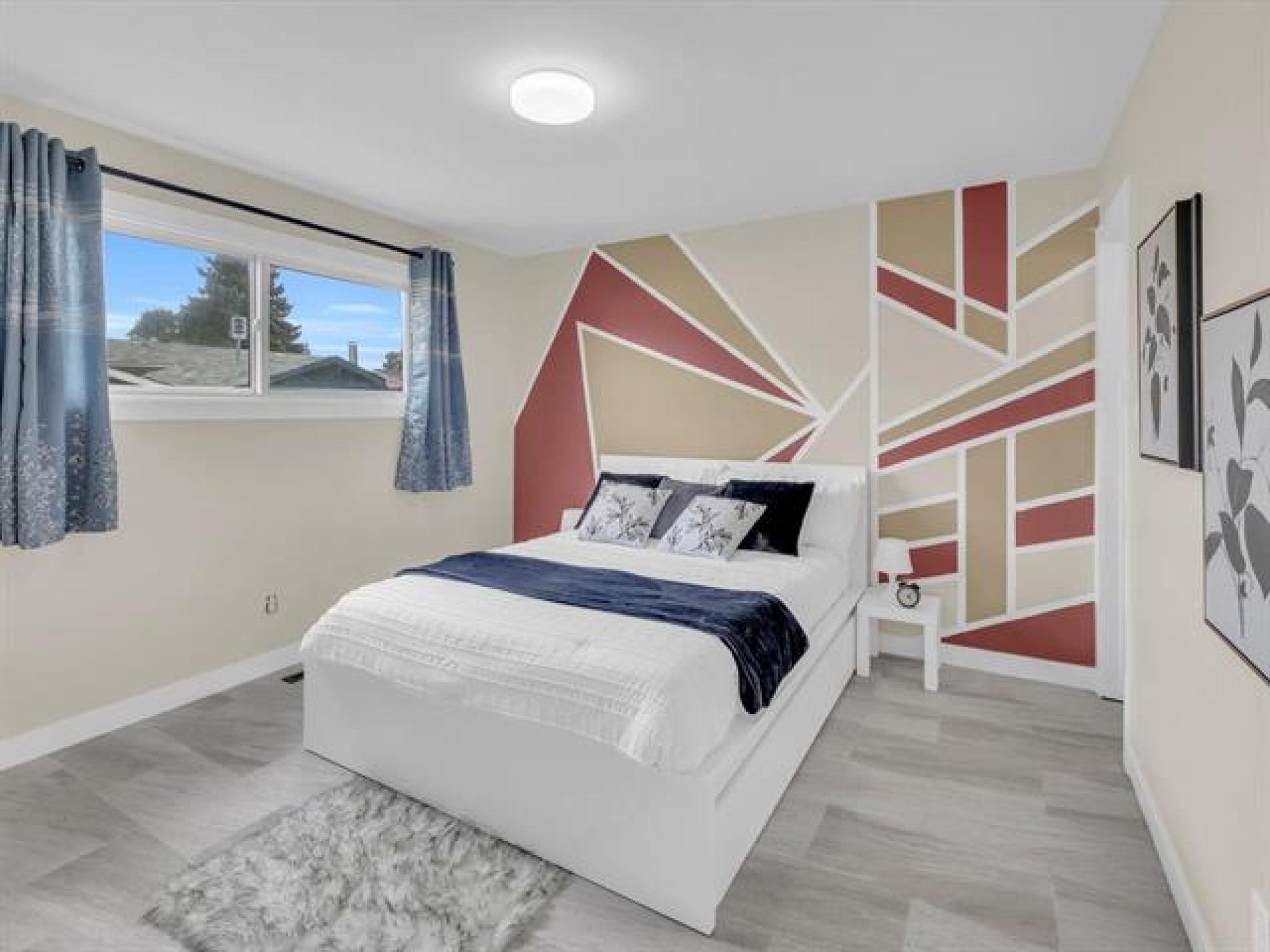 SS now! OTP on October 6, 2025. All measurements are +/- jogs. Please give ample notice before booking showings. Welcome to 43 Madera Cres., this stunning 1,279 sq. ft. bungalow in the highly desirable Maples neighbourhood. Built in 1970 and beautifully updated, the main floor features a spacious and elegant living area complete with a newly built entertainment unit, a huge kitchen with a large island perfect for family gatherings, a generous primary bedroom with its own bathroom, two additional well-sized bedrooms, and a full bathroom. The fully finished basement offers a massive rec room with a side bar, two oversized bedrooms, and another full bathroom—ideal for extended family or guests. Step outside to enjoy a bright sunroom, a large fully fenced backyard, and plenty of space for outdoor entertaining. This home truly offers comfort, style, and functionality in one perfect package. Upgrades - Lighting (2025), Front window (2025), Front door (2025), Garage door & garage door opener (2025), Paint (2025), Entertainment unit (2025), Floor (2024), Landscaping (2024), Soffit facia (2023),