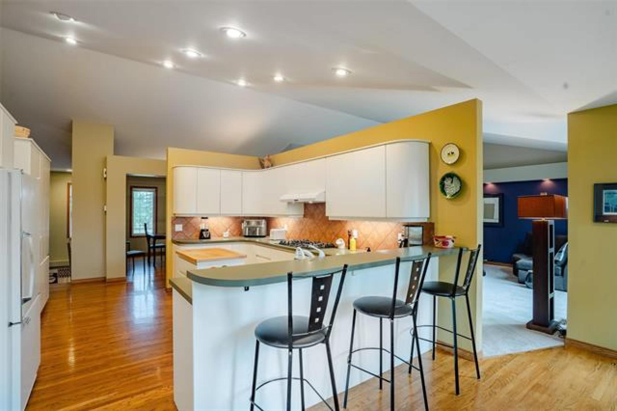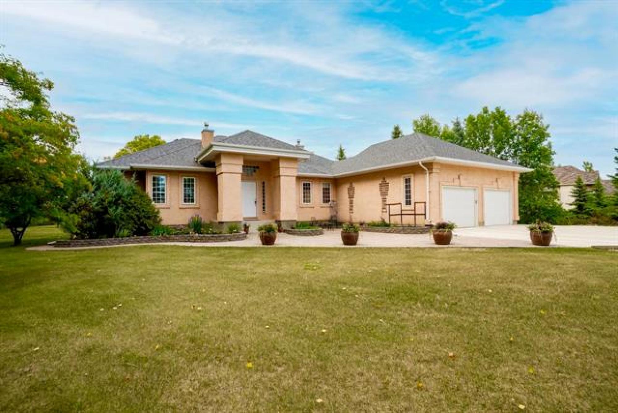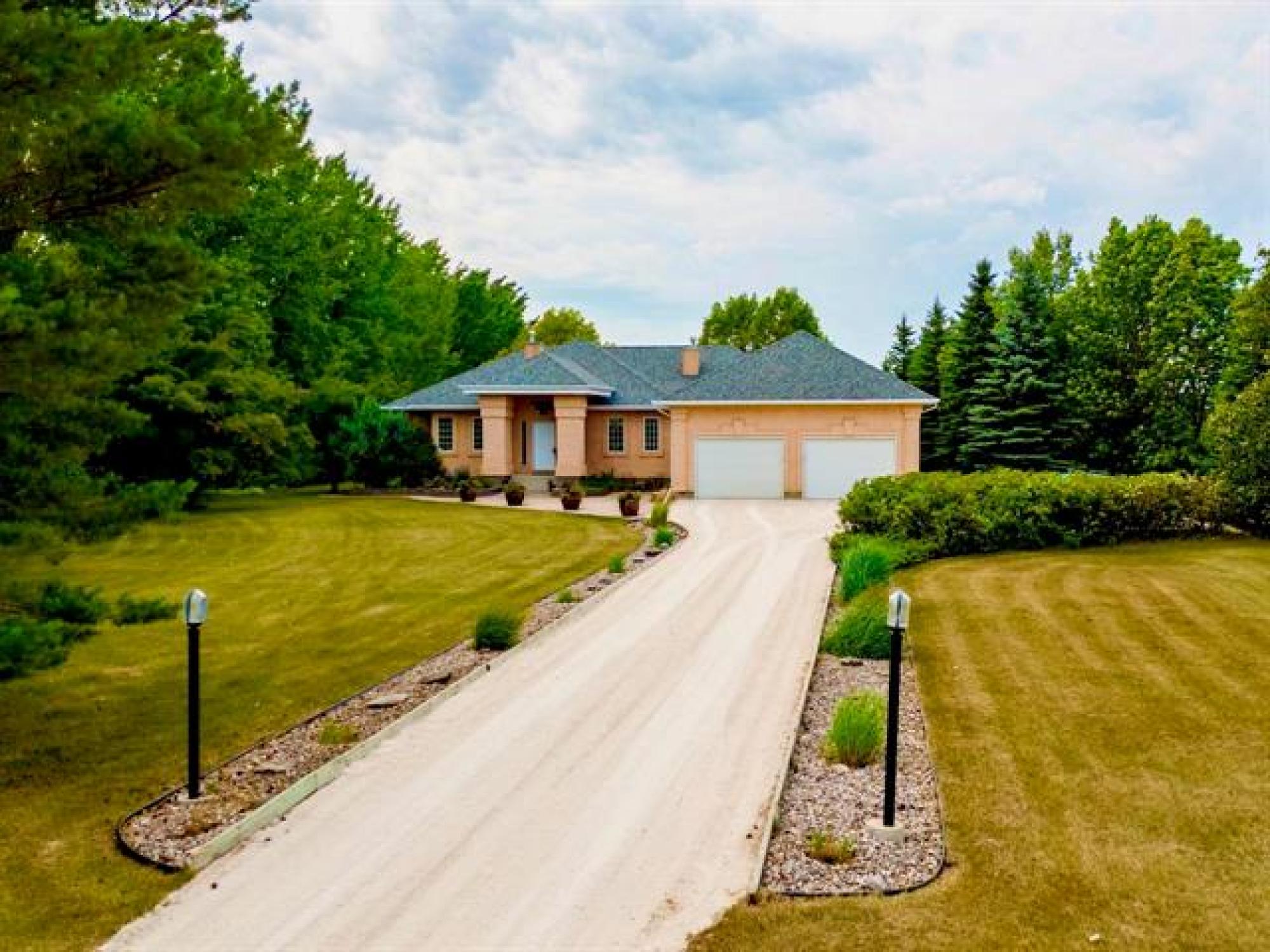 Welcome home! This incredibly charming bungalow sits on a manicured and private 3.61 acre sanctuary. Custom-built by K. Streu Homes, the original owners have lovingly maintained this property from day one. Offering over 2,000 square feet, 4+ bedrooms, 3 bathrooms, and a wealth of custom features, it’s the perfect choice for your forever home. The main level is anchored by stunning hardwood floors, impeccable views of the backyard, and an abundance of natural light throughout. A spacious dining room flows naturally into a timeless, contemporary kitchen. The home office features a double-sided fireplace, adding warmth and character to the space. The partially finished lower level is ideal for a growing family, with three large bedrooms, a huge rec room, and a 3-piece bathroom—perfect for additional living space. Along with style comes function and thoughtful upgrades: newer roof, updated carpets, sleeper wood floor system, renovated ensuite with heated floors, and much more. Serene and peaceful as it gets, with the added advantage of being just minutes from multiple amenities.