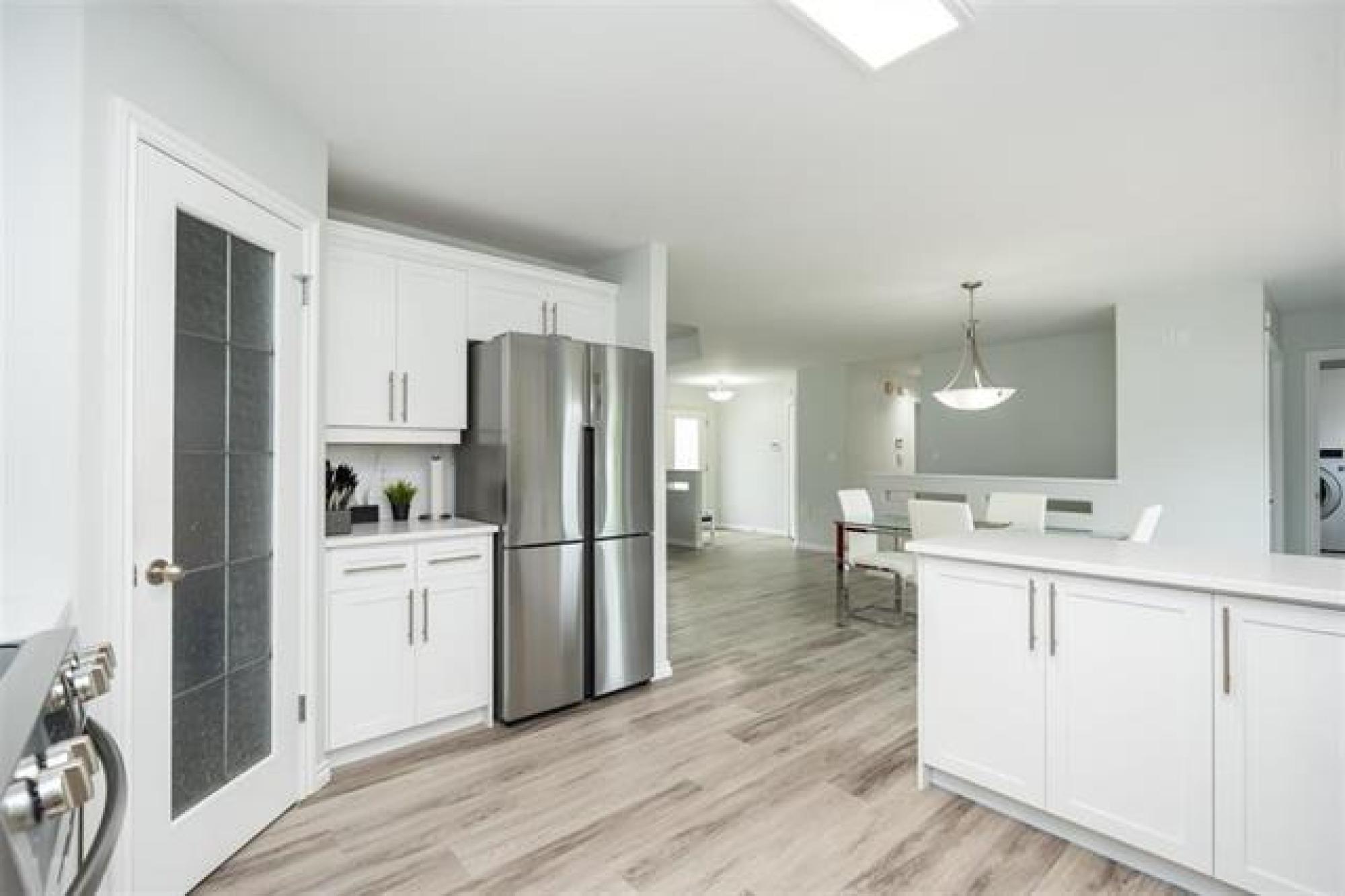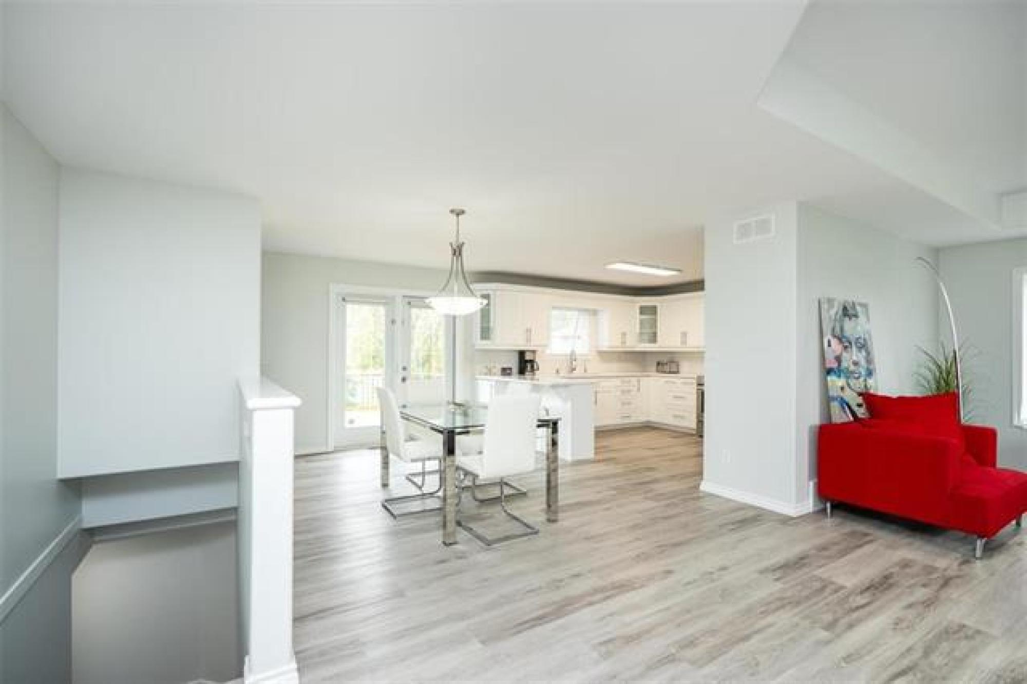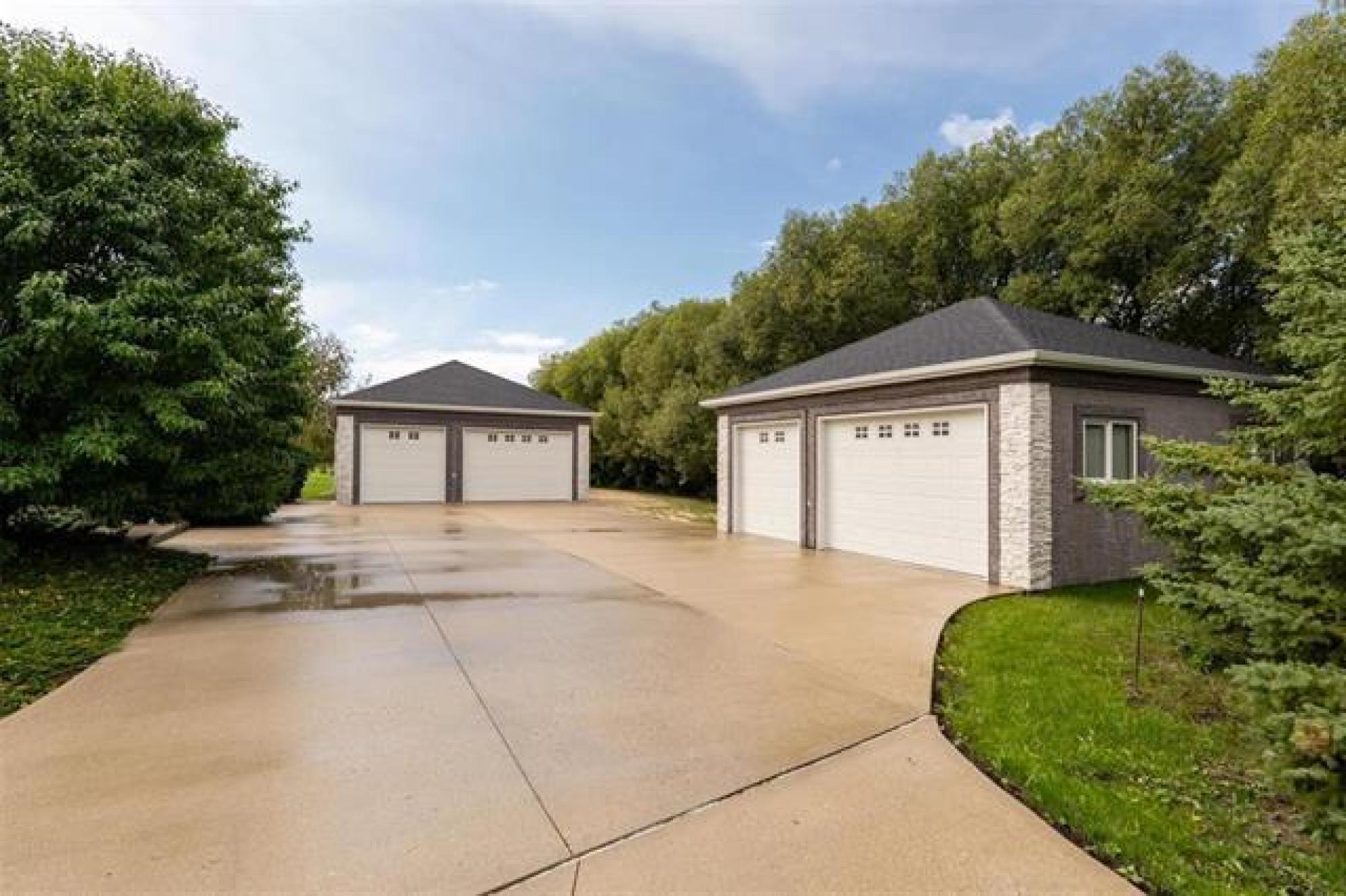 Welcome to this beautifully renovated 5 bedroom home set on a landscaped 2.6-acre lot. The main level features an open layout w/luxury plank floors, stylish kitchen w/white maple cabinetry, stunning quartz counters, tile backsplash + upgraded appliances. The primary suite includes hardwood floors + a private ensuite, while 2 additional bedrooms and a fully updated main bath complete the level. The lower level boasts raised ceilings, laminate floors, pot lights, custom entertainment wall w/fireplace + surround sound, 2 bedrooms & a 3-piece bath. Steel beam construction provides a spacious, open span design, while thoughtful upgrades like in-floor heat lines, R10 insulation + triple pane windows ensure lasting comfort. Enjoy a landscaped front yard w/concrete edging, a two-tier deck w/black spindles, a quonset for storage + parking for recreational vehicles. The oversized garage is complemented by an incredible detached heated shop with space for up to six vehicles, hot and cold water taps, compressor lines, central vac, 220 power, and even a kitchen setup. Recent updates include shingles on both the home + garages (2023), paved driveway, iron filtration system and more!