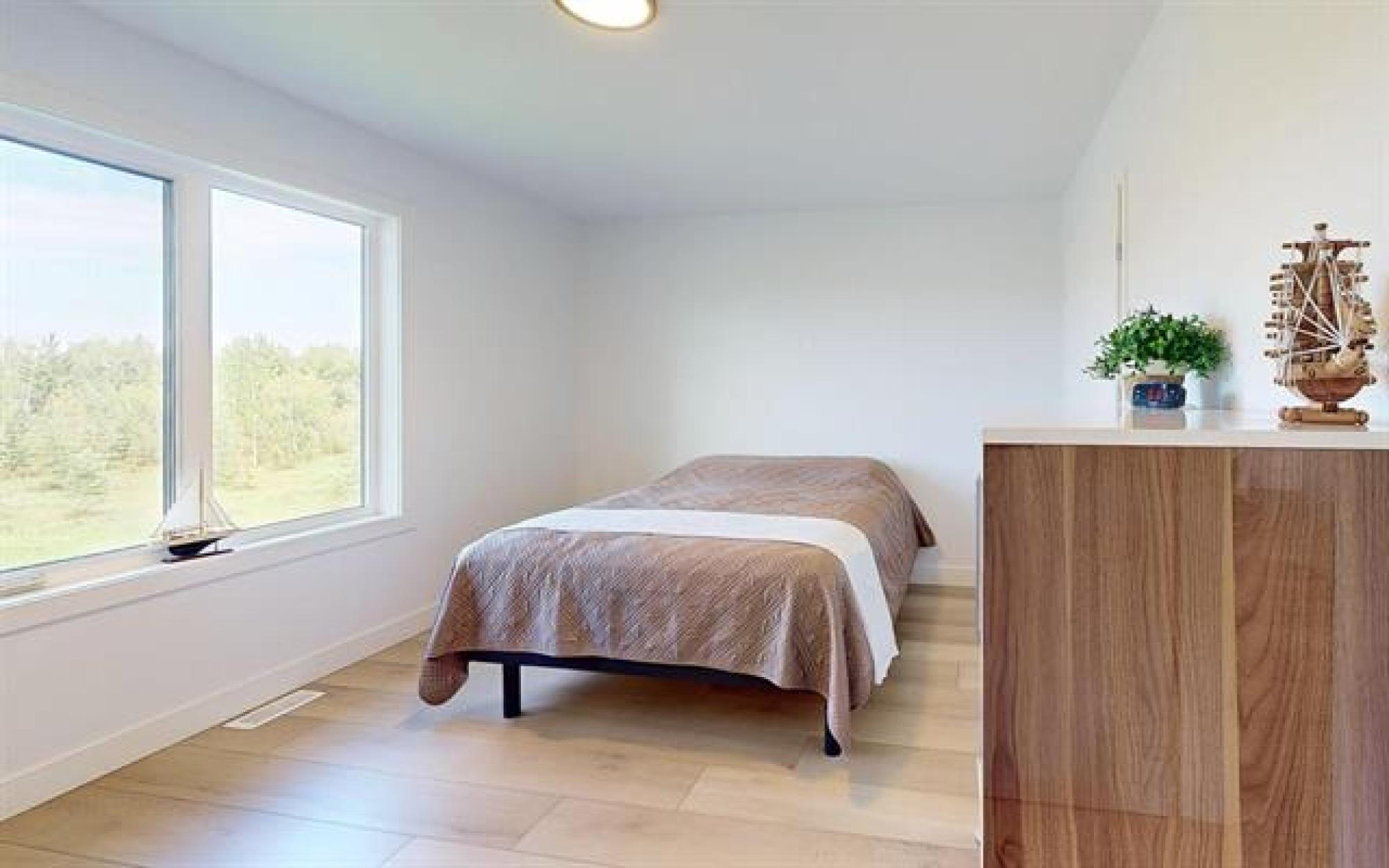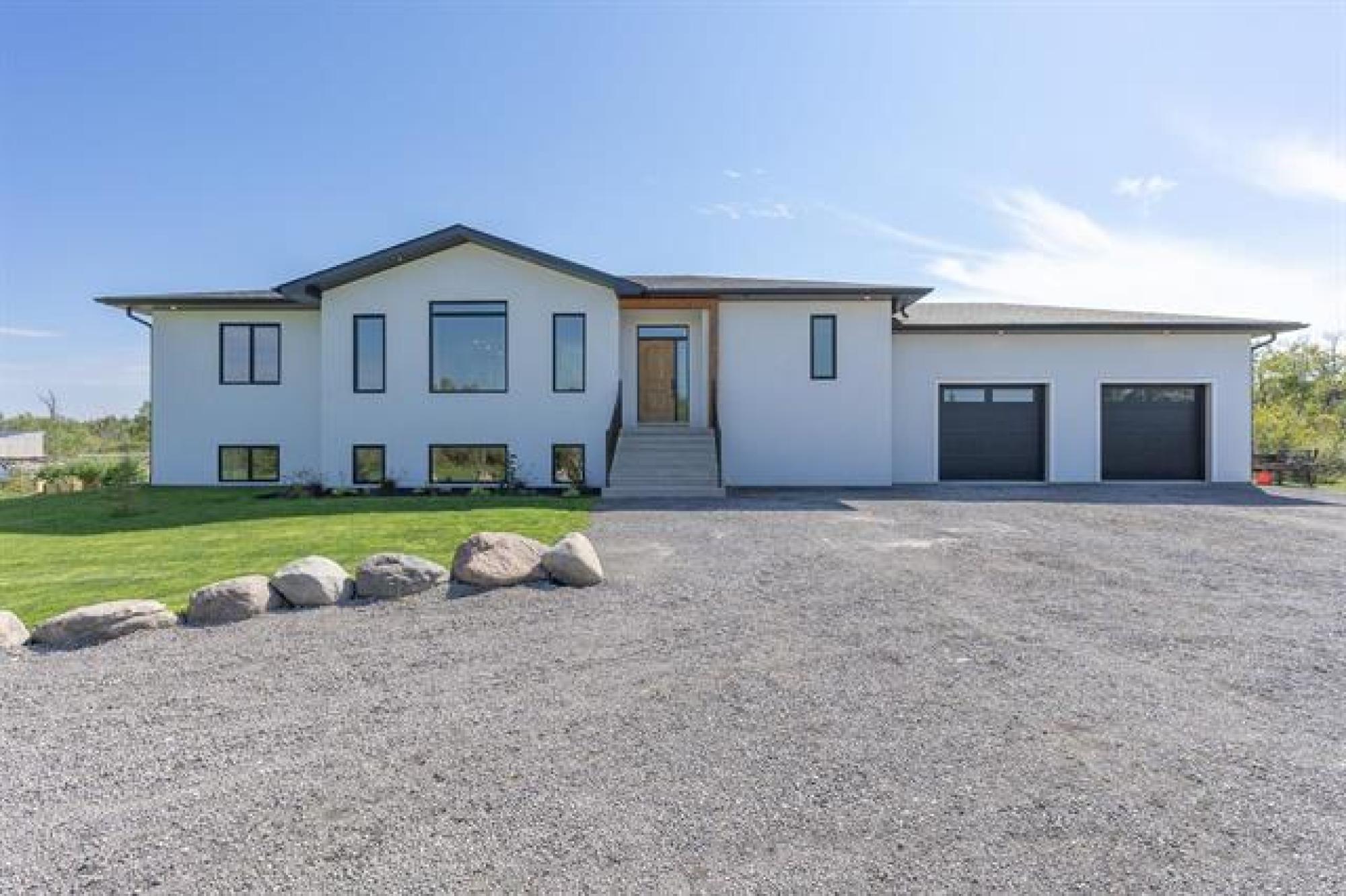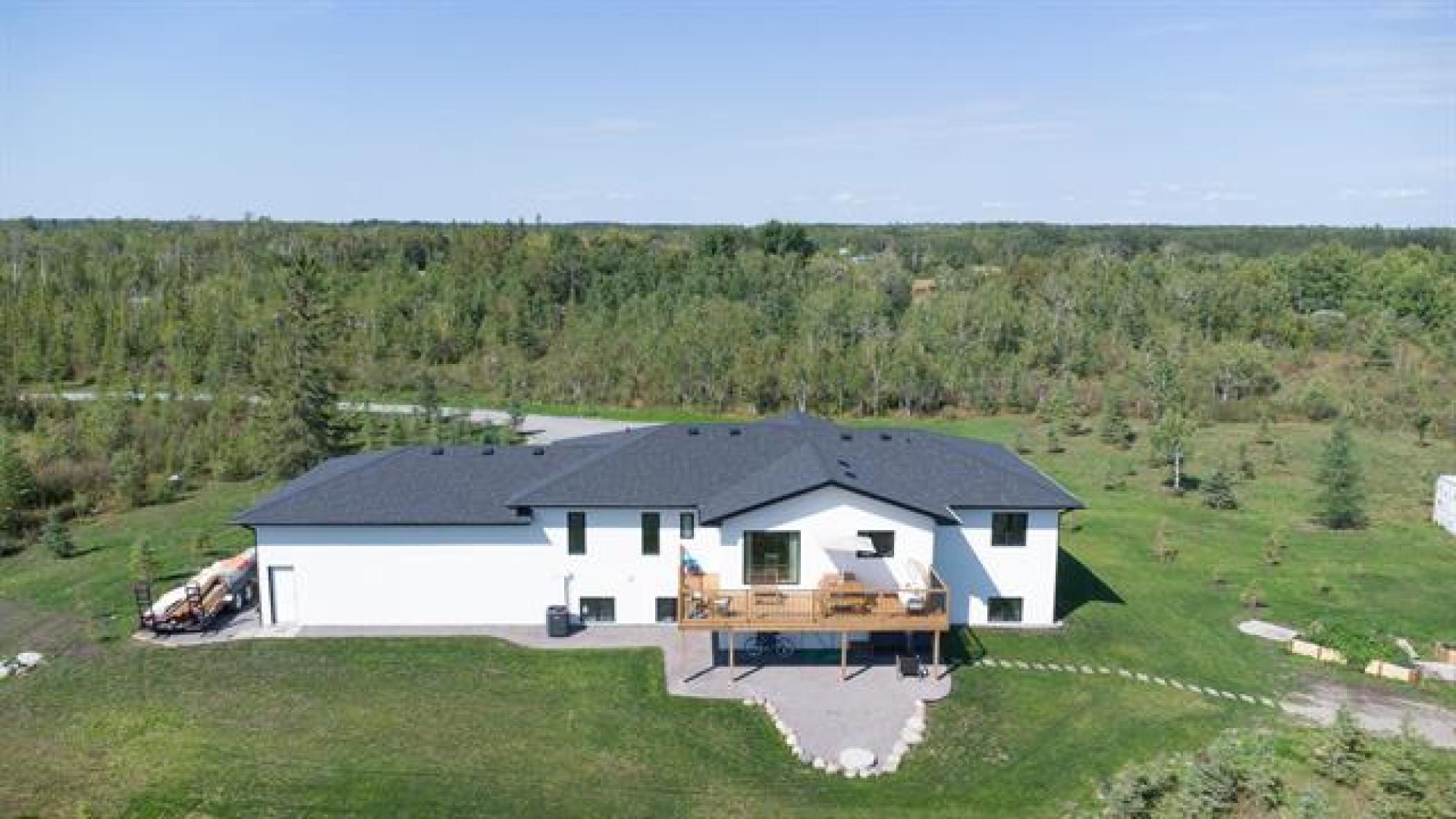 Offers as received. Welcome to this stunning and modern 5-bedroom, 4-bathroom home nestled on a private 5-acre treed lot—your perfect retreat just minutes from town! With 1,880 SF of beautifully finished living space and a 1880 SF fully finished basement, this home offers comfort, style, and room for the whole family. The main floor boasts a bright and airy open-concept layout, featuring a spacious living room with large windows, a custom kitchen with a generous walk-in pantry, and a dining area that opens onto a large deck—perfect for entertaining or relaxing! You'll also find a luxurious primary bedroom with ensuite, two more bedrooms, and another full bath. The lower level offers a sprawling rec room, a massive playroom, two additional bedrooms, and a full bathroom—ideal for guests or a growing family. Step outside, enjoy your own private oasis with a vegetable garden, mature trees, and endless green space for recreation, pets, or peaceful country living! A double attached garage completes this exceptional property, blending modern living with serene country charm! Call to schedule your private showing today!