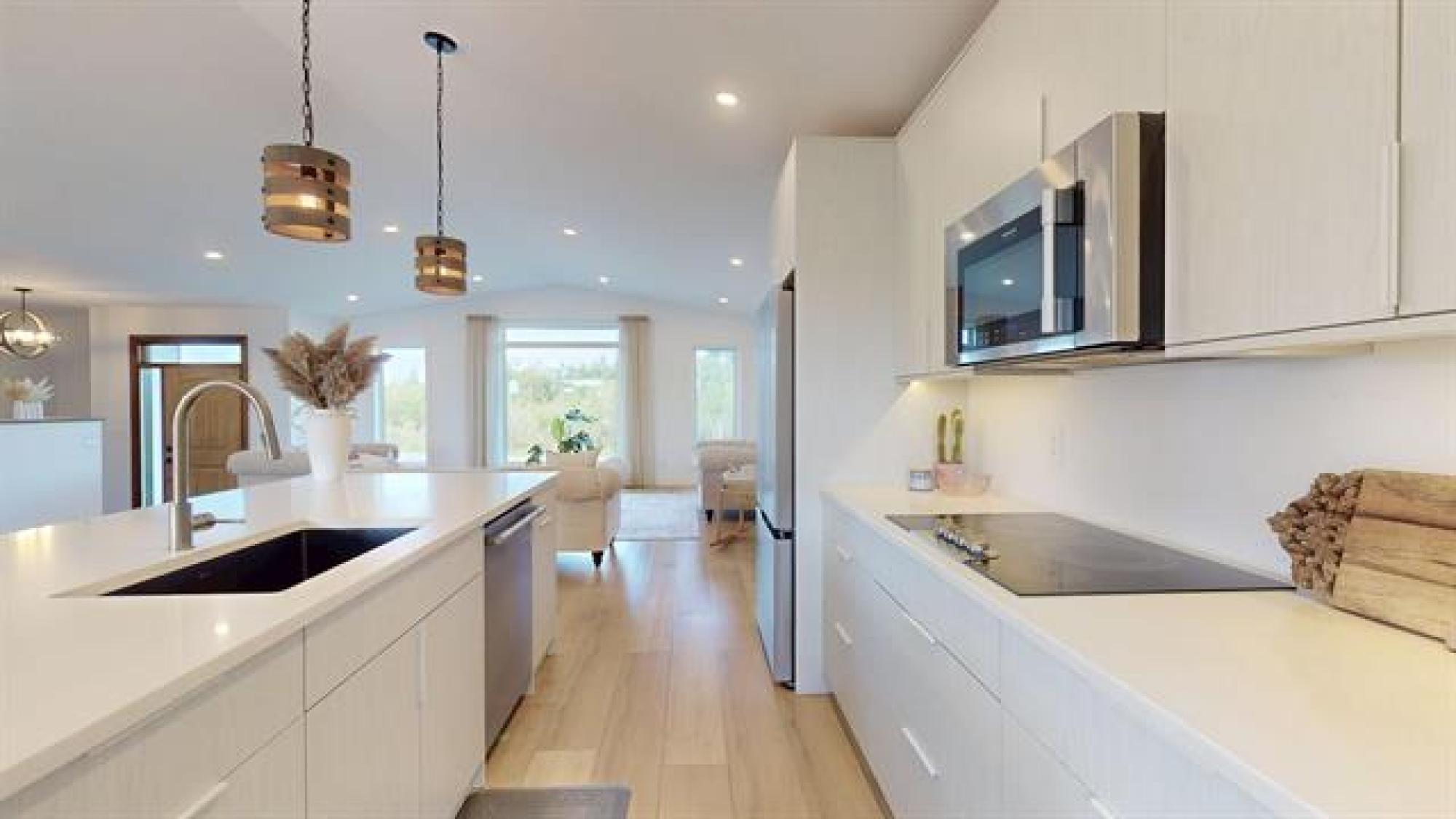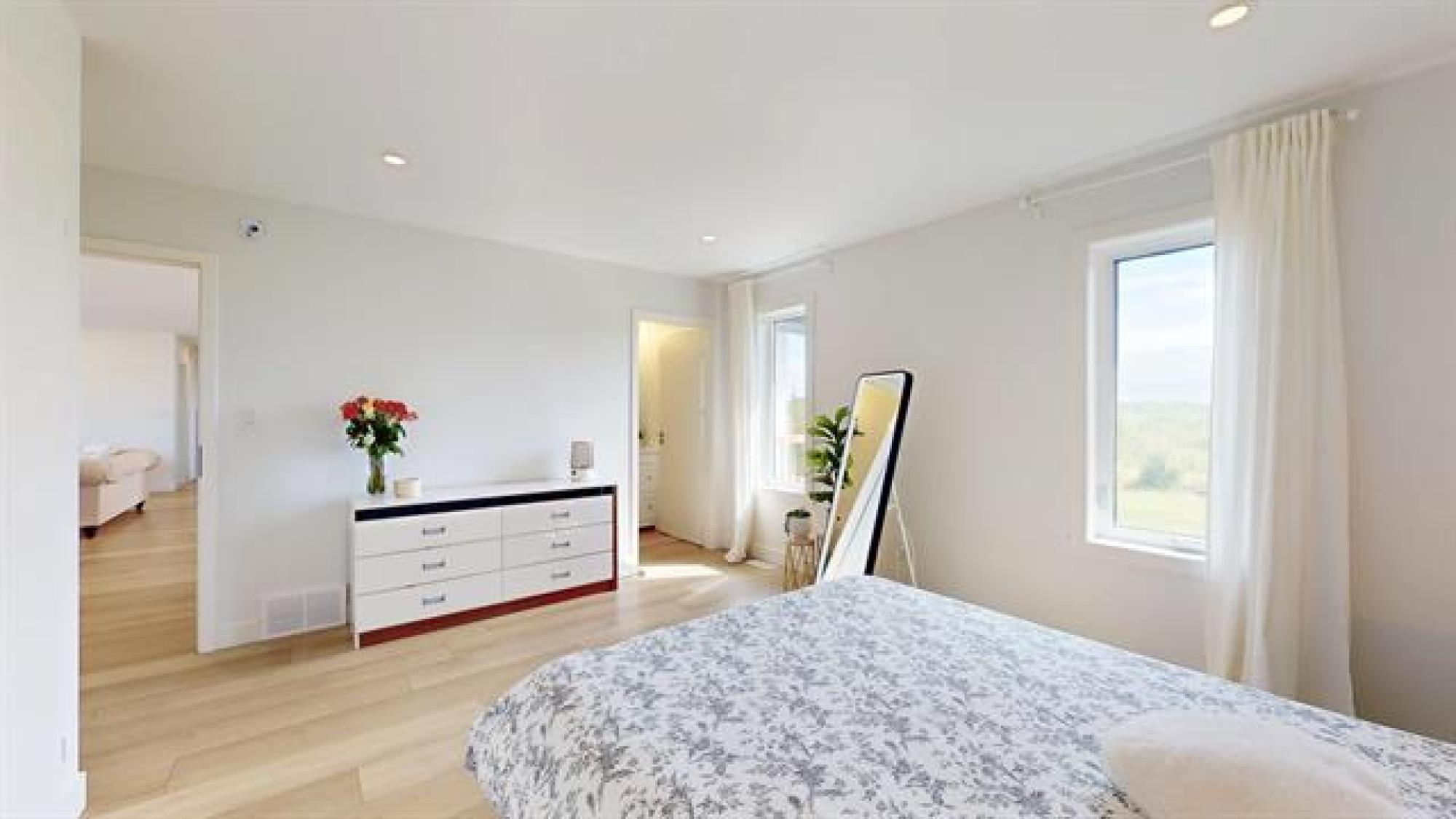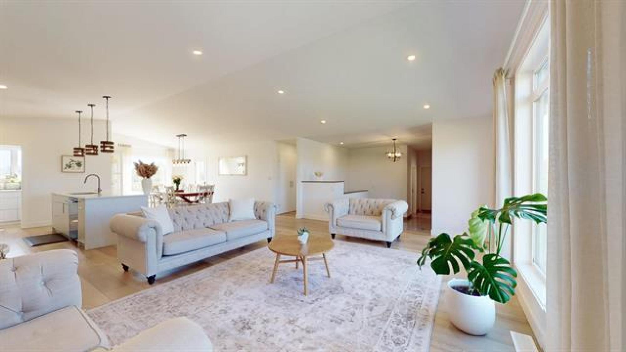 Offers as received. Welcome to this stunning and modern 5-bedroom, 4-bathroom home nestled on a private 5-acre treed lot—your perfect retreat just minutes from town! With 1,880 SF of beautifully finished living space and a 1880 SF fully finished basement, this home offers comfort, style, and room for the whole family. The main floor boasts a bright and airy open-concept layout, featuring a spacious living room with large windows, a custom kitchen with a generous walk-in pantry, and a dining area that opens onto a large deck—perfect for entertaining or relaxing! You'll also find a luxurious primary bedroom with ensuite, two more bedrooms, and another full bath. The lower level offers a sprawling rec room, a massive playroom, two additional bedrooms, and a full bathroom—ideal for guests or a growing family. Step outside, enjoy your own private oasis with a vegetable garden, mature trees, and endless green space for recreation, pets, or peaceful country living! A double attached garage completes this exceptional property, blending modern living with serene country charm! Call to schedule your private showing today!