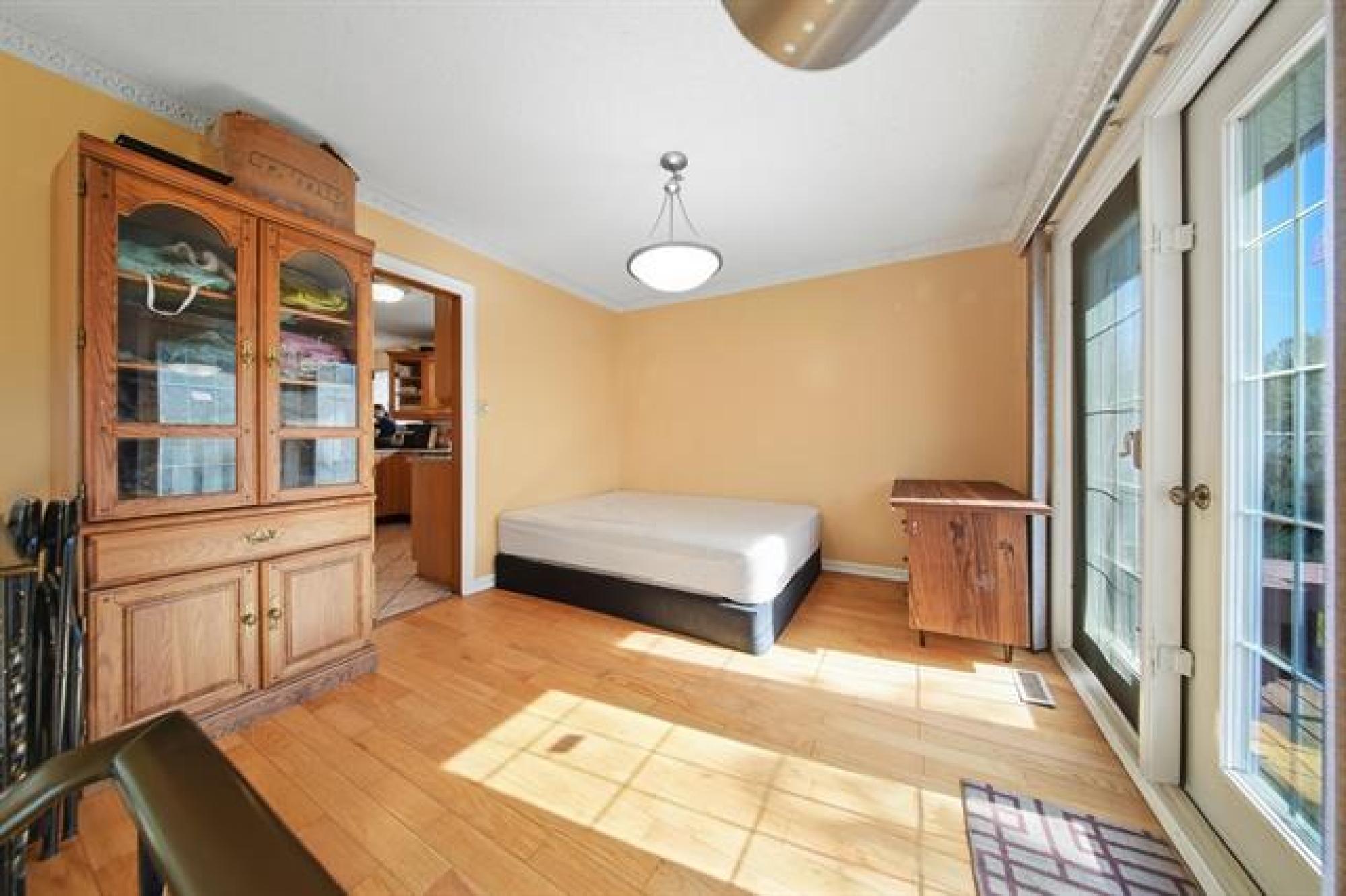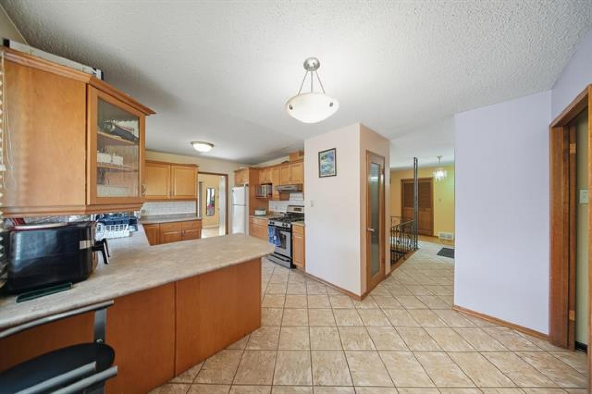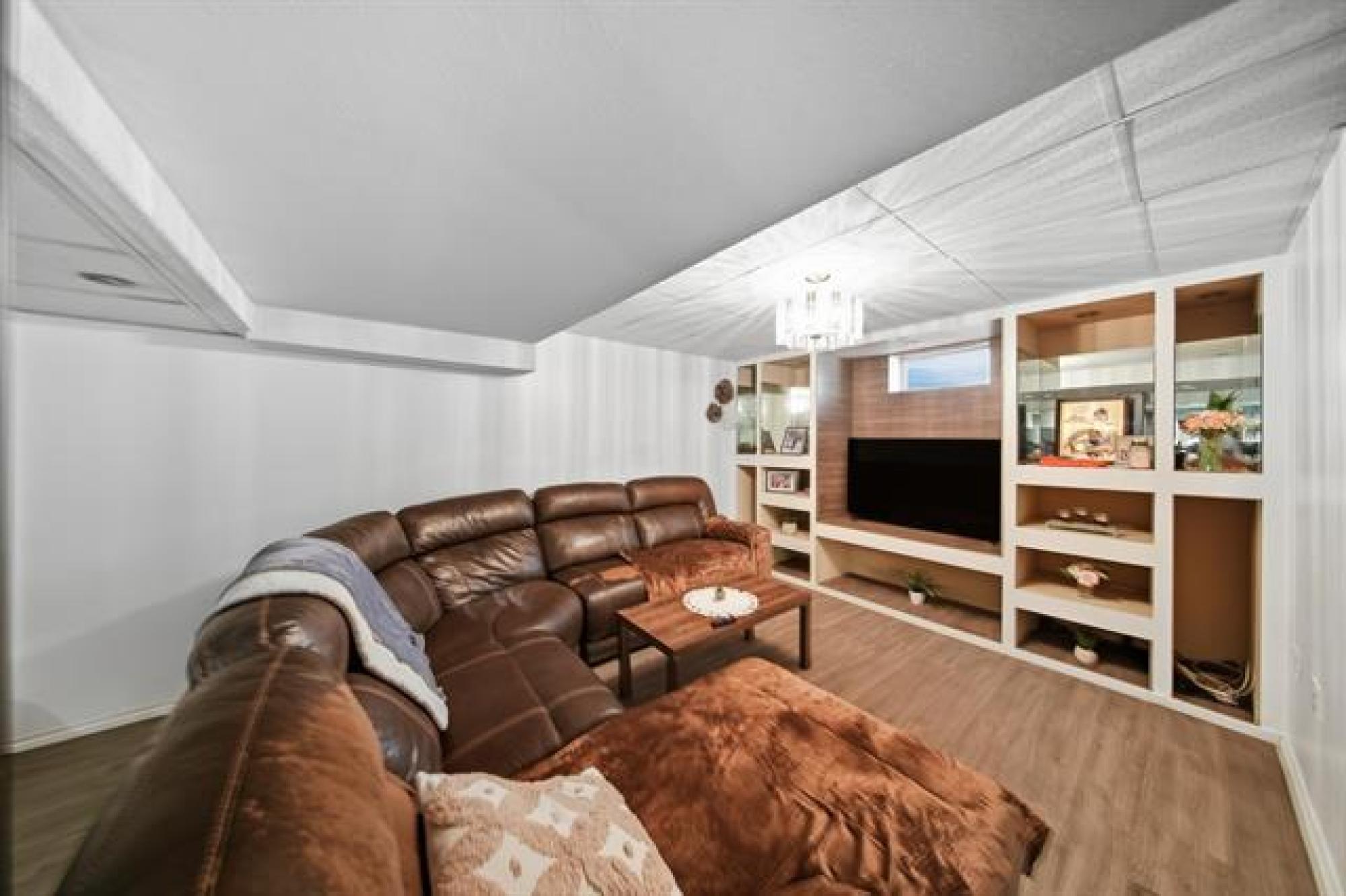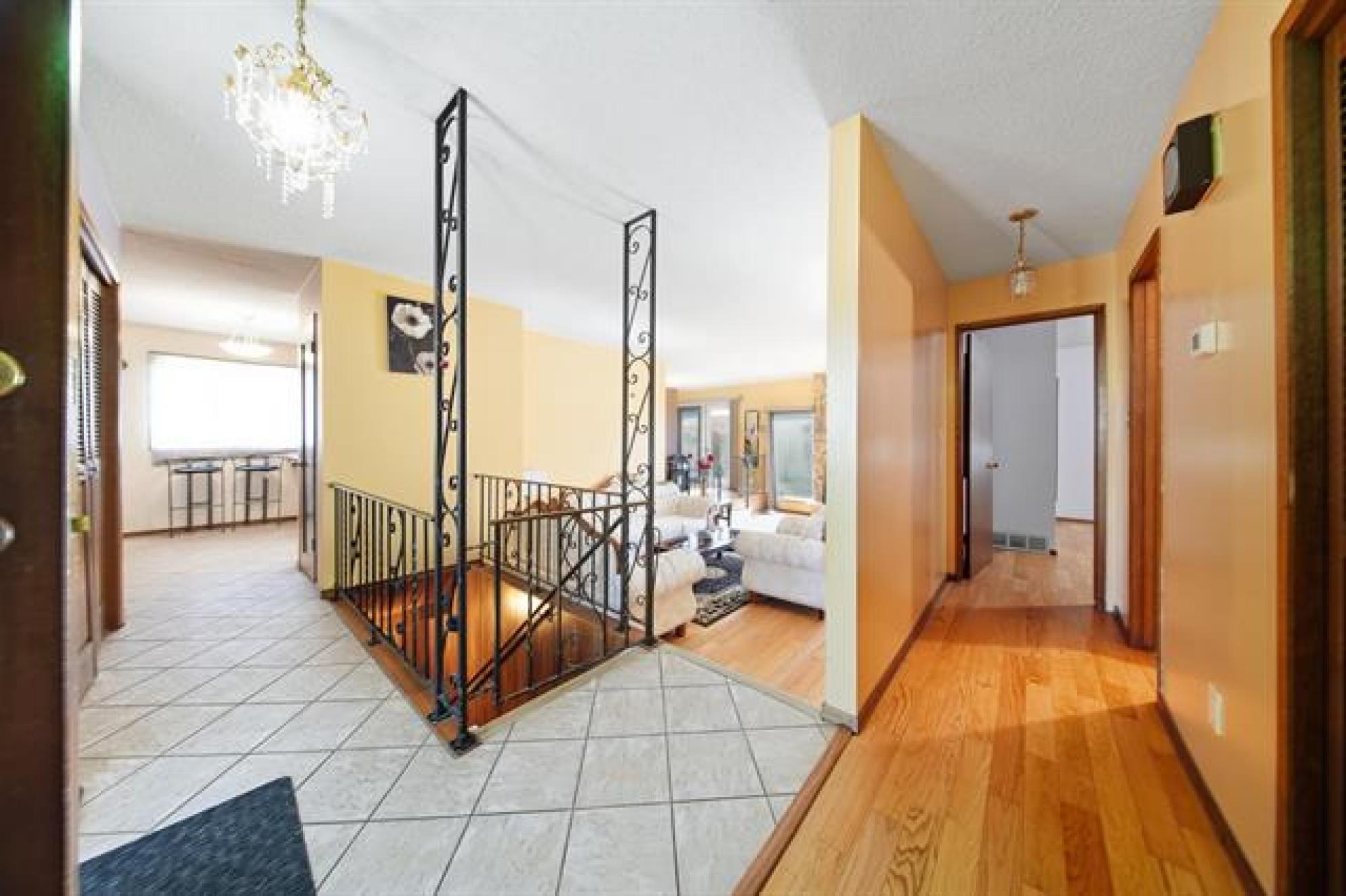 Offer as received. Well-maintained over the years and just steps from Bondar Bay Park, this home offers a fantastic layout perfect for family living. The main floor features a large eat-in kitchen with breakfast nook, tiled backsplash, undermount lighting, and a pantry. The sunken living room boasts a cozy wood-burning fireplace, while the formal dining room includes garden doors that open to a spacious two-tier deck with built-in seating—ideal for entertaining. Hardwood floors run throughout the main level, which also includes 3 generous bedrooms. The primary bedroom offers a 3-piece ensuite and ample closet space. The fully finished basement provides even more living space with a wet bar, 2 bedrooms, a 4-piece bathroom.. Additional features include central air, a 200-amp panel, an oversized single attached garage, and all appliances included.