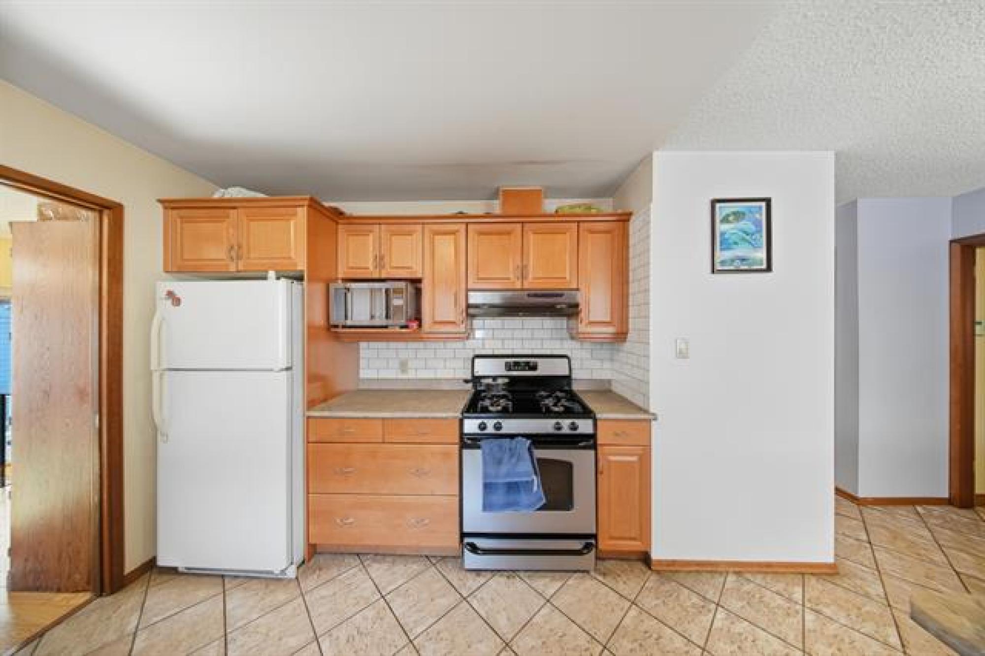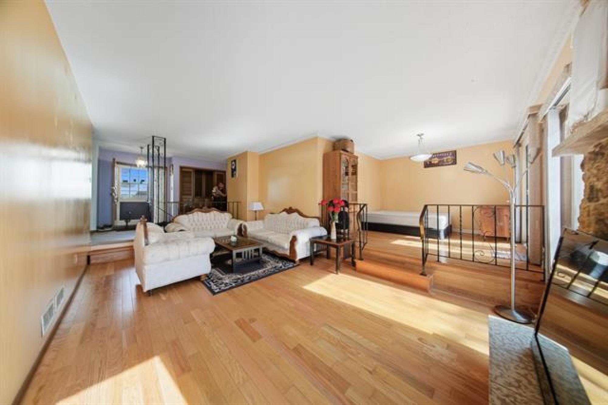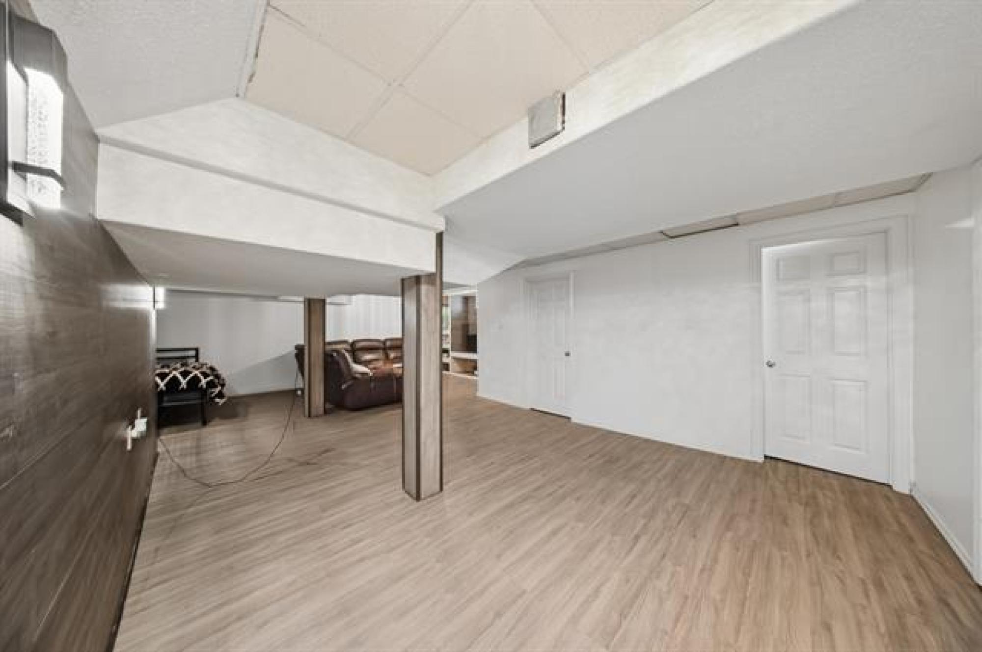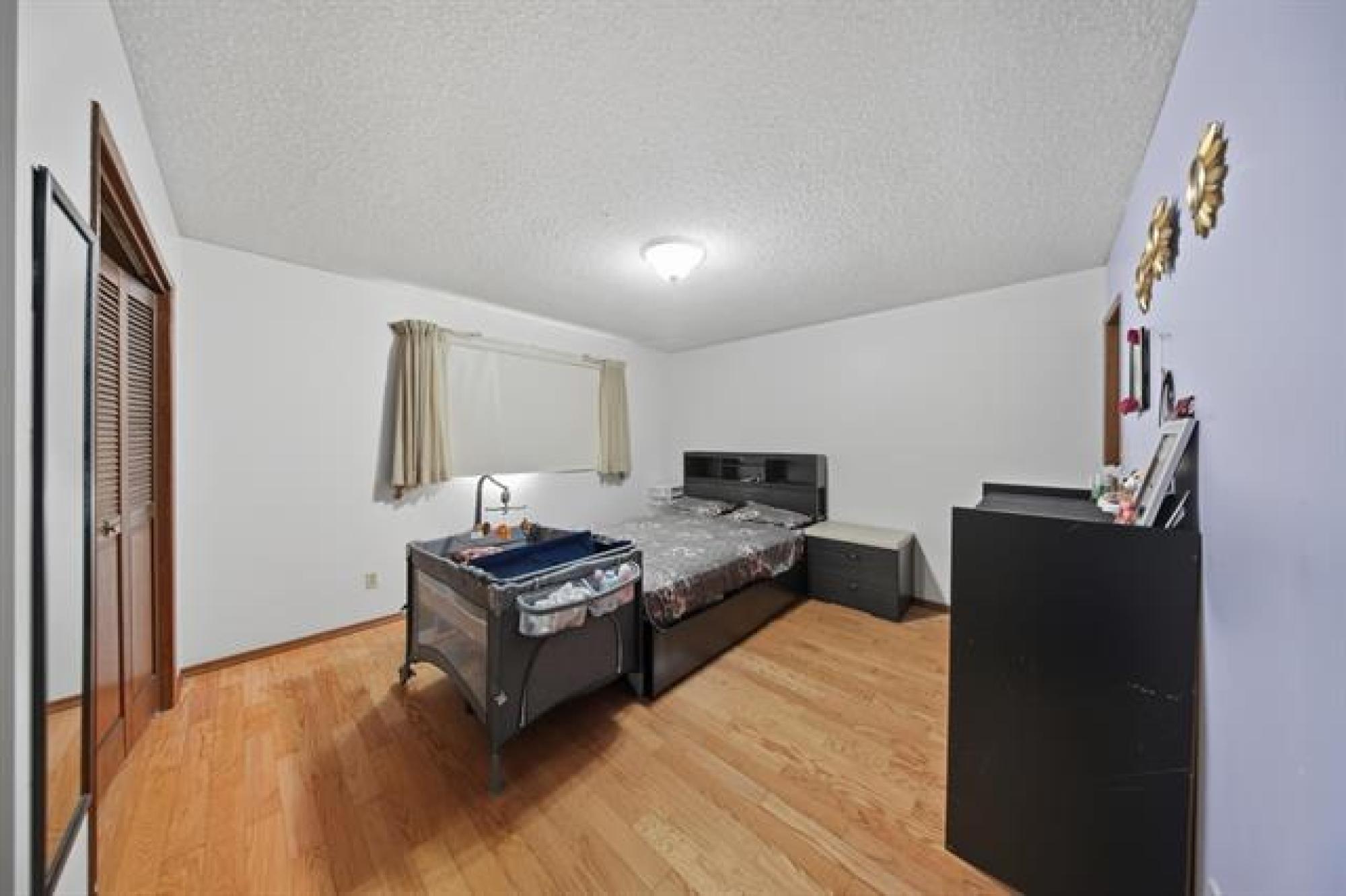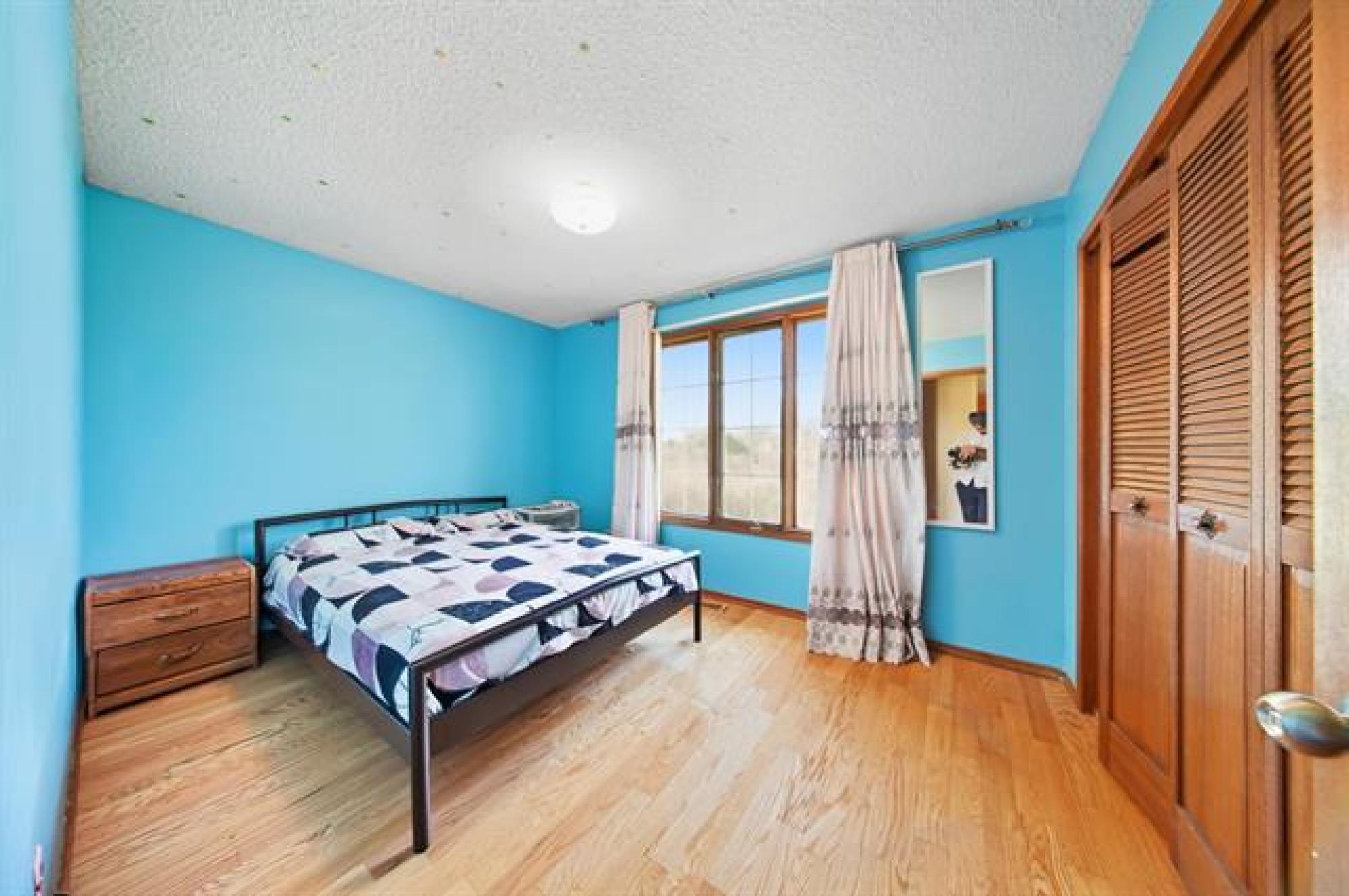 Offer as received. Well-maintained over the years and just steps from Bondar Bay Park, this home offers a fantastic layout perfect for family living. The main floor features a large eat-in kitchen with breakfast nook, tiled backsplash, undermount lighting, and a pantry. The sunken living room boasts a cozy wood-burning fireplace, while the formal dining room includes garden doors that open to a spacious two-tier deck with built-in seating—ideal for entertaining. Hardwood floors run throughout the main level, which also includes 3 generous bedrooms. The primary bedroom offers a 3-piece ensuite and ample closet space. The fully finished basement provides even more living space with a wet bar, 2 bedrooms, a 4-piece bathroom.. Additional features include central air, a 200-amp panel, an oversized single attached garage, and all appliances included.