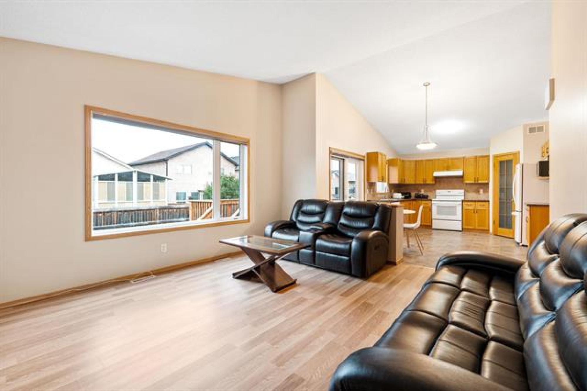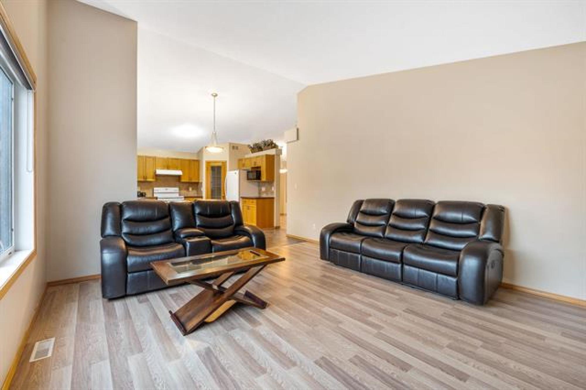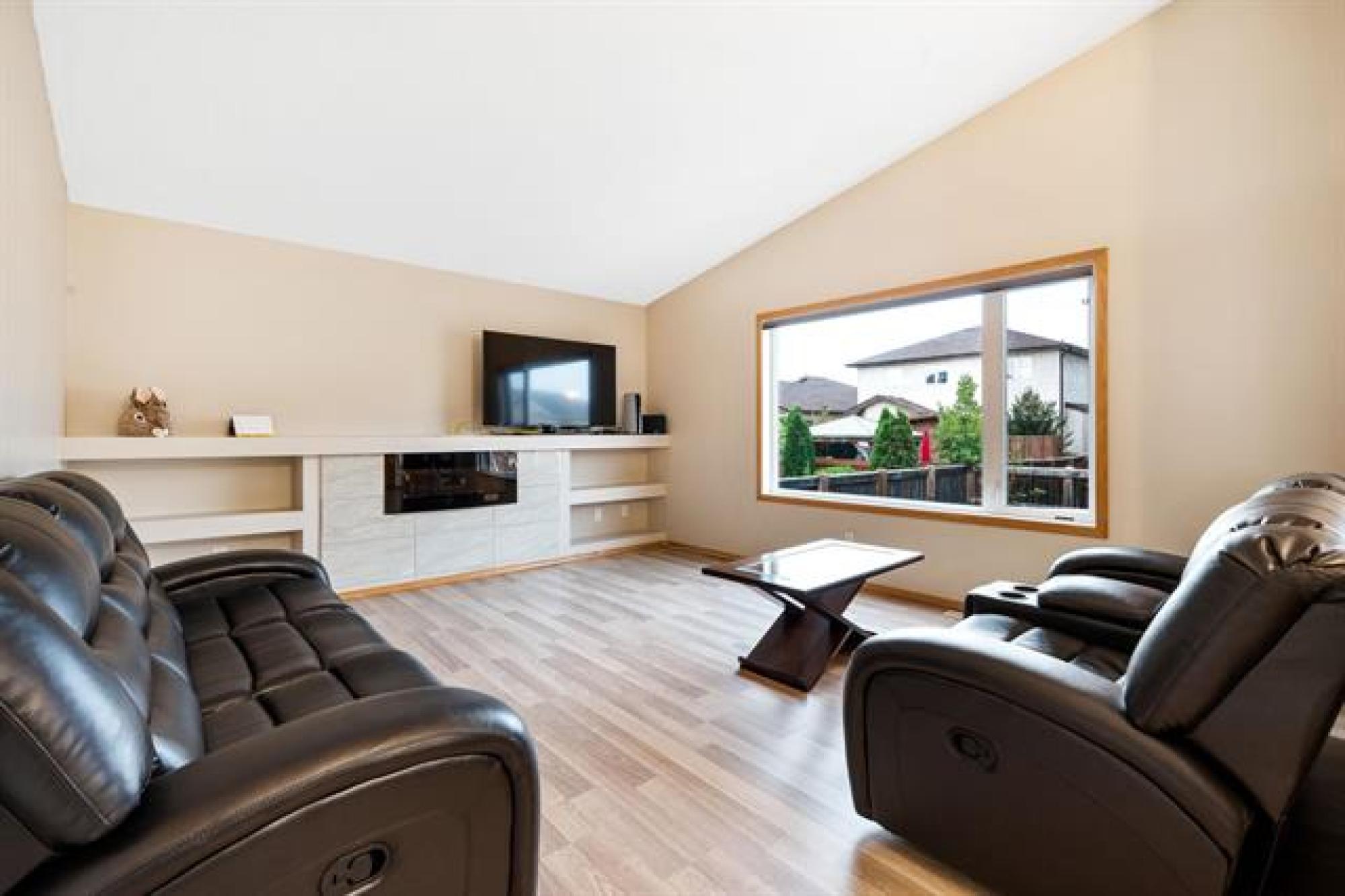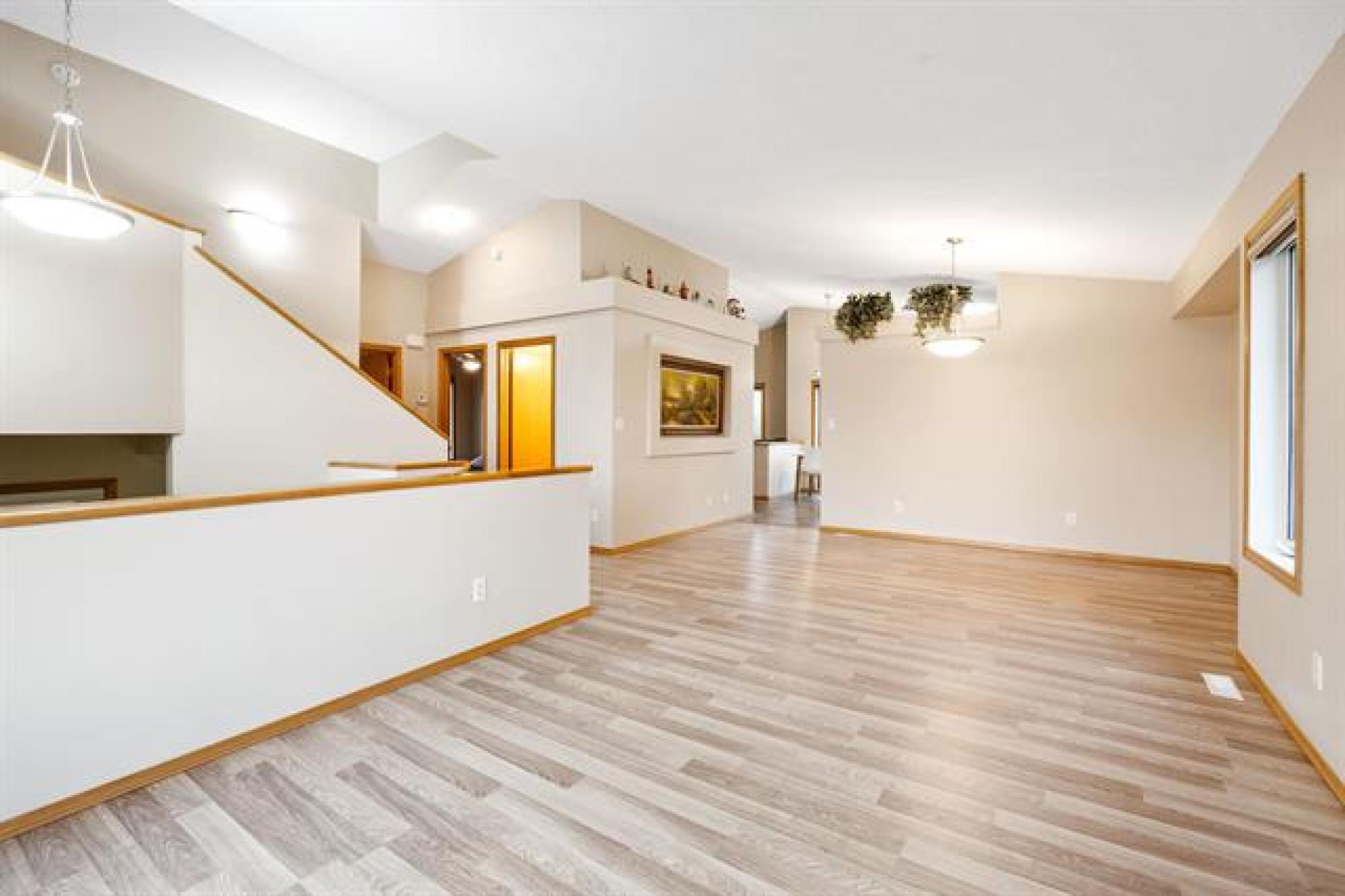 Welcome to this beautiful cab-over home boasting 1,740 sq.ft. of living space also offering five bedrooms and three full bathrooms in the highly sought-after community of Amber Trails. Main level features a bright and spacious living/dining room, a large eat-in kitchen with oak cabinetry and walk-in pantry, as well as a 4 piece full bathroom. The main floor also offers two additional well-sized bedrooms and a full 4-piece bathroom. The primary suite is located on its own level and includes a walk-in closet with a 4-piece ensuite bathroom. A fully finished basement built in 2019 with a large recreation room, two bedrooms, a full bathroom with tiled flooring and a laundry room. Built on piles for lasting durability, this home also includes an insulated double attached garage and a nicely landscaped fenced yard with a large 16 x 16 deck. New vinyl plank flooring on main floor & master bedroom bedroom, interior paint in 2024. Situated close to schools, parks, shopping, and all amenities.
