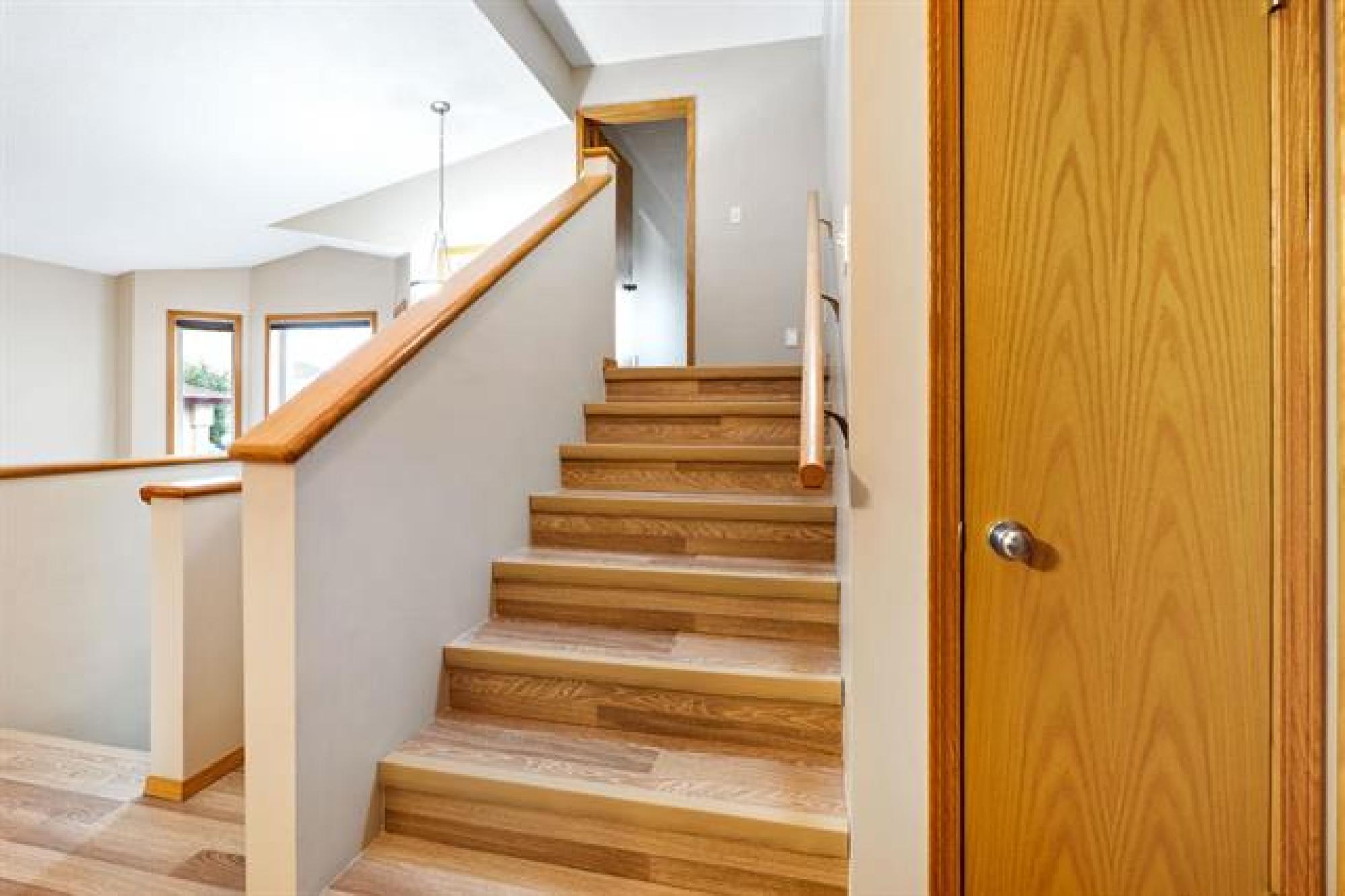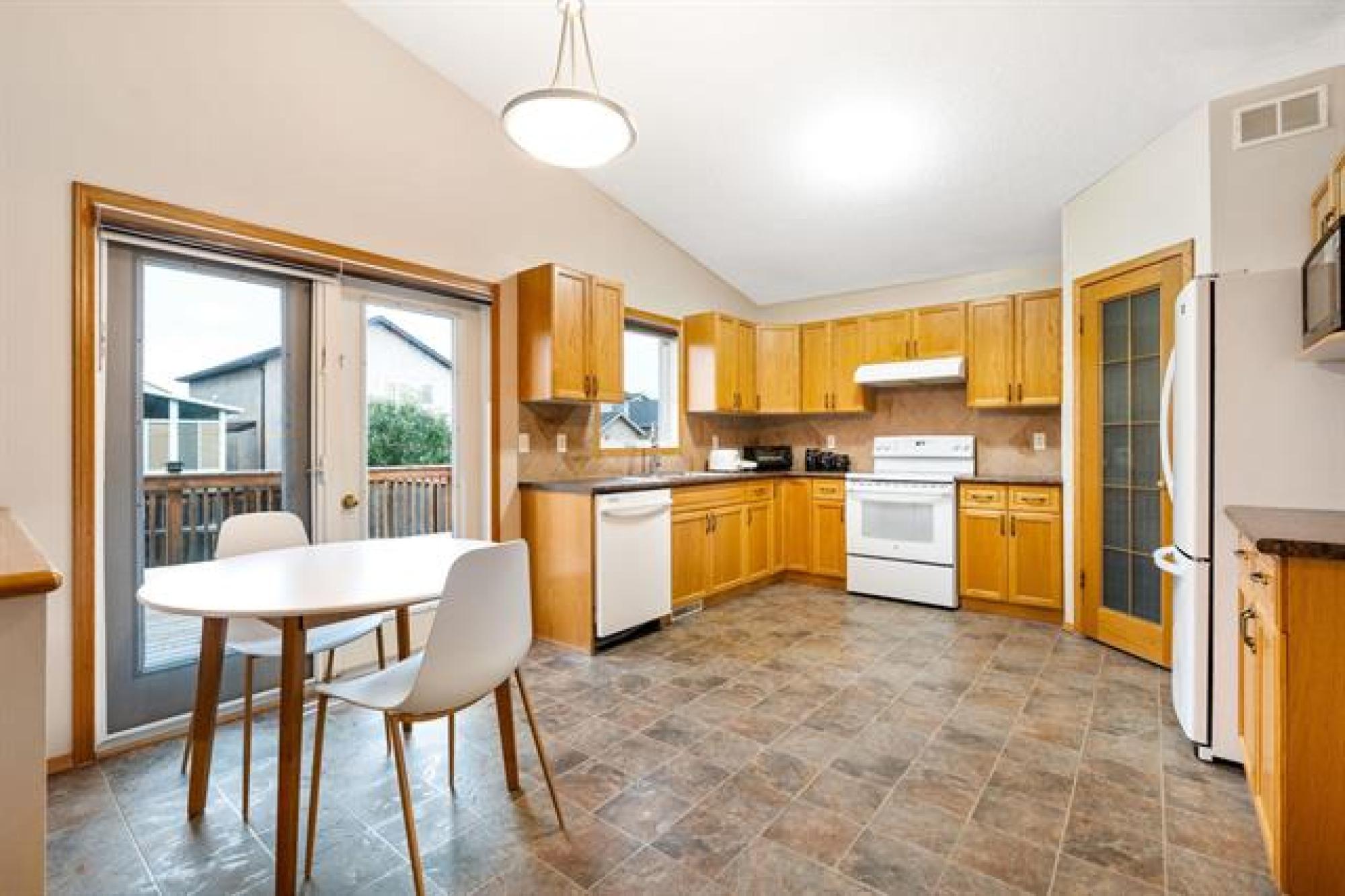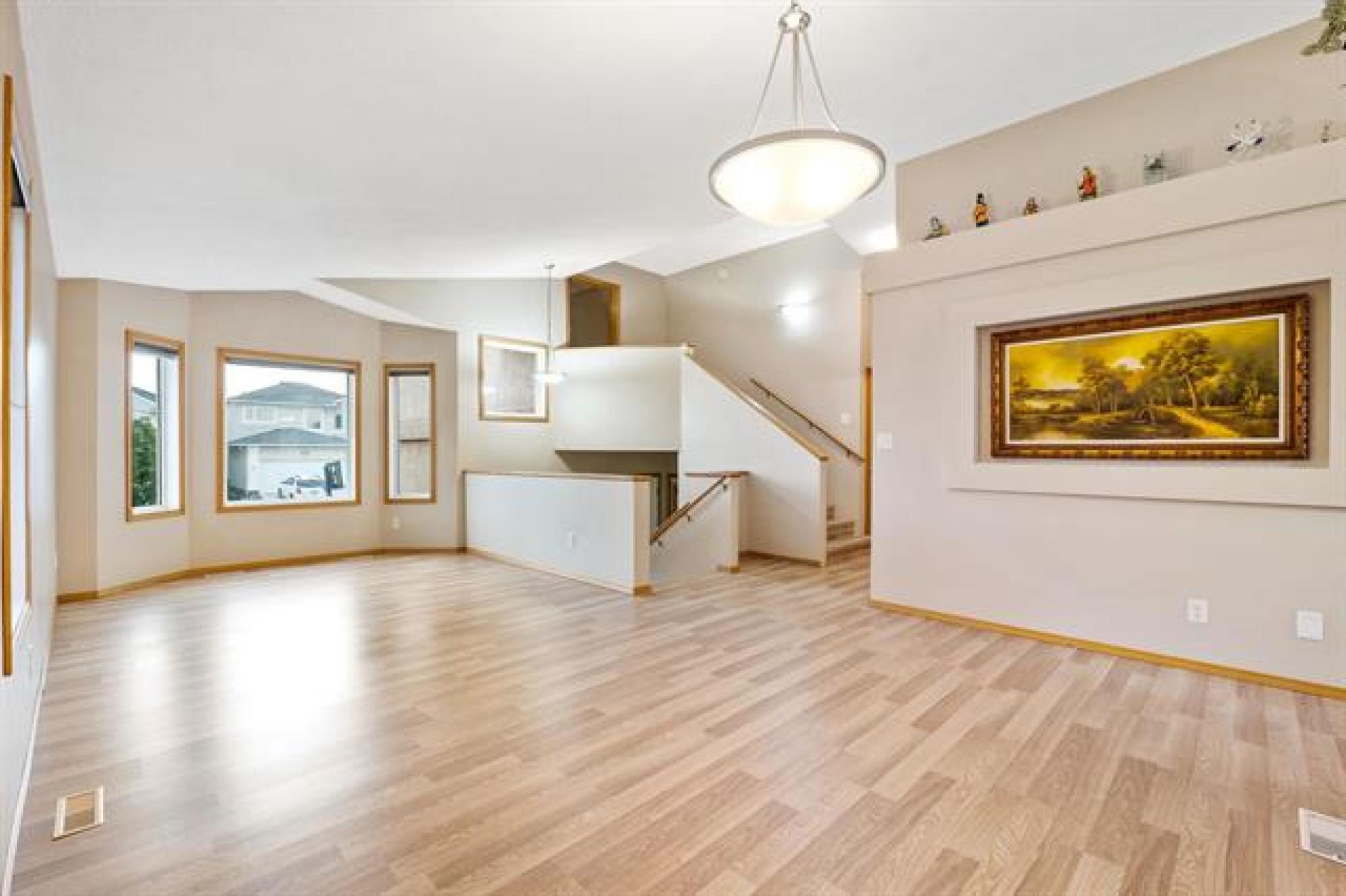 Welcome to this beautiful cab-over home boasting 1,740 sq.ft. of living space also offering five bedrooms and three full bathrooms in the highly sought-after community of Amber Trails. Main level features a bright and spacious living/dining room, a large eat-in kitchen with oak cabinetry and walk-in pantry, as well as a 4 piece full bathroom. The main floor also offers two additional well-sized bedrooms and a full 4-piece bathroom. The primary suite is located on its own level and includes a walk-in closet with a 4-piece ensuite bathroom. A fully finished basement built in 2019 with a large recreation room, two bedrooms, a full bathroom with tiled flooring and a laundry room. Built on piles for lasting durability, this home also includes an insulated double attached garage and a nicely landscaped fenced yard with a large 16 x 16 deck. New vinyl plank flooring on main floor & master bedroom bedroom, interior paint in 2024. Situated close to schools, parks, shopping, and all amenities.