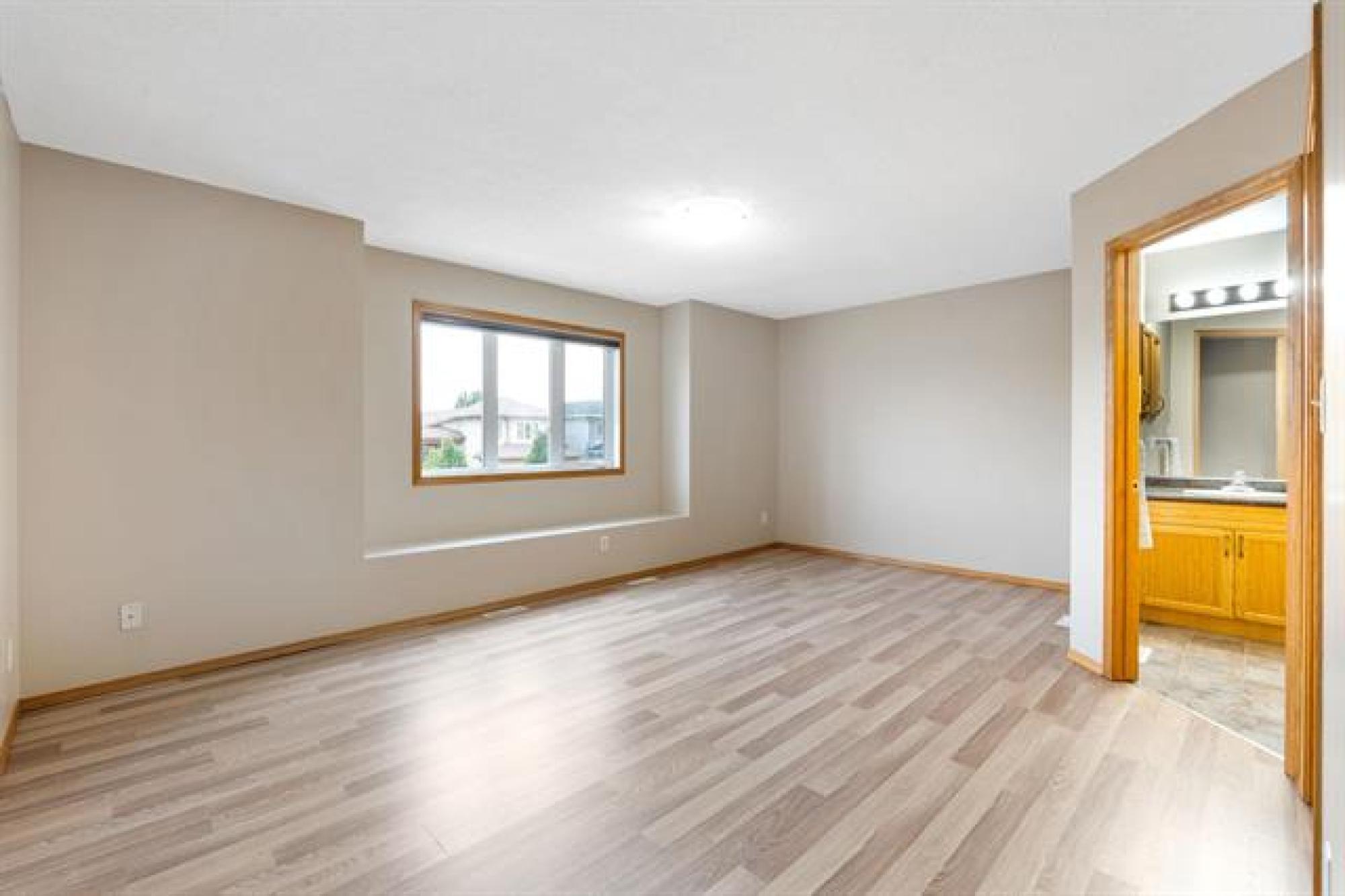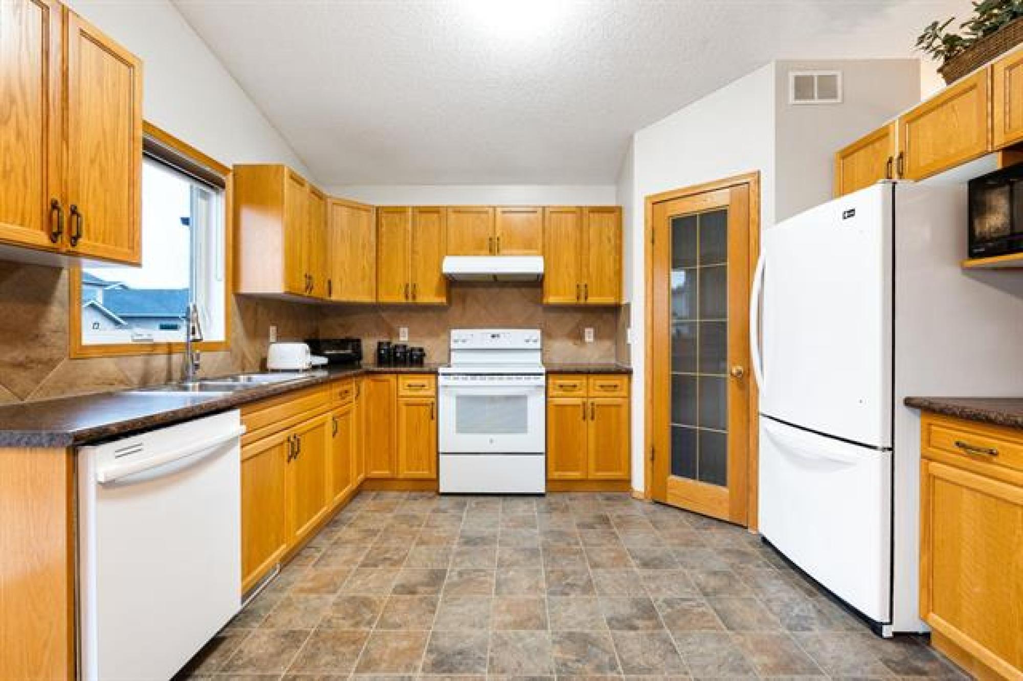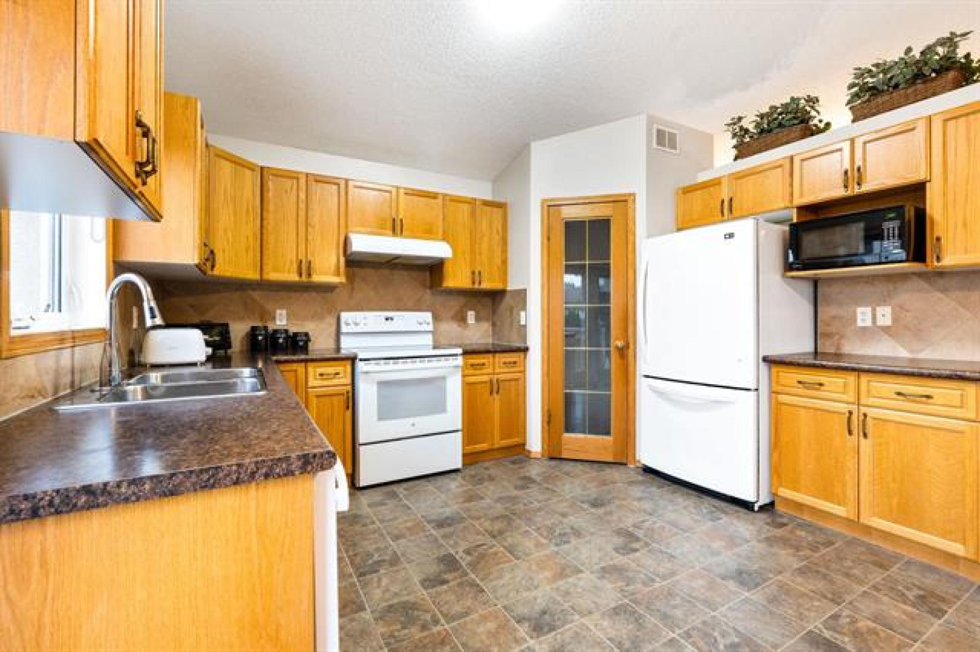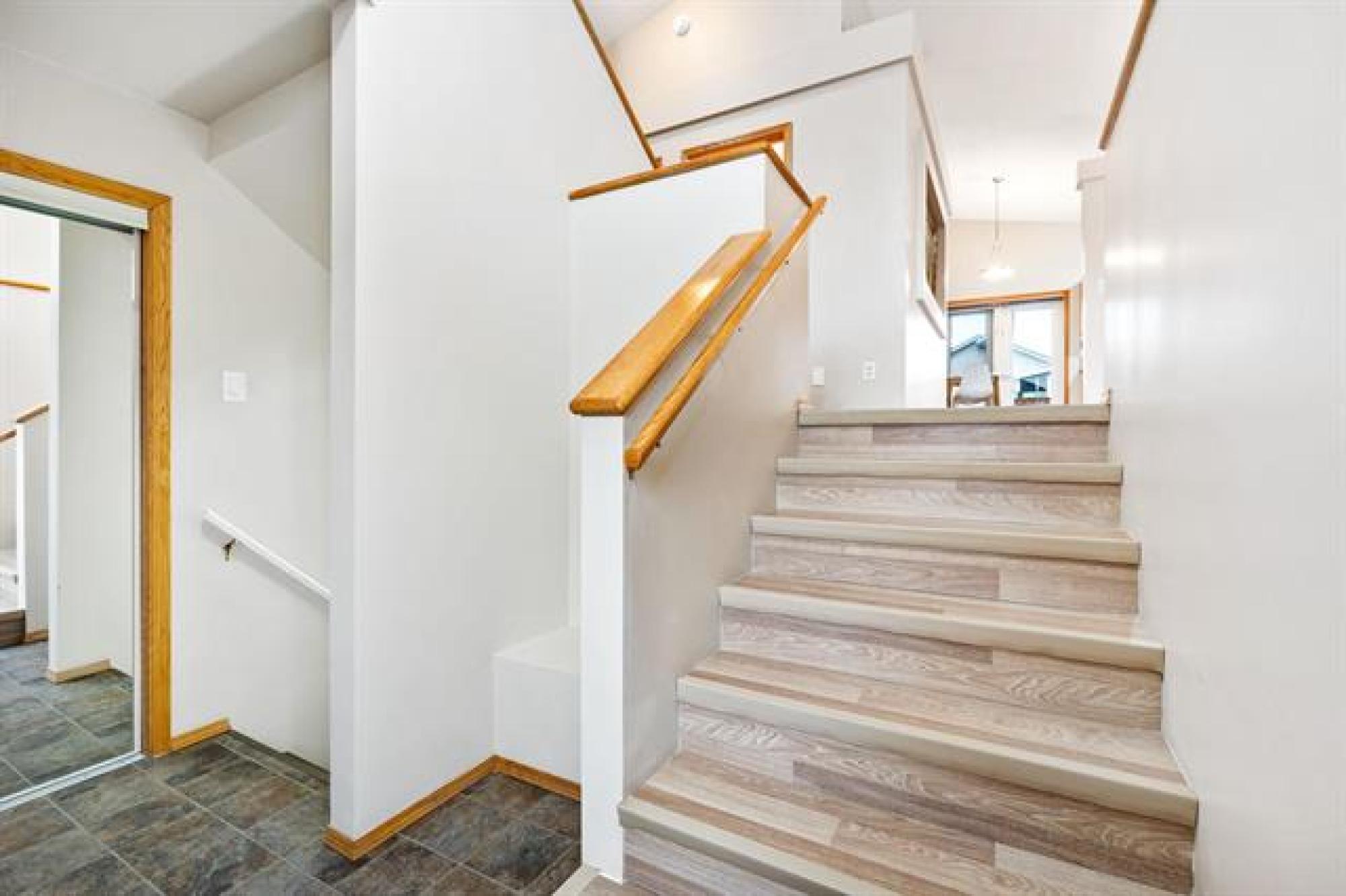 Welcome to this beautiful cab-over home boasting 1,740 sq.ft. of living space also offering five bedrooms and three full bathrooms in the highly sought-after community of Amber Trails. Main level features a bright and spacious living/dining room, a large eat-in kitchen with oak cabinetry and walk-in pantry, as well as a 4 piece full bathroom. The main floor also offers two additional well-sized bedrooms and a full 4-piece bathroom. The primary suite is located on its own level and includes a walk-in closet with a 4-piece ensuite bathroom. A fully finished basement built in 2019 with a large recreation room, two bedrooms, a full bathroom with tiled flooring and a laundry room. Built on piles for lasting durability, this home also includes an insulated double attached garage and a nicely landscaped fenced yard with a large 16 x 16 deck. New vinyl plank flooring on main floor & master bedroom bedroom, interior paint in 2024. Situated close to schools, parks, shopping, and all amenities.