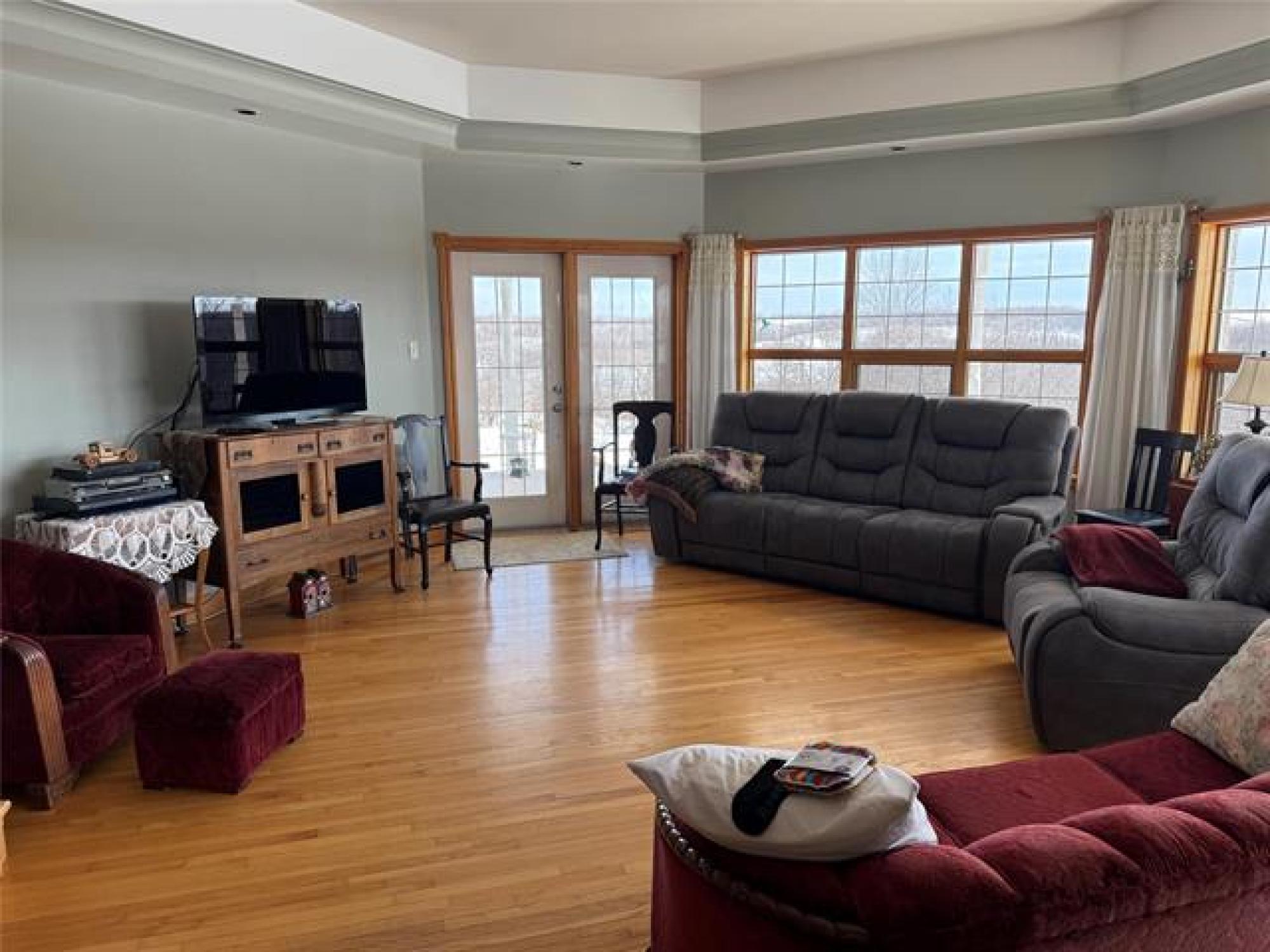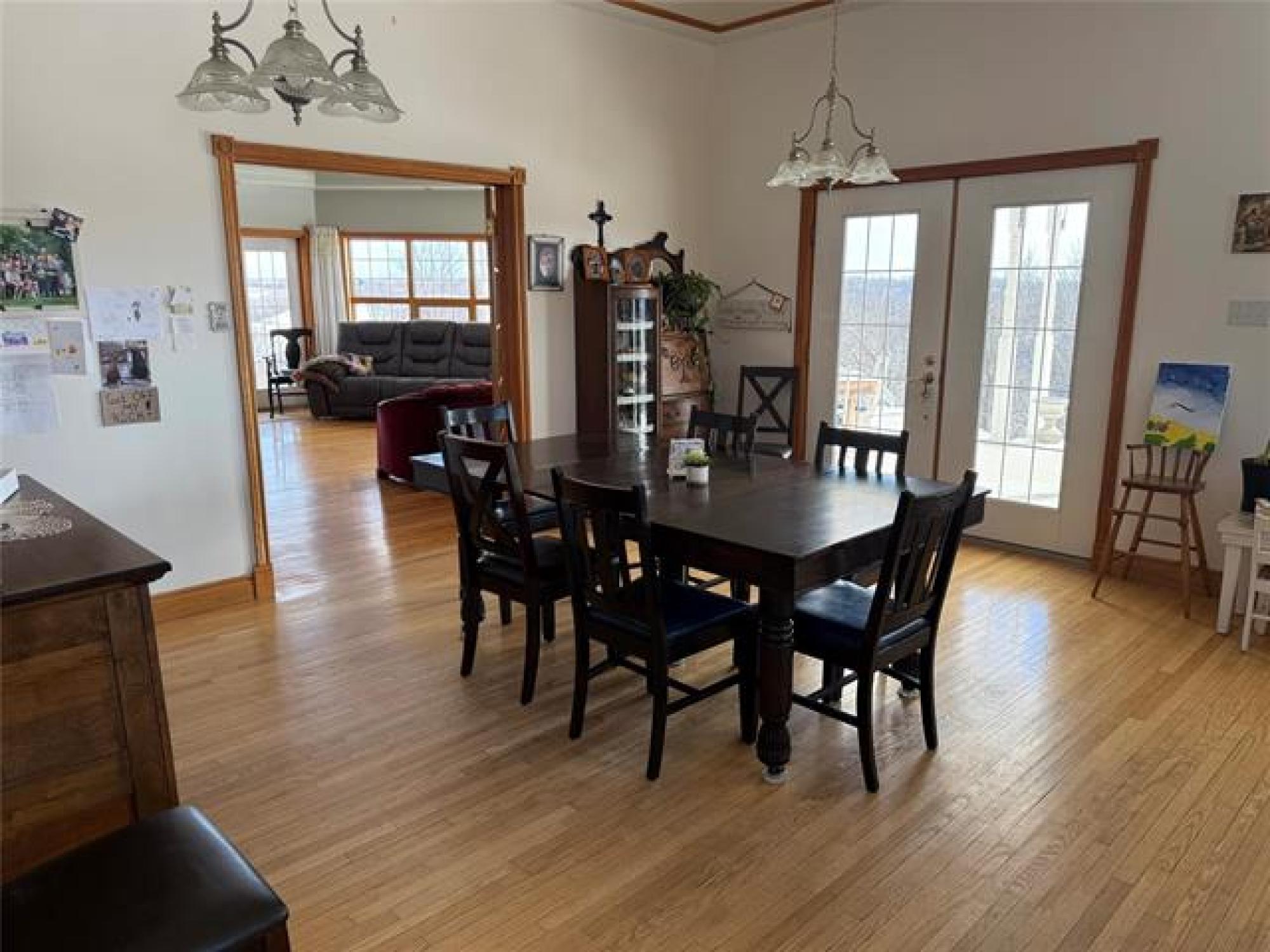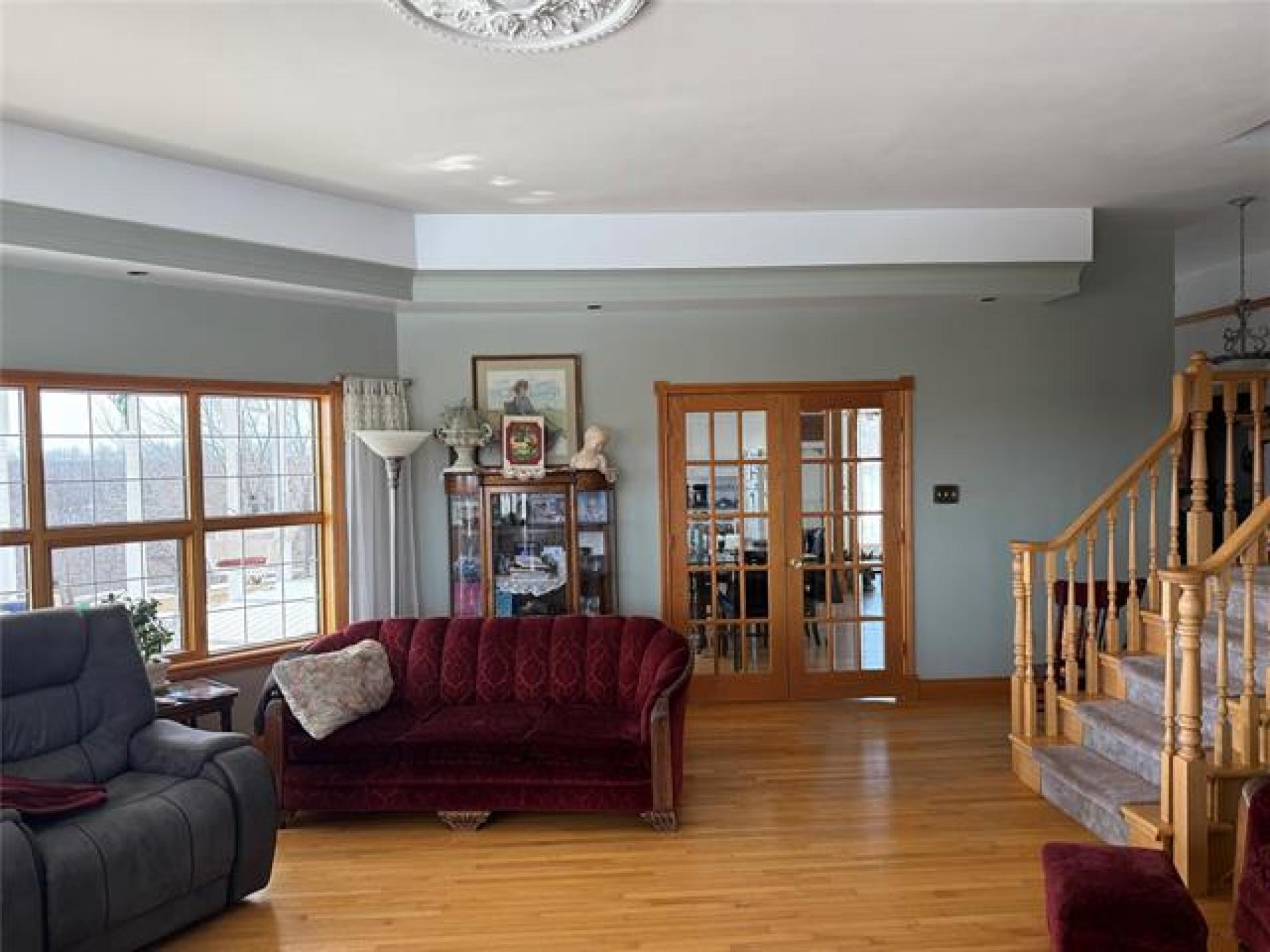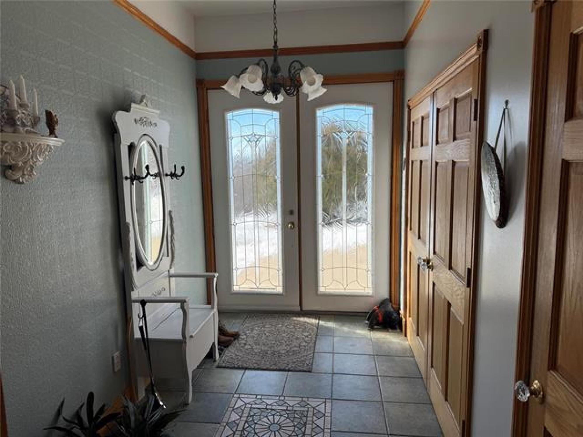Scenic & secluded, this private 40 acre property is just 15 minutes from Carberry & 45 minutes to Brandon. Curved driveway lined with mature trees leads to a beautifully designed custom home, perfectly positioned on a hilltop plateau. Landscaped yard, manicured lawn, large garden & workshop/storage shed in a classic red barn style, w/excellent year round access. The impressive 3,850 sq ft home includes a triple attached garage. Inside, the foyer opens to tile & hardwood flooring, 10 ft cove ceilings, enhancing the natural light from large south facing windows. Open concept kitchen/dining area offer custom cabinetry & high end appliances. French doors lead to a bright living room w/oak staircase while patio doors open to a covered wraparound veranda w/stunning valley views. Main floor includes a spacious laundry room, powder room & executive office w/wood finishes. Upstairs boasts 5 bedrooms, 2 full baths, including a primary suite w/ensuite & walk in closet. A large family/games room w/extra storage is accessible from the second floor or garage. Geothermal heating/cooling & aquifer water supply complete this exceptional property. Location mapped incorrectly for privacy-contact your agent for details.