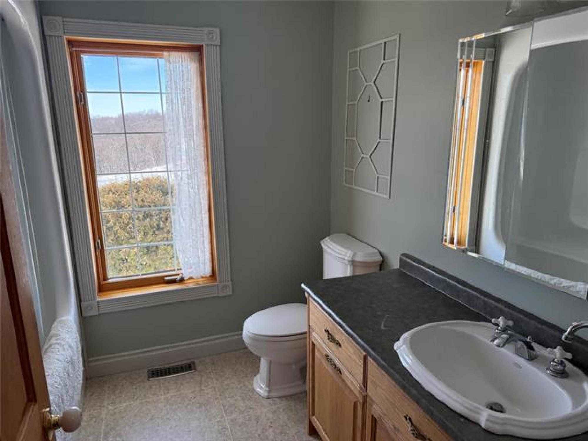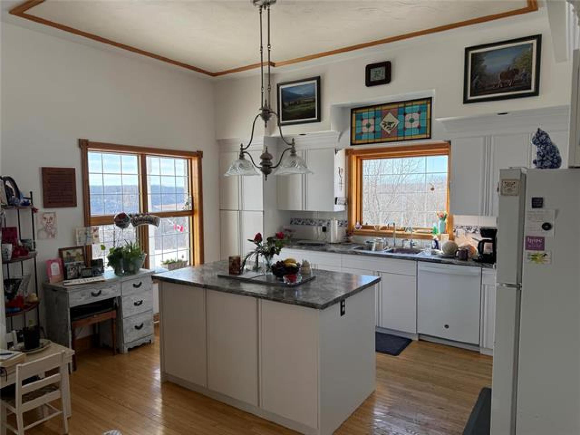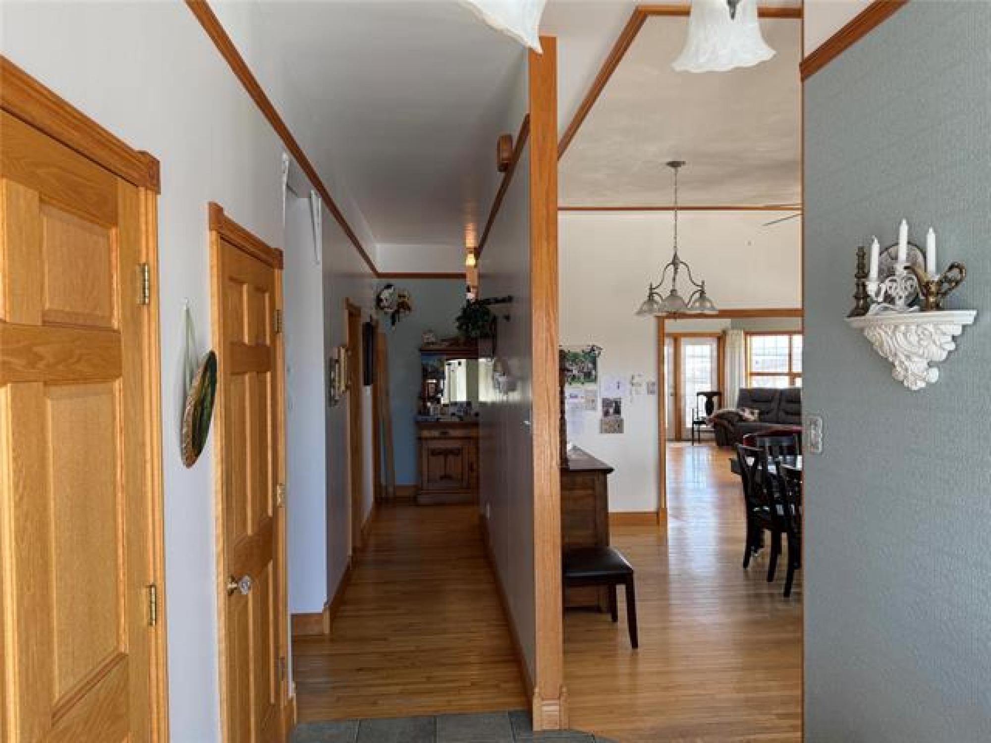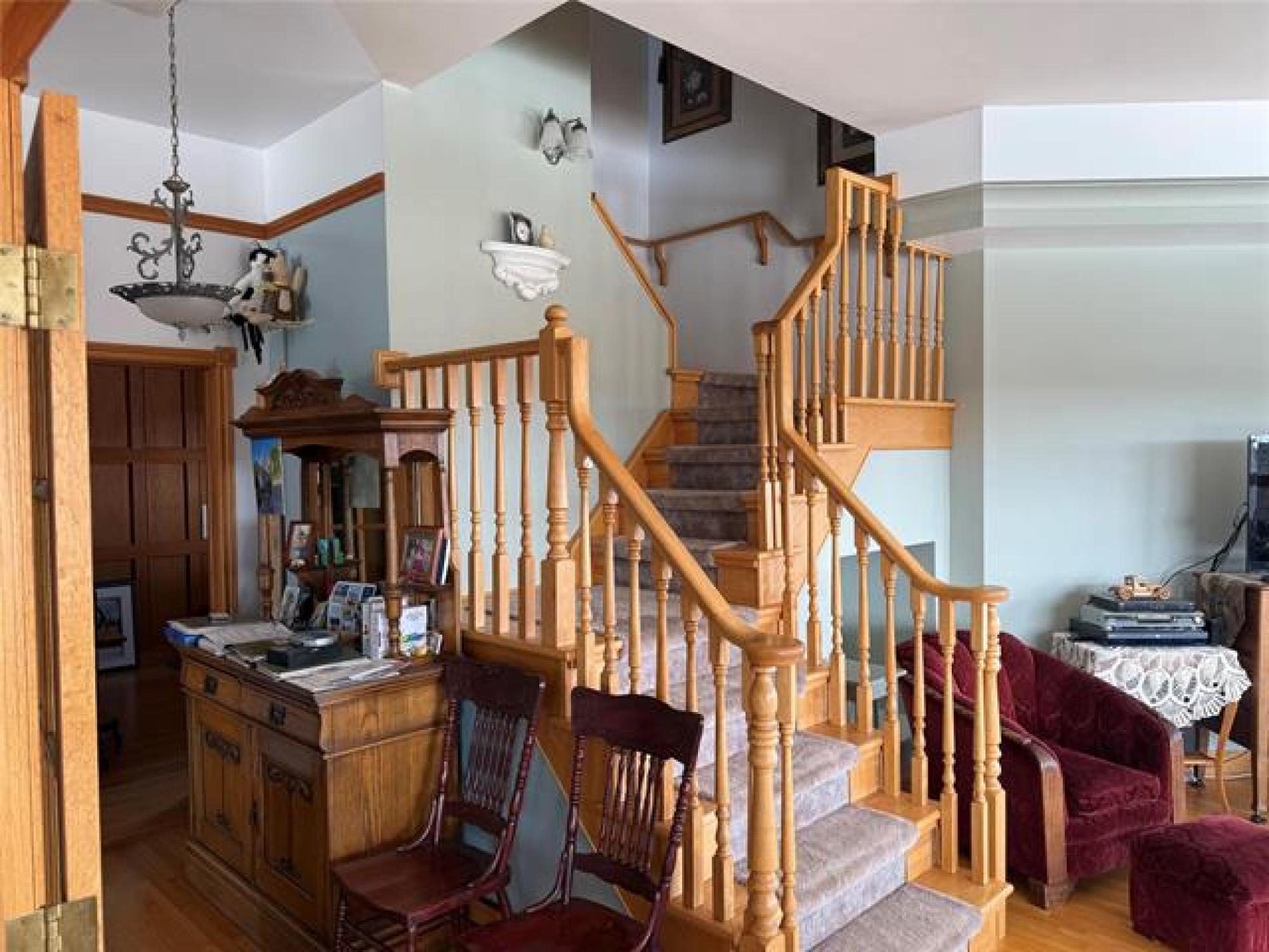 Scenic & secluded, this private 40 acre property is just 15 minutes from Carberry & 45 minutes to Brandon. Curved driveway lined with mature trees leads to a beautifully designed custom home, perfectly positioned on a hilltop plateau. Landscaped yard, manicured lawn, large garden & workshop/storage shed in a classic red barn style, w/excellent year round access. The impressive 3,850 sq ft home includes a triple attached garage. Inside, the foyer opens to tile & hardwood flooring, 10 ft cove ceilings, enhancing the natural light from large south facing windows. Open concept kitchen/dining area offer custom cabinetry & high end appliances. French doors lead to a bright living room w/oak staircase while patio doors open to a covered wraparound veranda w/stunning valley views. Main floor includes a spacious laundry room, powder room & executive office w/wood finishes. Upstairs boasts 5 bedrooms, 2 full baths, including a primary suite w/ensuite & walk in closet. A large family/games room w/extra storage is accessible from the second floor or garage. Geothermal heating/cooling & aquifer water supply complete this exceptional property. Location mapped incorrectly for privacy-contact your agent for details.