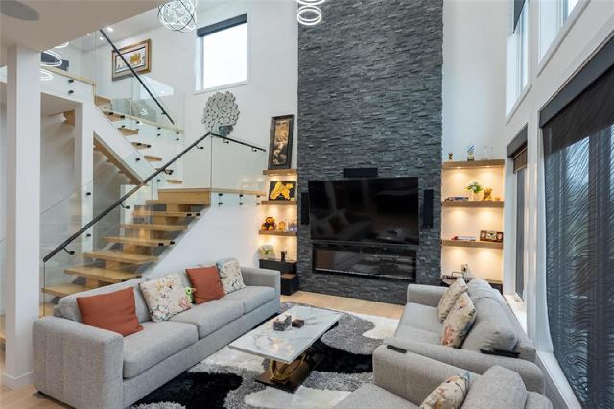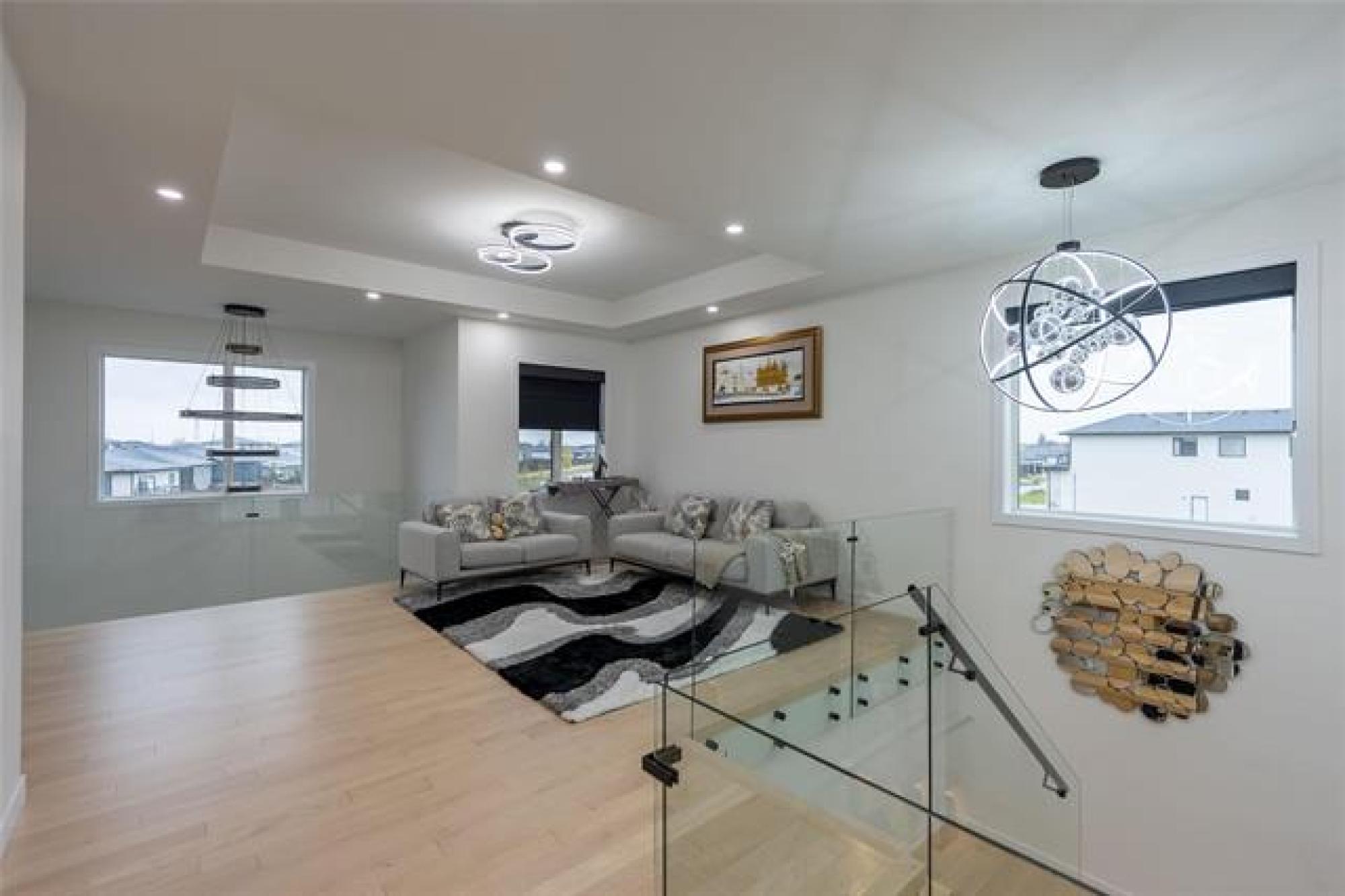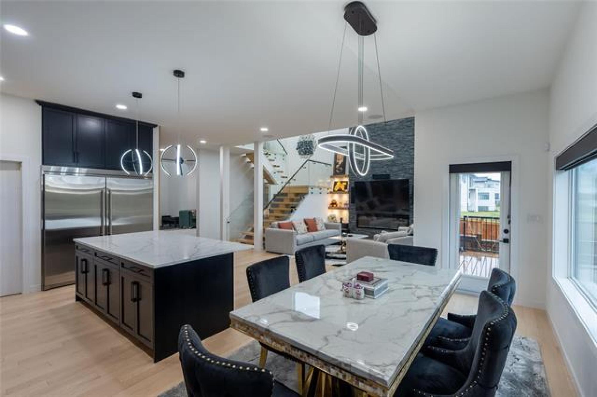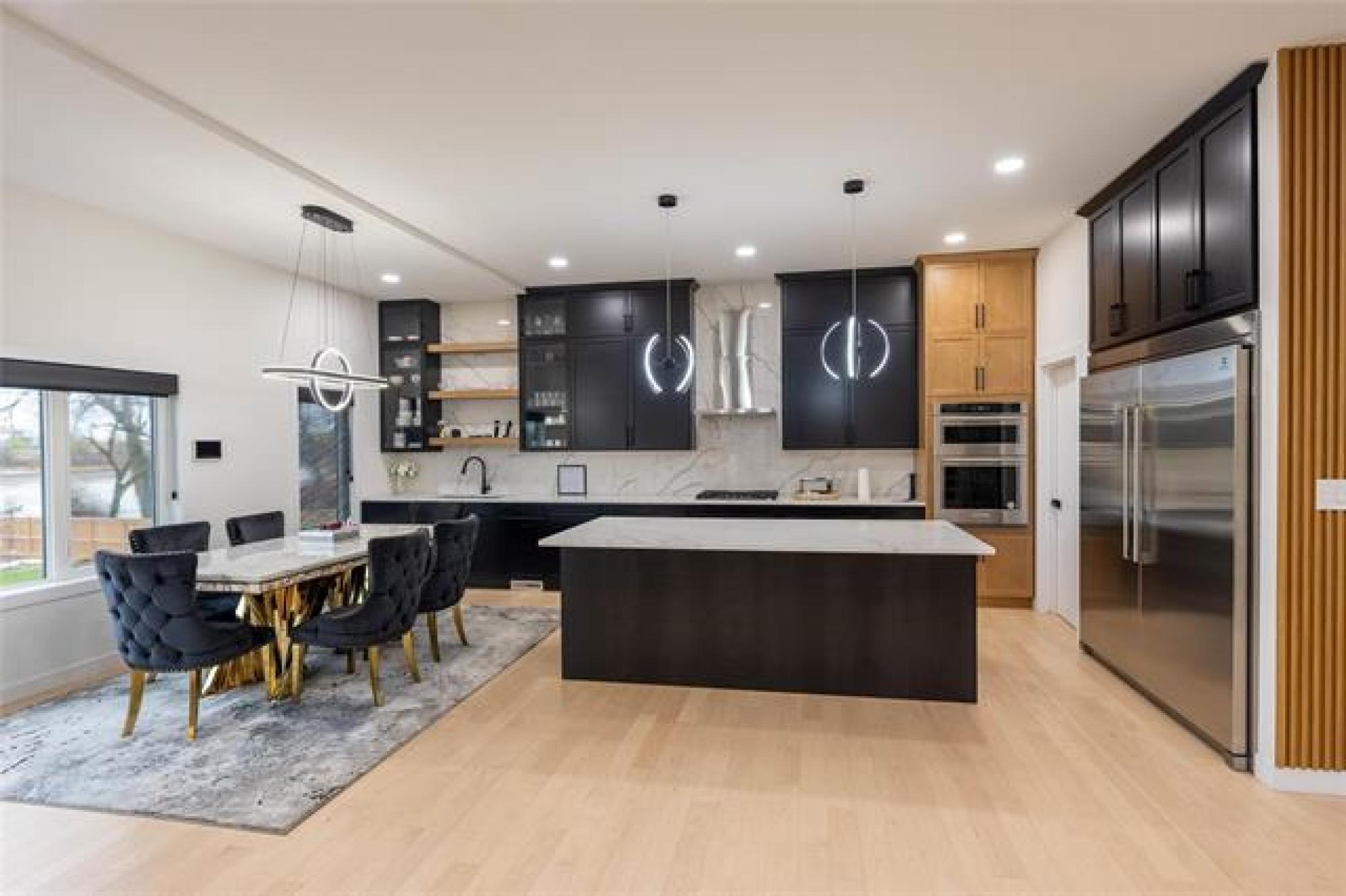 Discover this truly exceptional riverfront home where luxury, comfort, and modern design meet. From the moment you step inside, you’ll be captivated by the bright, airy layout featuring soaring 10’ ceilings and an inviting foyer. The sleek designer kitchen boasts an impressive 8’ island and effortlessly connects to the spacious dining and great room, perfect for gatherings and everyday living. Step out onto the raised deck and take in the peaceful river views that surround you. The main level is completed with a butler's pantry, bedroom, a 4-piece bath, plus a generous mudroom. Upstairs, you'll be greeted by a massive 24’ loft ideal for family time or relaxation. The primary suite features its own private balcony and 5-piece ensuite bath, being the perfect place to unwind. You’ll find two more bedrooms, each with their own walk-in closets and 4-piece ensuites. Downstairs, a spacious rec room with two bedrooms and a full bathroom offers plenty of room for family and guests, while the oversized triple attached garage provides exceptional convenience and storage. Enjoy this home designed to take full advantage of the serene riverfront setting.