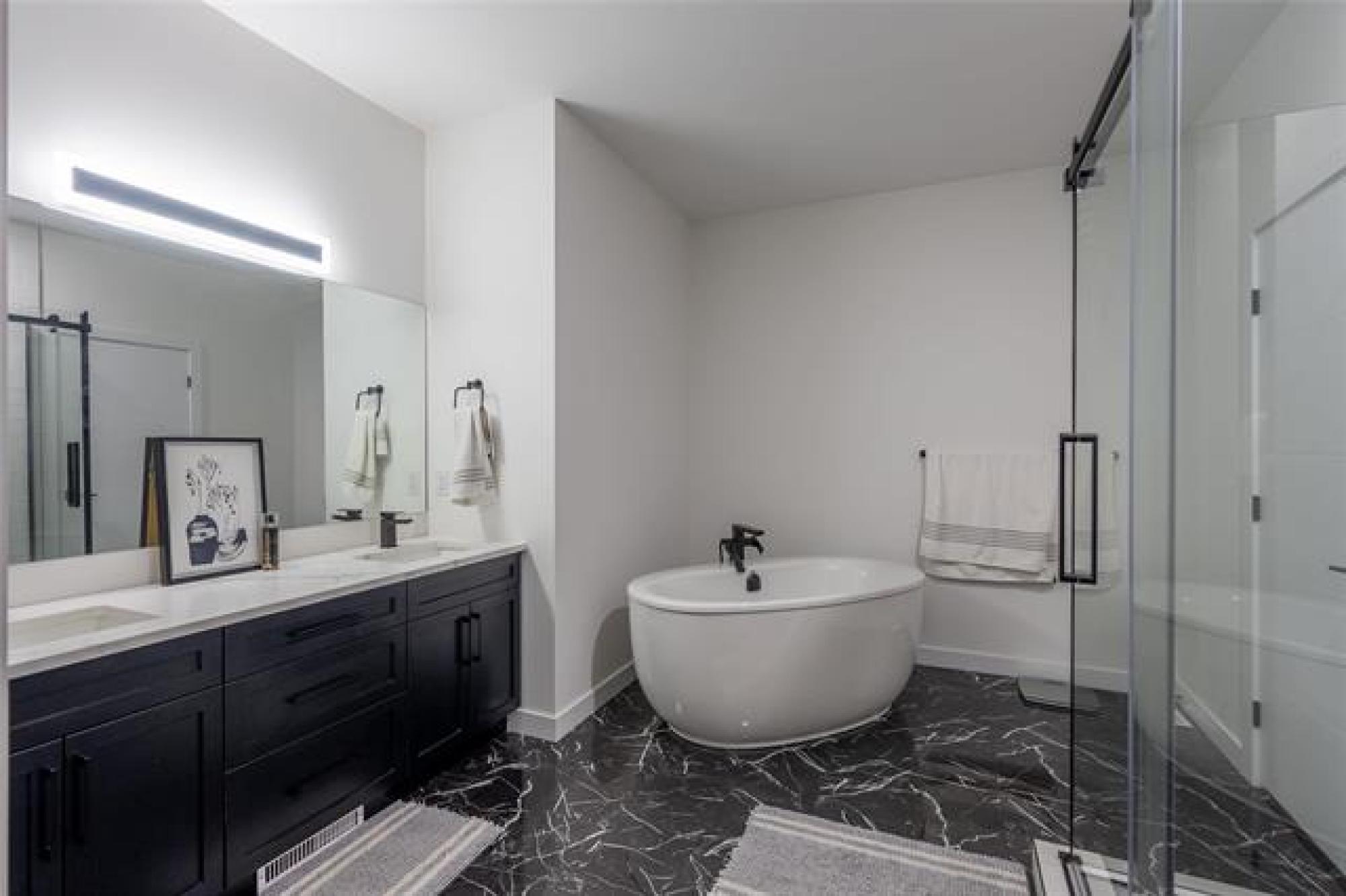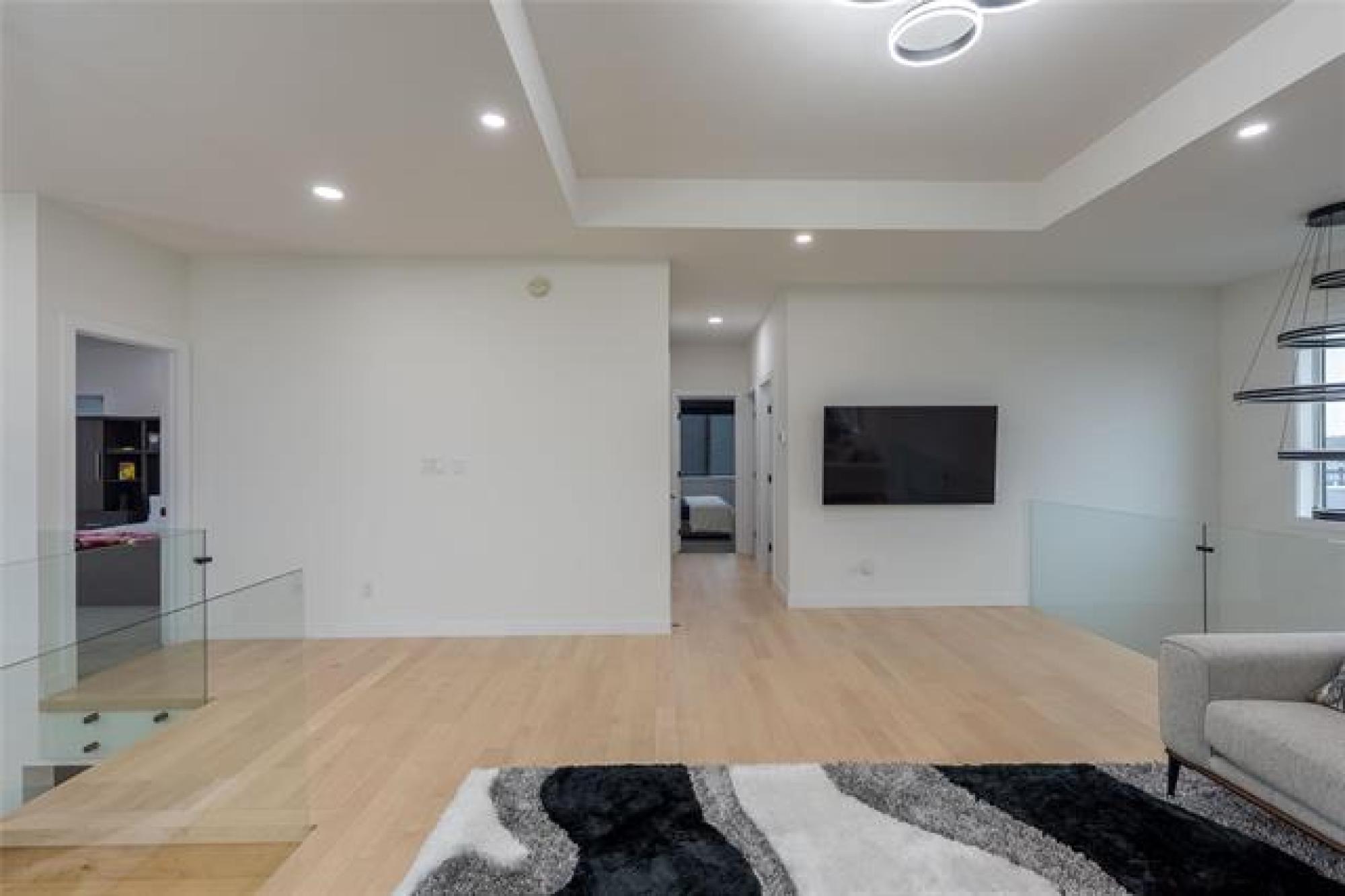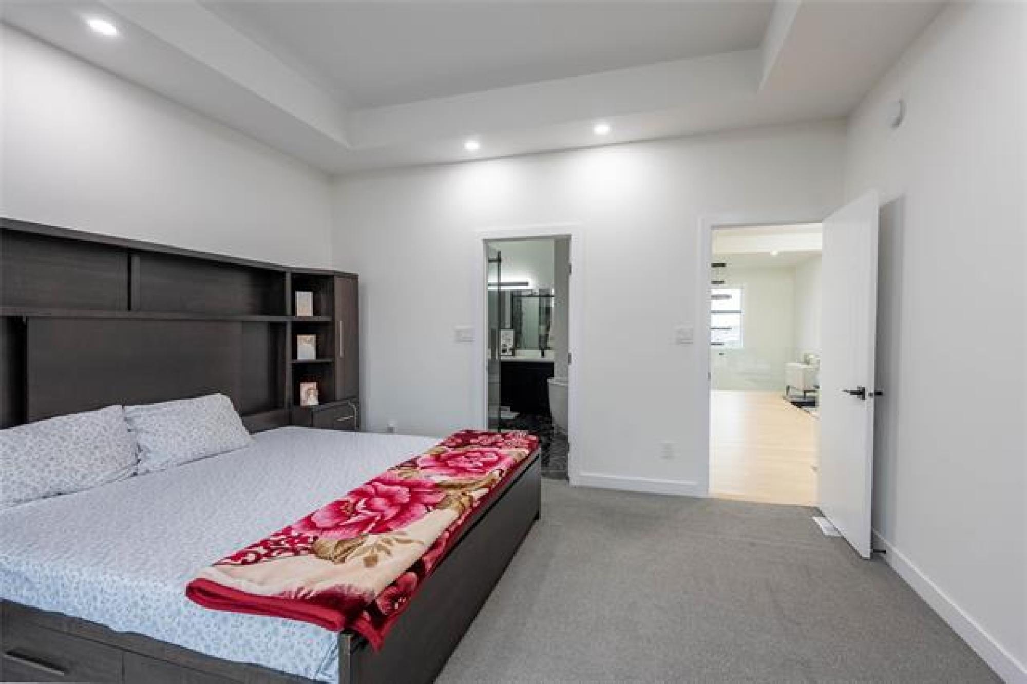 Discover this truly exceptional riverfront home where luxury, comfort, and modern design meet. From the moment you step inside, you’ll be captivated by the bright, airy layout featuring soaring 10’ ceilings and an inviting foyer. The sleek designer kitchen boasts an impressive 8’ island and effortlessly connects to the spacious dining and great room, perfect for gatherings and everyday living. Step out onto the raised deck and take in the peaceful river views that surround you. The main level is completed with a butler's pantry, bedroom, a 4-piece bath, plus a generous mudroom. Upstairs, you'll be greeted by a massive 24’ loft ideal for family time or relaxation. The primary suite features its own private balcony and 5-piece ensuite bath, being the perfect place to unwind. You’ll find two more bedrooms, each with their own walk-in closets and 4-piece ensuites. Downstairs, a spacious rec room with two bedrooms and a full bathroom offers plenty of room for family and guests, while the oversized triple attached garage provides exceptional convenience and storage. Enjoy this home designed to take full advantage of the serene riverfront setting.