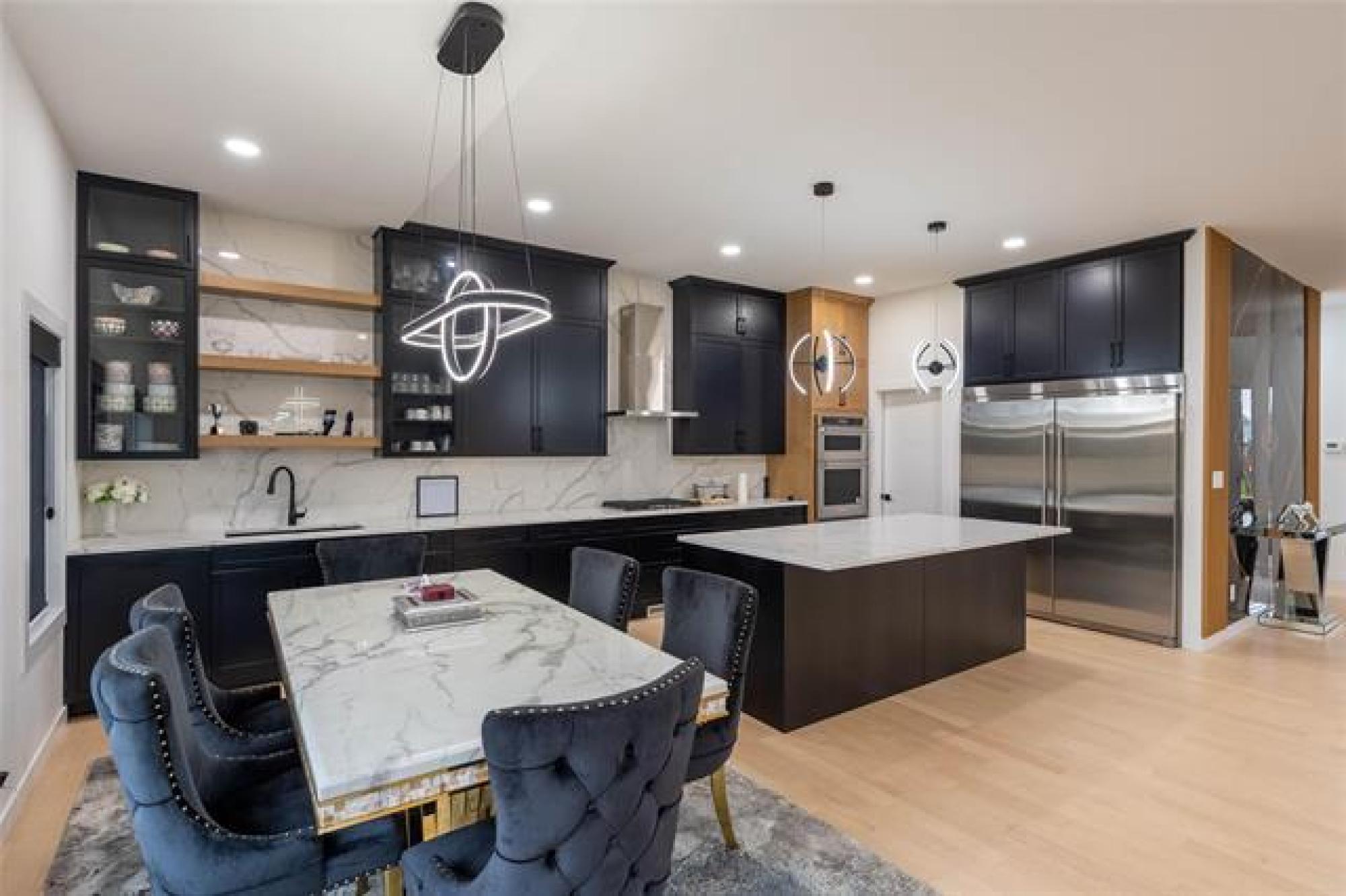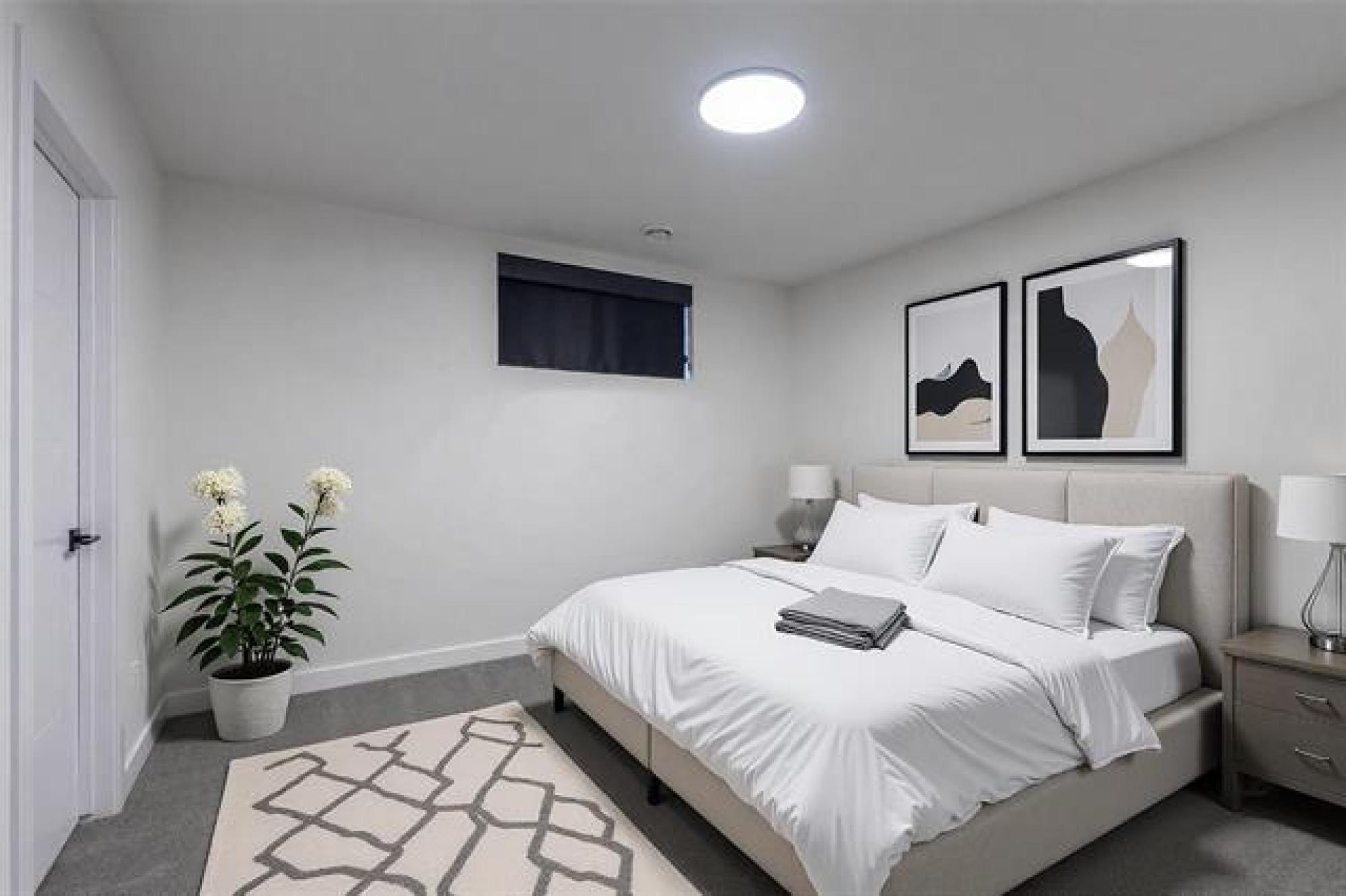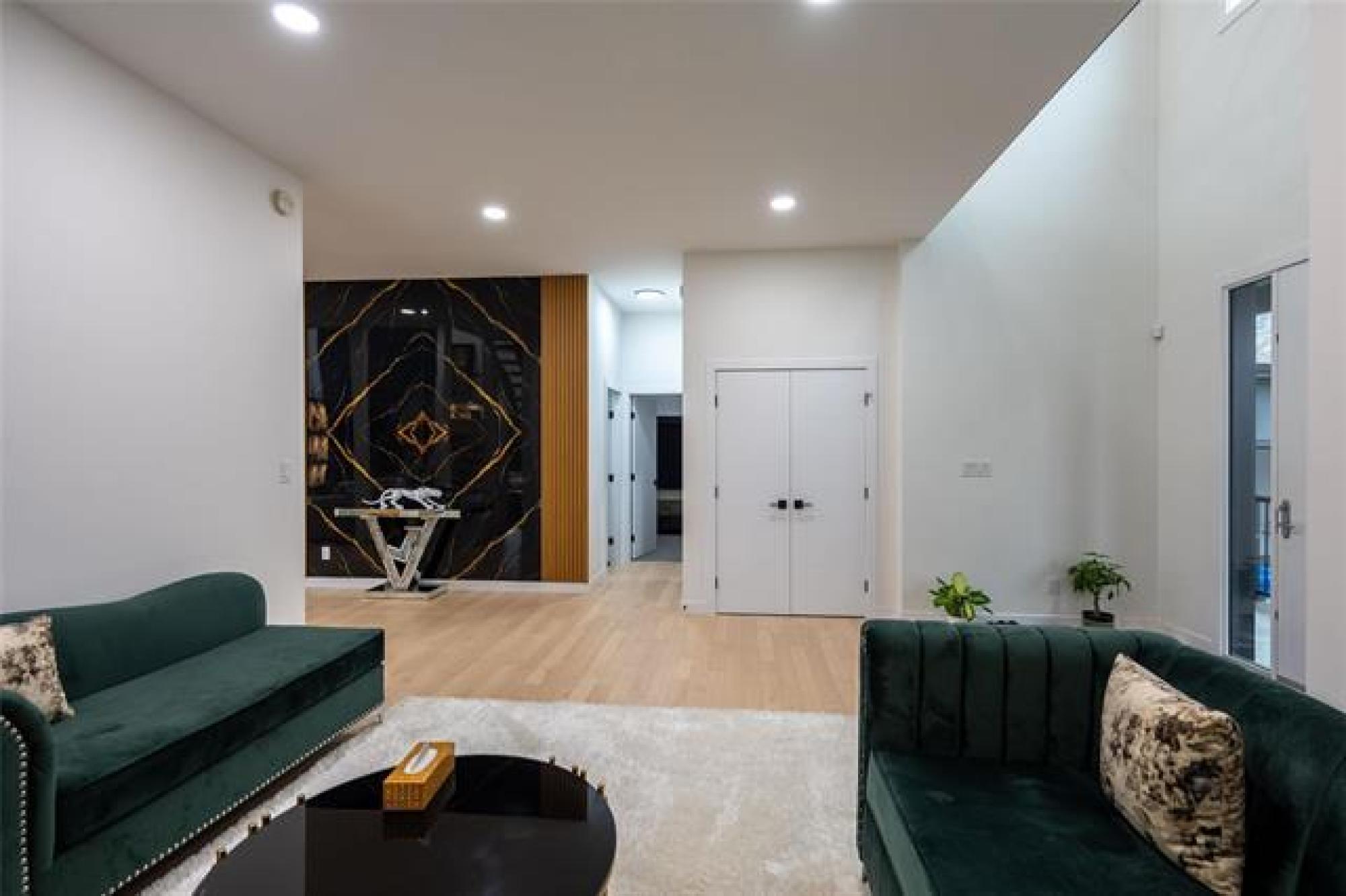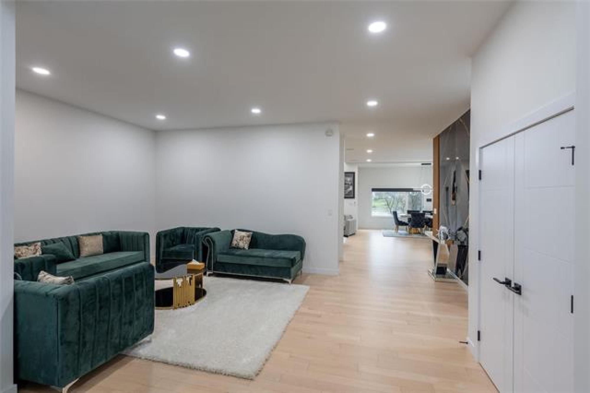 Discover this truly exceptional riverfront home where luxury, comfort, and modern design meet. From the moment you step inside, you’ll be captivated by the bright, airy layout featuring soaring 10’ ceilings and an inviting foyer. The sleek designer kitchen boasts an impressive 8’ island and effortlessly connects to the spacious dining and great room, perfect for gatherings and everyday living. Step out onto the raised deck and take in the peaceful river views that surround you. The main level is completed with a butler's pantry, bedroom, a 4-piece bath, plus a generous mudroom. Upstairs, you'll be greeted by a massive 24’ loft ideal for family time or relaxation. The primary suite features its own private balcony and 5-piece ensuite bath, being the perfect place to unwind. You’ll find two more bedrooms, each with their own walk-in closets and 4-piece ensuites. Downstairs, a spacious rec room with two bedrooms and a full bathroom offers plenty of room for family and guests, while the oversized triple attached garage provides exceptional convenience and storage. Enjoy this home designed to take full advantage of the serene riverfront setting.