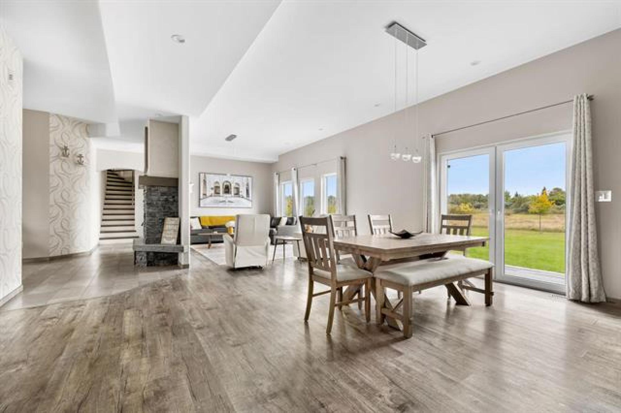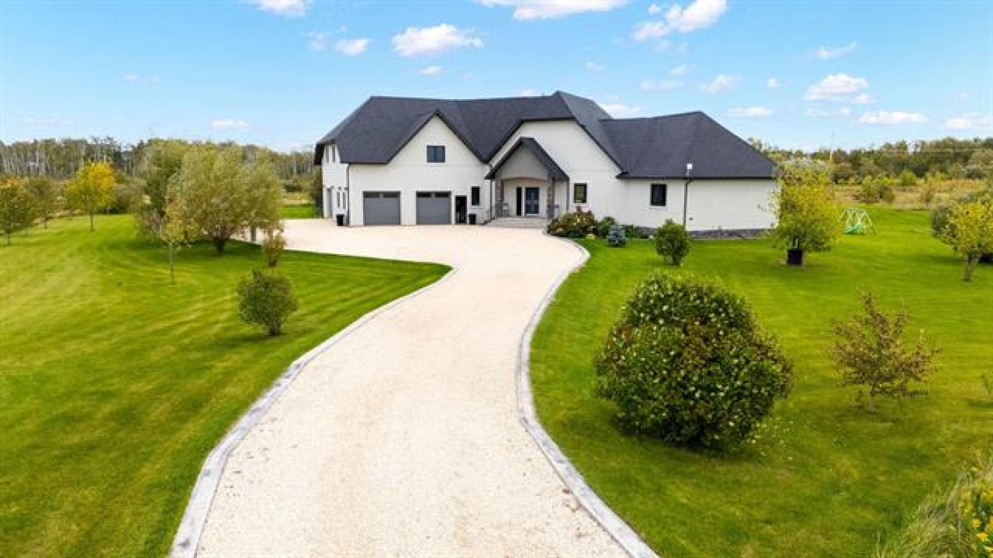 This beautiful 3766 square foot, 6 bedroom, 3 bath, 2 story home with 4 car garage sits on over 3 acres and is sure to impress. Walking in you are greeted to soaring ceilings, beautiful tile floors and a two sided fireplace. The Chef's kitchen is a dream equipped with gas cooktop, custom hood, double convection oven, large granite island, farmhouse sink and large walk-in pantry. The dining and living space is open and airy offering tons of natural light streaming in through the high end European tilt and turn windows and doors. The primary bedroom has a beautiful accent wall, large walk in closet, huge 4 pce ensuite and an attached room that can be used as a dedicated dressing room leading to your main floor laundry. The other side of the house has another full bath and a luxurious sauna. Upstairs has a huge entertainment space, another 4 pce bath and 5 more bedrooms! The garage is enormous and can easily fit 4 vehicles with room to spare. The home has a state of the art gas boiler to forced air heating system, sure to keep your bills way down and has a sub panel that you can switch the entire home to generator power in case of a power failure. Too much to list, call today!