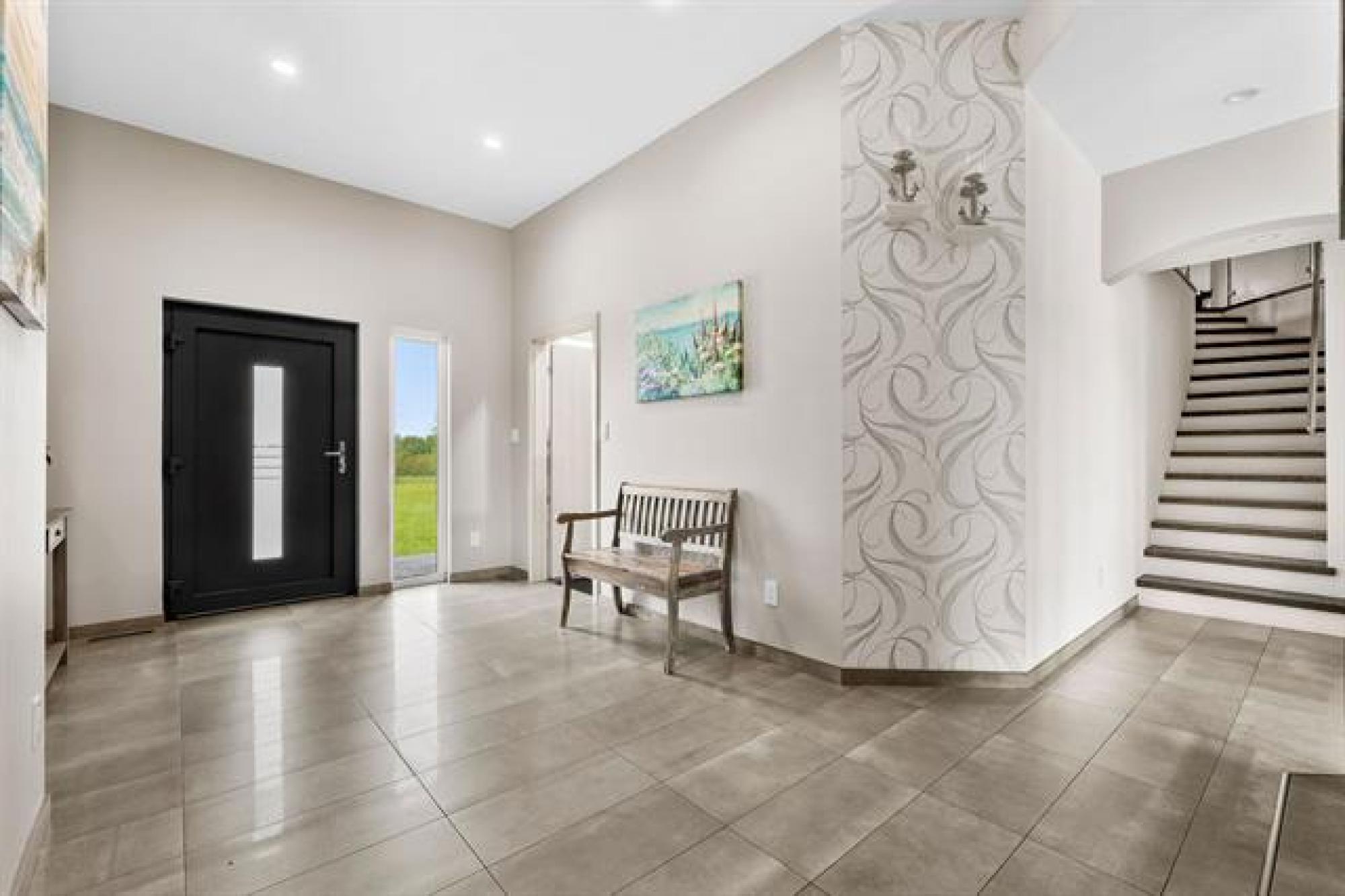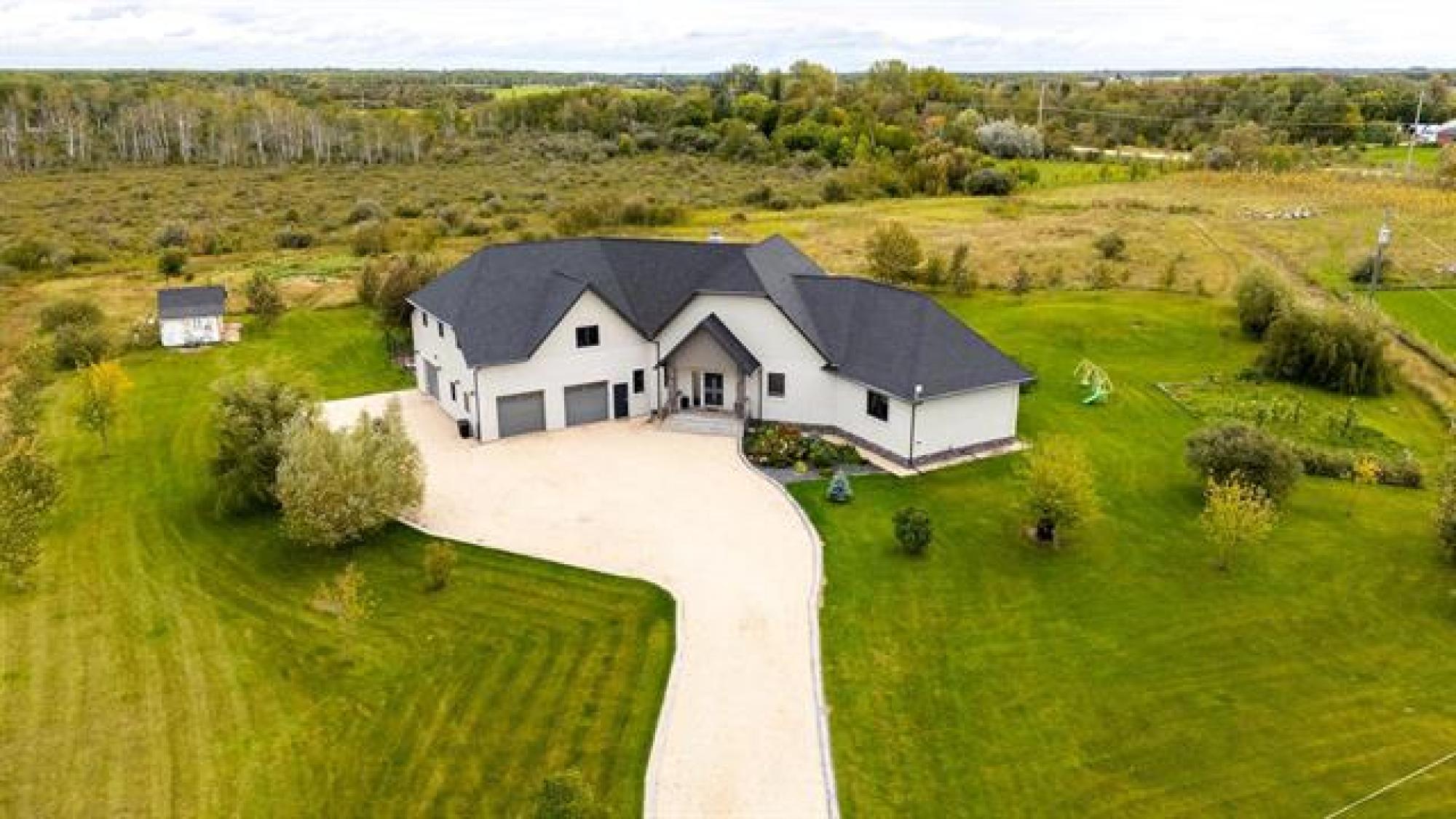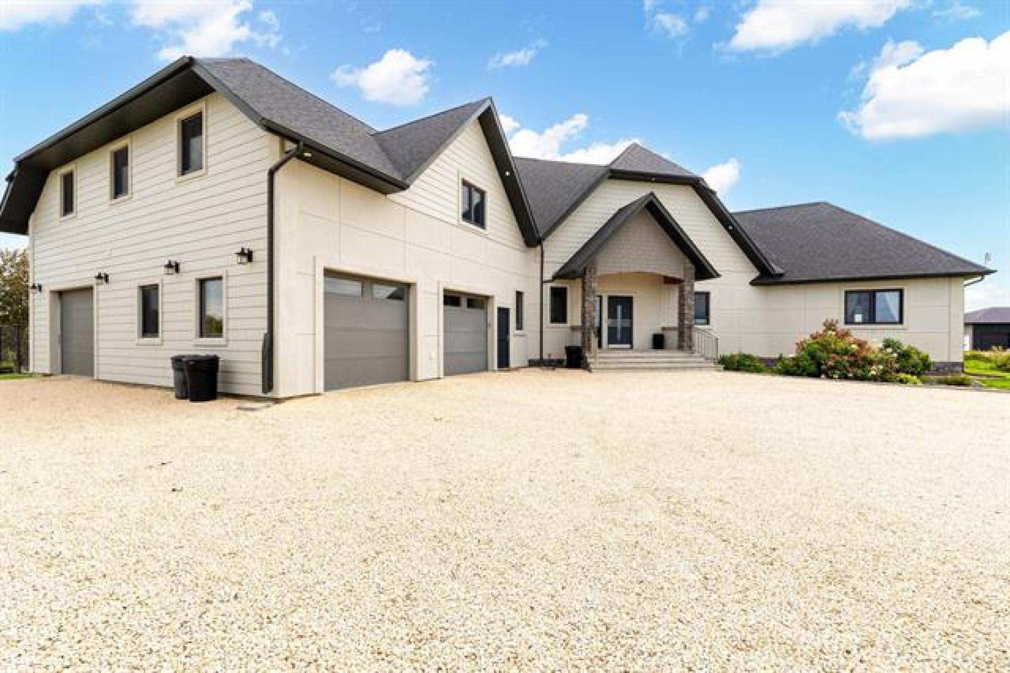 This beautiful 3766 square foot, 6 bedroom, 3 bath, 2 story home with 4 car garage sits on over 3 acres and is sure to impress. Walking in you are greeted to soaring ceilings, beautiful tile floors and a two sided fireplace. The Chef's kitchen is a dream equipped with gas cooktop, custom hood, double convection oven, large granite island, farmhouse sink and large walk-in pantry. The dining and living space is open and airy offering tons of natural light streaming in through the high end European tilt and turn windows and doors. The primary bedroom has a beautiful accent wall, large walk in closet, huge 4 pce ensuite and an attached room that can be used as a dedicated dressing room leading to your main floor laundry. The other side of the house has another full bath and a luxurious sauna. Upstairs has a huge entertainment space, another 4 pce bath and 5 more bedrooms! The garage is enormous and can easily fit 4 vehicles with room to spare. The home has a state of the art gas boiler to forced air heating system, sure to keep your bills way down and has a sub panel that you can switch the entire home to generator power in case of a power failure. Too much to list, call today!