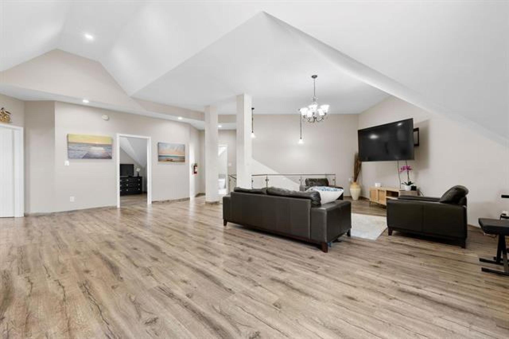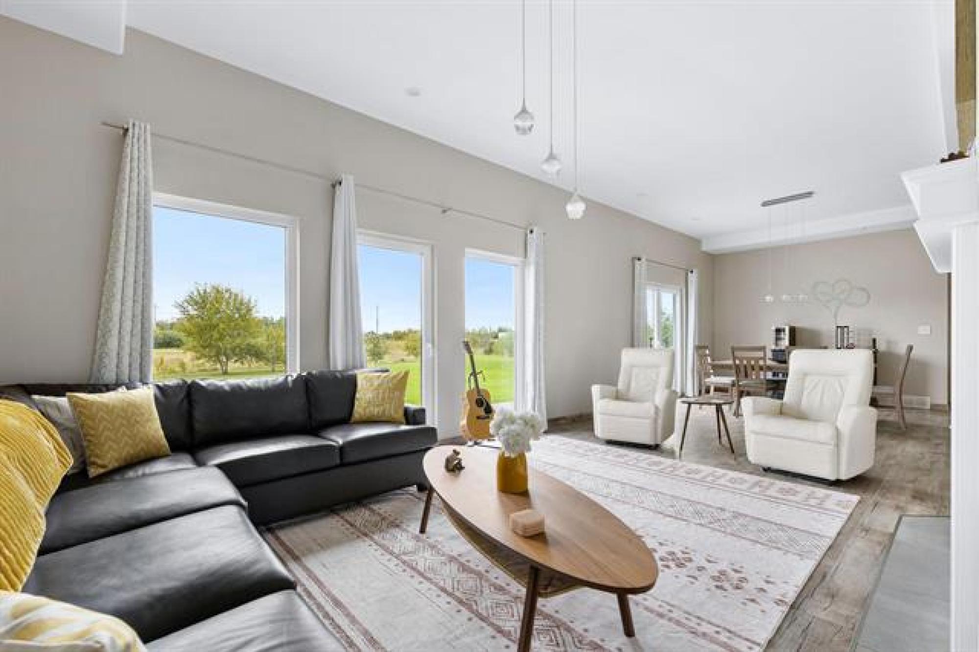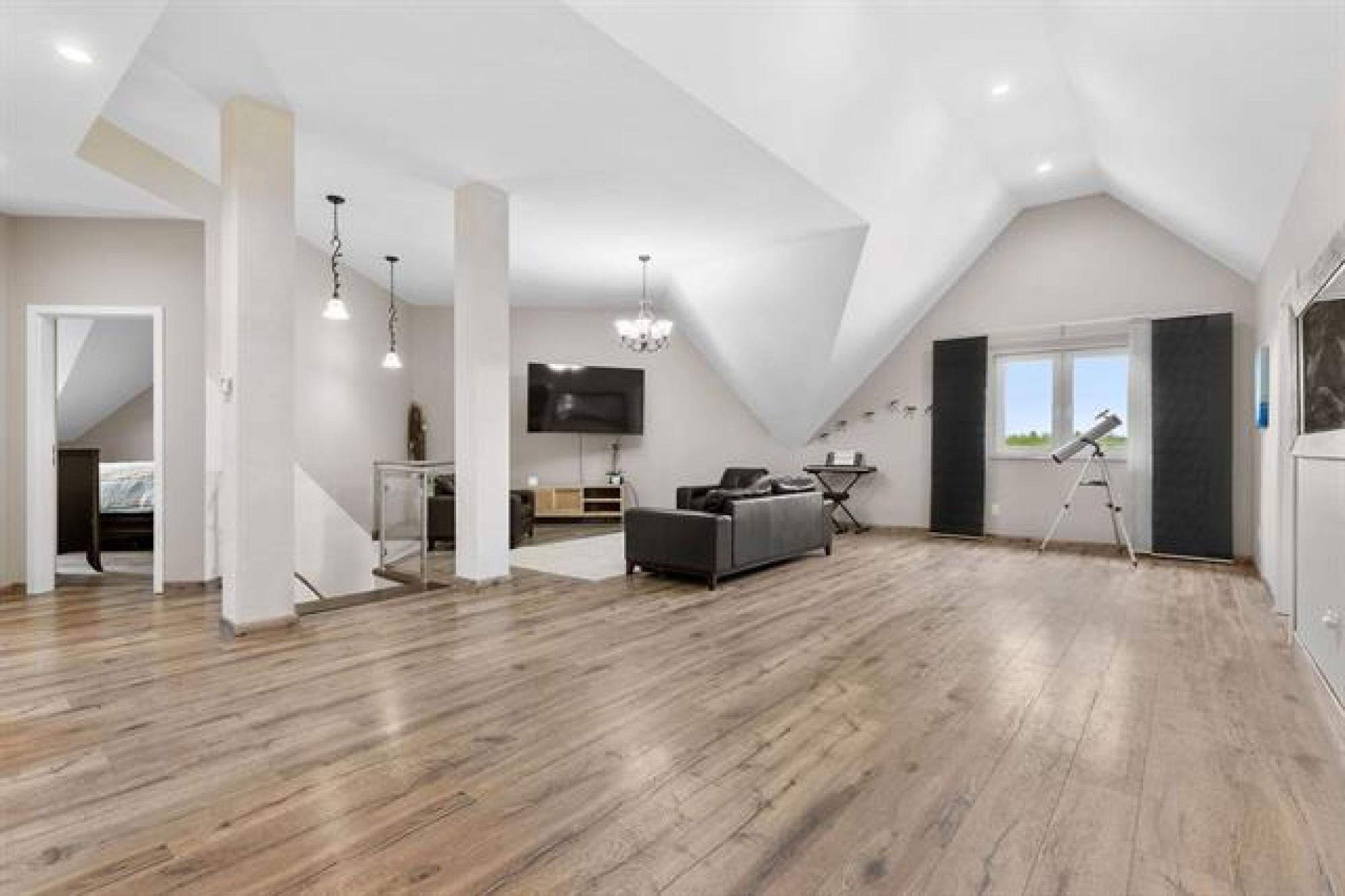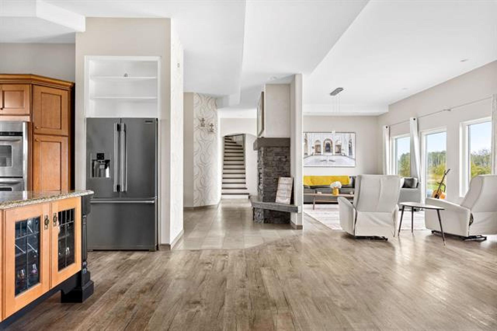 This beautiful 3766 square foot, 6 bedroom, 3 bath, 2 story home with 4 car garage sits on over 3 acres and is sure to impress. Walking in you are greeted to soaring ceilings, beautiful tile floors and a two sided fireplace. The Chef's kitchen is a dream equipped with gas cooktop, custom hood, double convection oven, large granite island, farmhouse sink and large walk-in pantry. The dining and living space is open and airy offering tons of natural light streaming in through the high end European tilt and turn windows and doors. The primary bedroom has a beautiful accent wall, large walk in closet, huge 4 pce ensuite and an attached room that can be used as a dedicated dressing room leading to your main floor laundry. The other side of the house has another full bath and a luxurious sauna. Upstairs has a huge entertainment space, another 4 pce bath and 5 more bedrooms! The garage is enormous and can easily fit 4 vehicles with room to spare. The home has a state of the art gas boiler to forced air heating system, sure to keep your bills way down and has a sub panel that you can switch the entire home to generator power in case of a power failure. Too much to list, call today!