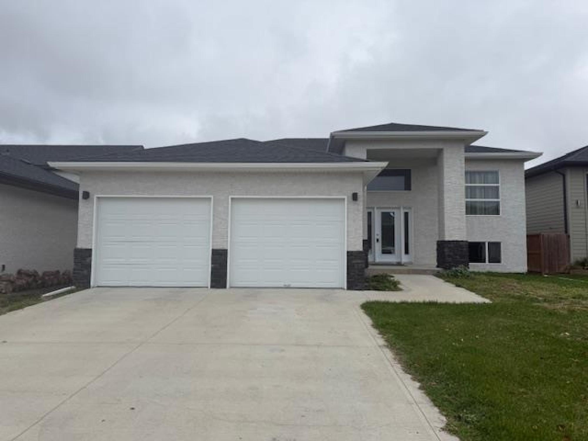 interiors coming soon! Welcome to this spacious bilevel home built in 2018, designed with versatility and comfort in mind. Each level offers its own separate living quarters, making it ideal for two families, guests, in-laws, or savvy investors. Both the upper and lower floors feature 3 bedrooms, large windows that bring in plenty of natural light, and separate laundry areas with their own washer and dryer—true convenience and privacy for every household. The main entrance is bright and inviting, showcasing tall ceilings and a split staircase leading to each level. The kitchen on the main floor includes a functional island and dark espresso cabinetry that adds warmth and modern style. Outside, you’ll find a fully fenced yard and an attached double garage, offering both security and ample parking. Located in a newer development in Steinbach, this property was built for revenue, used by renters as well as a VRBO stay. Whether you’re an investor looking for a reliable income property or a family wanting space for guests or in-laws, this home is an excellent opportunity in a growing neighbourhood. Priced to move!