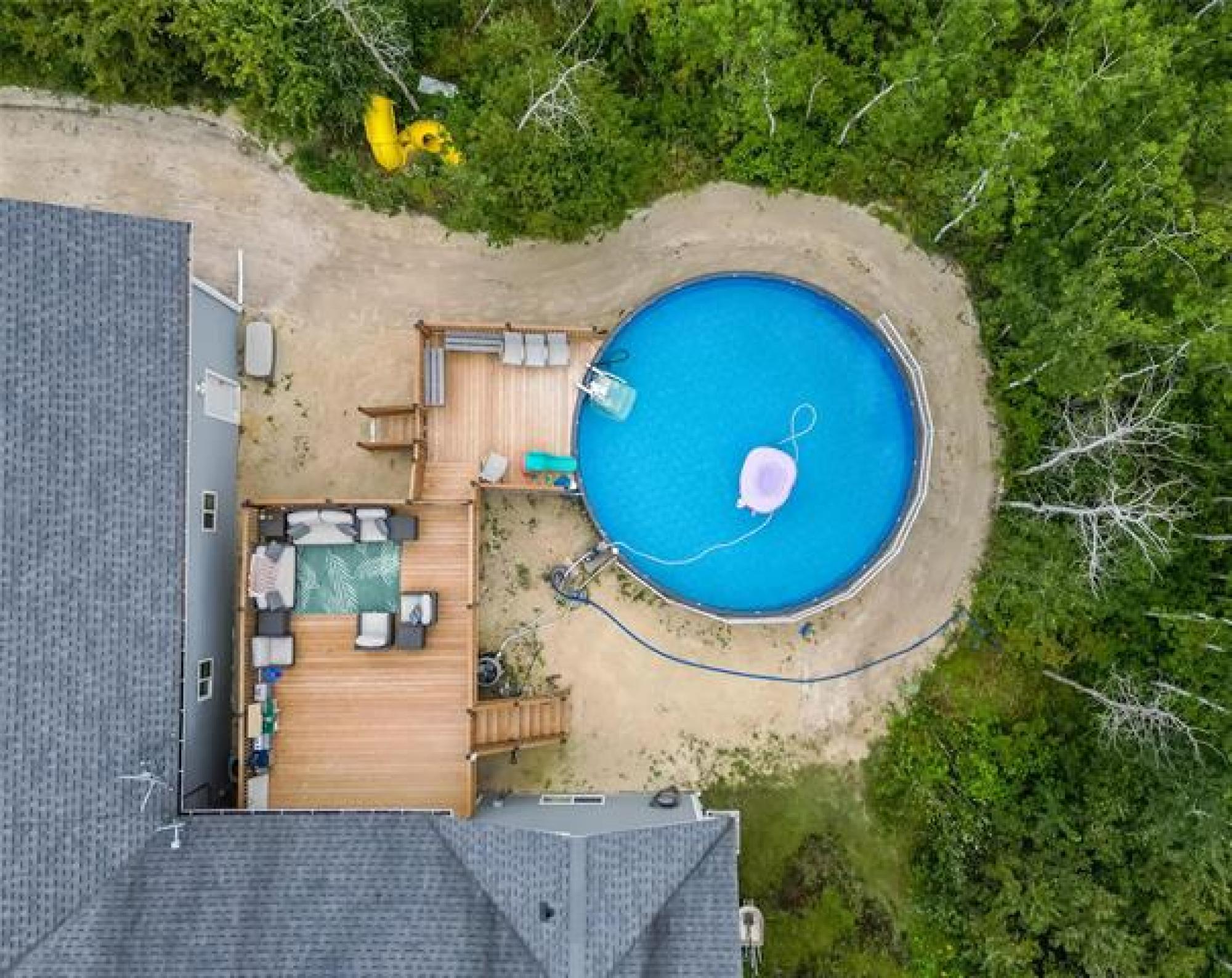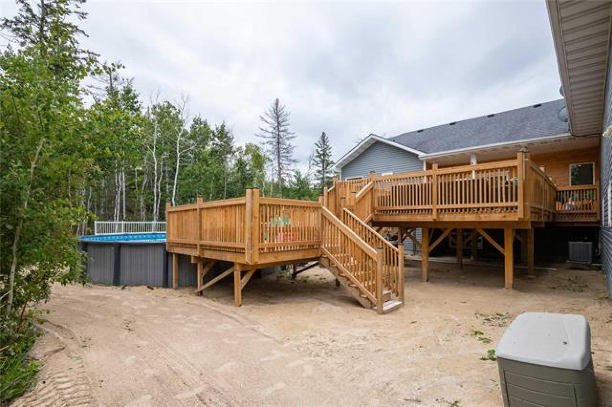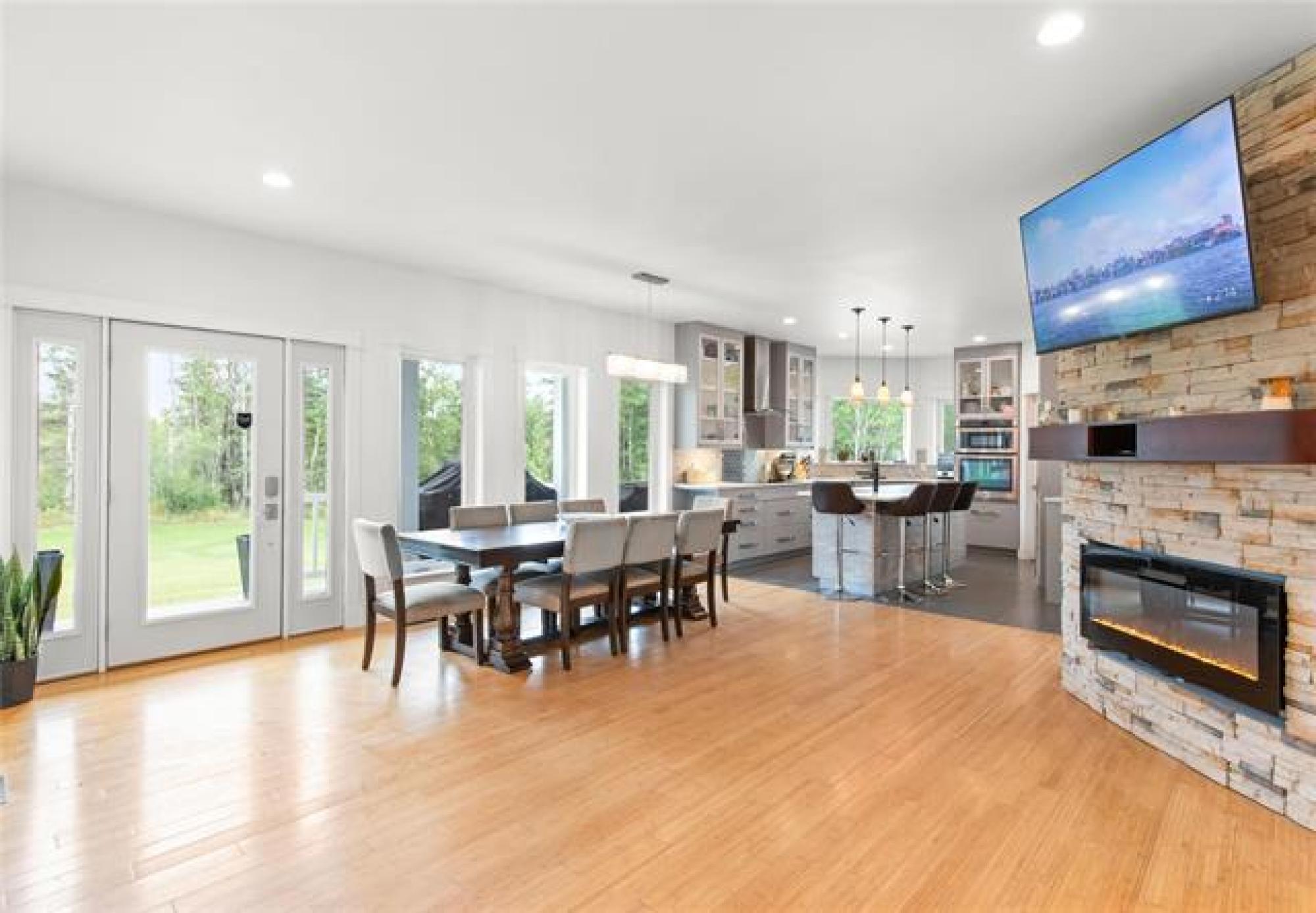 Offers as received.Stunning 1883sqft 6bdrm 3.5bthrm bungalow w/ fully finished basement, quad att garage,shop & above ground pool all situated on a manageable 2 acres lot.Step inside past the wrap around composite deck to bamboo hrdwd flrs throughout the open concept main living area.Dining rm is open to the eat in kitchen offering plenty of counter & cabinet space,tile b.s,built in stove & microwave,quartz counters,walk through pantry & prep sink in island w/seating for 4.Living rm boasts patio doors leading to your massive two tiered deck & above ground pool('23).Primary bdrm consists of his & her WIC,garden door leading to back deck,deluxe 5 pc ensuite w/custom tile walk in shower,2 person jacuzzi tub & dbl vanity.2 more spacious main floor bdrms 1 currently used as office the other featuring WIC.4pc main bthrm for the kids,2 pc pwder rm for guests,convenient main flr laundry & access to your 50x28 att garage w/16' ceilings & infloor heat.Finished basement in 2025 offers 9' ceilings,plush carpeting throughout,games area,rec room,3 more bdrms, 3pc bthrm & plenty of storage.Structural wood flrs,ICF foundation,I joist,200 amp panel,HRV,40x80 insulated & heated quonset. A true must see to appreciate.