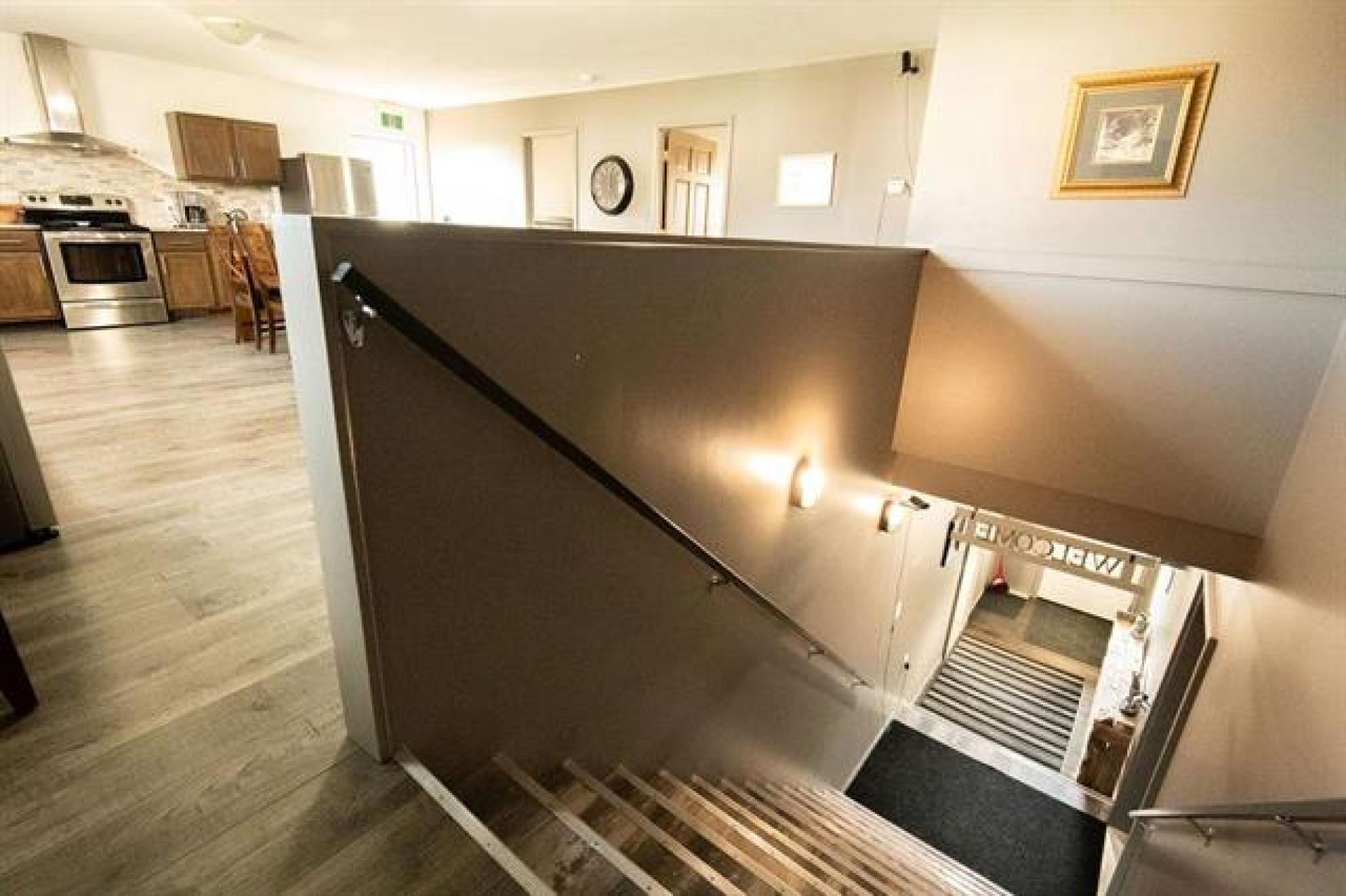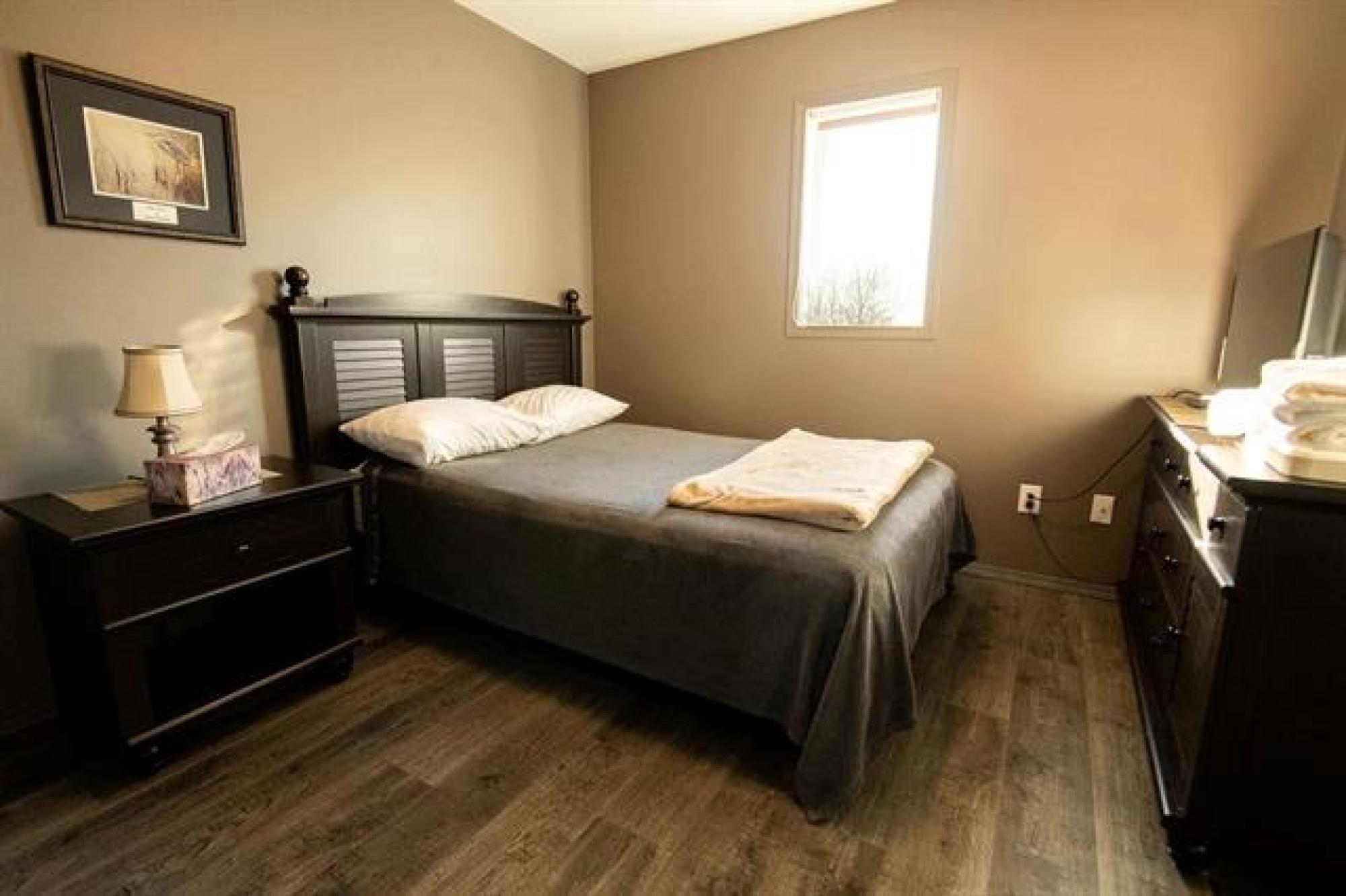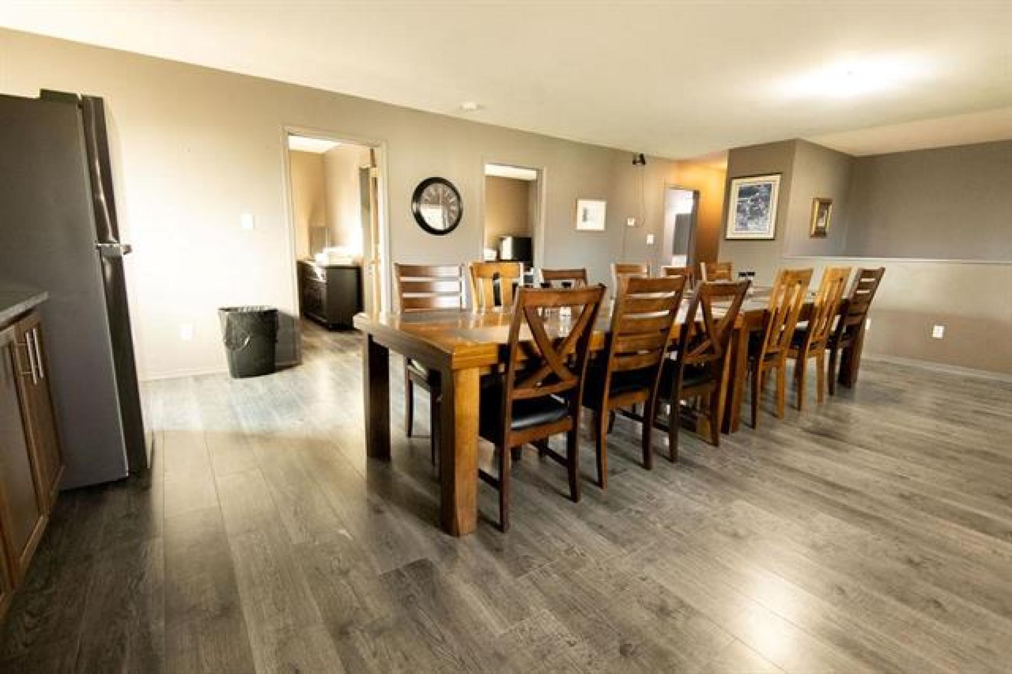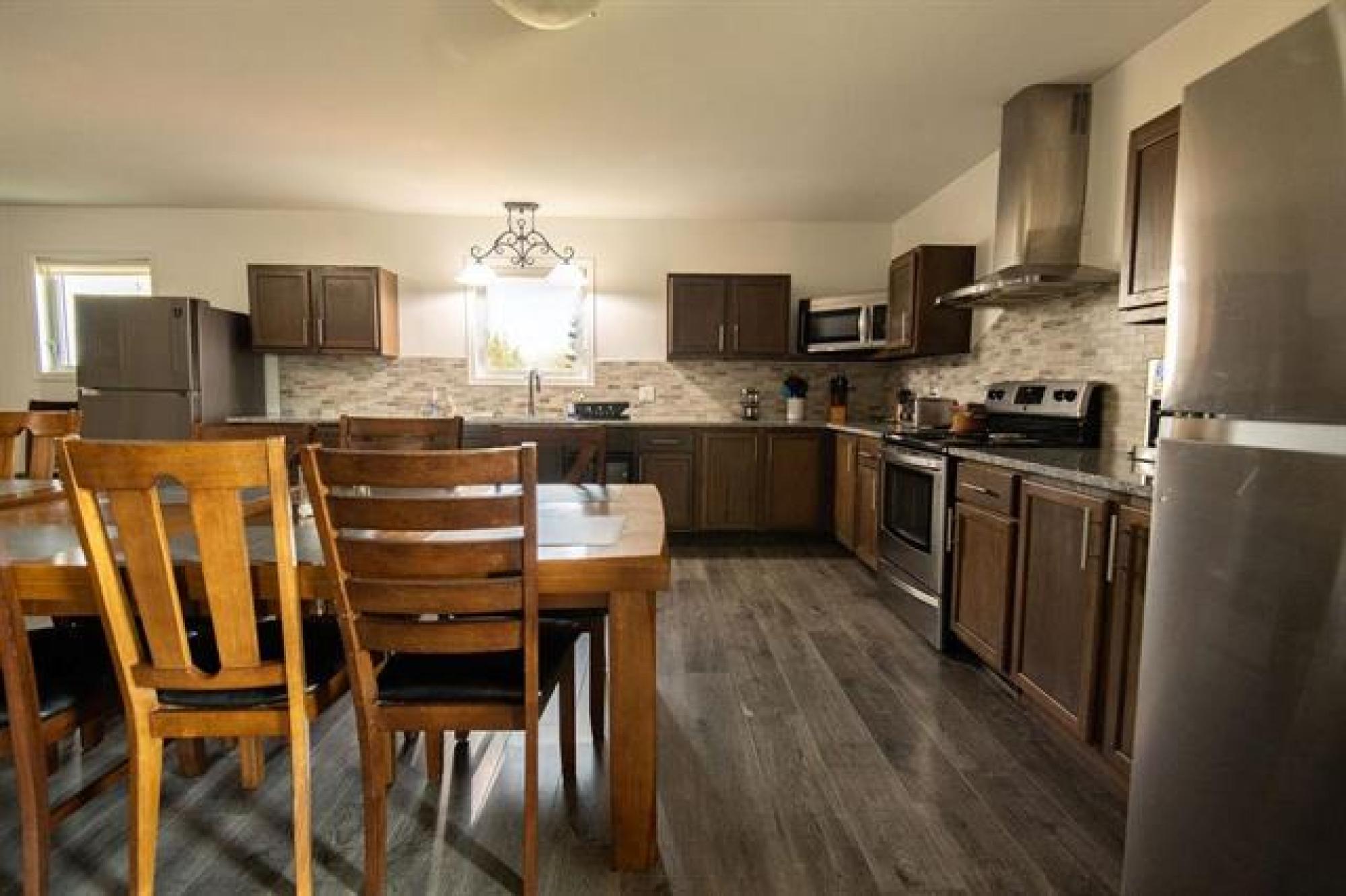 Beautiful whole-house retreat in Marchand, operating as a successful Airbnb since 2022 with a 4.97-star rating and 94 reviews. This spacious property sleeps 16+ guests with 7 bedrooms, 3 - 3pc bathrooms, 2 - 2pc bathrooms, plus huge kitchen & dining area connected to huge wrap second story decks. Fully furnished attached manager’s suite. Enjoy the games room with pool table, smart TVs, Wi-Fi, coin-op laundry, and a large fenced backyard with a fire pit. Insulated heated garage, storage outbuildings, and 65' x 30' Quonset offer exceptional space and flexibility. Perfect for corporate retreats, family gatherings, golf groups, snowmobile/ATV/SxS groups and hunting trips. A large circular driveway provides ample trailer parking. Located just minutes from the extensive Sandilands trail system. Gas station and store across the street and a vendor/bar next door. See supplements for income and expense details plus more info. 2 Titles for property.