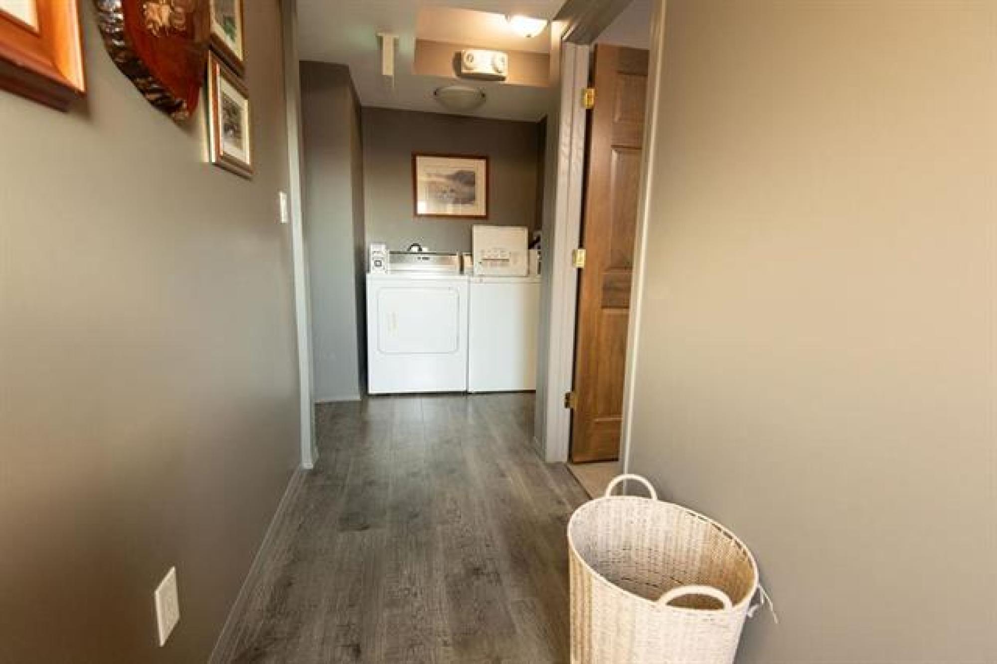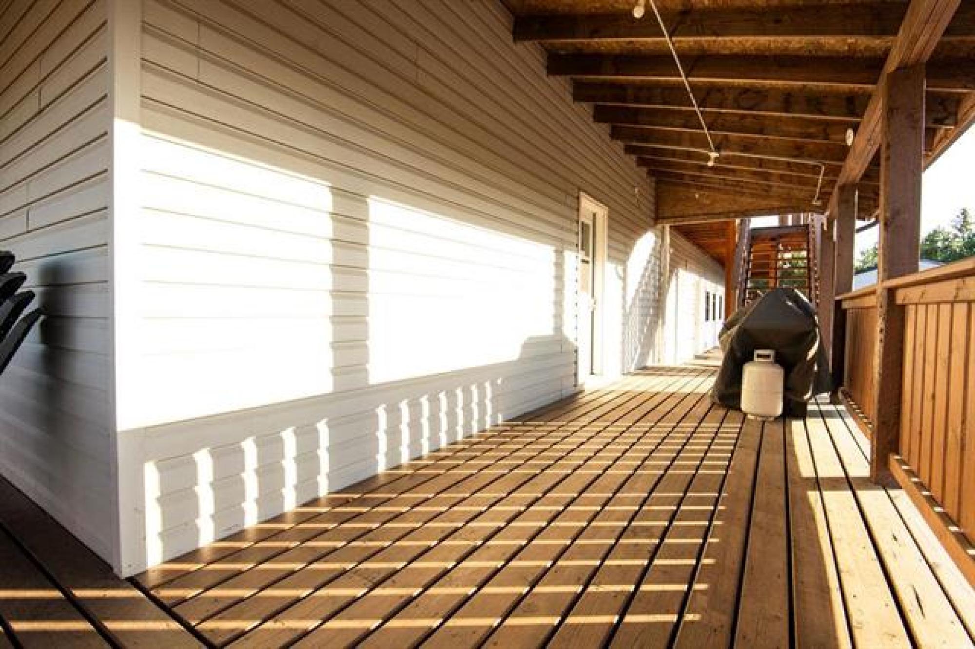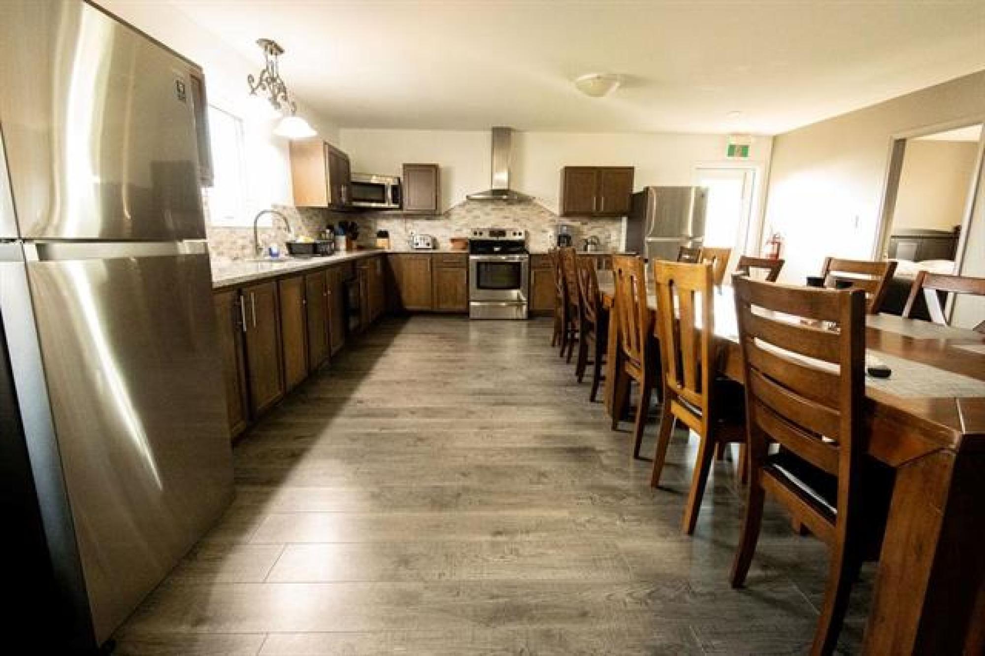 Beautiful whole-house retreat in Marchand, operating as a successful Airbnb since 2022 with a 4.97-star rating and 94 reviews. This spacious property sleeps 16+ guests with 7 bedrooms, 3 - 3pc bathrooms, 2 - 2pc bathrooms, plus huge kitchen & dining area connected to huge wrap second story decks. Fully furnished attached manager’s suite. Enjoy the games room with pool table, smart TVs, Wi-Fi, coin-op laundry, and a large fenced backyard with a fire pit. Insulated heated garage, storage outbuildings, and 65' x 30' Quonset offer exceptional space and flexibility. Perfect for corporate retreats, family gatherings, golf groups, snowmobile/ATV/SxS groups and hunting trips. A large circular driveway provides ample trailer parking. Located just minutes from the extensive Sandilands trail system. Gas station and store across the street and a vendor/bar next door. See supplements for income and expense details plus more info. 2 Titles for property.